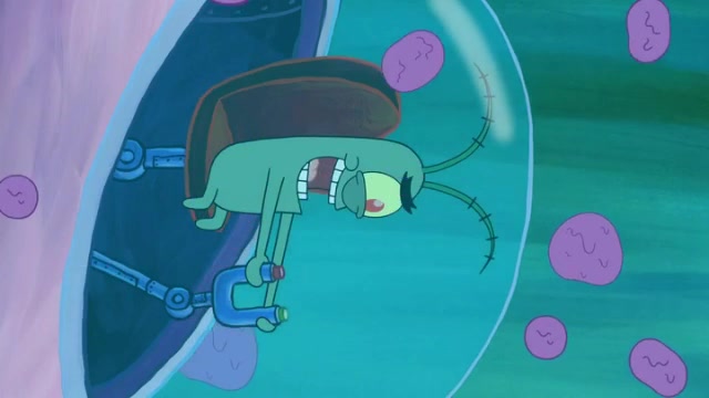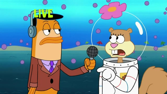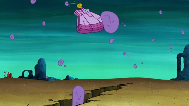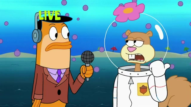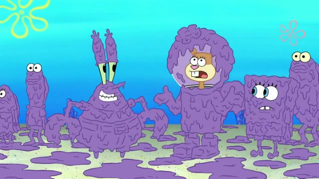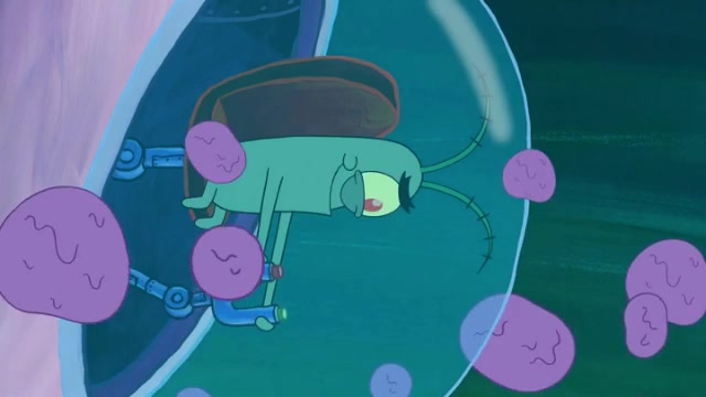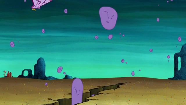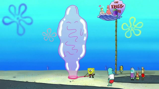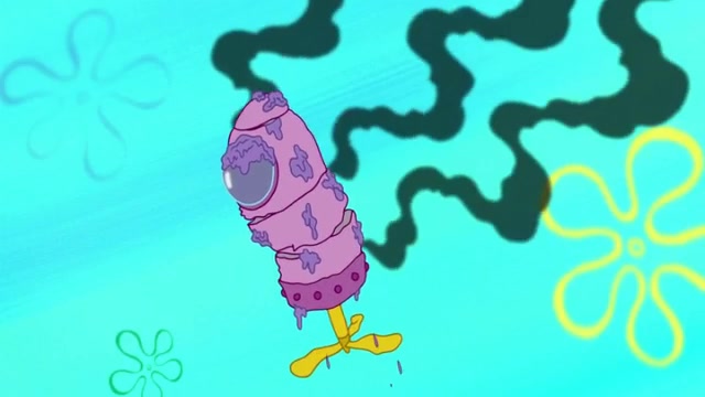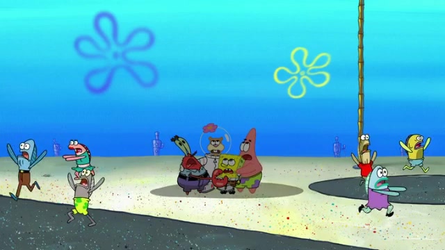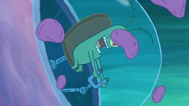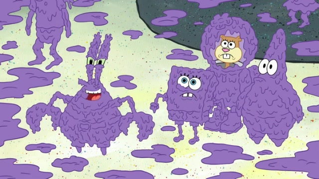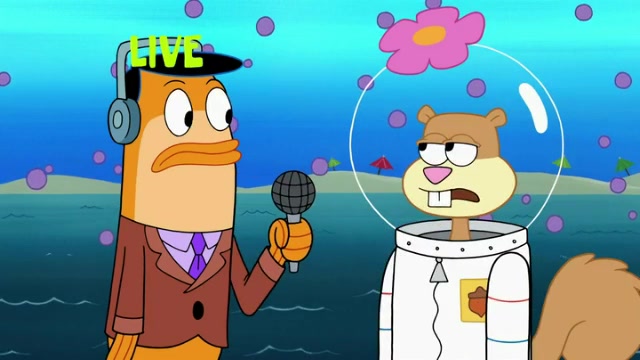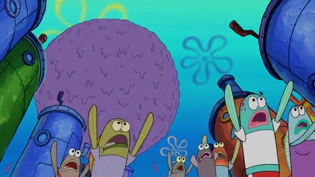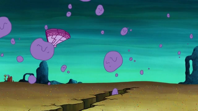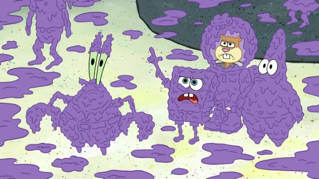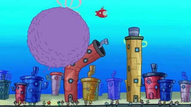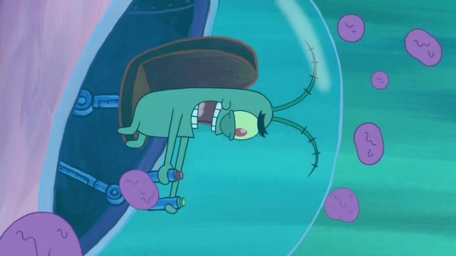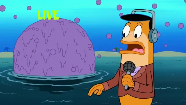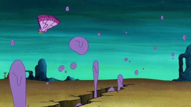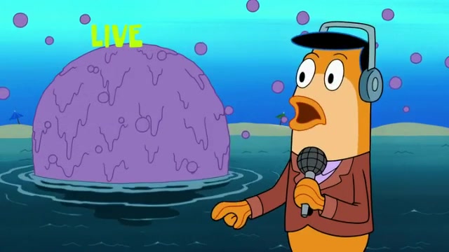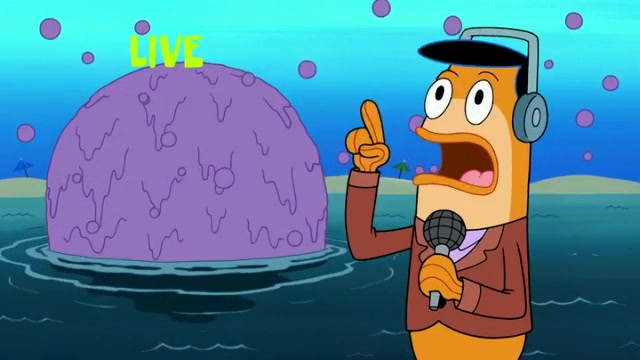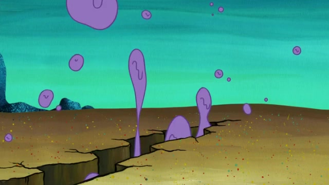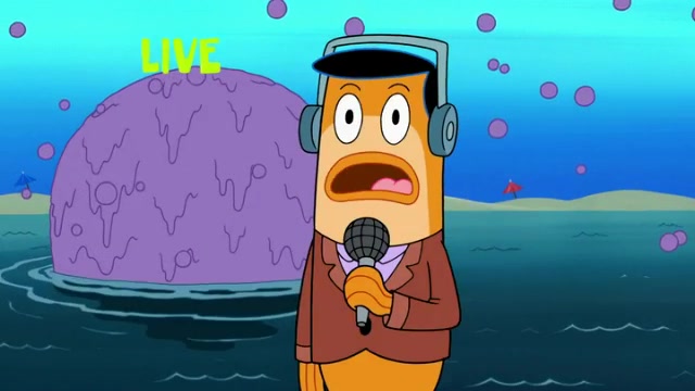 Meanwhile, more bubbles begin to arise from the lagoon, and the Bikini Bottomites begin to use the bubbles, although Sandy said it was dangerous. SpongeBob and Patrick continue to use the goo as bouncy balls. Squidward begins to use the goo as a hairdo. The other citizens continue to use it for their own purposes as well. Perch Perkins begins to report for the Bikini Bottom News with Johnny. He states how the gooey Mucus Bubbles are popular at Goo Lagoon. While on the air, Sandy, now going partly insane with her theory, says how the bubbles were dangerous again. Everybody still thinks she is wrong, but soon she will be right. Plankton continues on his quest to find the ultimate Mucus Bubble in his ship. He is set to find the crack at any cost. Soon, he finds it. Plankton, as well as Karen, widen the crack, and unleash the largest Mucus Bubble. It rises out of Goo Lagoon, and everybody now agrees with Sandy.
