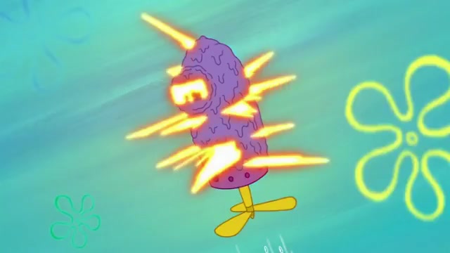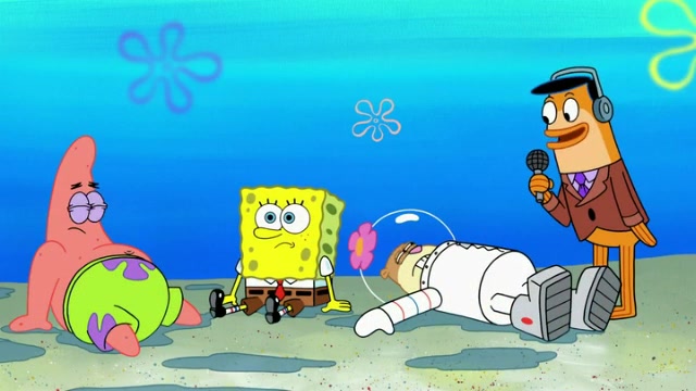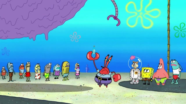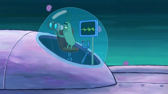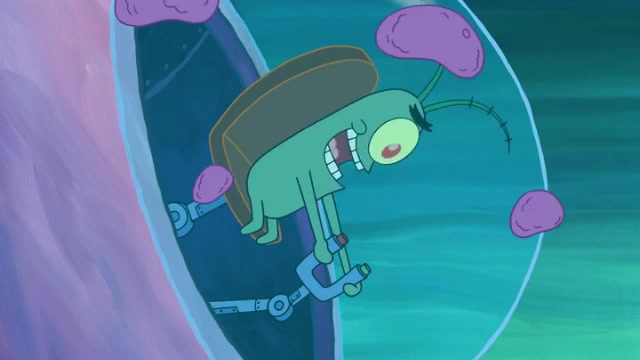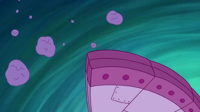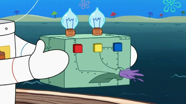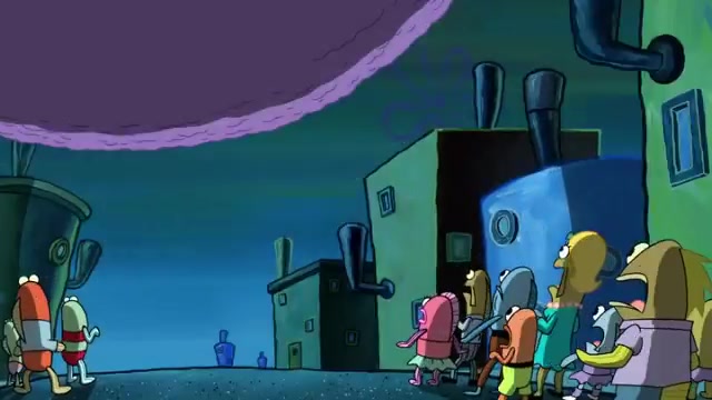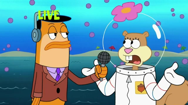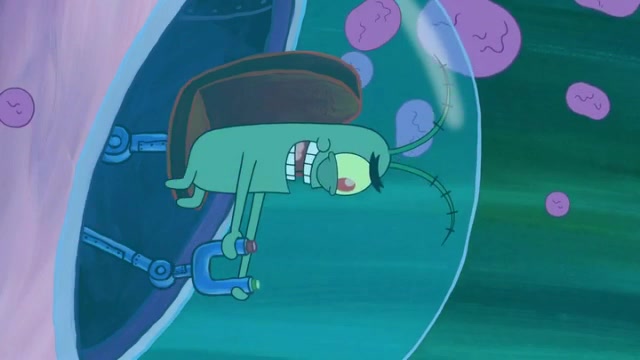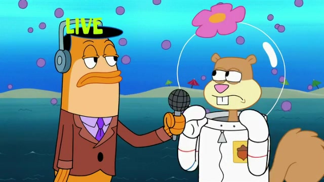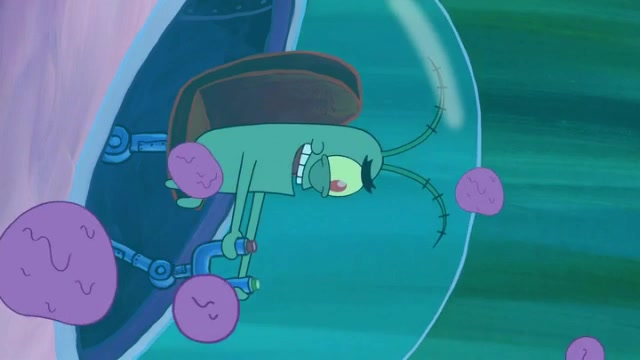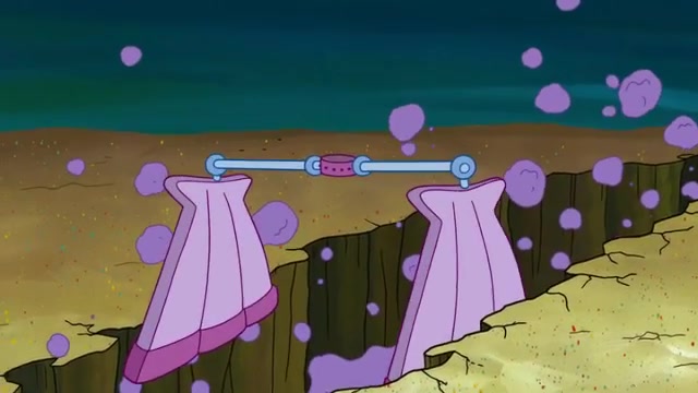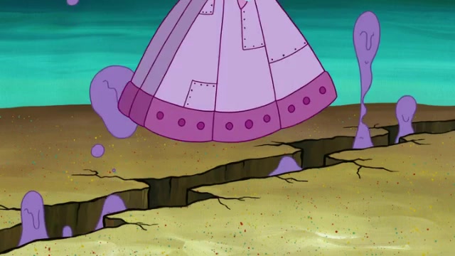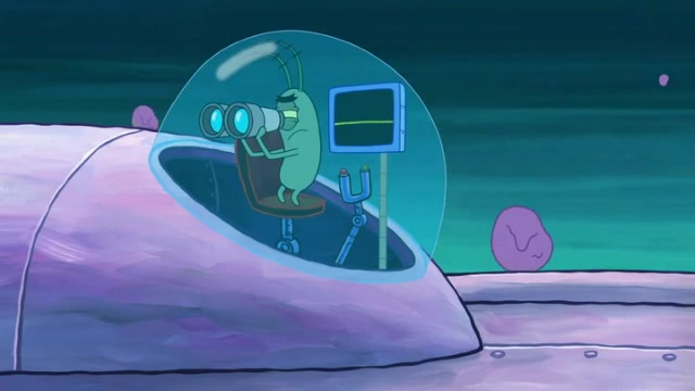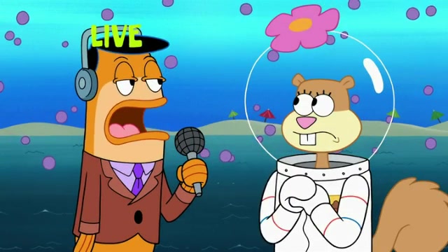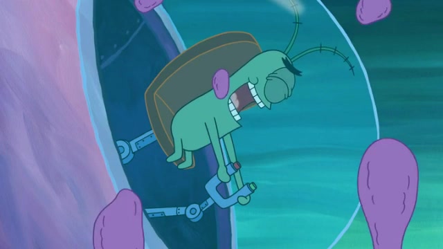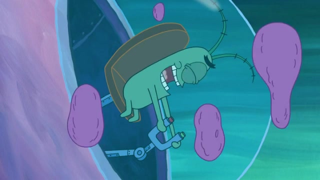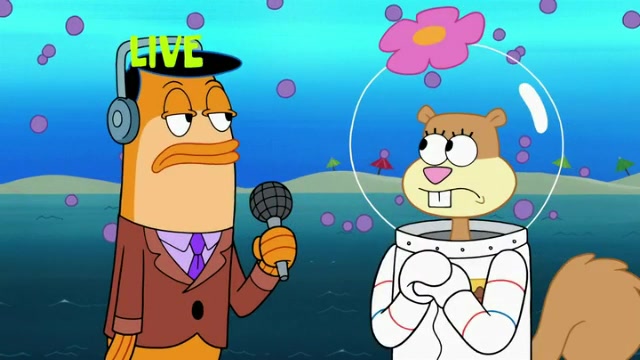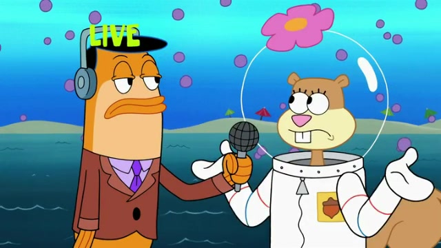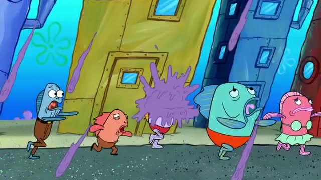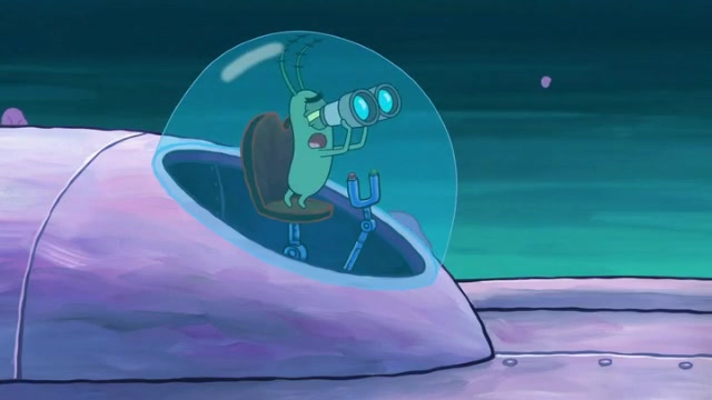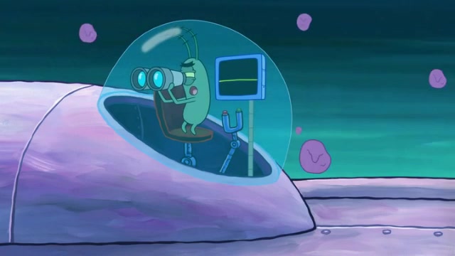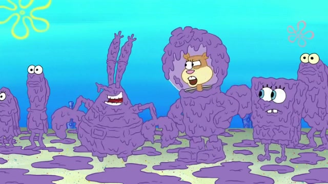 Meanwhile, more bubbles begin to arise from the lagoon, and the Bikini Bottomites begin to use the bubbles, although Sandy said it was dangerous. SpongeBob and Patrick continue to use the goo as bouncy balls. Squidward begins to use the goo as a hairdo. The other citizens continue to use it for their own purposes as well. Perch Perkins begins to report for the Bikini Bottom News with Johnny. He states how the gooey Mucus Bubbles are popular at Goo Lagoon. While on the air, Sandy, now going partly insane with her theory, says how the bubbles were dangerous again. Everybody still thinks she is wrong, but soon she will be right. Plankton continues on his quest to find the ultimate Mucus Bubble in his ship. He is set to find the crack at any cost. Soon, he finds it. Plankton, as well as Karen, widen the crack, and unleash the largest Mucus Bubble. It rises out of Goo Lagoon, and everybody now agrees with Sandy.