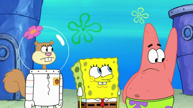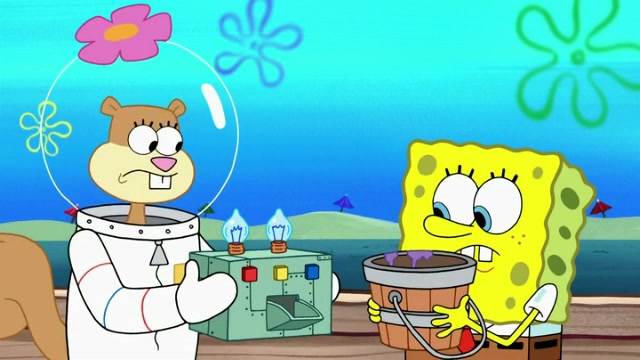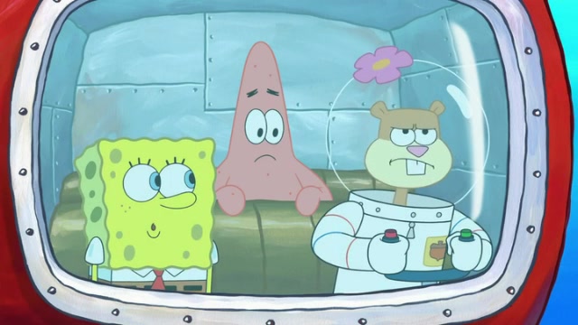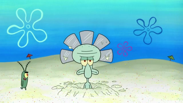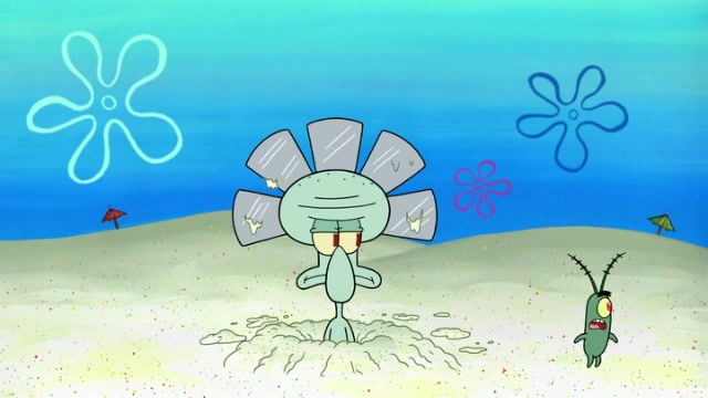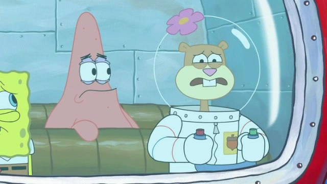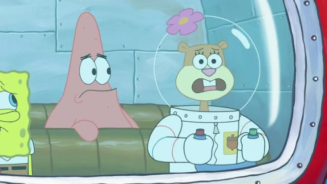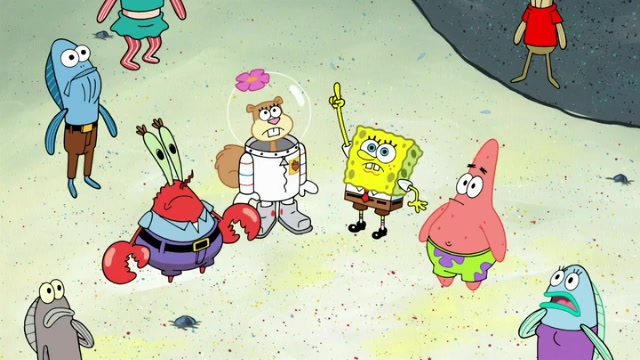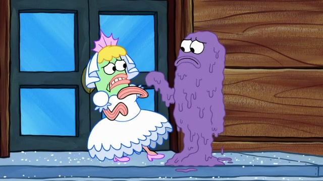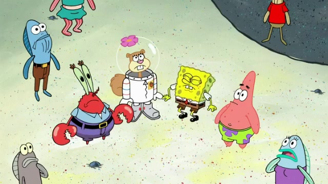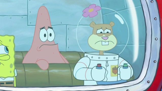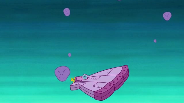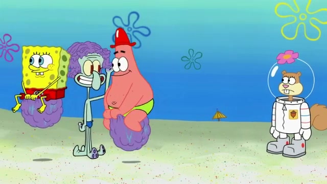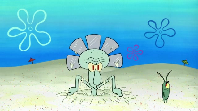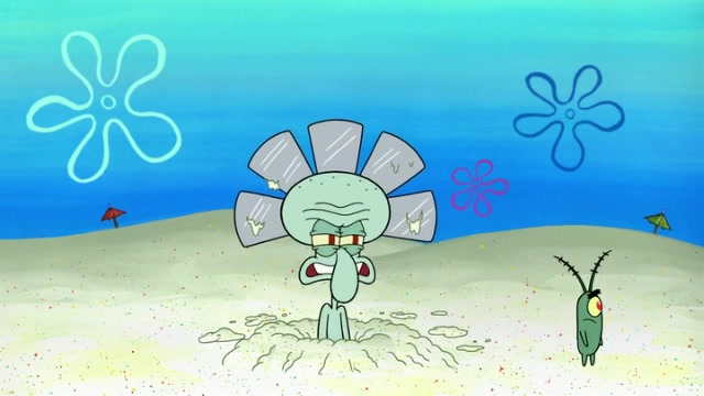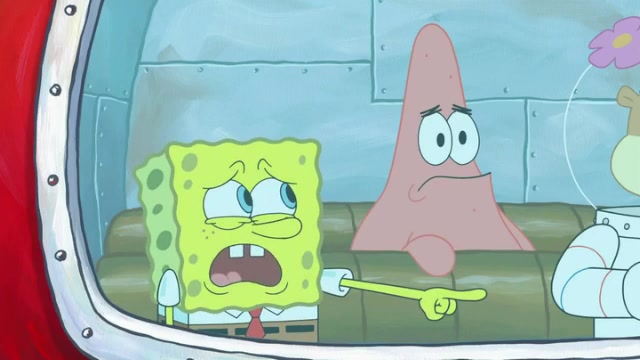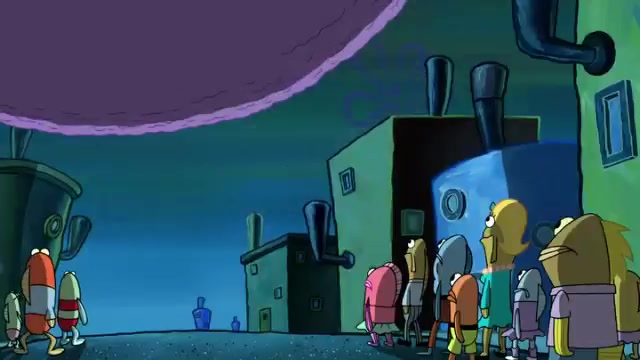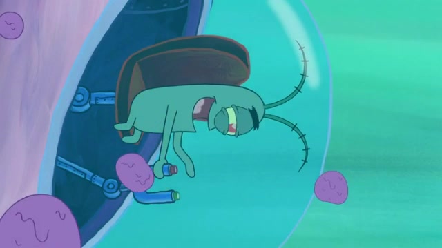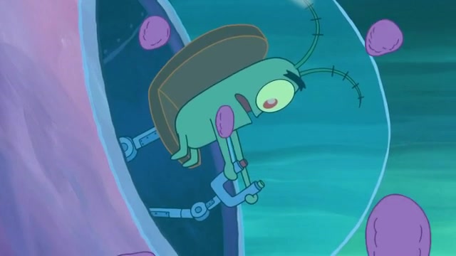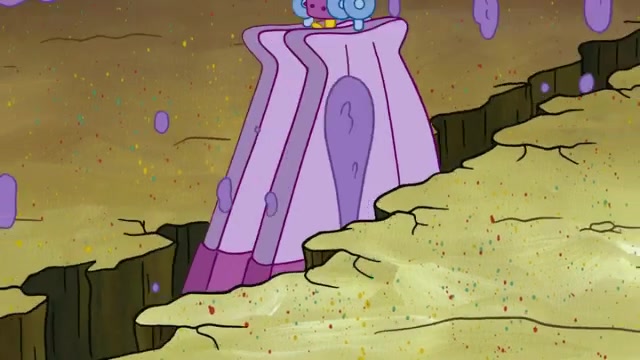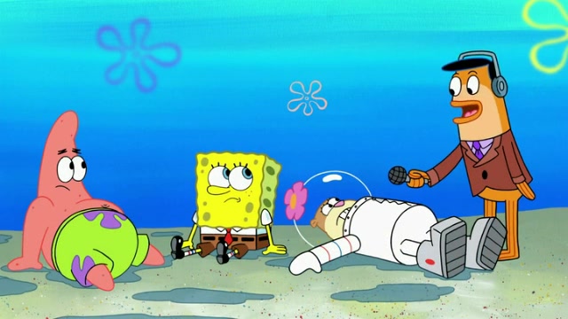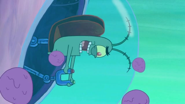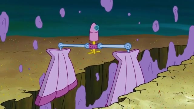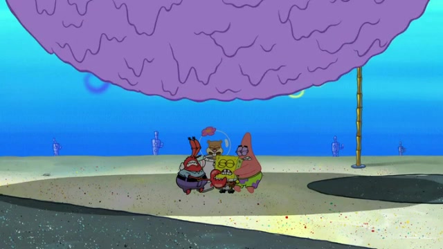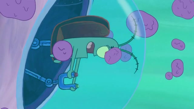 Meanwhile, more bubbles begin to arise from the lagoon, and the Bikini Bottomites begin to use the bubbles, although Sandy said it was dangerous. SpongeBob and Patrick continue to use the goo as bouncy balls. Squidward begins to use the goo as a hairdo. The other citizens continue to use it for their own purposes as well. Perch Perkins begins to report for the Bikini Bottom News with Johnny. He states how the gooey Mucus Bubbles are popular at Goo Lagoon. While on the air, Sandy, now going partly insane with her theory, says how the bubbles were dangerous again. Everybody still thinks she is wrong, but soon she will be right. Plankton continues on his quest to find the ultimate Mucus Bubble in his ship. He is set to find the crack at any cost. Soon, he finds it. Plankton, as well as Karen, widen the crack, and unleash the largest Mucus Bubble. It rises out of Goo Lagoon, and everybody now agrees with Sandy.