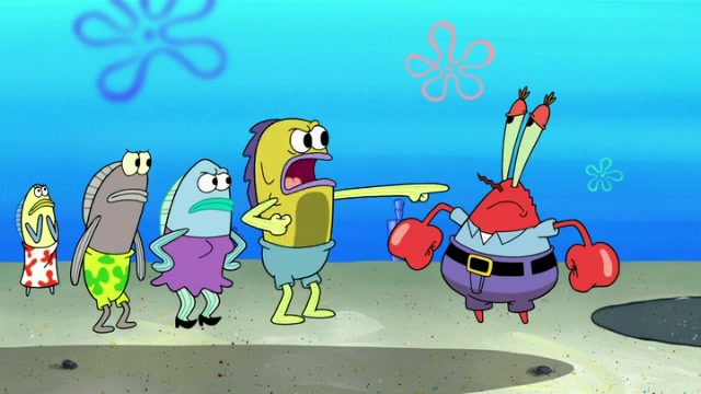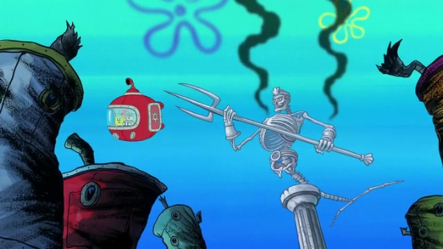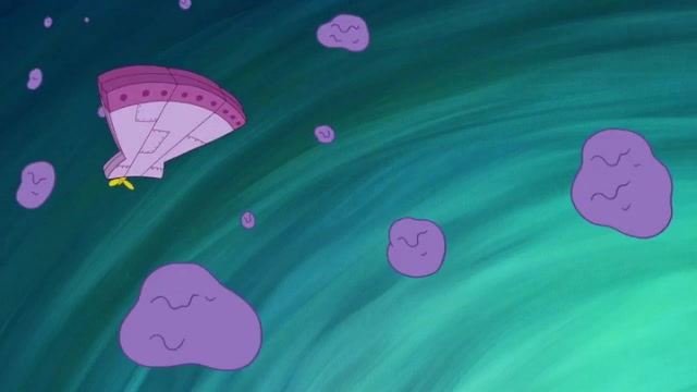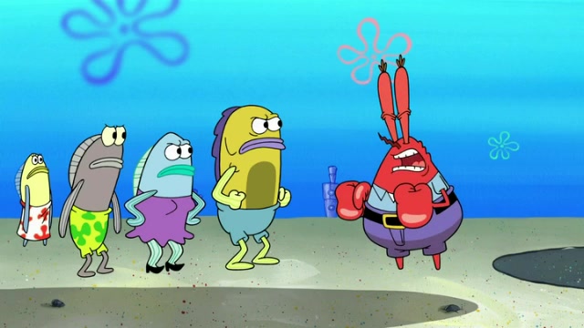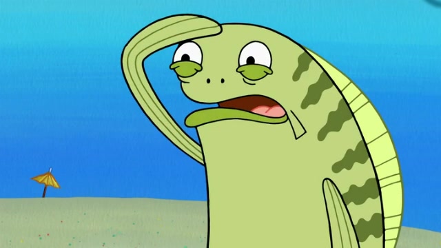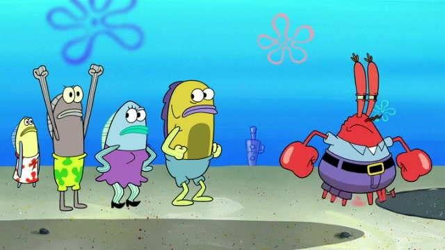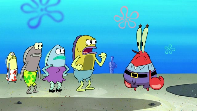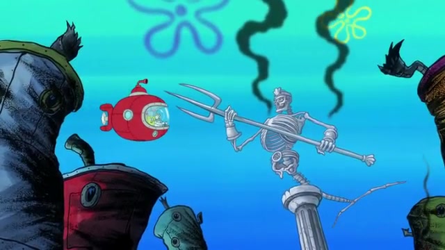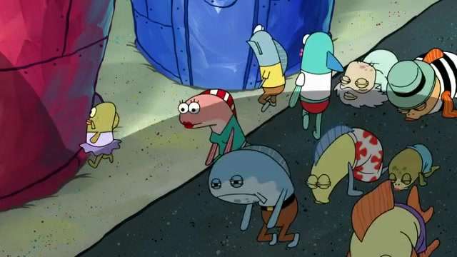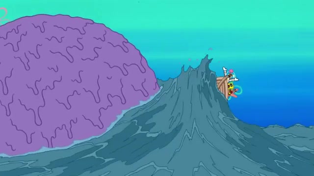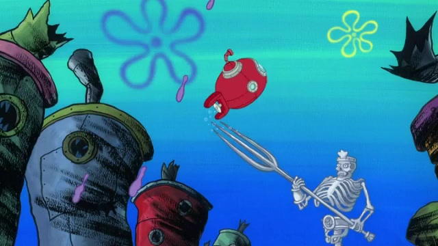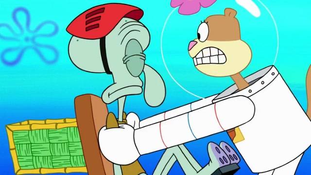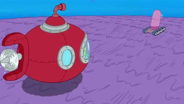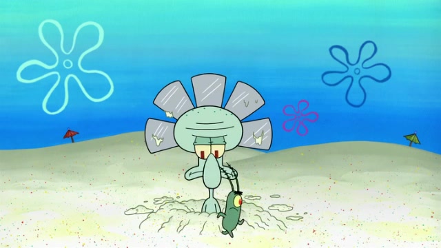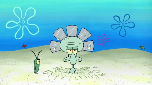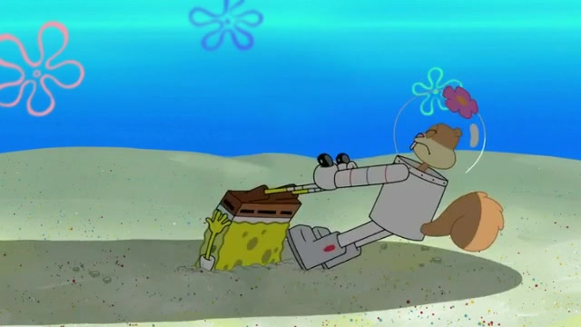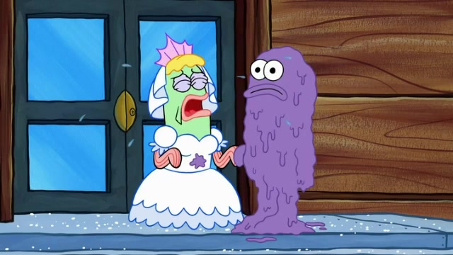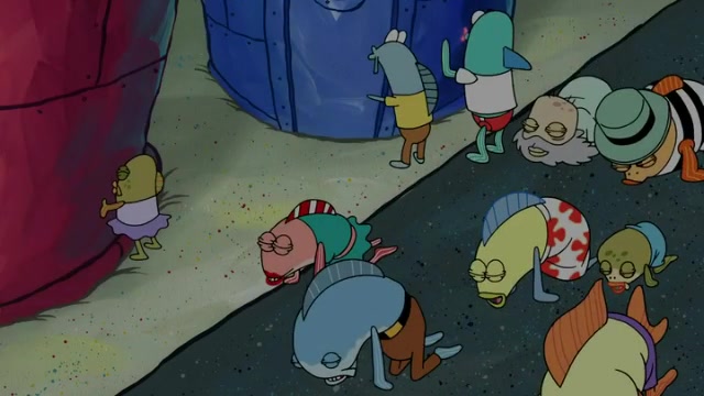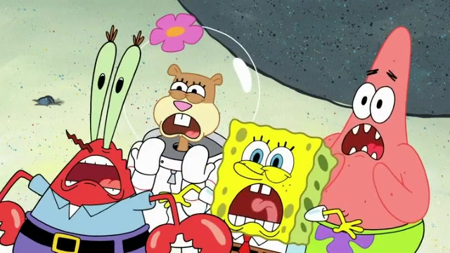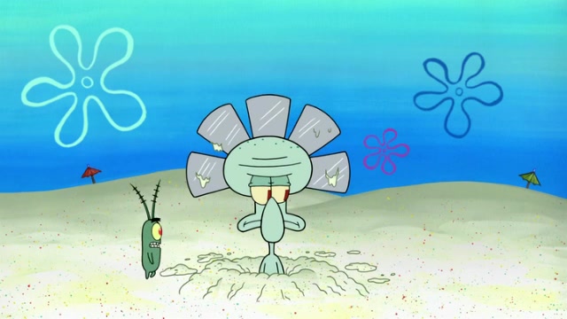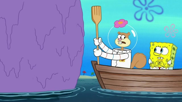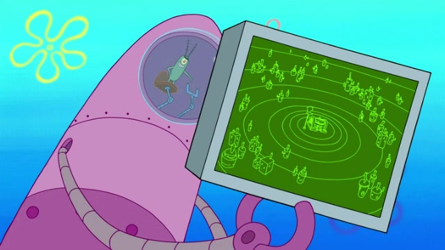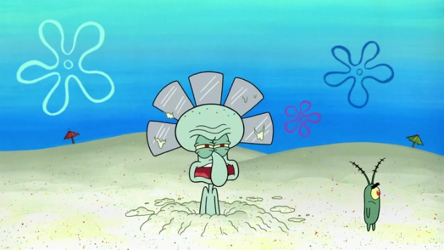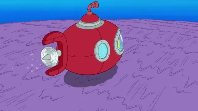 Meanwhile, more bubbles begin to arise from the lagoon, and the Bikini Bottomites begin to use the bubbles, although Sandy said it was dangerous. SpongeBob and Patrick continue to use the goo as bouncy balls. Squidward begins to use the goo as a hairdo. The other citizens continue to use it for their own purposes as well. Perch Perkins begins to report for the Bikini Bottom News with Johnny. He states how the gooey Mucus Bubbles are popular at Goo Lagoon. While on the air, Sandy, now going partly insane with her theory, says how the bubbles were dangerous again. Everybody still thinks she is wrong, but soon she will be right. Plankton continues on his quest to find the ultimate Mucus Bubble in his ship. He is set to find the crack at any cost. Soon, he finds it. Plankton, as well as Karen, widen the crack, and unleash the largest Mucus Bubble. It rises out of Goo Lagoon, and everybody now agrees with Sandy.