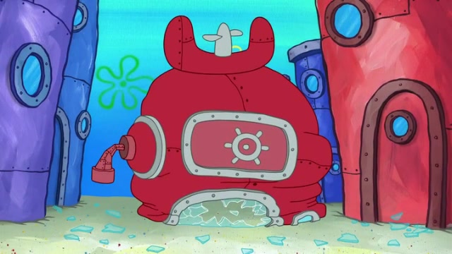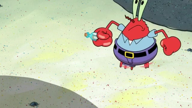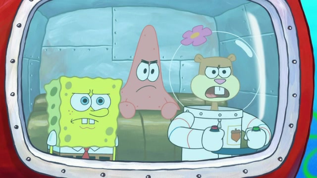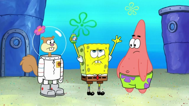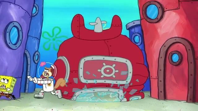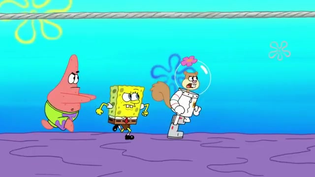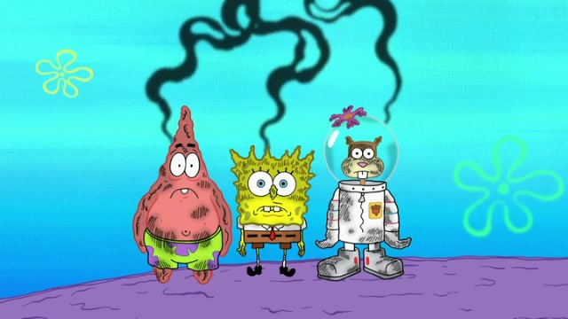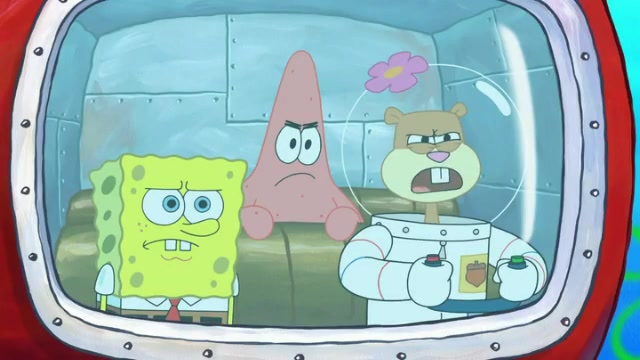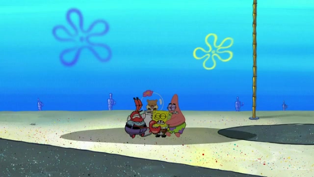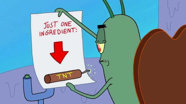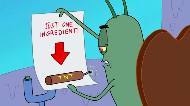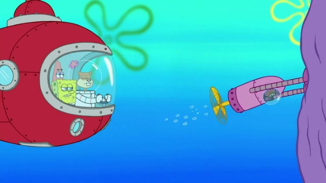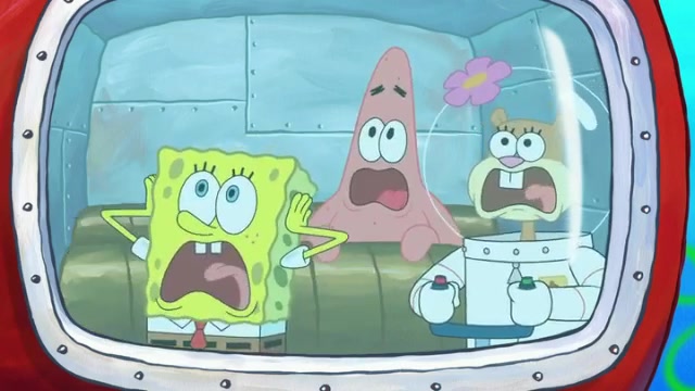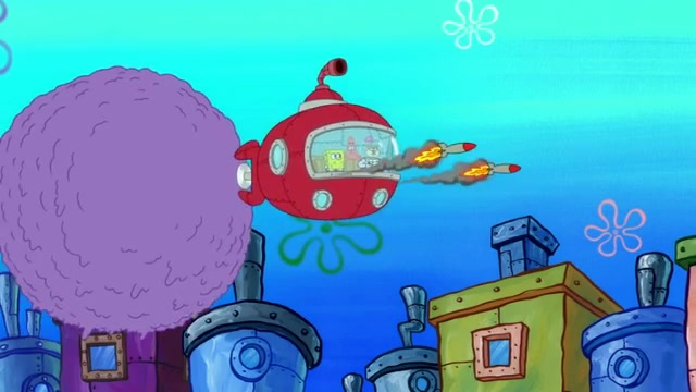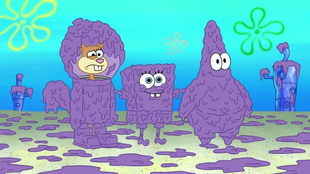 The trio examine the bubble, and realize it is dangerous. They need to stop it with supplies from Sandy's Treedome SpongeBob, Patrick, and Sandy proceed to her treedome. However, Patrick gets sweeped into the bubble, controlled by Plankton. The duo gets into Sandy's submarine at her treedome, then proceeds to save Patrick. They soon find the giant bubble and they tell Patrick to get in the Submarine but Patrick refuses, so they send down a crane to grab Patrick, who is sitting on the goo. Patrick is grabbed into the submarine, and then the three prepare themselves to stop the bubble. They soon discover that Plankton is controlling the bubble, after they see his ship. The recently reformed trio pursuit Plankton around the bubble. They oddly catch him seemingly easily. Sadly, Plankton outsmarts the trio and sends them off the bubble. He also destroys Sandy's submarine. The trio then pursue the bubble on foot through downtown Bikini Bottom. They end up at the Krusty Krab. SpongeBob, Patrick, Sandy, many Bikini Bottomites, and Mr. Krabs confront Plankton and the bubble in front of the Krusty Krab and Chum Bucket. Then, they attempt to send the bubble away, and foil Plankton's plan. Their attempts are failures, however. Plankton then demands the Krabby Patty formula or else he will pop the bubble, and coat the entire city in a poisonous goo. Left with a choice of giving up the formula or being chased by an angry mob, Mr. Krabs reluctantly surrenders and gives him the "formula". Plankton outsmarts them again, and pops the bubble anyway. The city is now covered in a poisonous goo. Plankton proceeds to read the "formula " on his ship. It reads, "The Only Ingredient Is... T.N.T."! He realizes the formula is fake while the T.N.T explodes, ruining his plan. Mr. Krabs, covered in goo, thinks everything is back to normal. Sandy corrects him, with the fact that everyone and everything in Bikini Bottom is covered in goo, and says that it is a "disaster." Mr. Krabs makes a plan to clean everybody. He uses soap bubbles to clean everybody and everything in town, while still making a profit.