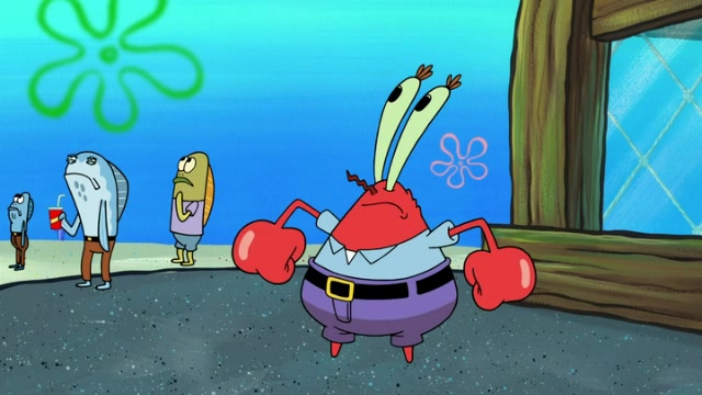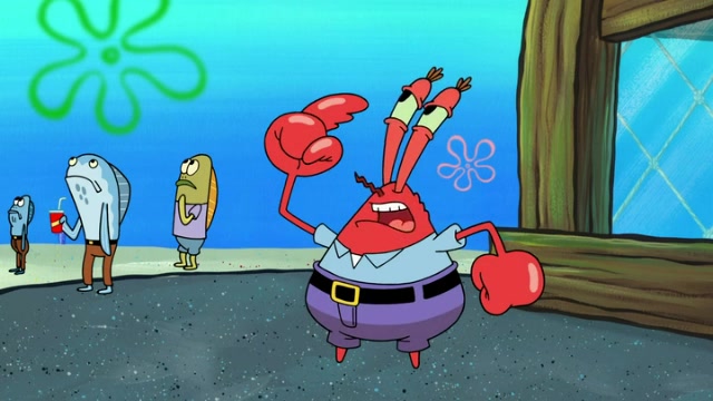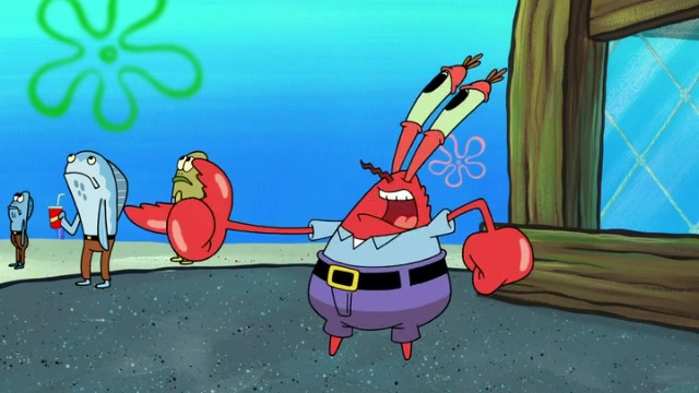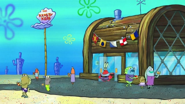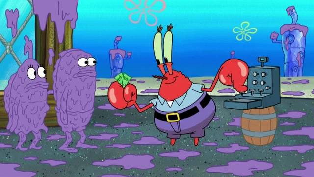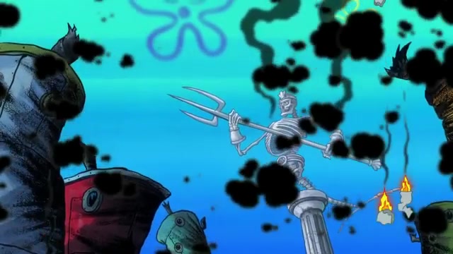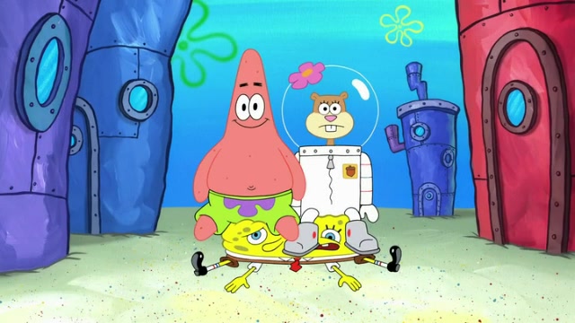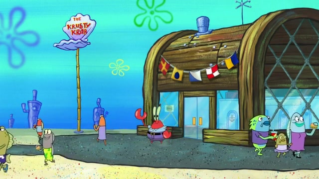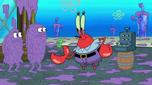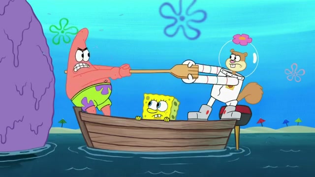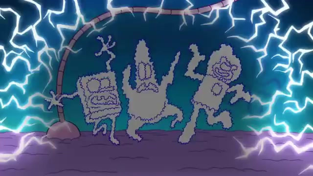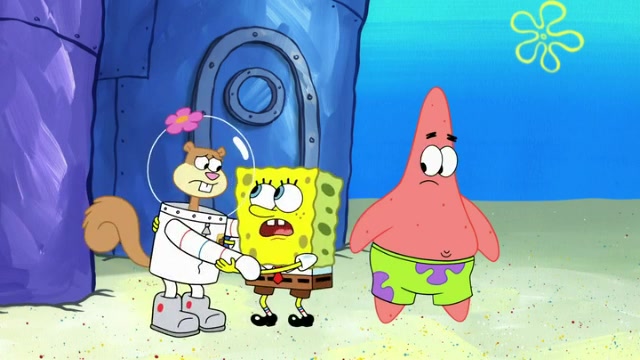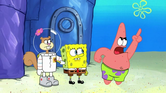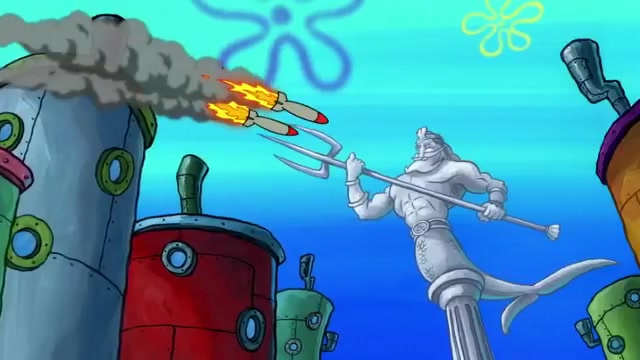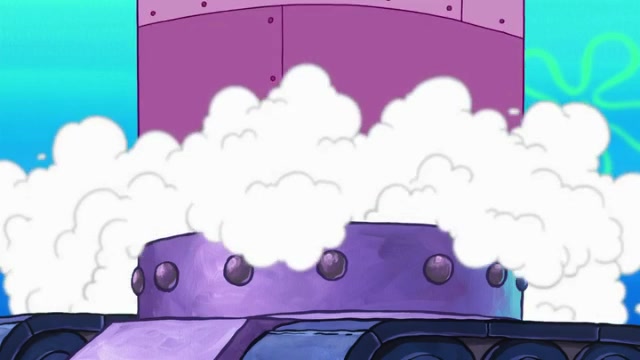 The trio examine the bubble, and realize it is dangerous. They need to stop it with supplies from Sandy's Treedome SpongeBob, Patrick, and Sandy proceed to her treedome. However, Patrick gets sweeped into the bubble, controlled by Plankton. The duo gets into Sandy's submarine at her treedome, then proceeds to save Patrick. They soon find the giant bubble and they tell Patrick to get in the Submarine but Patrick refuses, so they send down a crane to grab Patrick, who is sitting on the goo. Patrick is grabbed into the submarine, and then the three prepare themselves to stop the bubble. They soon discover that Plankton is controlling the bubble, after they see his ship. The recently reformed trio pursuit Plankton around the bubble. They oddly catch him seemingly easily. Sadly, Plankton outsmarts the trio and sends them off the bubble. He also destroys Sandy's submarine. The trio then pursue the bubble on foot through downtown Bikini Bottom. They end up at the Krusty Krab. SpongeBob, Patrick, Sandy, many Bikini Bottomites, and Mr. Krabs confront Plankton and the bubble in front of the Krusty Krab and Chum Bucket. Then, they attempt to send the bubble away, and foil Plankton's plan. Their attempts are failures, however. Plankton then demands the Krabby Patty formula or else he will pop the bubble, and coat the entire city in a poisonous goo. Left with a choice of giving up the formula or being chased by an angry mob, Mr. Krabs reluctantly surrenders and gives him the "formula". Plankton outsmarts them again, and pops the bubble anyway. The city is now covered in a poisonous goo. Plankton proceeds to read the "formula " on his ship. It reads, "The Only Ingredient Is... T.N.T."! He realizes the formula is fake while the T.N.T explodes, ruining his plan. Mr. Krabs, covered in goo, thinks everything is back to normal. Sandy corrects him, with the fact that everyone and everything in Bikini Bottom is covered in goo, and says that it is a "disaster." Mr. Krabs makes a plan to clean everybody. He uses soap bubbles to clean everybody and everything in town, while still making a profit.