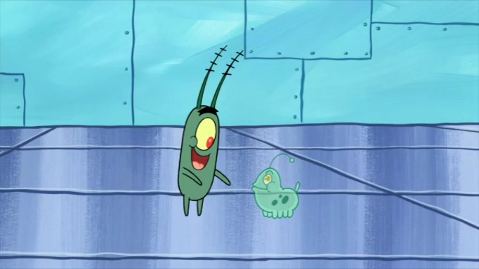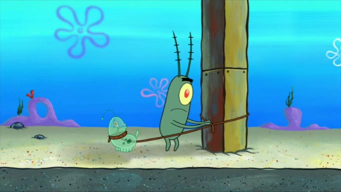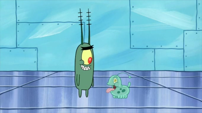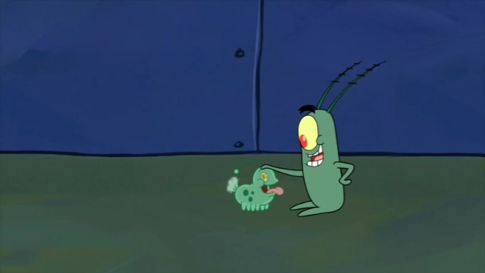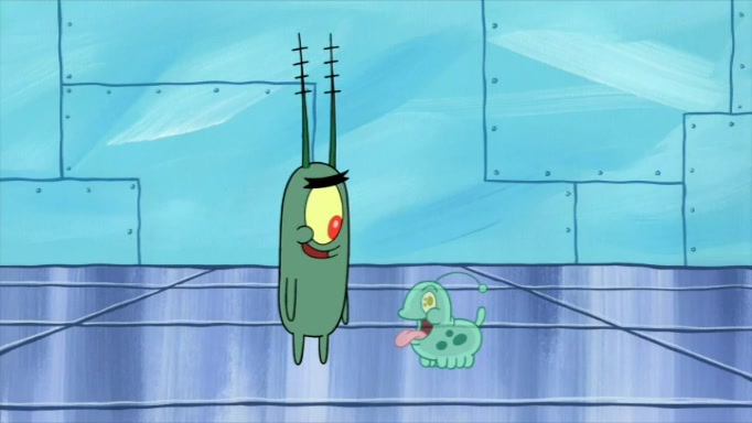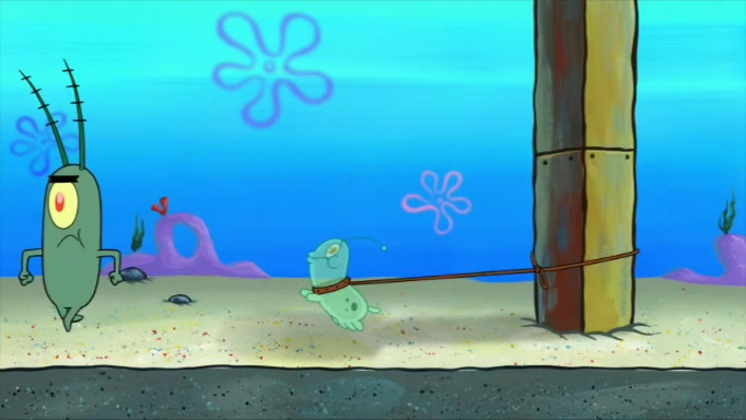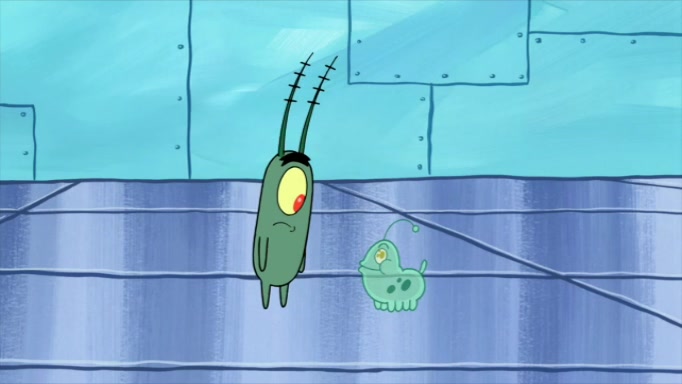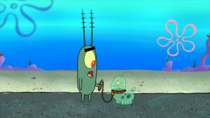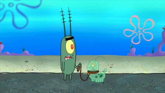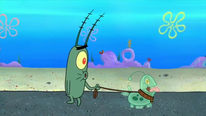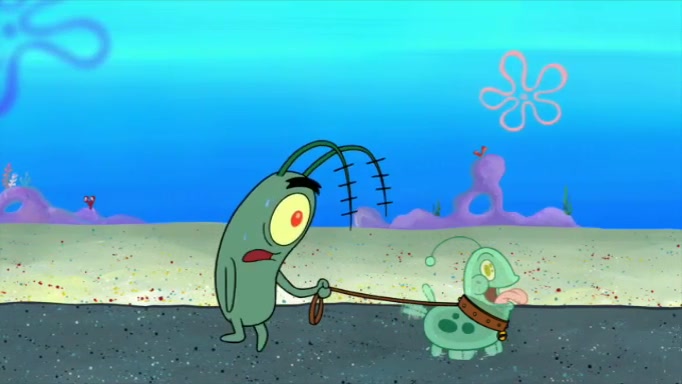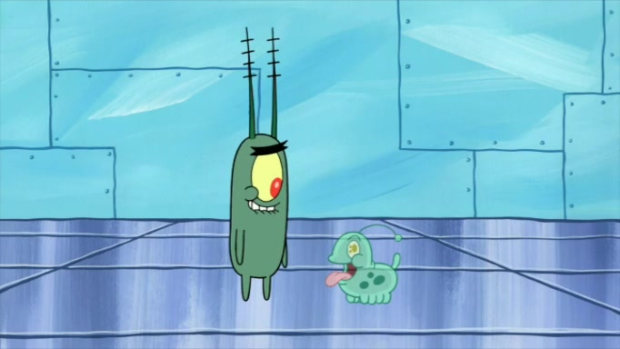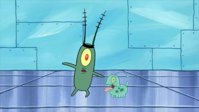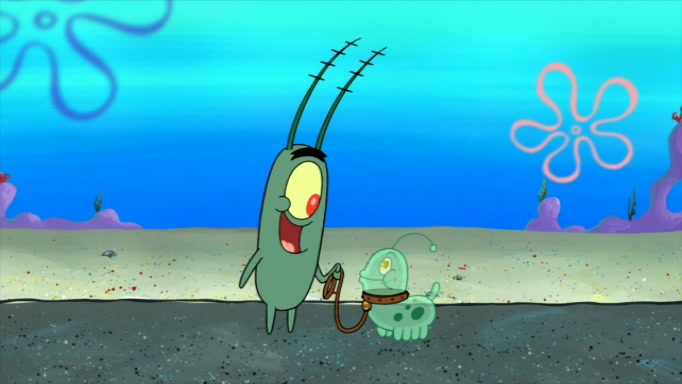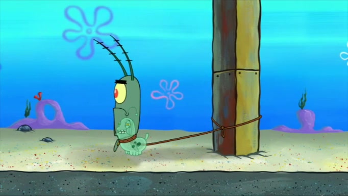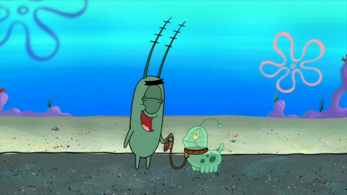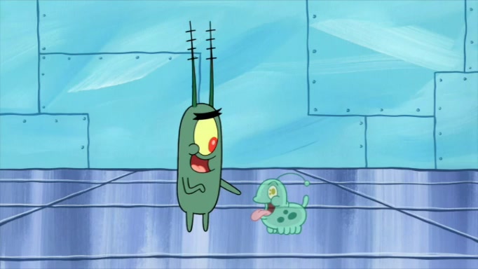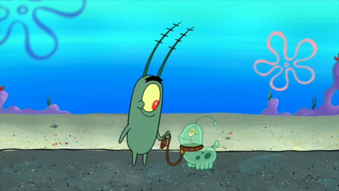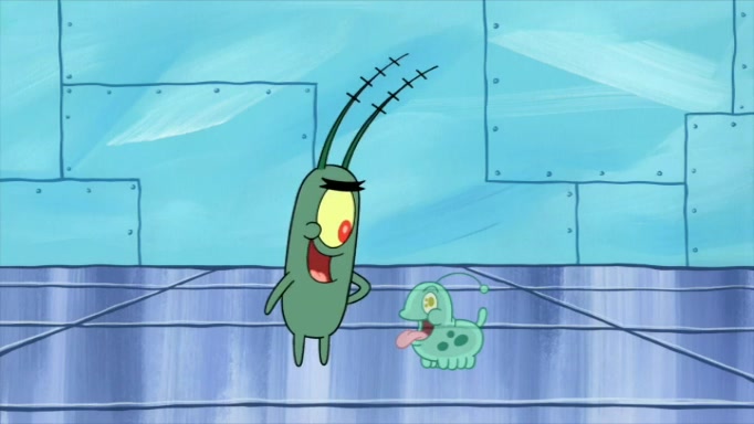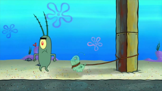 The episode begins in the Krusty Krab where a man gets a Krabby Patty, but then a baby comes and takes the Krabby Patty. Everyone thought it was cute, thinking it was a real baby, but Mr. Krabs was able to see Plankton inside the baby. Mr. Krabs started beating him up, but because everybody still thought it was a real baby, they were all outraged. Then Mr. Krabs ripped off the head revealing Plankton inside a baby robot. Mr. Krabs put the head back on and launched him back to the Chum Bucket and Karen then took off the diaper and put it in the trash where Plankton walks out. Karen told him that he should get a pet and SpongeBob, who just happened to hear their conversation, decided to help him look for a pet. At the animal shelter, Plankton sees a guard worm, an old gross snail, and even Patrick. Plankton almost gets swallowed by a pet. Then an amoeba saves his life. Plankton chooses the amoeba as his pet and decides to call him Spot. At the Chum Bucket, Plankton teaches Spot some tricks like stay, sit, and roll over. Then he teaches him how to steal a Krabby Patty. Plankton wasn't finished talking when Spot left to the Krusty Krab unseen to get a Krabby Patty. When Spot comes back, Plankton is rapt, thinking he finally won but is then enraged when Spot eats the krabby patty in one bite. He punishes Spot by tying his leash to the mailbox. Seconds later, Plankton feels bad, but when he runs back outside he finds Spot's leash, with no amoeba to be seen. Plankton then goes out to find him, with SpongeBob's help. Soon they stumble upon the shelter, then go inside. It is very dark inside so SpongeBob tries to find the light switch. There are 2 switches, so SpongeBob turns on both. One turns on the lights, and the other opened the pens. The guard worm, sea monkey, and sea urchin all chase SpongeBob and Plankton. When they lose the animals, Plankton realizes Spot had been on his optical cornea (his eye) the whole time. The other pets then find Plankton and SpongeBob again so Spot tries to scare them off. The animals laugh at Spot because he's so small but then he grows about a hundred times bigger and easily scares the animals away. Plankton then decides he is going to keep Spot and was sorry he yelled at him.