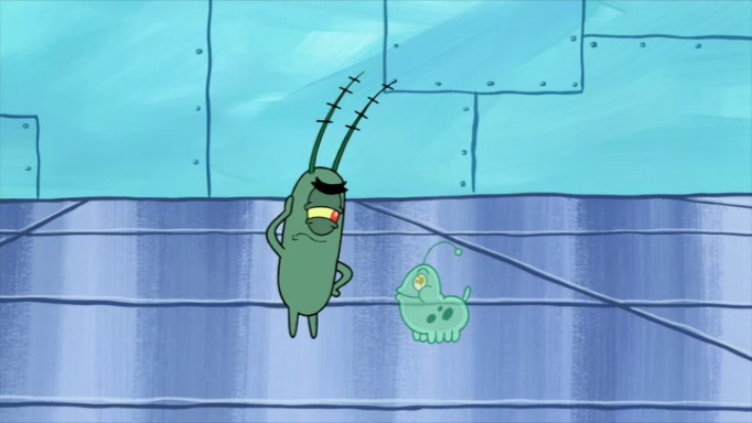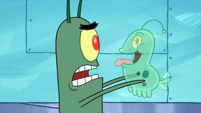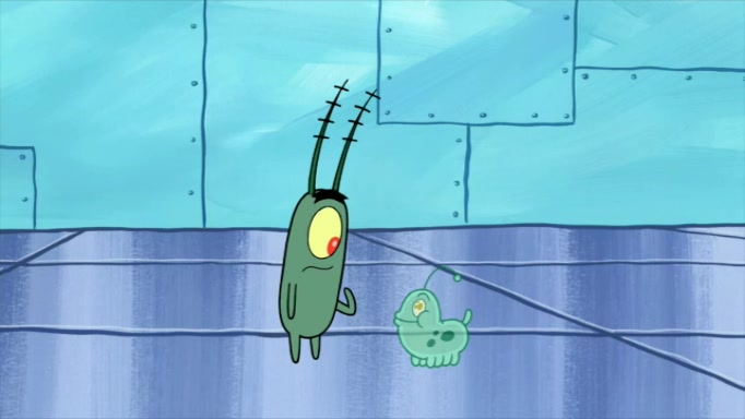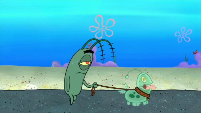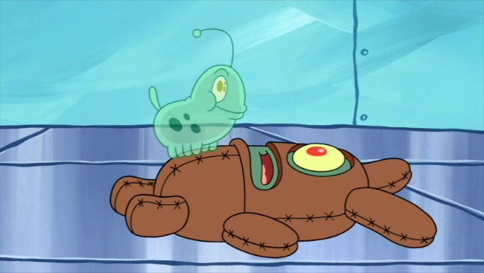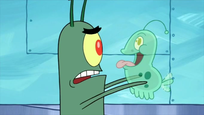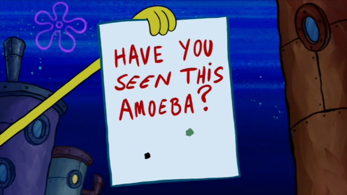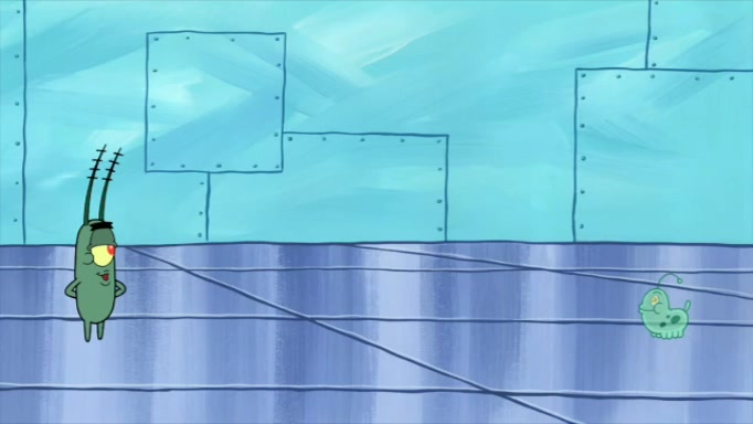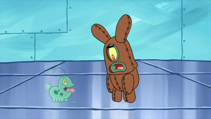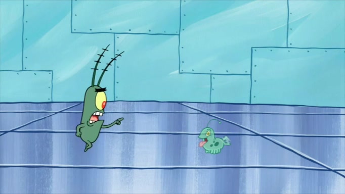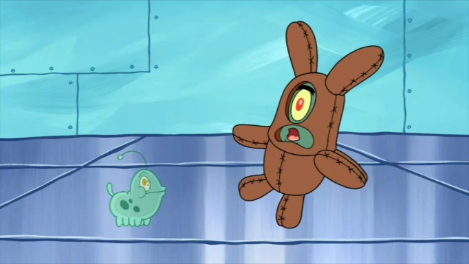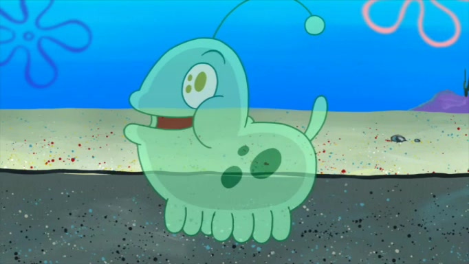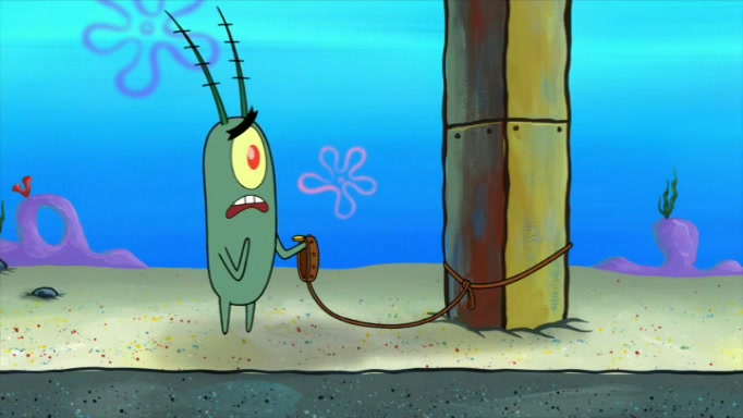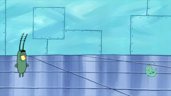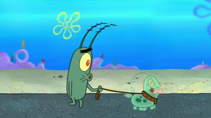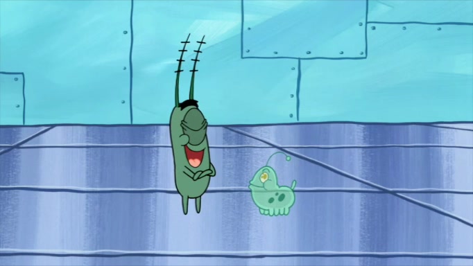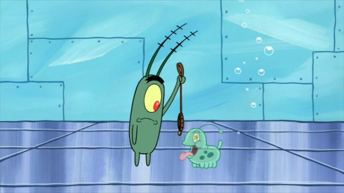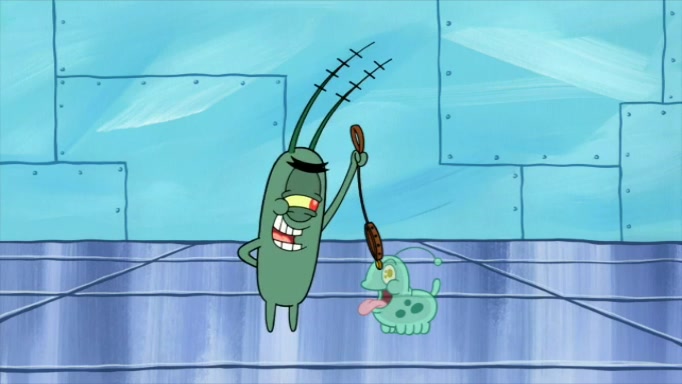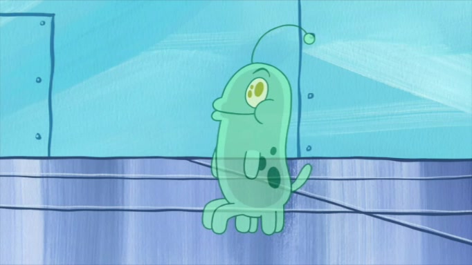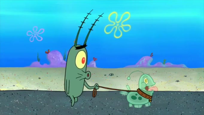 The episode begins in the Krusty Krab where a man gets a Krabby Patty, but then a baby comes and takes the Krabby Patty. Everyone thought it was cute, thinking it was a real baby, but Mr. Krabs was able to see Plankton inside the baby. Mr. Krabs started beating him up, but because everybody still thought it was a real baby, they were all outraged. Then Mr. Krabs ripped off the head revealing Plankton inside a baby robot. Mr. Krabs put the head back on and launched him back to the Chum Bucket and Karen then took off the diaper and put it in the trash where Plankton walks out. Karen told him that he should get a pet and SpongeBob, who just happened to hear their conversation, decided to help him look for a pet. At the animal shelter, Plankton sees a guard worm, an old gross snail, and even Patrick. Plankton almost gets swallowed by a pet. Then an amoeba saves his life. Plankton chooses the amoeba as his pet and decides to call him Spot. At the Chum Bucket, Plankton teaches Spot some tricks like stay, sit, and roll over. Then he teaches him how to steal a Krabby Patty. Plankton wasn't finished talking when Spot left to the Krusty Krab unseen to get a Krabby Patty. When Spot comes back, Plankton is rapt, thinking he finally won but is then enraged when Spot eats the krabby patty in one bite. He punishes Spot by tying his leash to the mailbox. Seconds later, Plankton feels bad, but when he runs back outside he finds Spot's leash, with no amoeba to be seen. Plankton then goes out to find him, with SpongeBob's help. Soon they stumble upon the shelter, then go inside. It is very dark inside so SpongeBob tries to find the light switch. There are 2 switches, so SpongeBob turns on both. One turns on the lights, and the other opened the pens. The guard worm, sea monkey, and sea urchin all chase SpongeBob and Plankton. When they lose the animals, Plankton realizes Spot had been on his optical cornea (his eye) the whole time. The other pets then find Plankton and SpongeBob again so Spot tries to scare them off. The animals laugh at Spot because he's so small but then he grows about a hundred times bigger and easily scares the animals away. Plankton then decides he is going to keep Spot and was sorry he yelled at him.