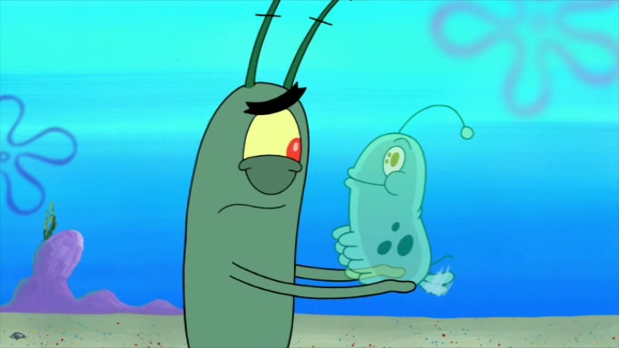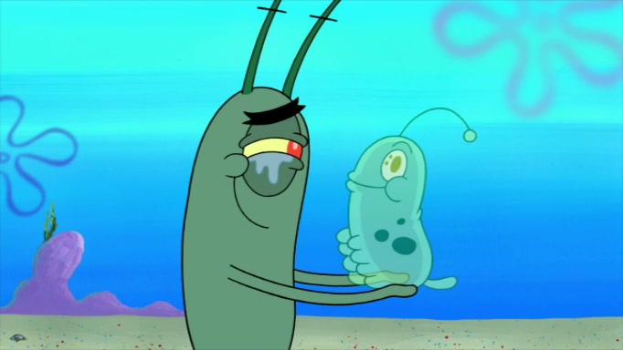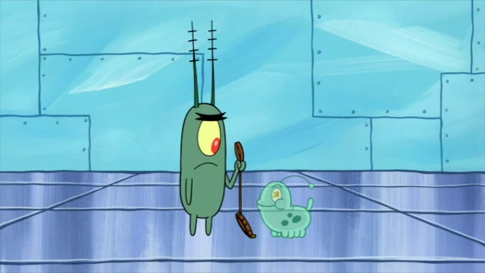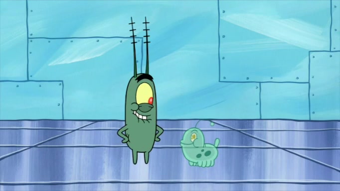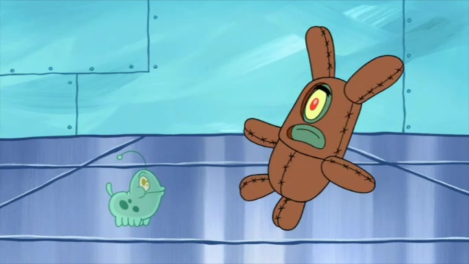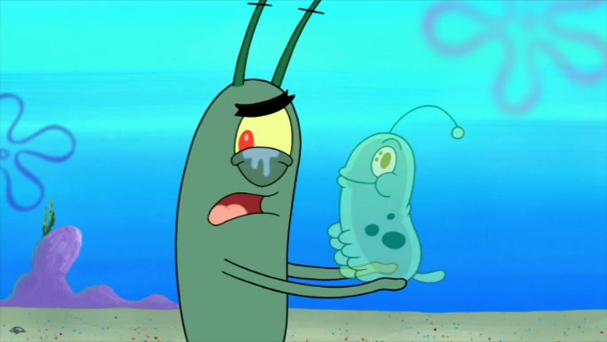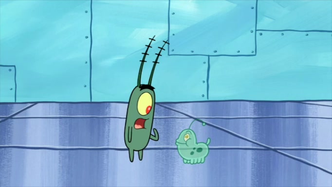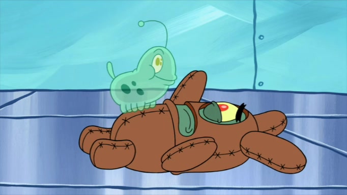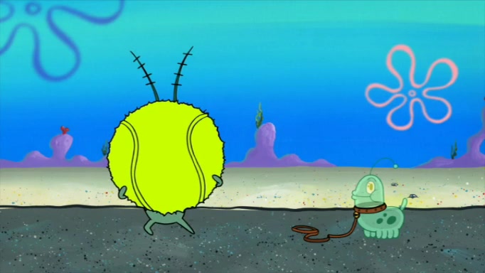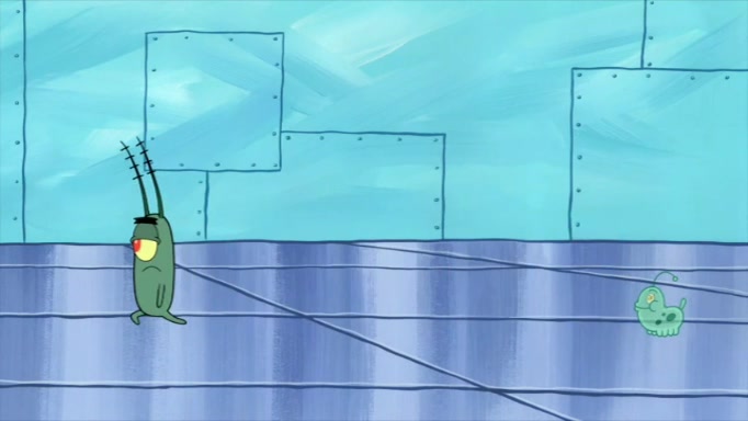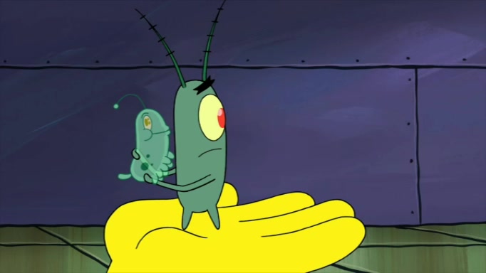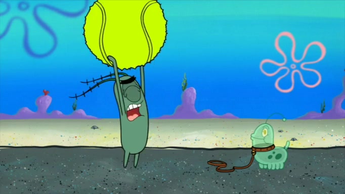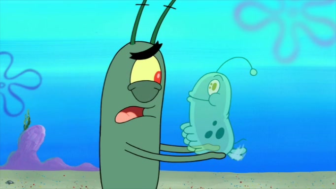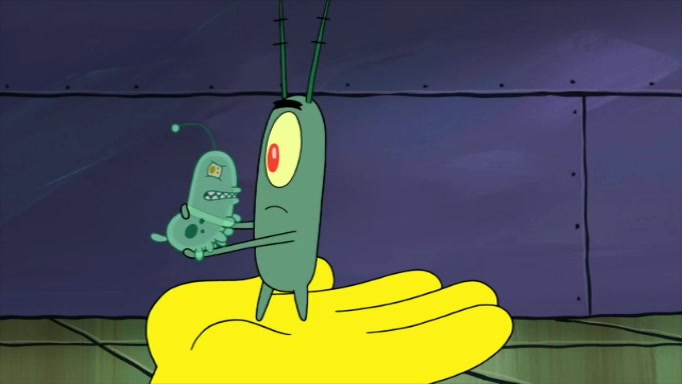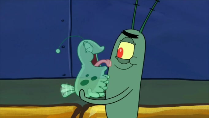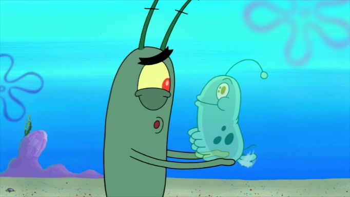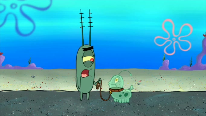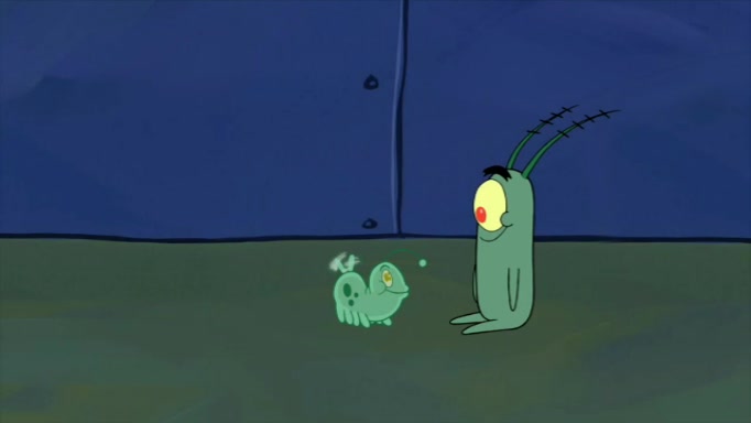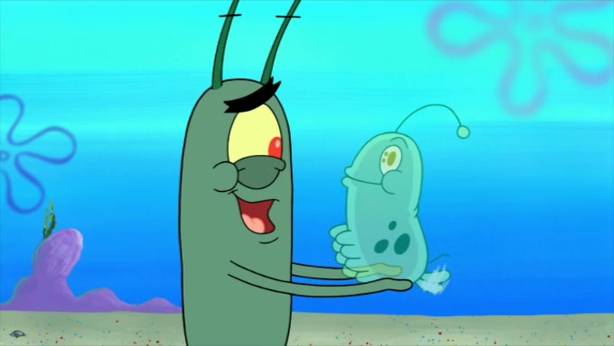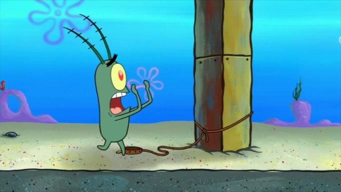 The episode begins in the Krusty Krab where a man gets a Krabby Patty, but then a baby comes and takes the Krabby Patty. Everyone thought it was cute, thinking it was a real baby, but Mr. Krabs was able to see Plankton inside the baby. Mr. Krabs started beating him up, but because everybody still thought it was a real baby, they were all outraged. Then Mr. Krabs ripped off the head revealing Plankton inside a baby robot. Mr. Krabs put the head back on and launched him back to the Chum Bucket and Karen then took off the diaper and put it in the trash where Plankton walks out. Karen told him that he should get a pet and SpongeBob, who just happened to hear their conversation, decided to help him look for a pet. At the animal shelter, Plankton sees a guard worm, an old gross snail, and even Patrick. Plankton almost gets swallowed by a pet. Then an amoeba saves his life. Plankton chooses the amoeba as his pet and decides to call him Spot. At the Chum Bucket, Plankton teaches Spot some tricks like stay, sit, and roll over. Then he teaches him how to steal a Krabby Patty. Plankton wasn't finished talking when Spot left to the Krusty Krab unseen to get a Krabby Patty. When Spot comes back, Plankton is rapt, thinking he finally won but is then enraged when Spot eats the krabby patty in one bite. He punishes Spot by tying his leash to the mailbox. Seconds later, Plankton feels bad, but when he runs back outside he finds Spot's leash, with no amoeba to be seen. Plankton then goes out to find him, with SpongeBob's help. Soon they stumble upon the shelter, then go inside. It is very dark inside so SpongeBob tries to find the light switch. There are 2 switches, so SpongeBob turns on both. One turns on the lights, and the other opened the pens. The guard worm, sea monkey, and sea urchin all chase SpongeBob and Plankton. When they lose the animals, Plankton realizes Spot had been on his optical cornea (his eye) the whole time. The other pets then find Plankton and SpongeBob again so Spot tries to scare them off. The animals laugh at Spot because he's so small but then he grows about a hundred times bigger and easily scares the animals away. Plankton then decides he is going to keep Spot and was sorry he yelled at him.