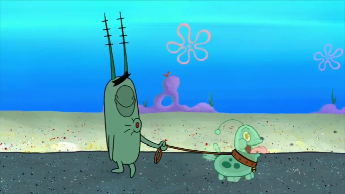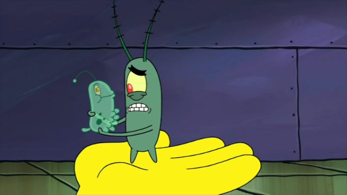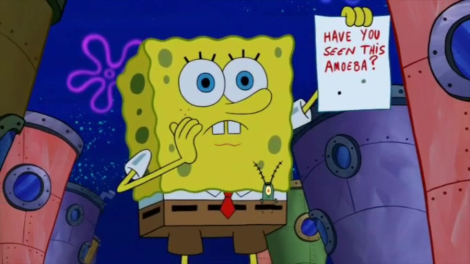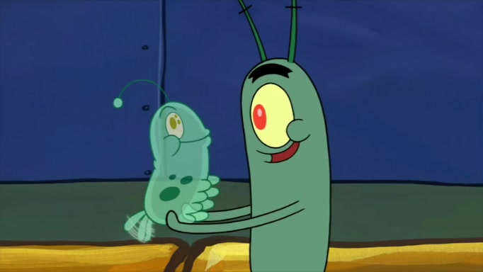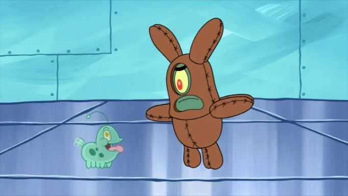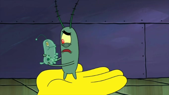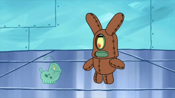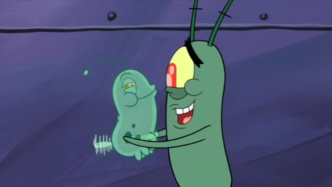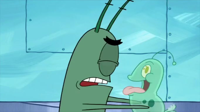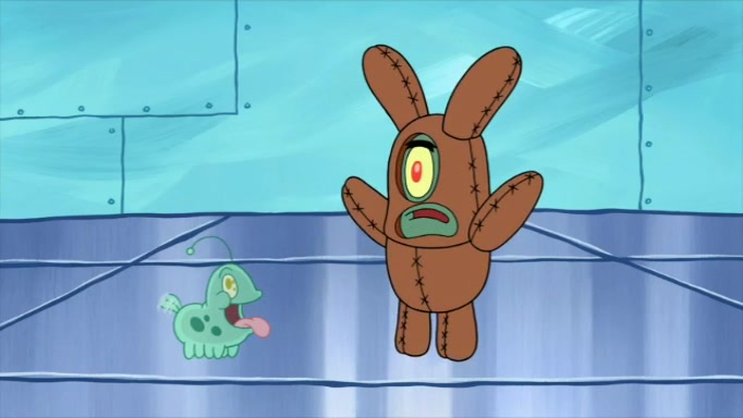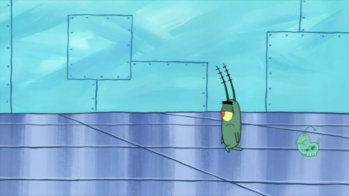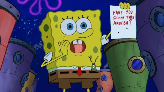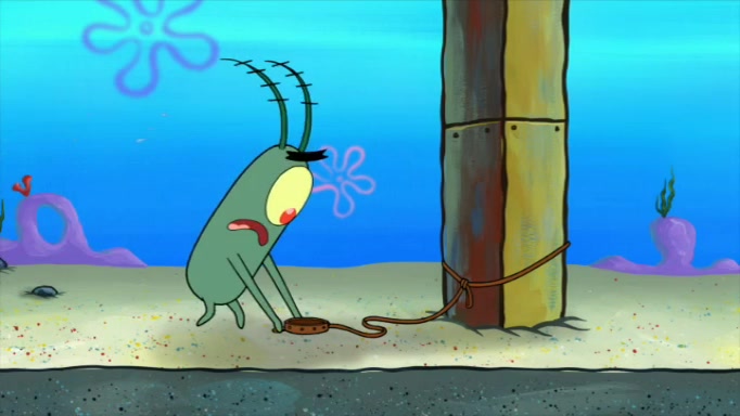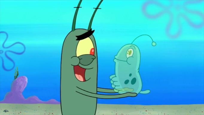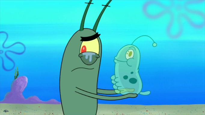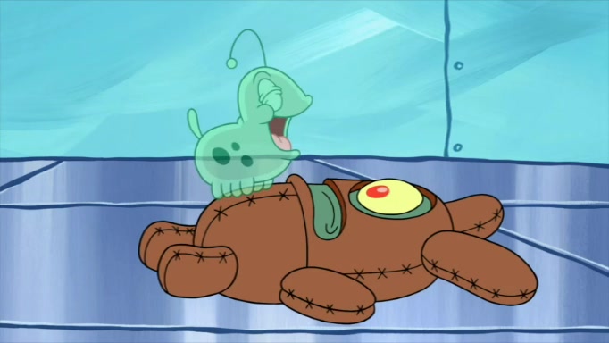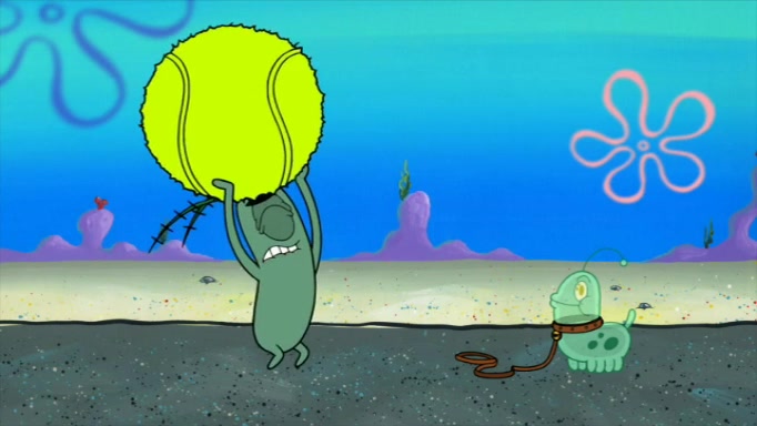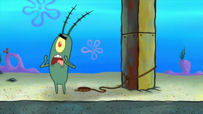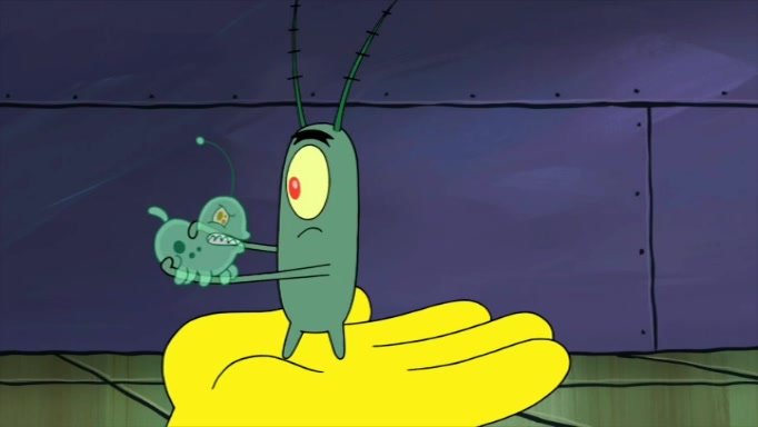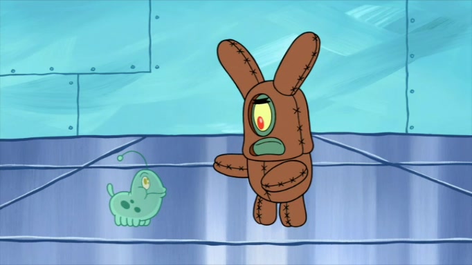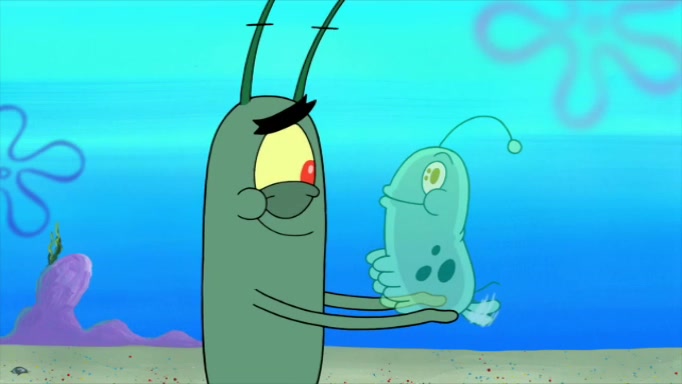 The episode begins in the Krusty Krab where a man gets a Krabby Patty, but then a baby comes and takes the Krabby Patty. Everyone thought it was cute, thinking it was a real baby, but Mr. Krabs was able to see Plankton inside the baby. Mr. Krabs started beating him up, but because everybody still thought it was a real baby, they were all outraged. Then Mr. Krabs ripped off the head revealing Plankton inside a baby robot. Mr. Krabs put the head back on and launched him back to the Chum Bucket and Karen then took off the diaper and put it in the trash where Plankton walks out. Karen told him that he should get a pet and SpongeBob, who just happened to hear their conversation, decided to help him look for a pet. At the animal shelter, Plankton sees a guard worm, an old gross snail, and even Patrick. Plankton almost gets swallowed by a pet. Then an amoeba saves his life. Plankton chooses the amoeba as his pet and decides to call him Spot. At the Chum Bucket, Plankton teaches Spot some tricks like stay, sit, and roll over. Then he teaches him how to steal a Krabby Patty. Plankton wasn't finished talking when Spot left to the Krusty Krab unseen to get a Krabby Patty. When Spot comes back, Plankton is rapt, thinking he finally won but is then enraged when Spot eats the krabby patty in one bite. He punishes Spot by tying his leash to the mailbox. Seconds later, Plankton feels bad, but when he runs back outside he finds Spot's leash, with no amoeba to be seen. Plankton then goes out to find him, with SpongeBob's help. Soon they stumble upon the shelter, then go inside. It is very dark inside so SpongeBob tries to find the light switch. There are 2 switches, so SpongeBob turns on both. One turns on the lights, and the other opened the pens. The guard worm, sea monkey, and sea urchin all chase SpongeBob and Plankton. When they lose the animals, Plankton realizes Spot had been on his optical cornea (his eye) the whole time. The other pets then find Plankton and SpongeBob again so Spot tries to scare them off. The animals laugh at Spot because he's so small but then he grows about a hundred times bigger and easily scares the animals away. Plankton then decides he is going to keep Spot and was sorry he yelled at him.