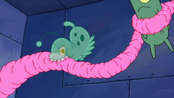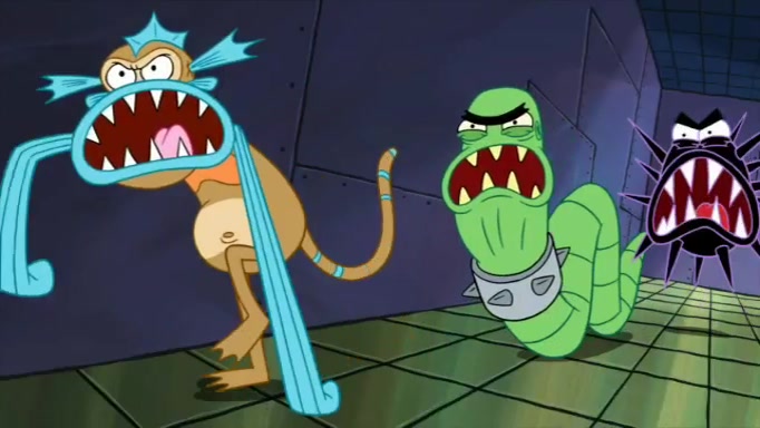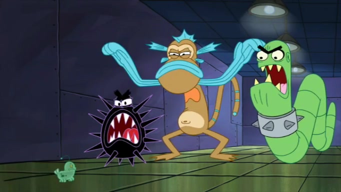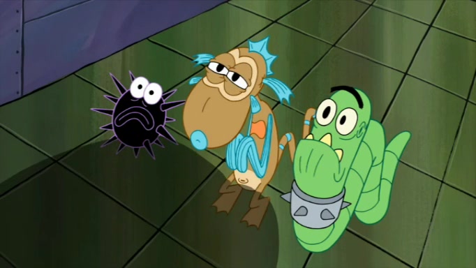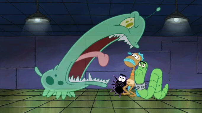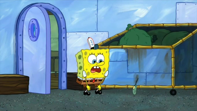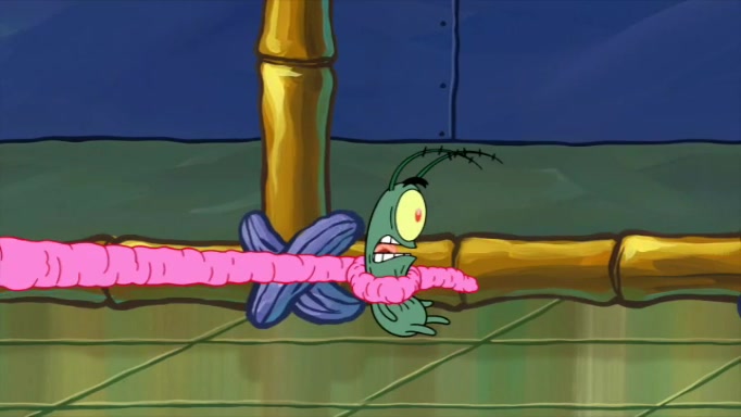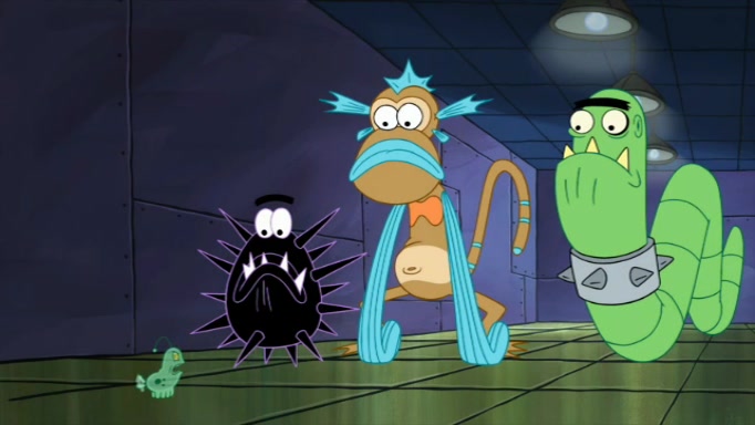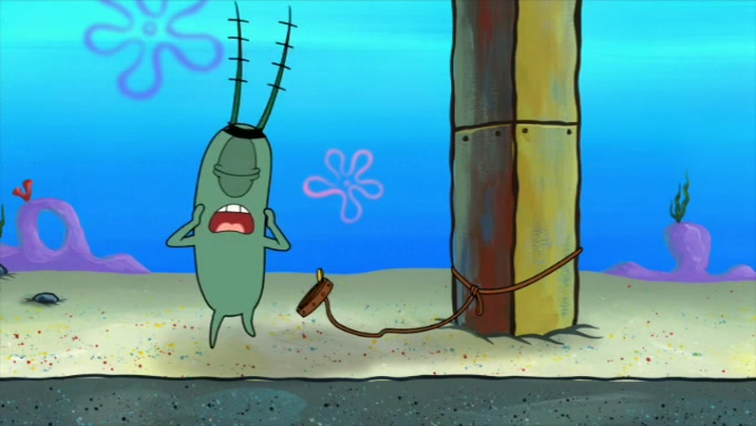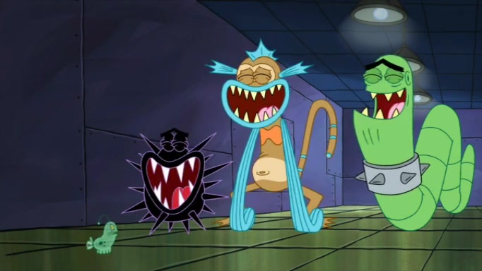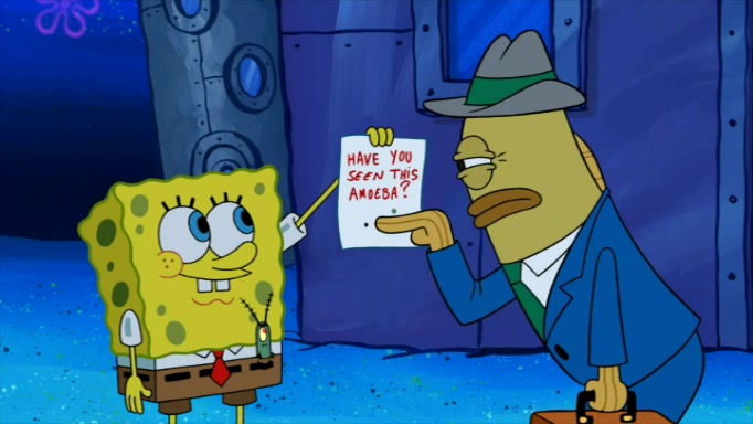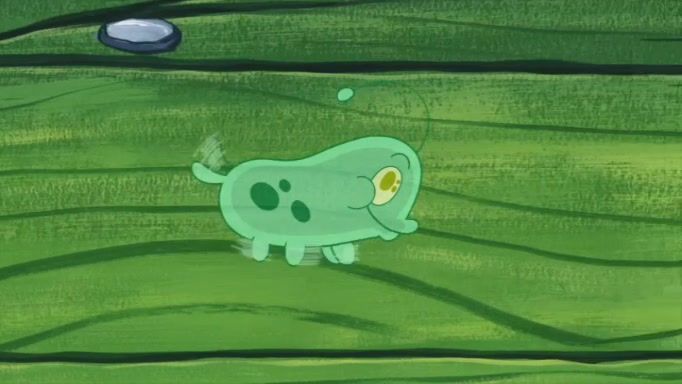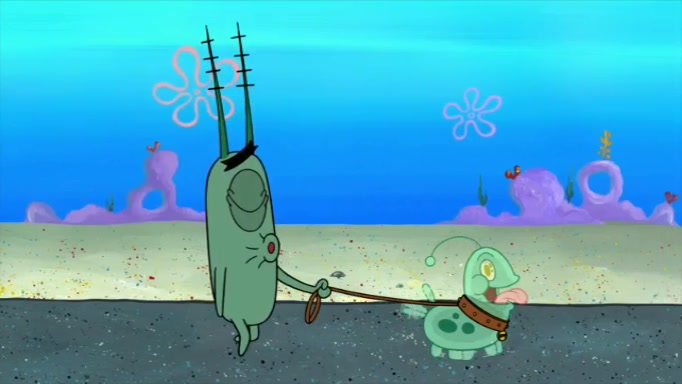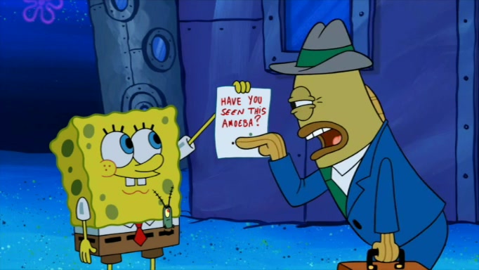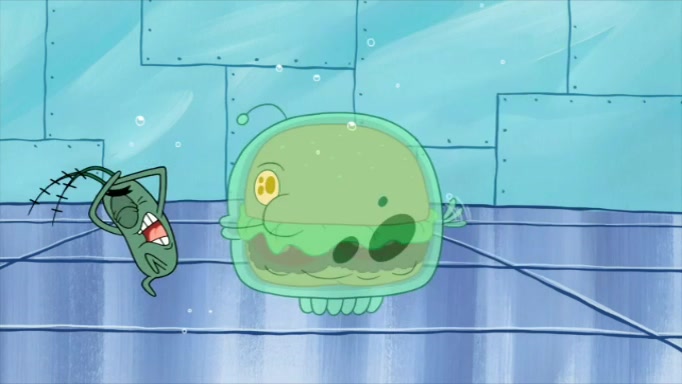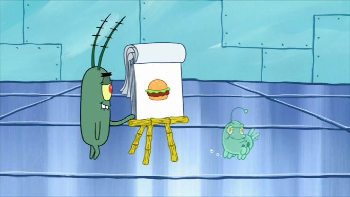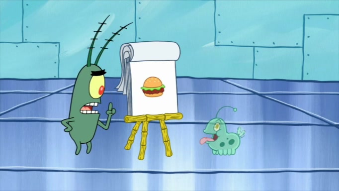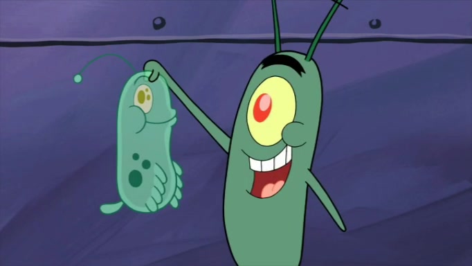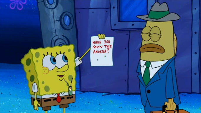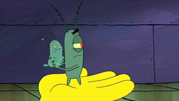 The episode begins in the Krusty Krab where a man gets a Krabby Patty, but then a baby comes and takes the Krabby Patty. Everyone thought it was cute, thinking it was a real baby, but Mr. Krabs was able to see Plankton inside the baby. Mr. Krabs started beating him up, but because everybody still thought it was a real baby, they were all outraged. Then Mr. Krabs ripped off the head revealing Plankton inside a baby robot. Mr. Krabs put the head back on and launched him back to the Chum Bucket and Karen then took off the diaper and put it in the trash where Plankton walks out. Karen told him that he should get a pet and SpongeBob, who just happened to hear their conversation, decided to help him look for a pet. At the animal shelter, Plankton sees a guard worm, an old gross snail, and even Patrick. Plankton almost gets swallowed by a pet. Then an amoeba saves his life. Plankton chooses the amoeba as his pet and decides to call him Spot. At the Chum Bucket, Plankton teaches Spot some tricks like stay, sit, and roll over. Then he teaches him how to steal a Krabby Patty. Plankton wasn't finished talking when Spot left to the Krusty Krab unseen to get a Krabby Patty. When Spot comes back, Plankton is rapt, thinking he finally won but is then enraged when Spot eats the krabby patty in one bite. He punishes Spot by tying his leash to the mailbox. Seconds later, Plankton feels bad, but when he runs back outside he finds Spot's leash, with no amoeba to be seen. Plankton then goes out to find him, with SpongeBob's help. Soon they stumble upon the shelter, then go inside. It is very dark inside so SpongeBob tries to find the light switch. There are 2 switches, so SpongeBob turns on both. One turns on the lights, and the other opened the pens. The guard worm, sea monkey, and sea urchin all chase SpongeBob and Plankton. When they lose the animals, Plankton realizes Spot had been on his optical cornea (his eye) the whole time. The other pets then find Plankton and SpongeBob again so Spot tries to scare them off. The animals laugh at Spot because he's so small but then he grows about a hundred times bigger and easily scares the animals away. Plankton then decides he is going to keep Spot and was sorry he yelled at him.