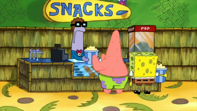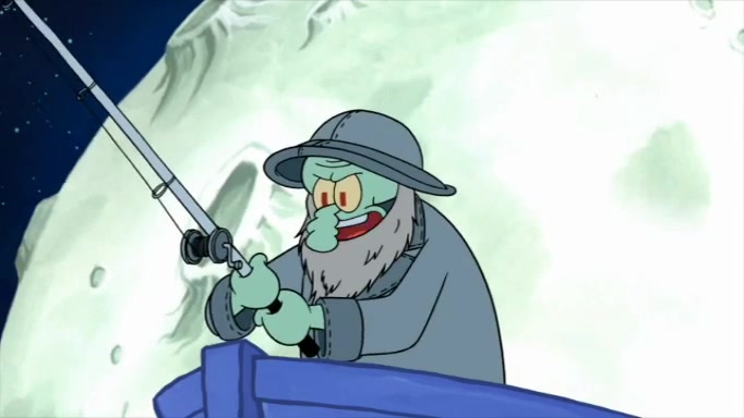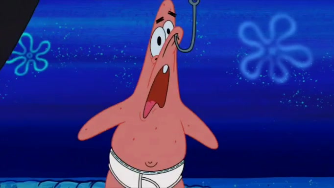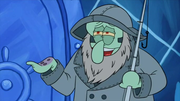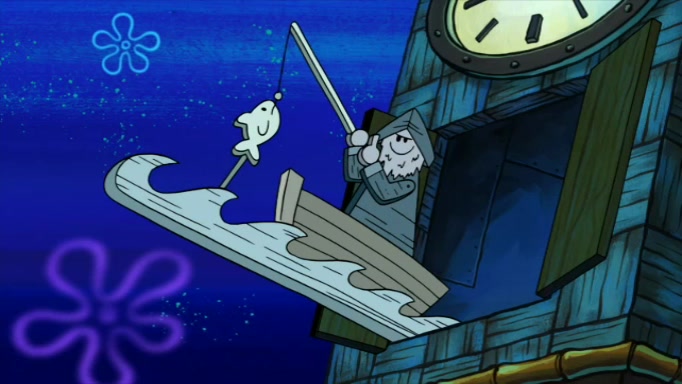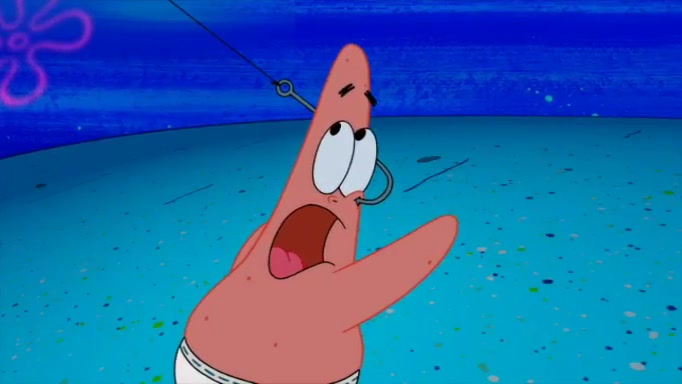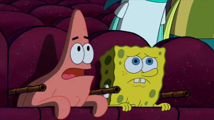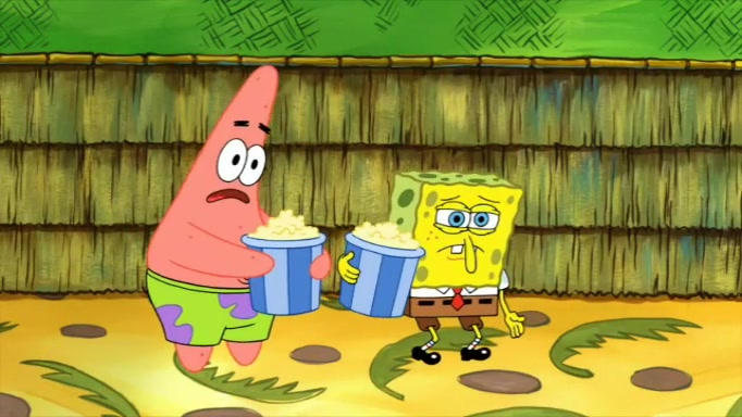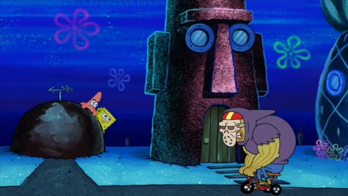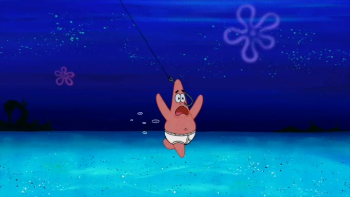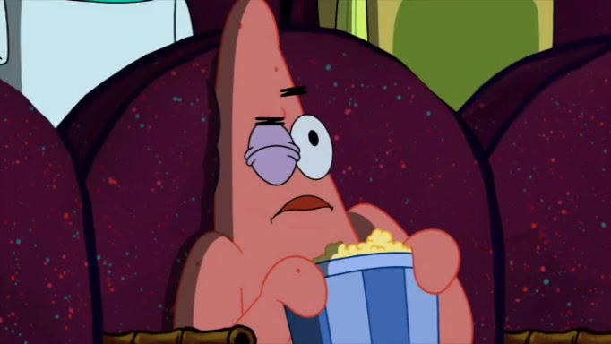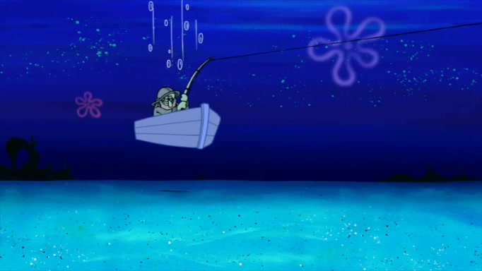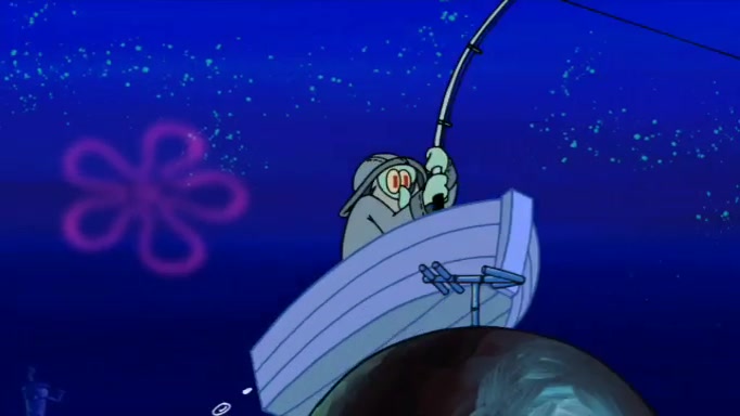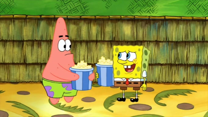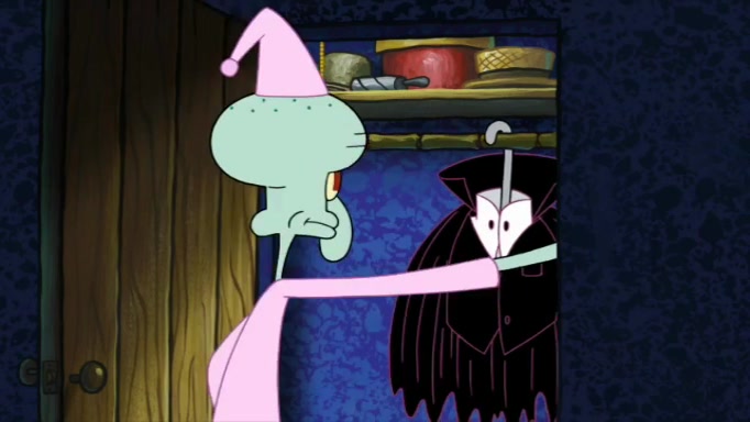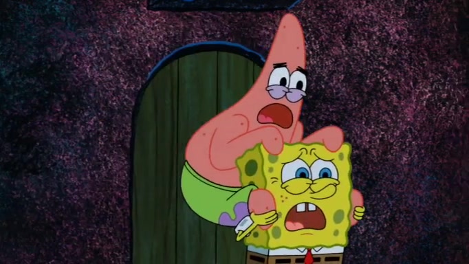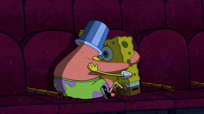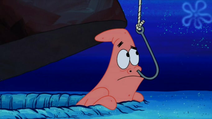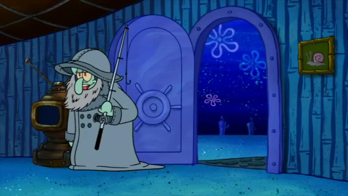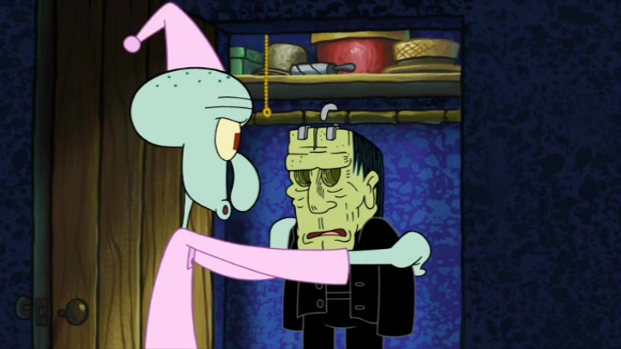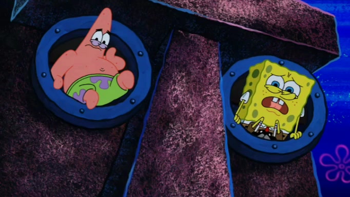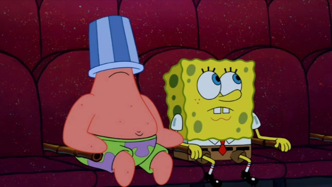 SpongeBob and Patrick are at the movie theater going to see Fisherman 4: Attack of the Hook. They meet Squidward who laughs saying they won't have any sleep after seeing the movie. They both claim they're grown-up men, but Squidward says "Boo" in monotone and scares them effortlessly.