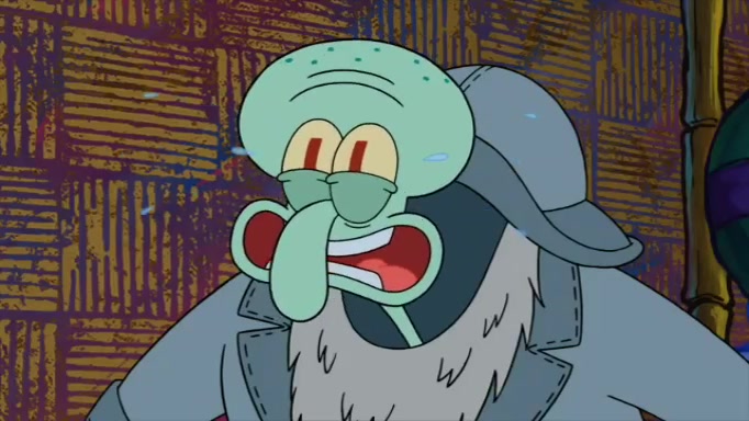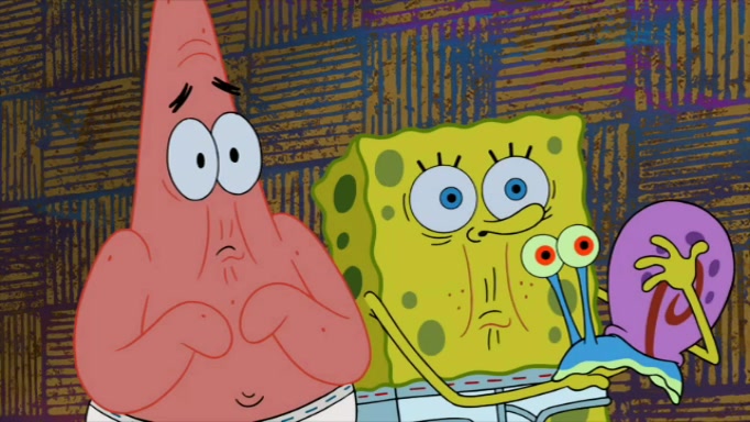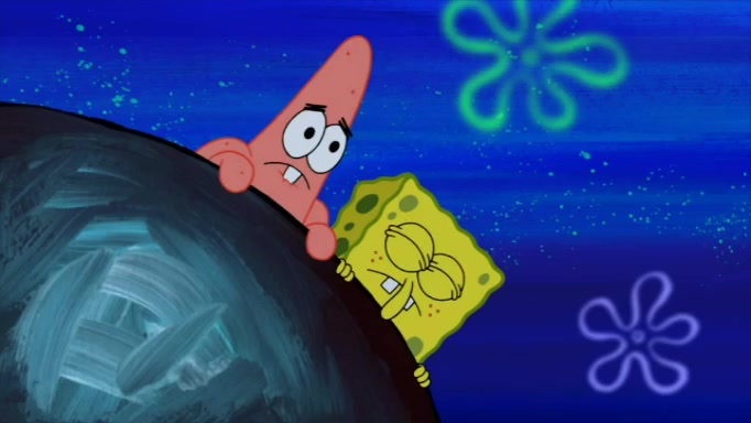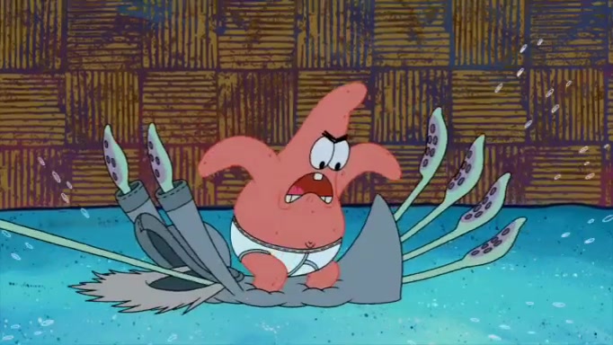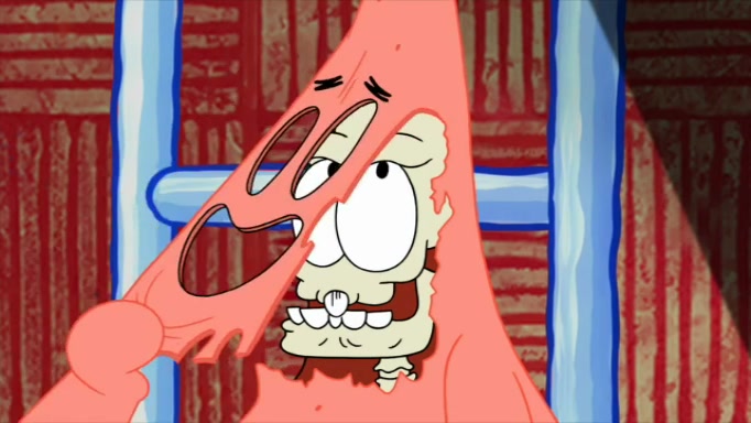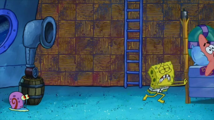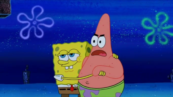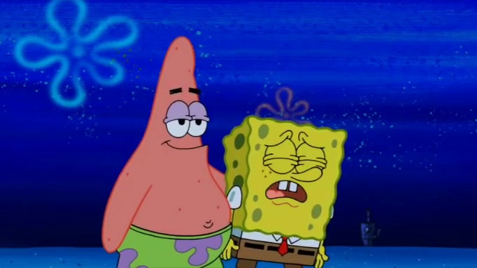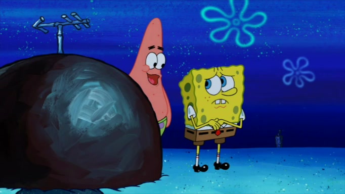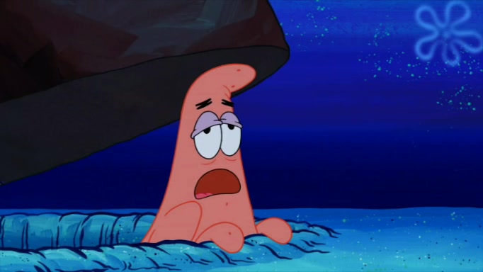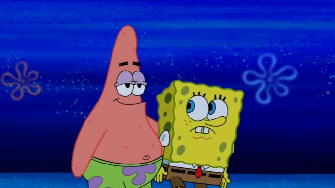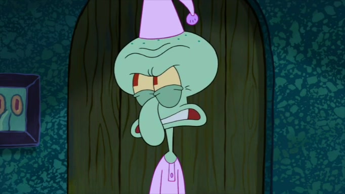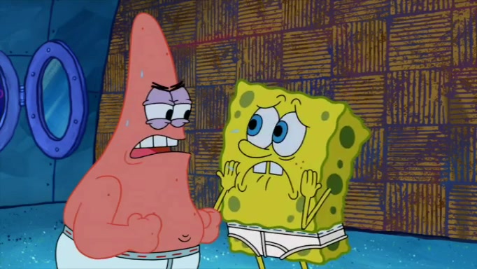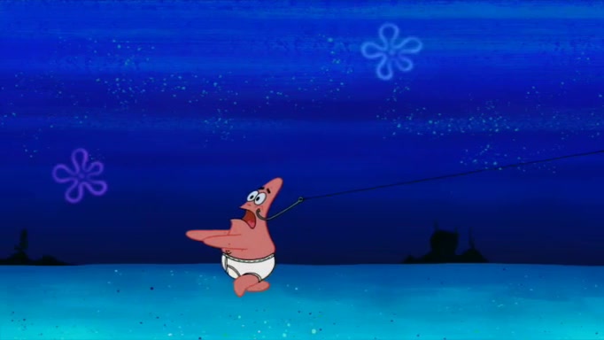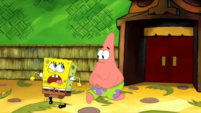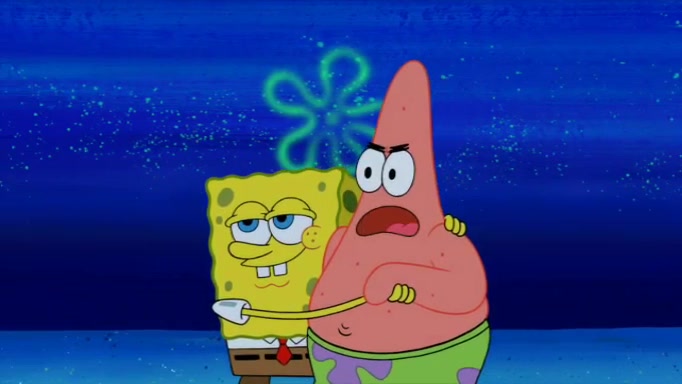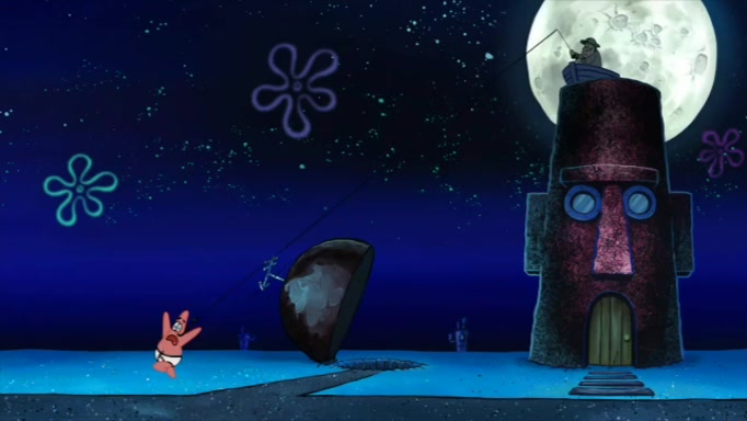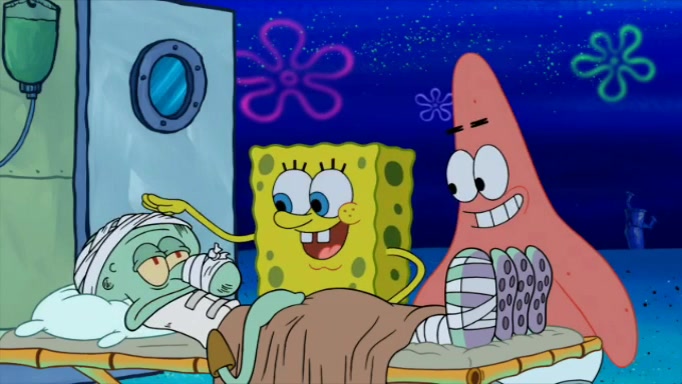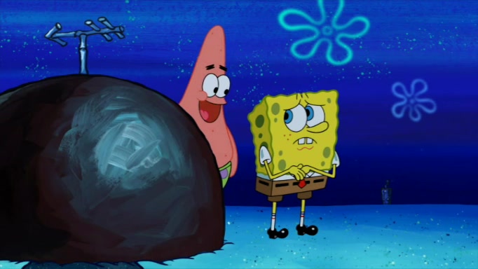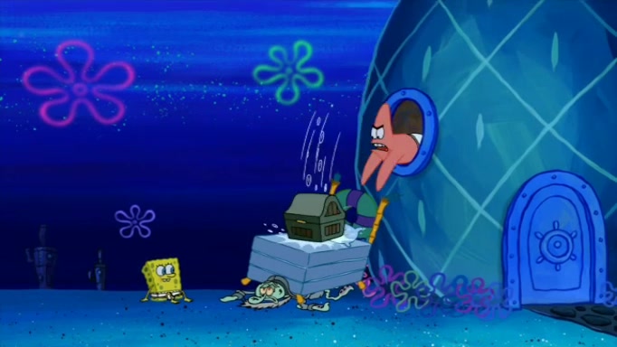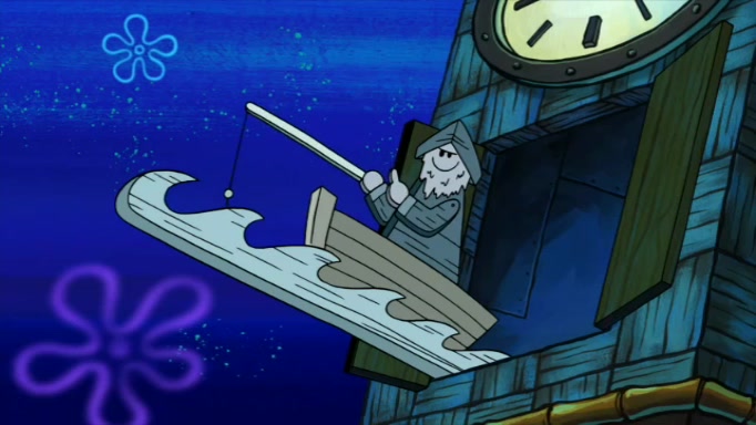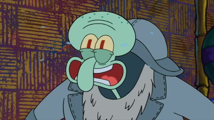 SpongeBob and Patrick are at the movie theater going to see Fisherman 4: Attack of the Hook. They meet Squidward who laughs saying they won't have any sleep after seeing the movie. They both claim they're grown-up men, but Squidward says "Boo" in monotone and scares them effortlessly.