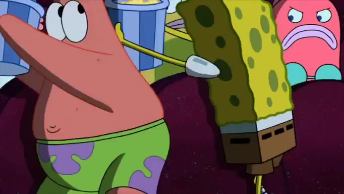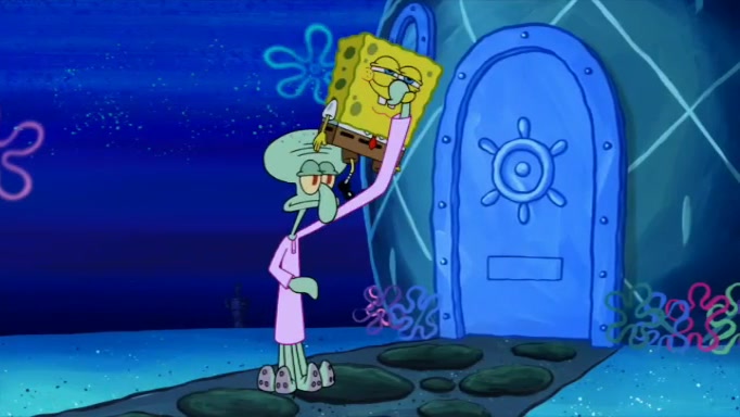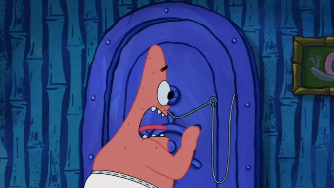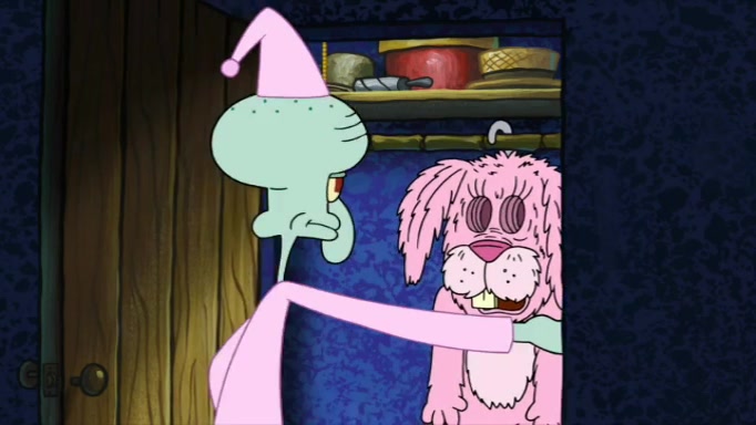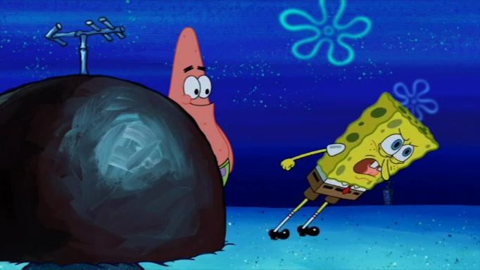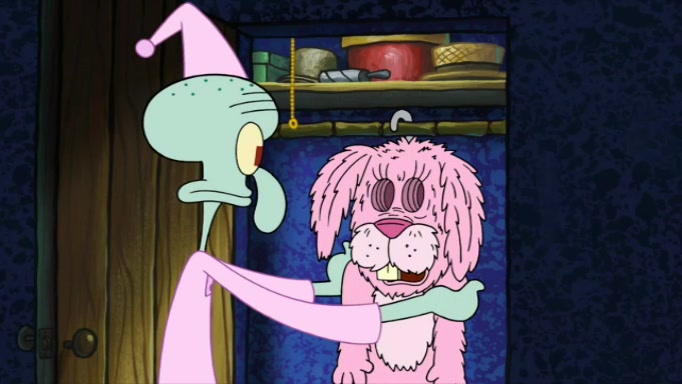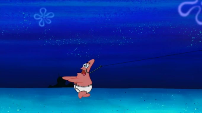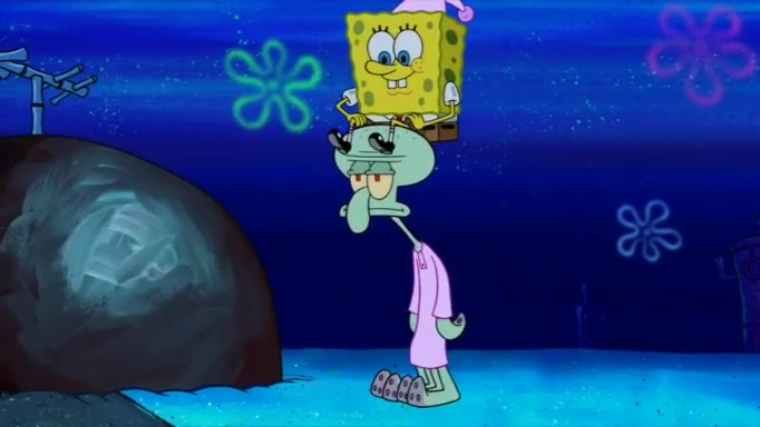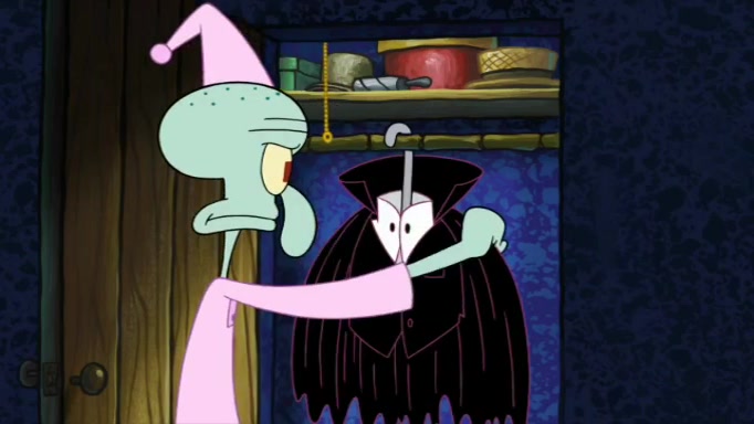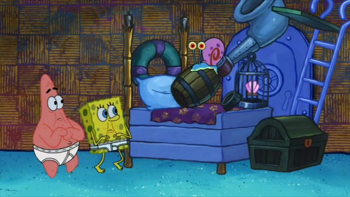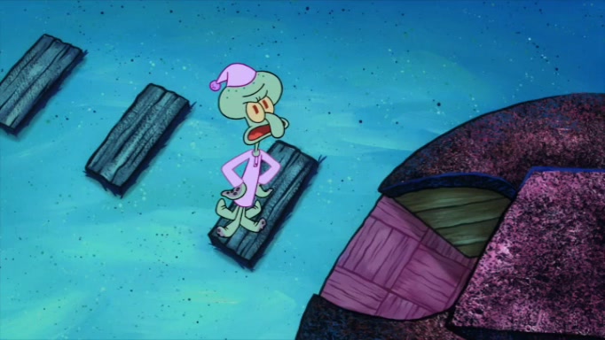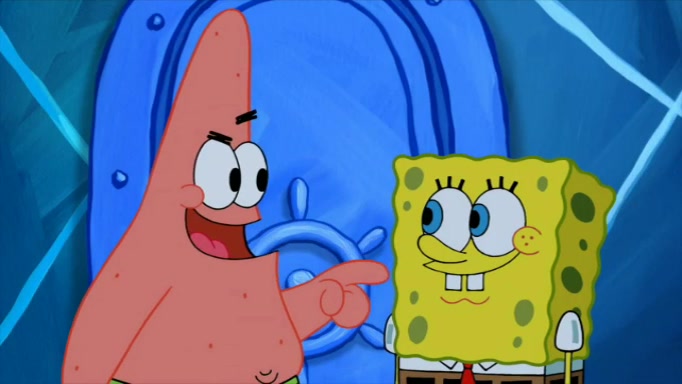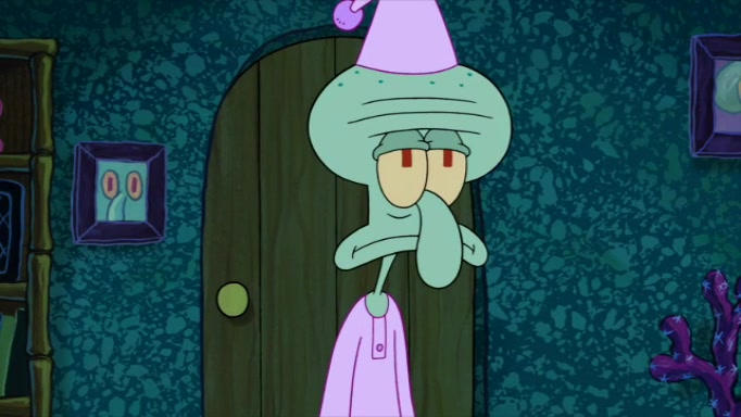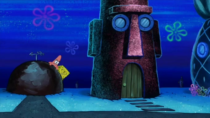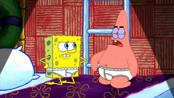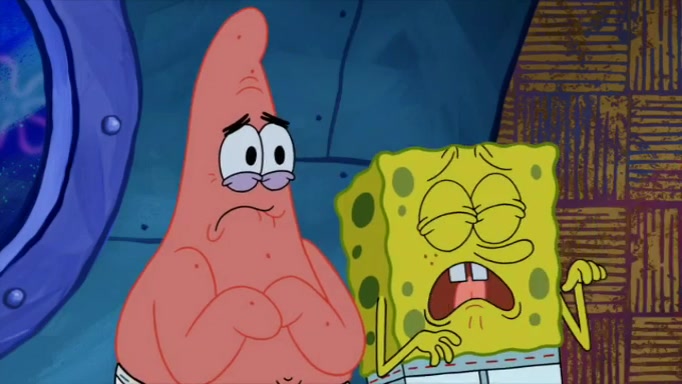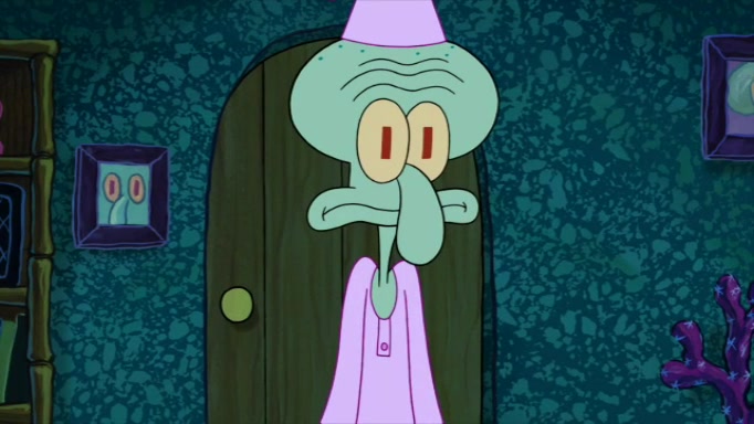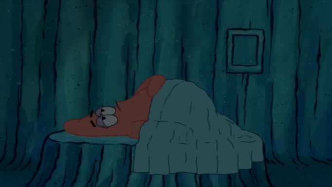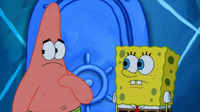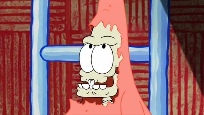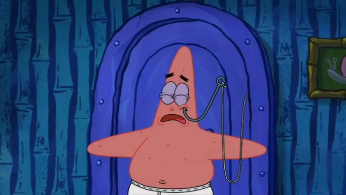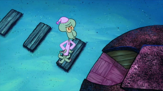 SpongeBob and Patrick are at the movie theater going to see Fisherman 4: Attack of the Hook. They meet Squidward who laughs saying they won't have any sleep after seeing the movie. They both claim they're grown-up men, but Squidward says "Boo" in monotone and scares them effortlessly.