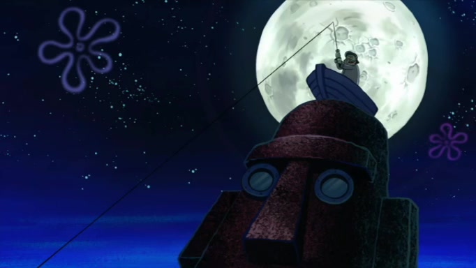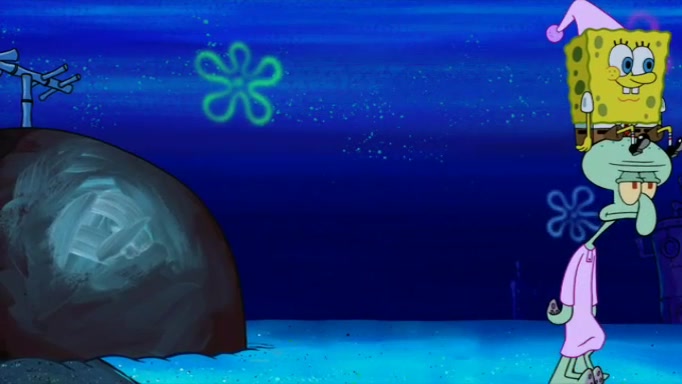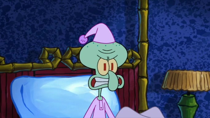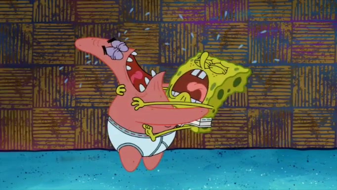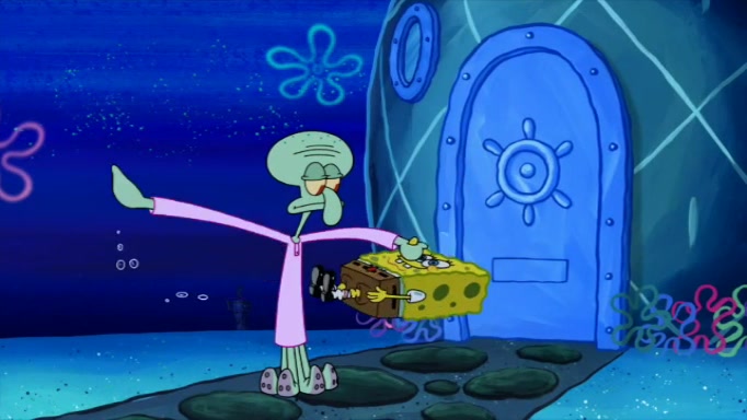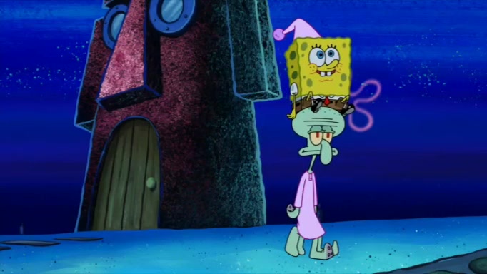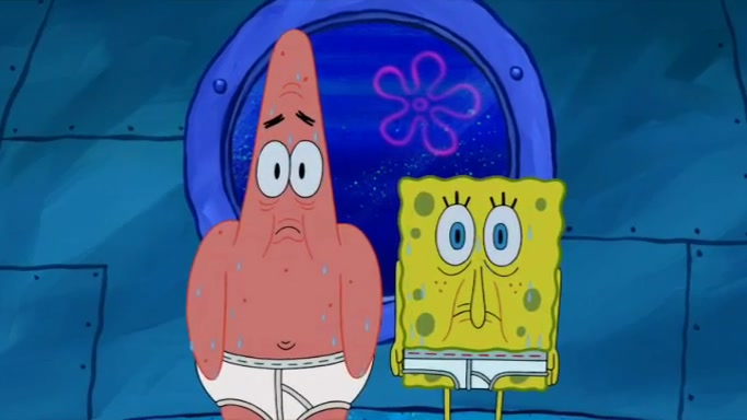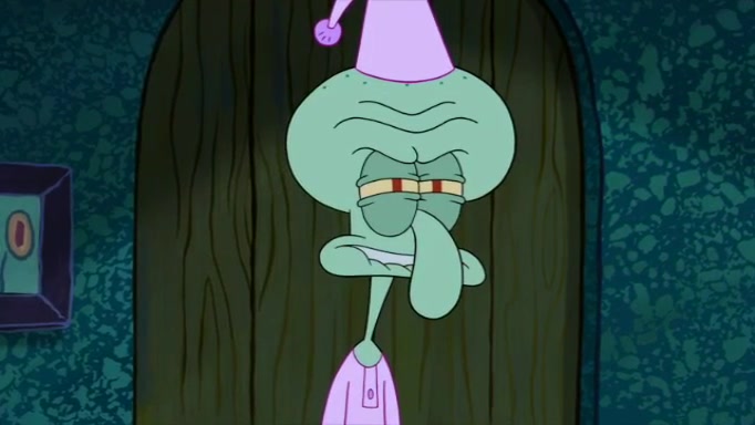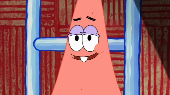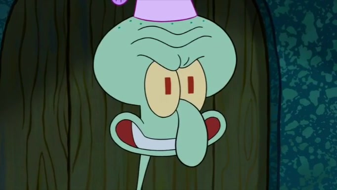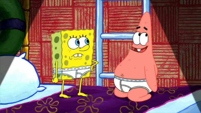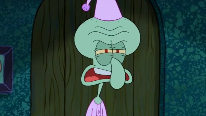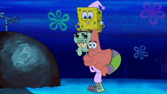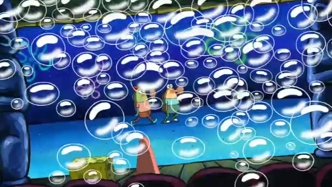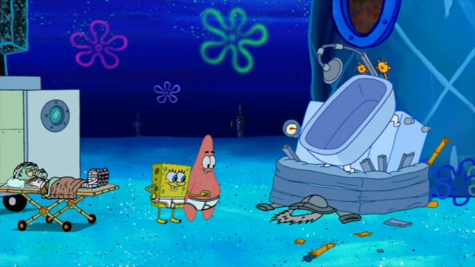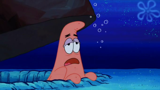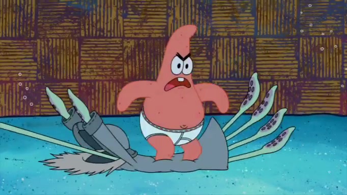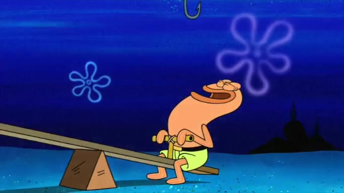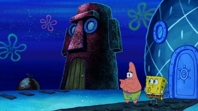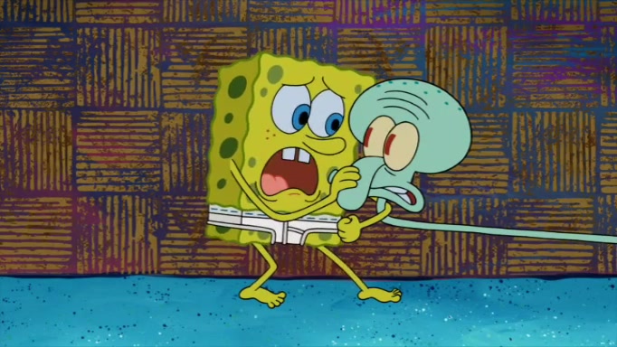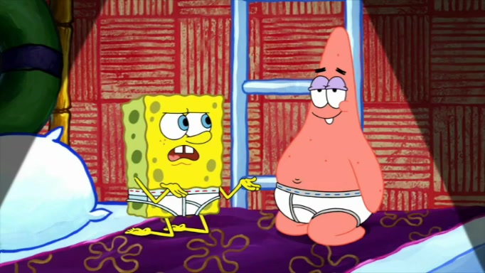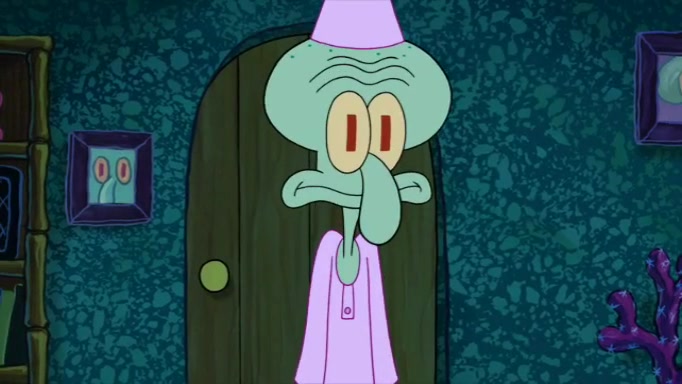 SpongeBob and Patrick are at the movie theater going to see Fisherman 4: Attack of the Hook. They meet Squidward who laughs saying they won't have any sleep after seeing the movie. They both claim they're grown-up men, but Squidward says "Boo" in monotone and scares them effortlessly.