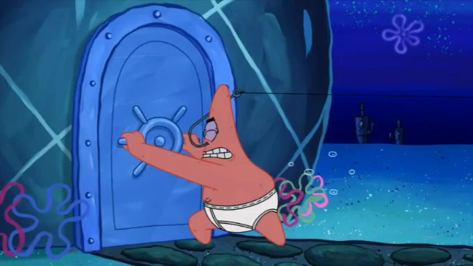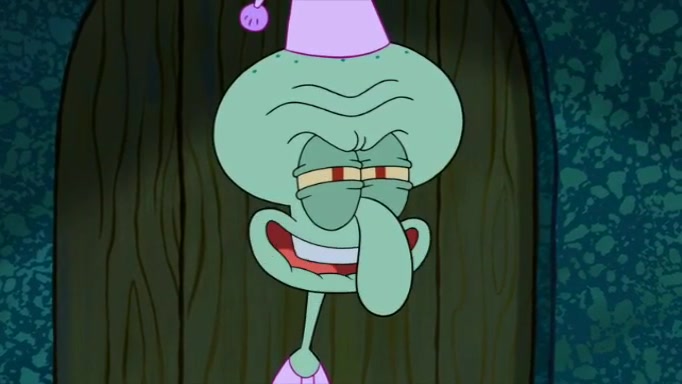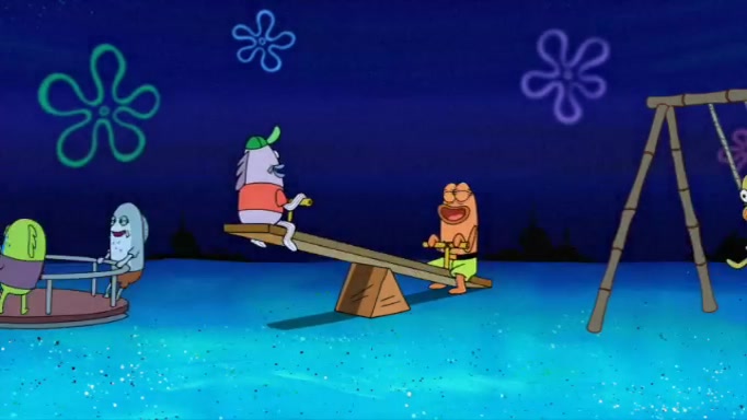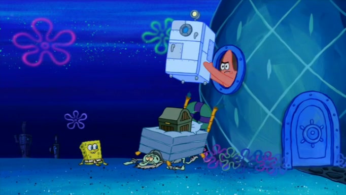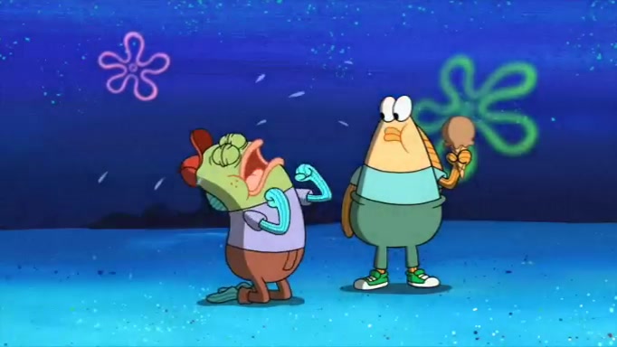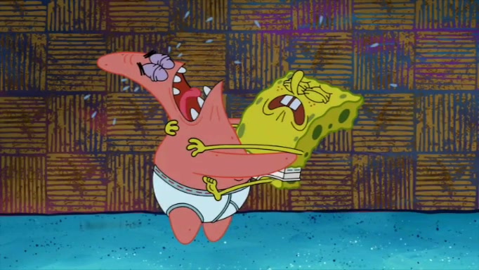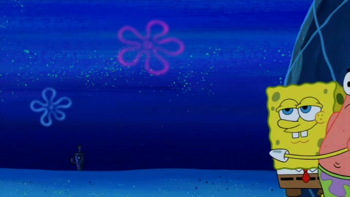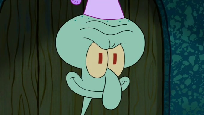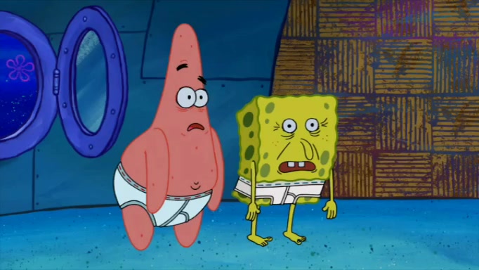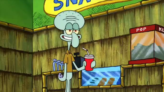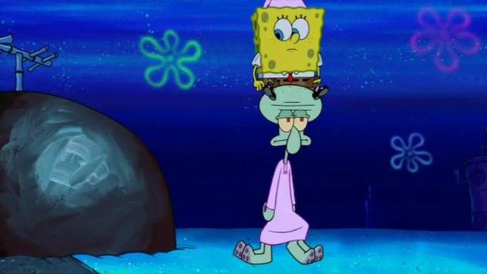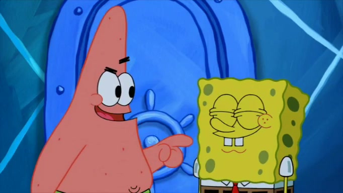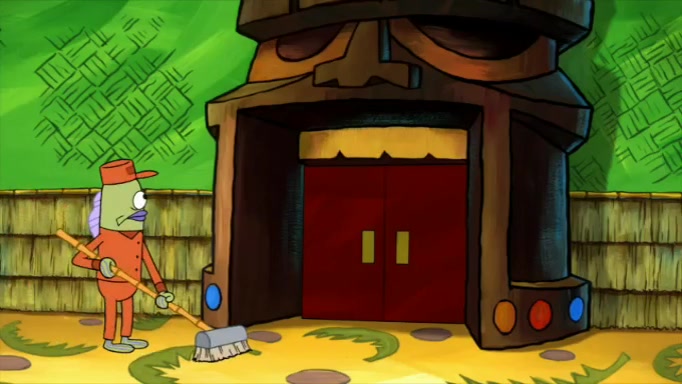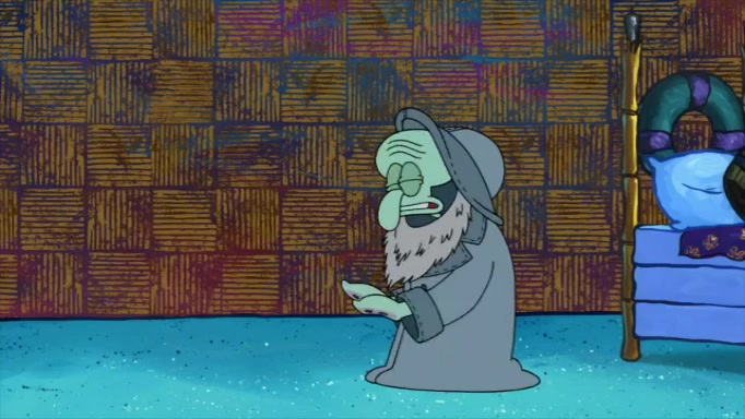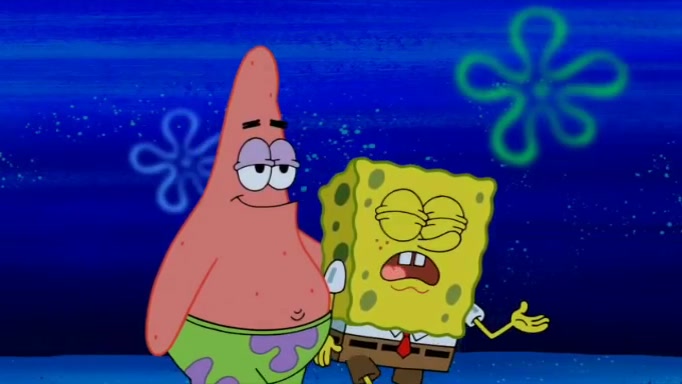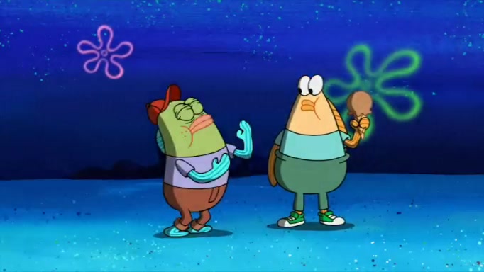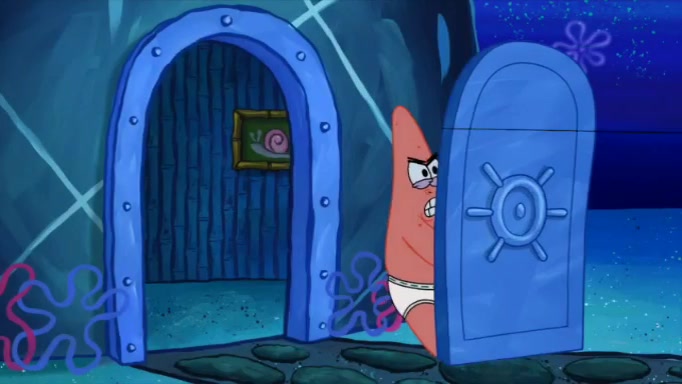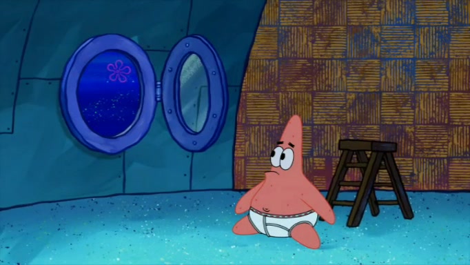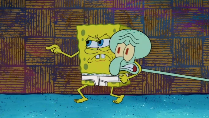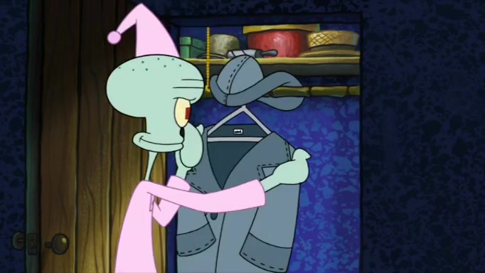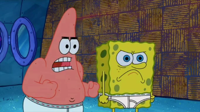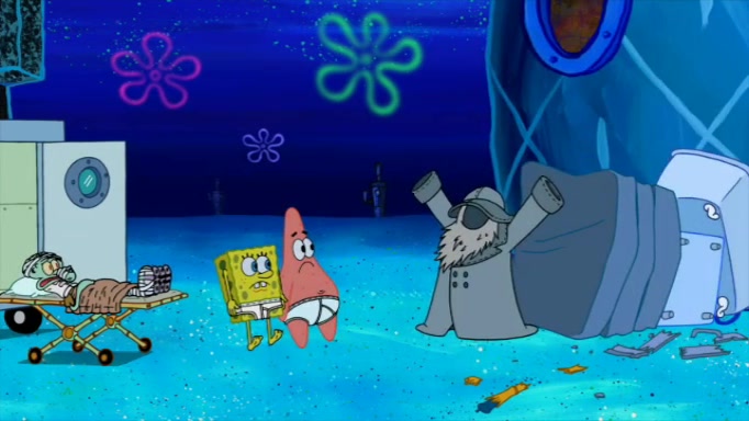 SpongeBob and Patrick are at the movie theater going to see Fisherman 4: Attack of the Hook. They meet Squidward who laughs saying they won't have any sleep after seeing the movie. They both claim they're grown-up men, but Squidward says "Boo" in monotone and scares them effortlessly.