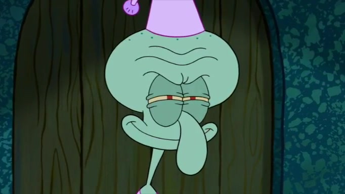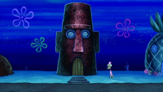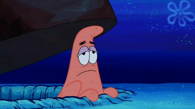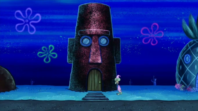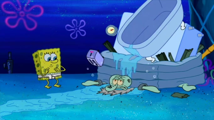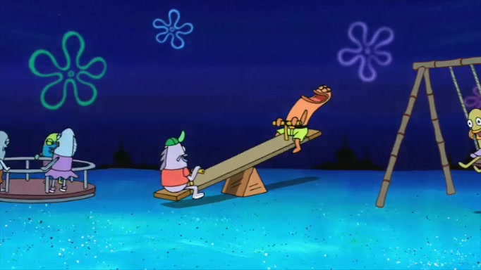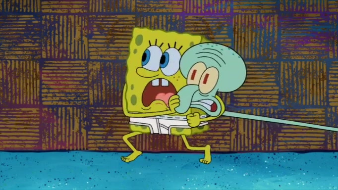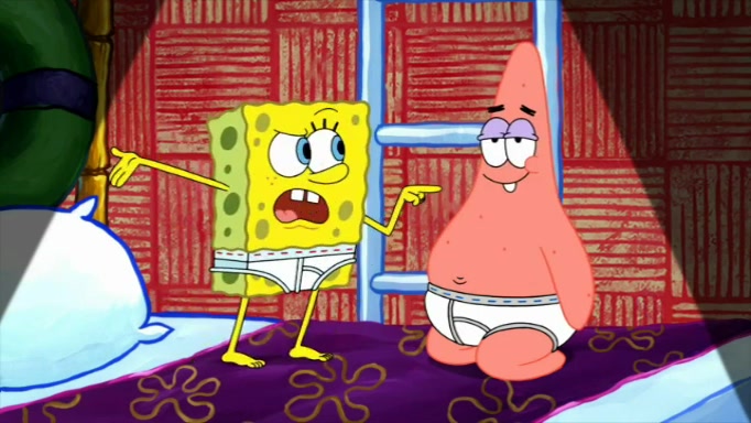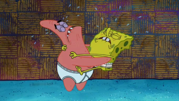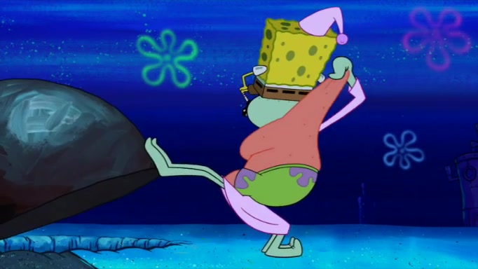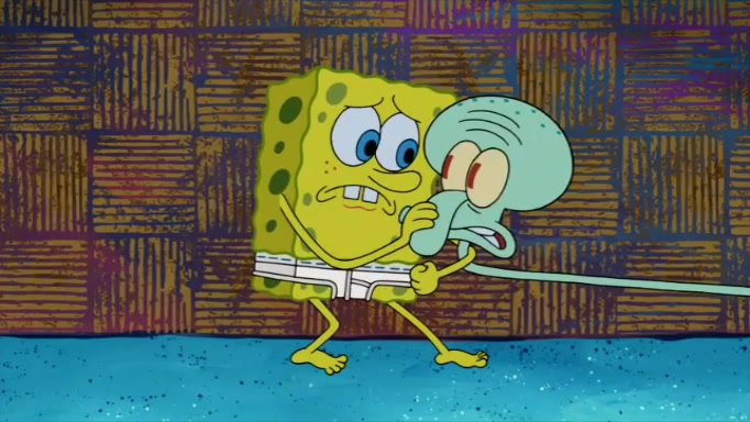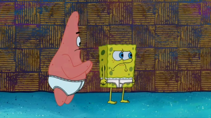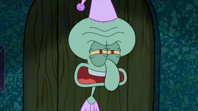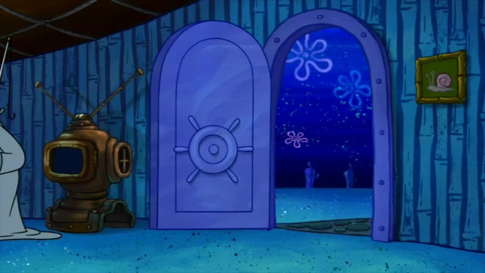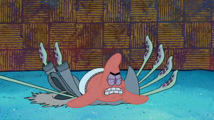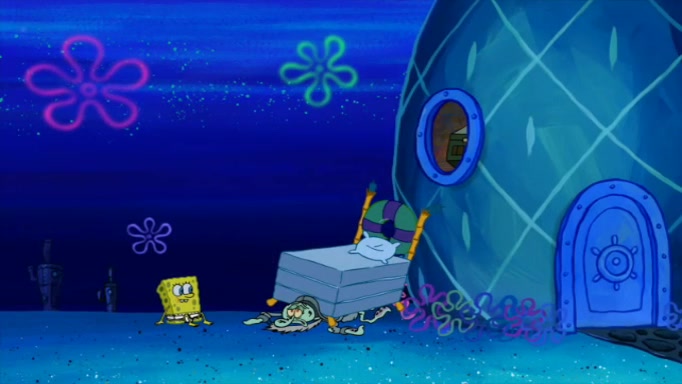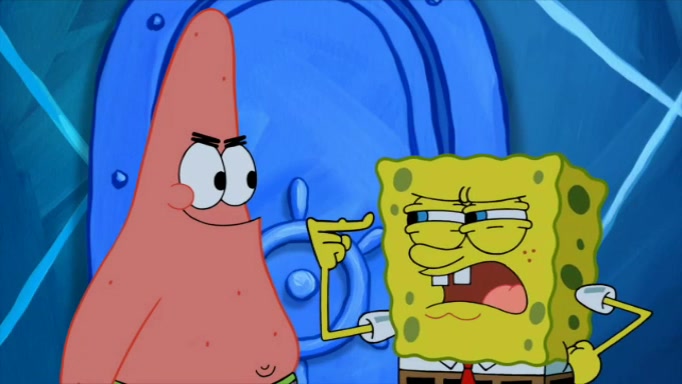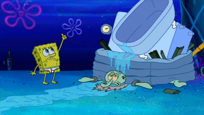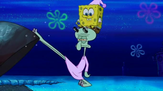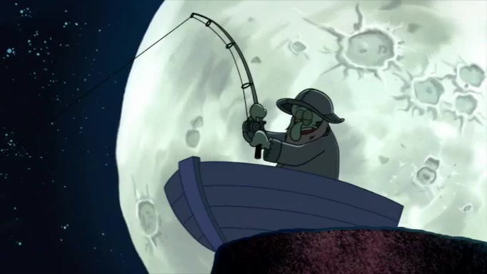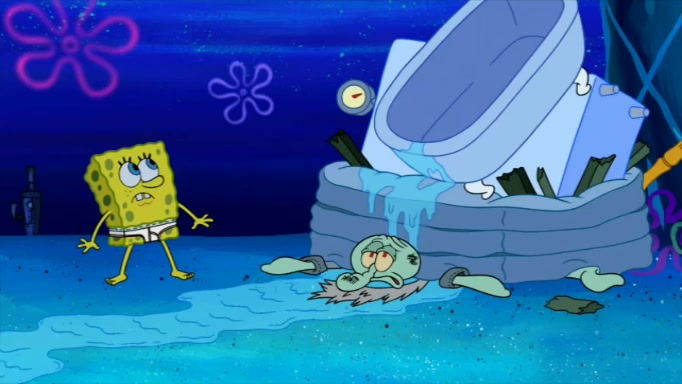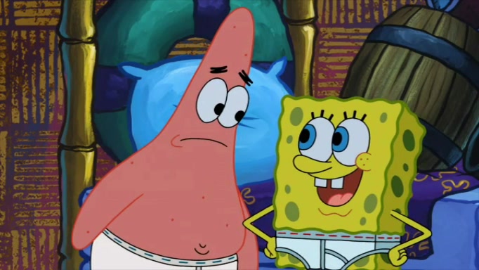 SpongeBob and Patrick are at the movie theater going to see Fisherman 4: Attack of the Hook. They meet Squidward who laughs saying they won't have any sleep after seeing the movie. They both claim they're grown-up men, but Squidward says "Boo" in monotone and scares them effortlessly.