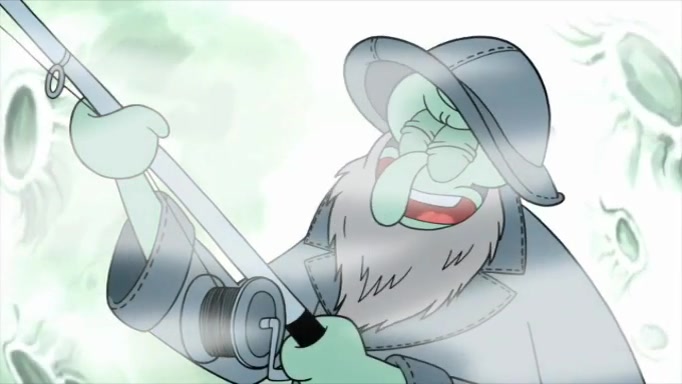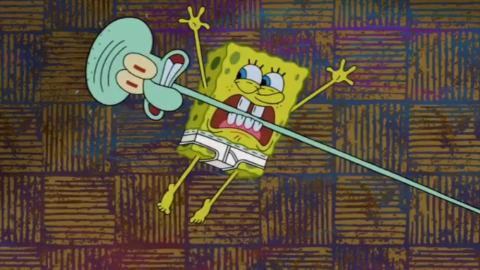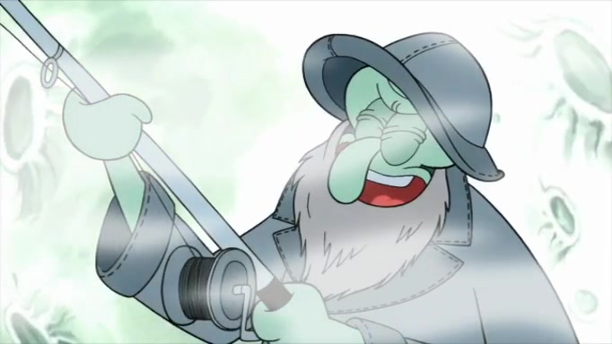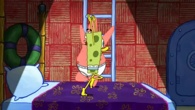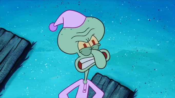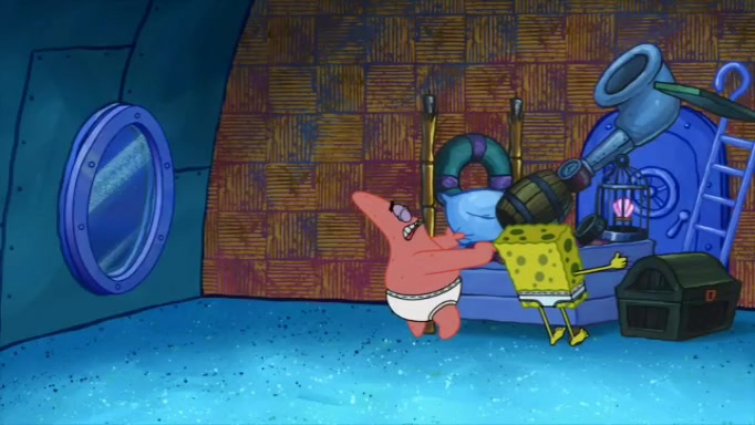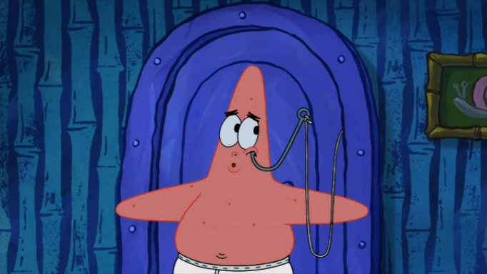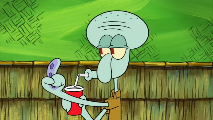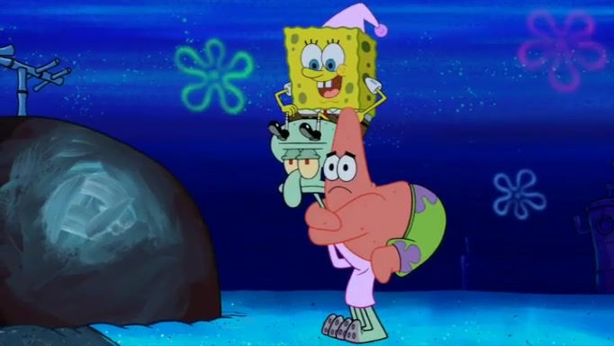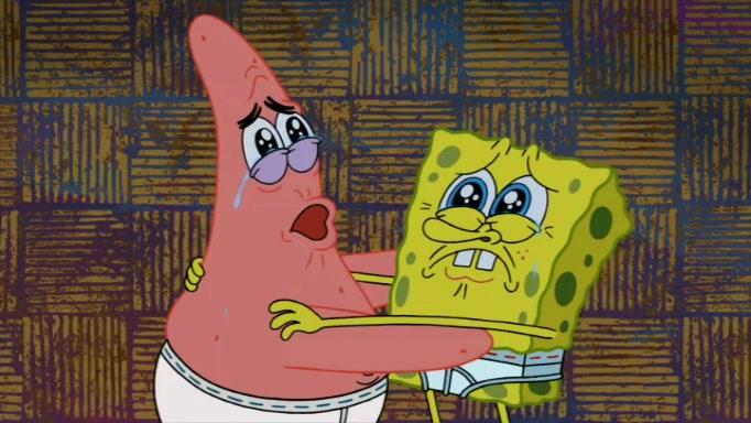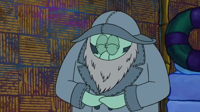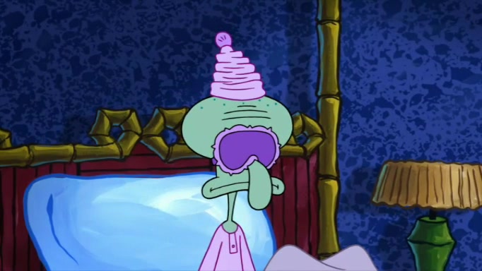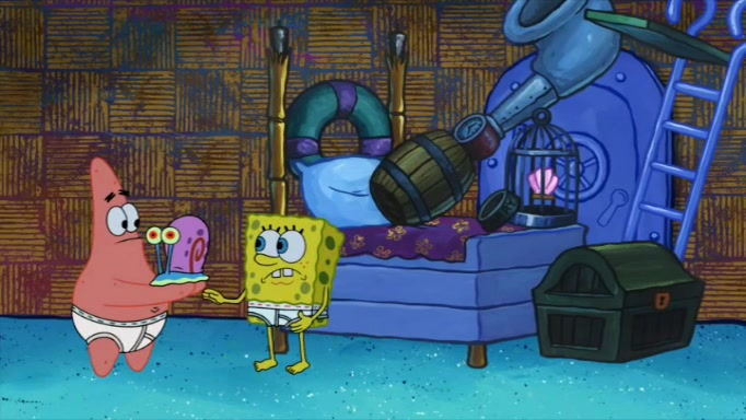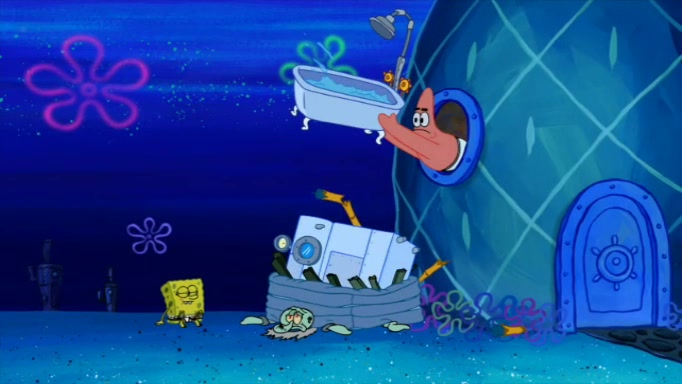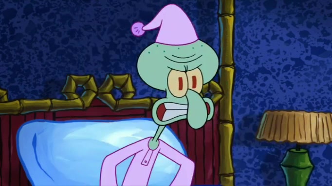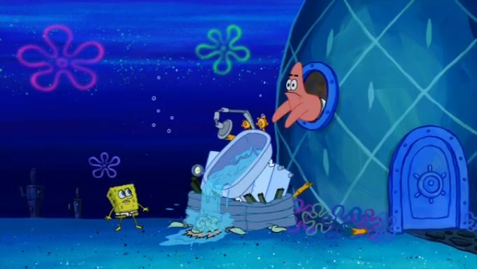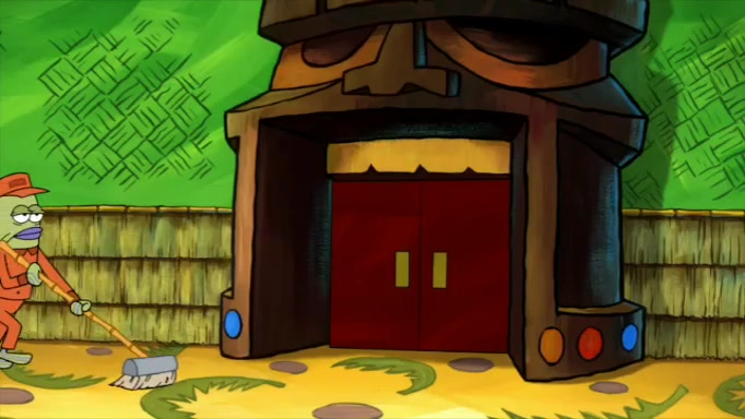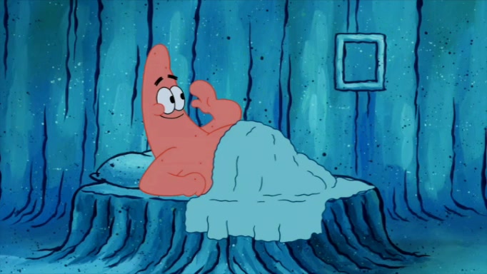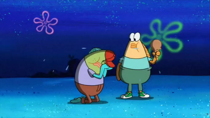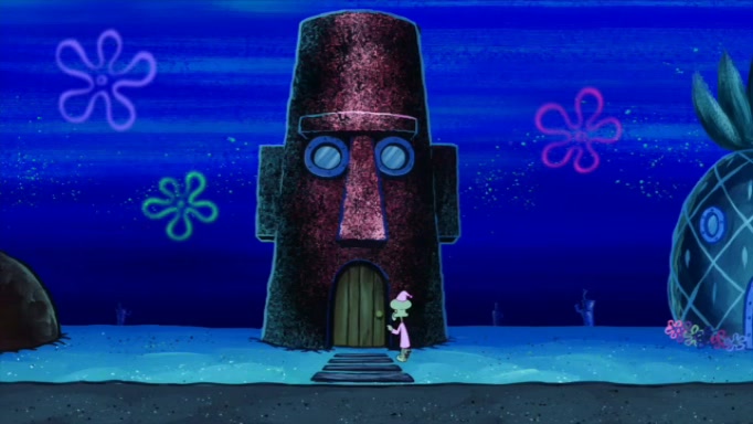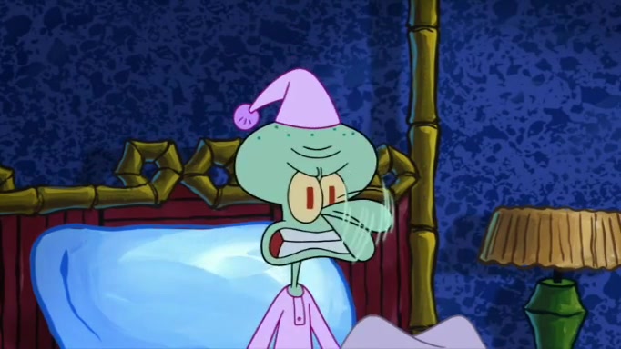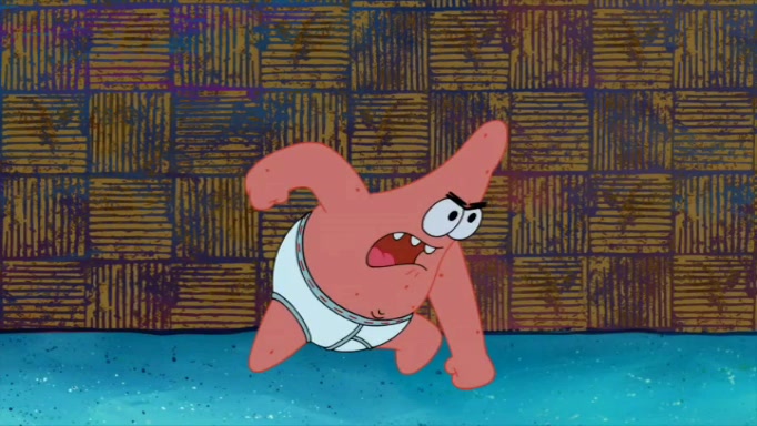 SpongeBob and Patrick are at the movie theater going to see Fisherman 4: Attack of the Hook. They meet Squidward who laughs saying they won't have any sleep after seeing the movie. They both claim they're grown-up men, but Squidward says "Boo" in monotone and scares them effortlessly.