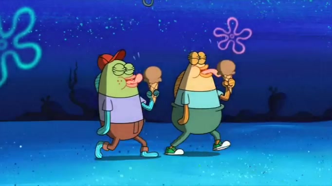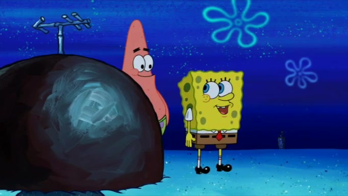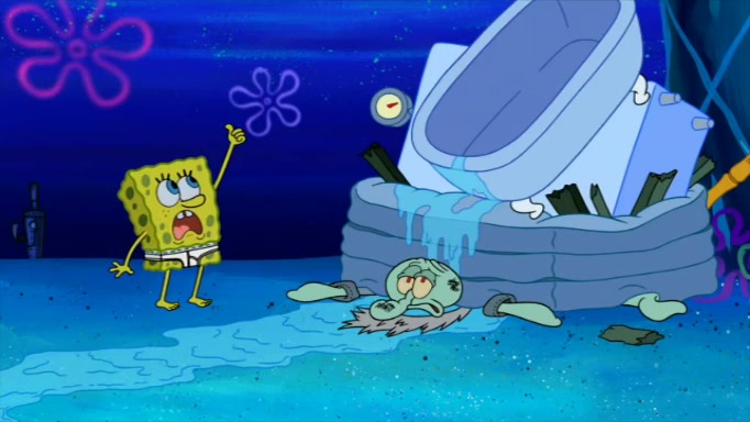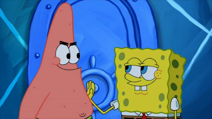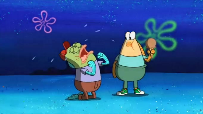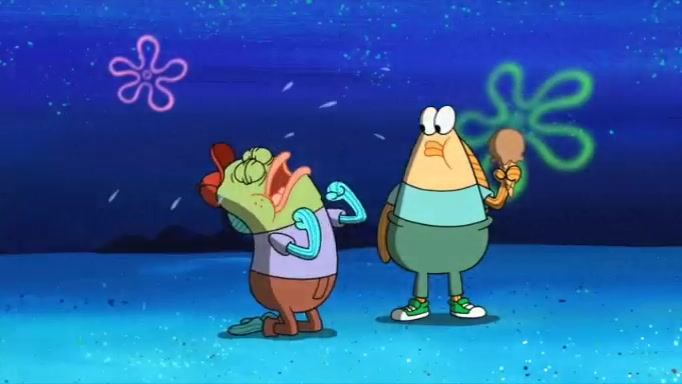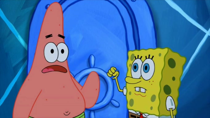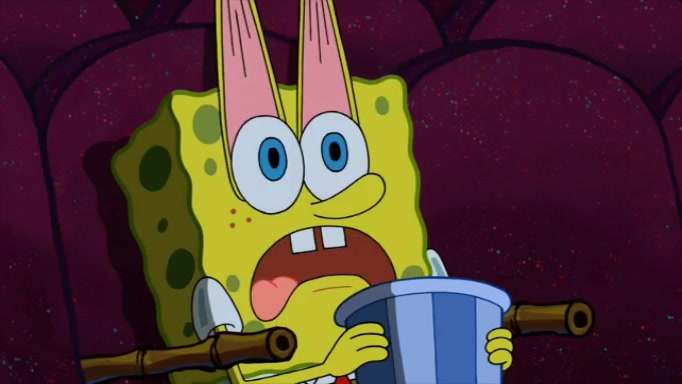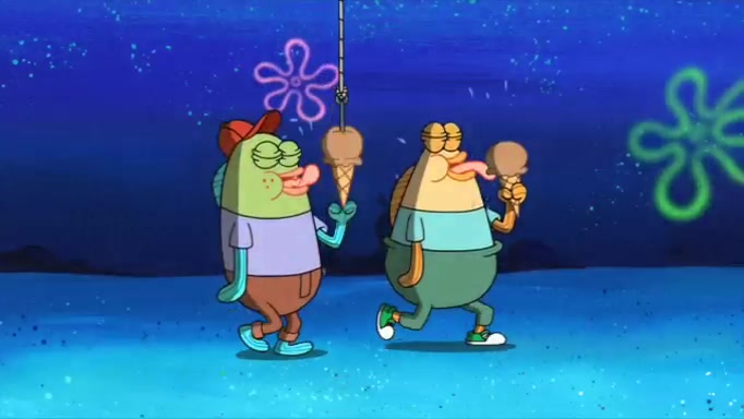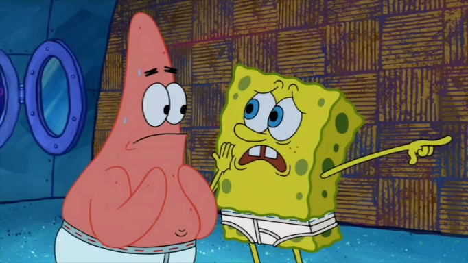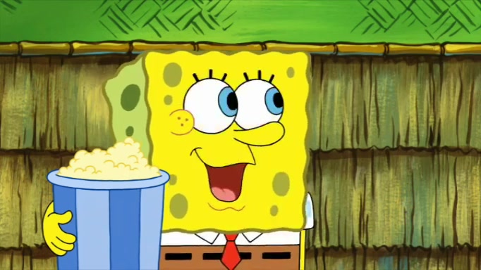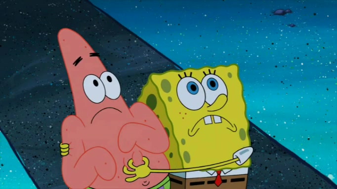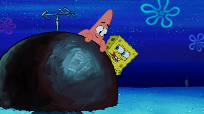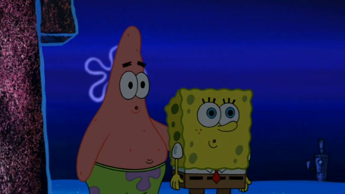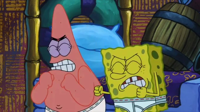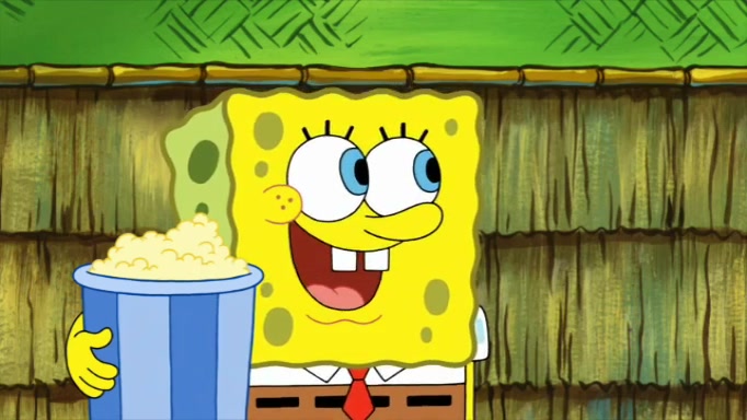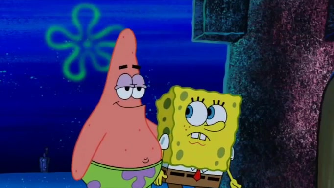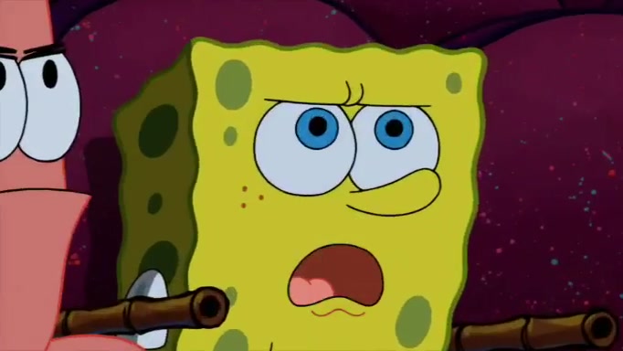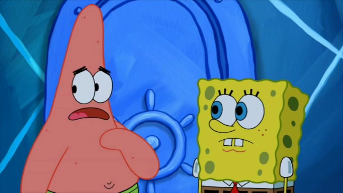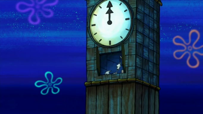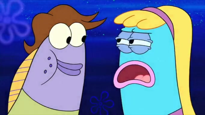 Then they decide that they'll show Squidward that they are not afraid of Fisherman 4: Attack of the Hook. They go and see the movie, and are instantly scared. They try not to look at the movie, but it is over when they open their eyes. They stay for the second showing to try to keep their eyes open, but they fail again. When they get out, they realize that it is midnight, the time when the Fisherman strikes.