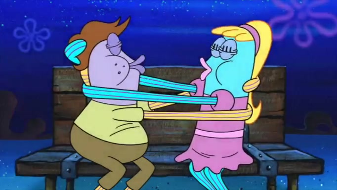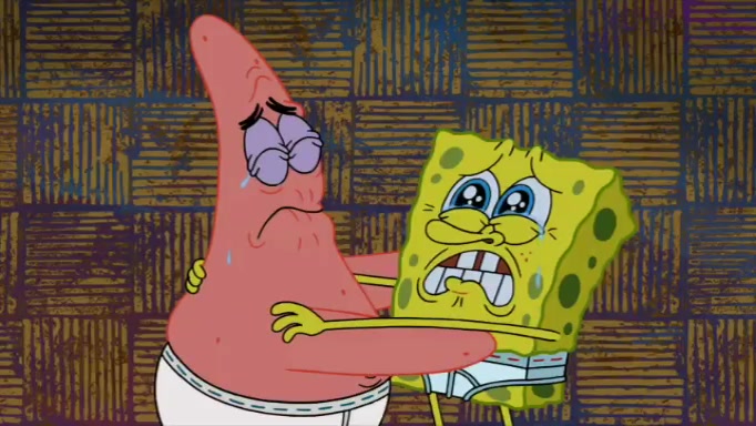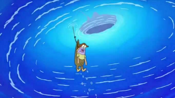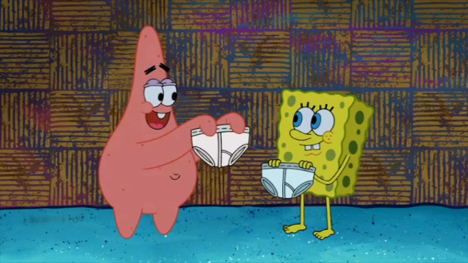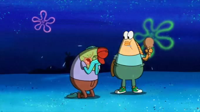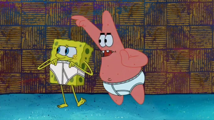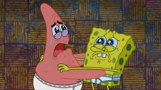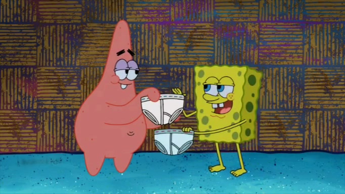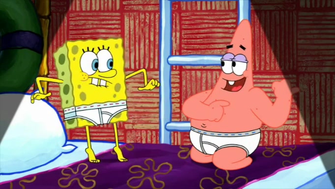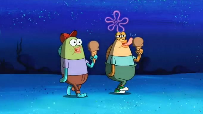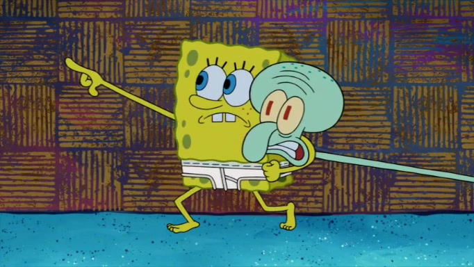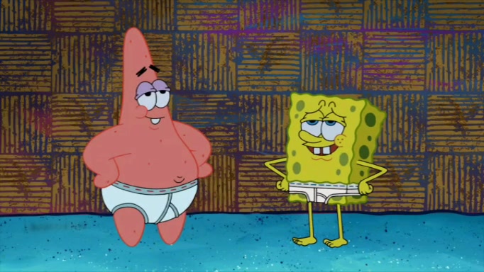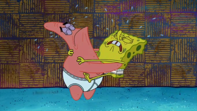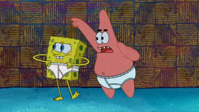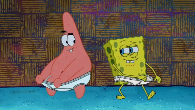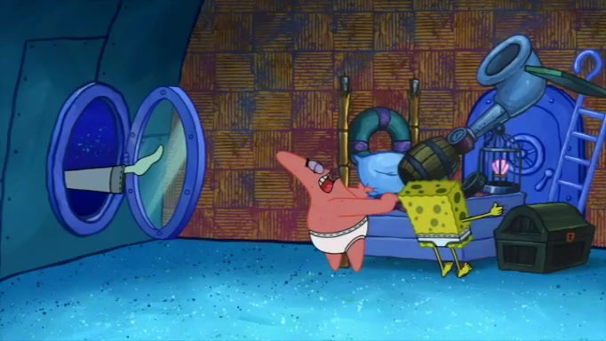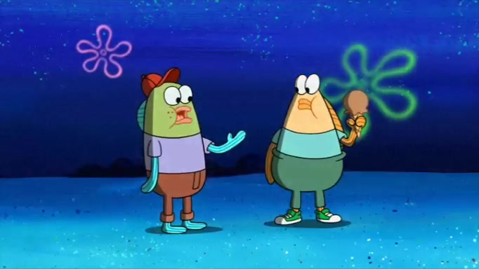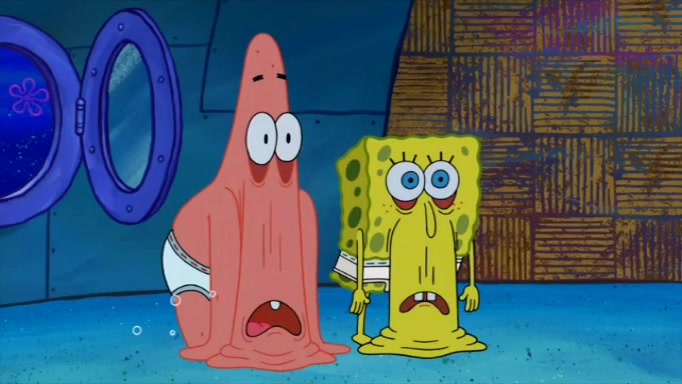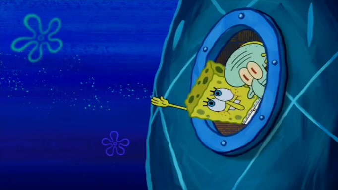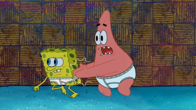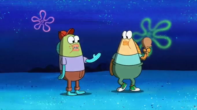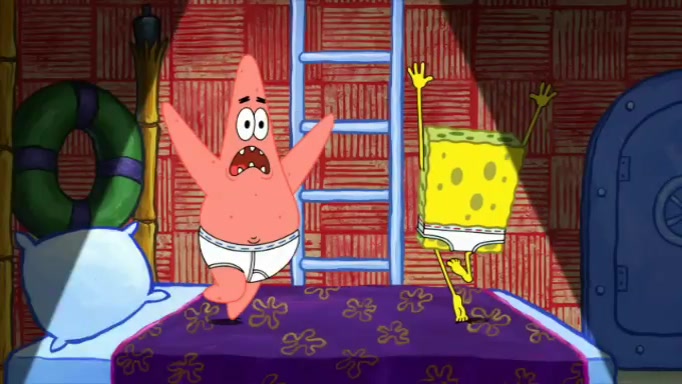 Then they decide that they'll show Squidward that they are not afraid of Fisherman 4: Attack of the Hook. They go and see the movie, and are instantly scared. They try not to look at the movie, but it is over when they open their eyes. They stay for the second showing to try to keep their eyes open, but they fail again. When they get out, they realize that it is midnight, the time when the Fisherman strikes.
