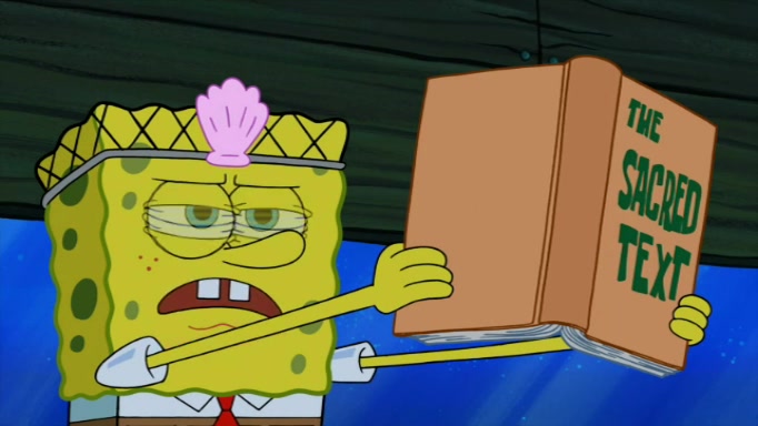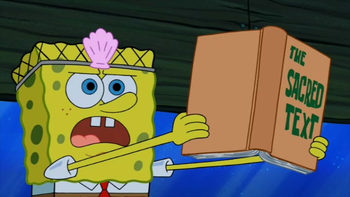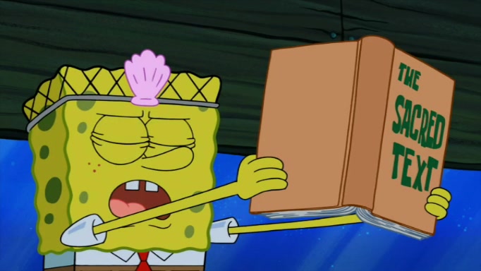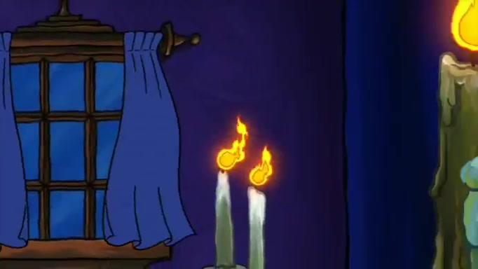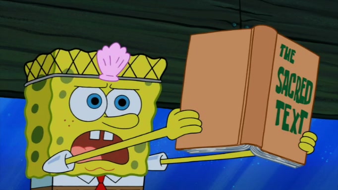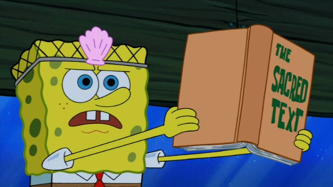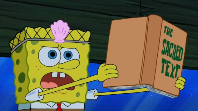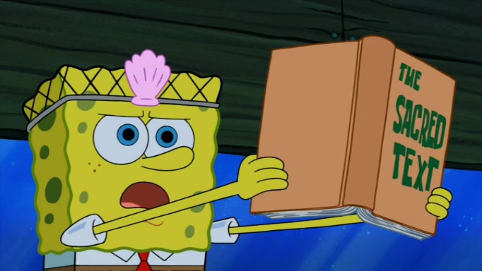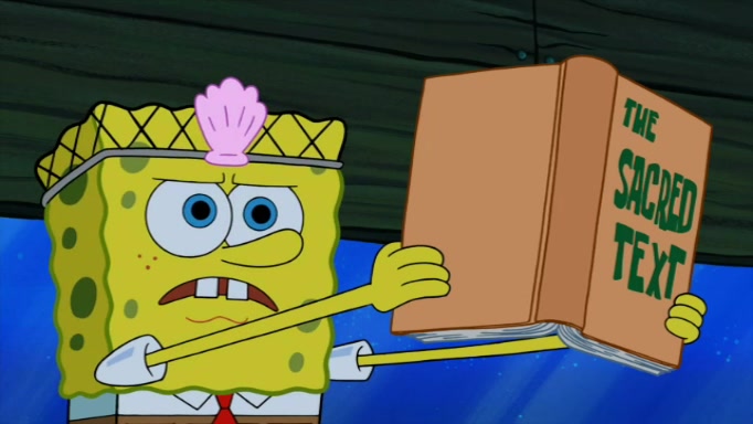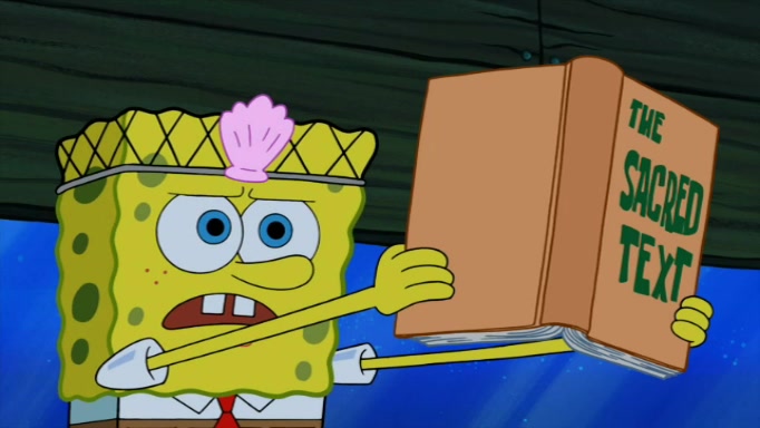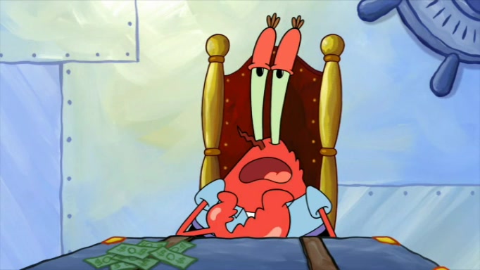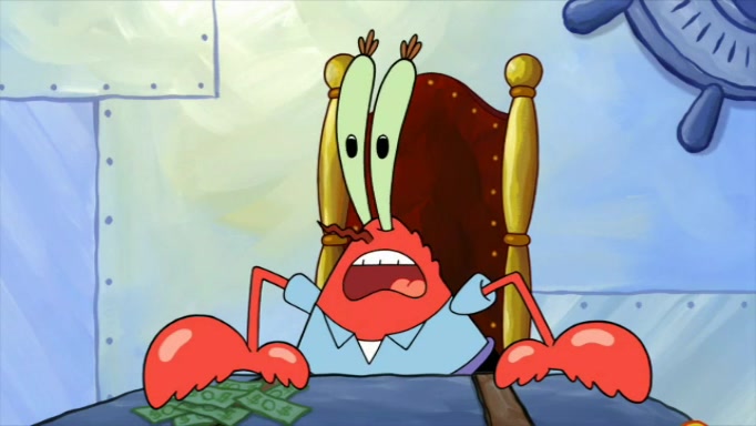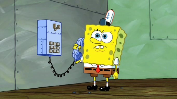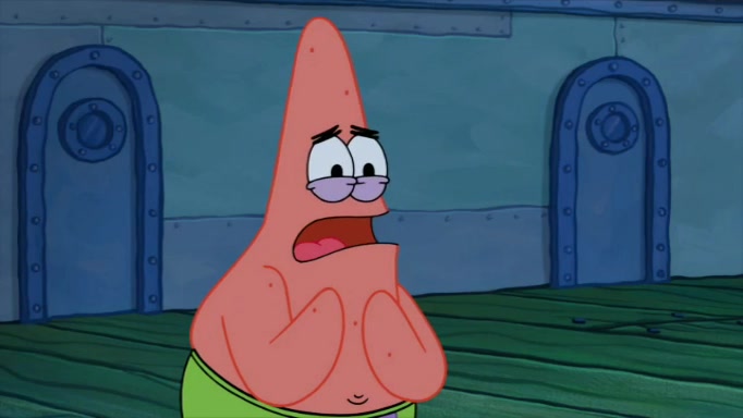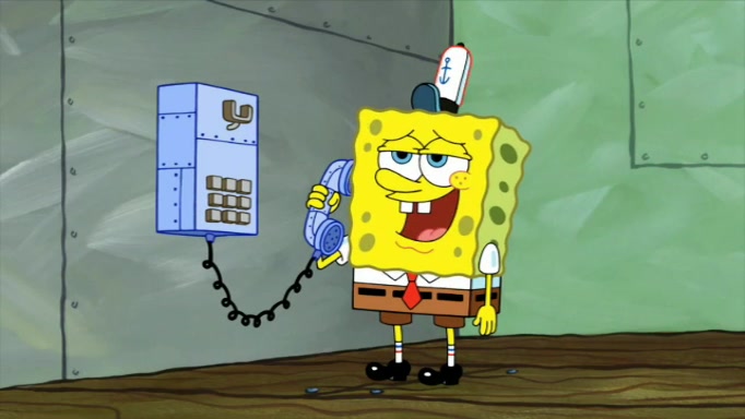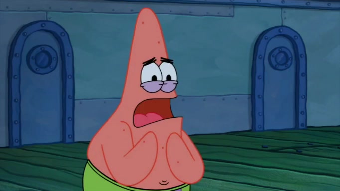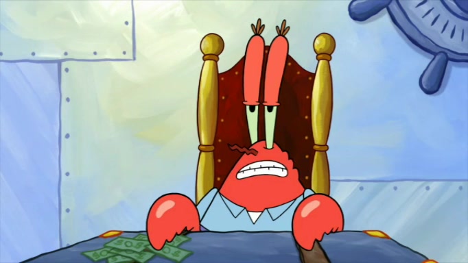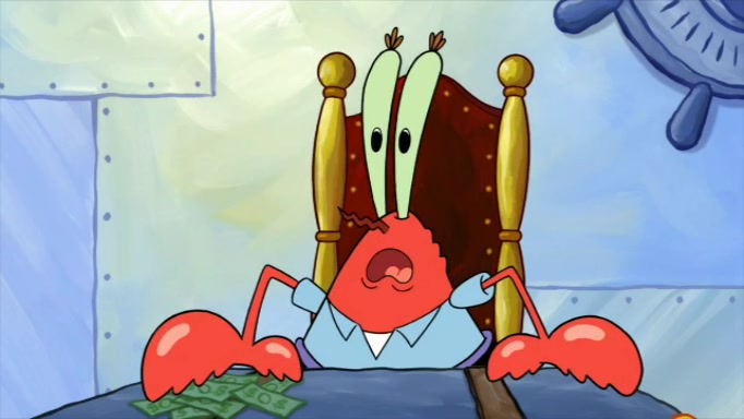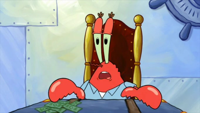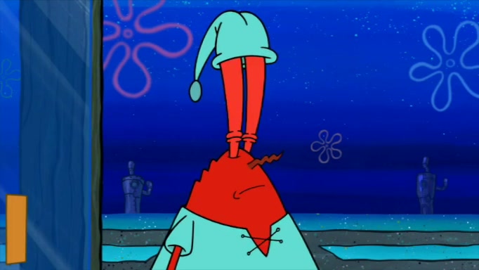 So, later that night, SpongeBob calls Patrick over to the Krusty Krab. Mr. Krabs tells them not to eat any furniture which upsets Patrick and causes him to ask SpongeBob why he called him there. SpongeBob replies by saying that they are going to perform a seance at the Krusty Krab. After SpongeBob reads the ingredients of a mustard container and summons the spirit of Rusty's Rib Eye, the ghost soon appears. Patrick runs to get Mr. Krabs after being scared by the "big ghost."