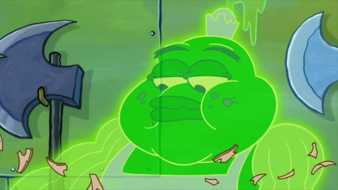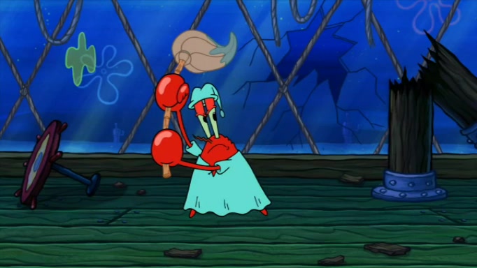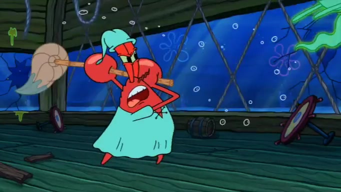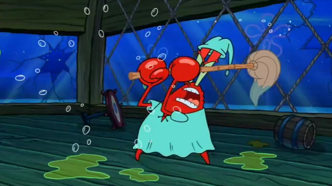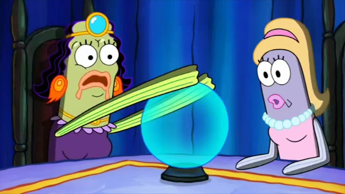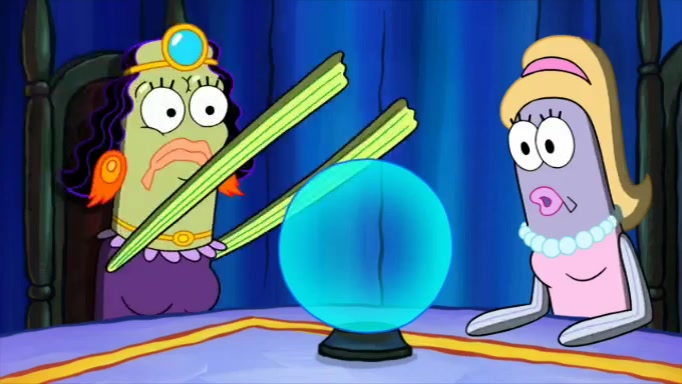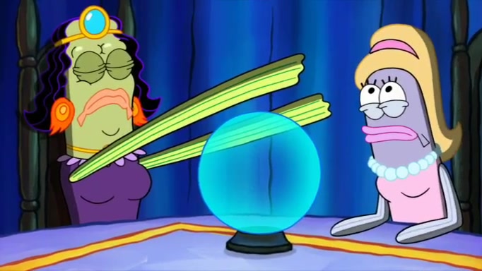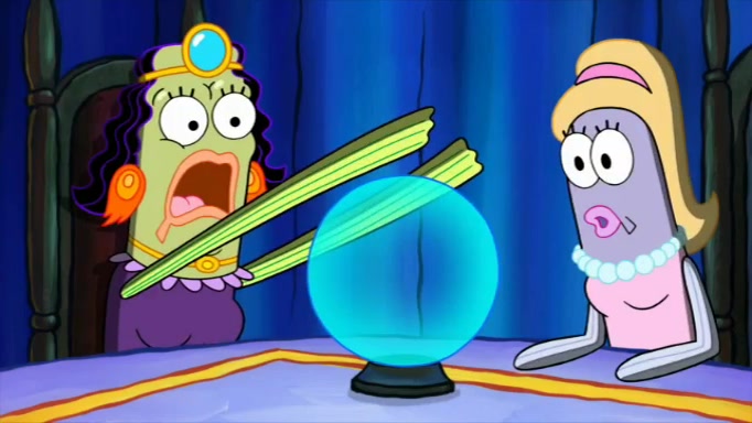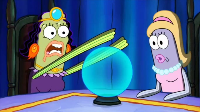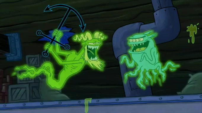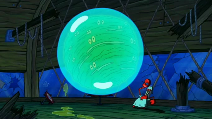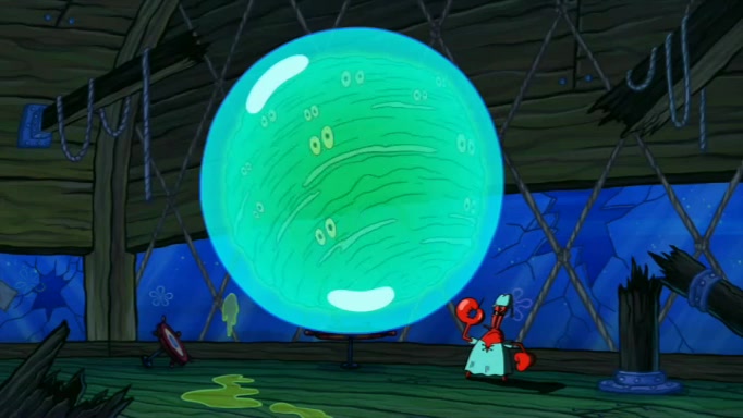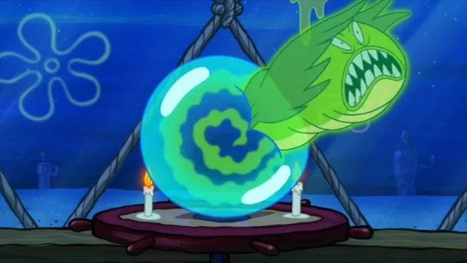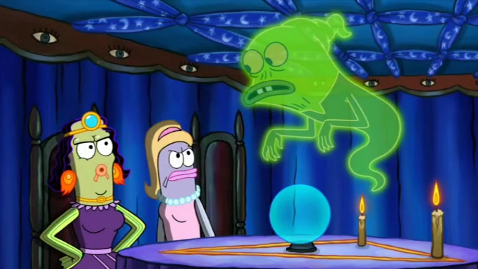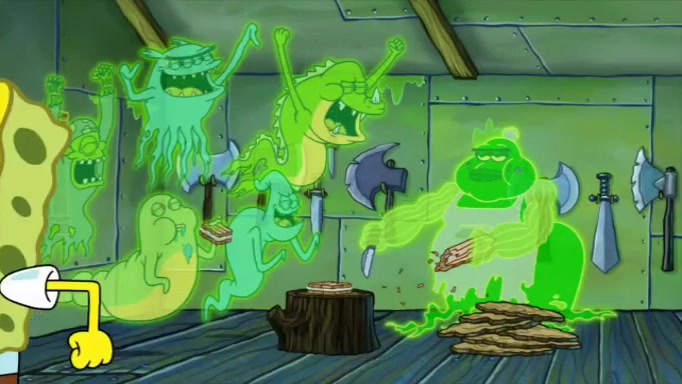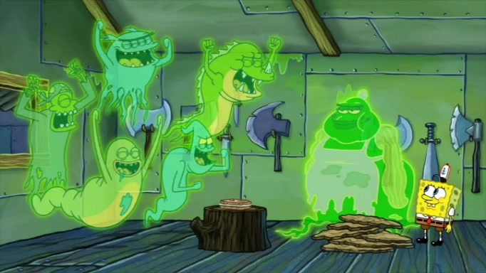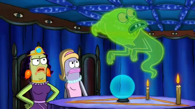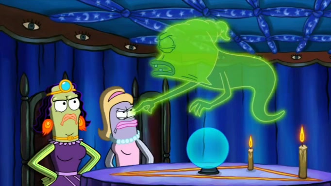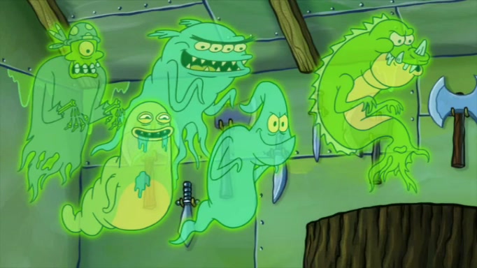 After hanging around for a while, SpongeBob asks them to leave, but they began to cause chaos at the Krusty Krab! Patrick and Mr. Krabs return and see the horrifying cause of SpongeBob's séance. Patrick, still scared, runs around the Krusty Krab screaming. Mr. Krabs sees the orb that the ghosts came from and defeats the ghosts by pushing them back in the orb and pops it. Mr. Krabs warns SpongeBob never to hold a seance without his permission, because "ghosts are like relatives. Once you let them in, they'll never leave."