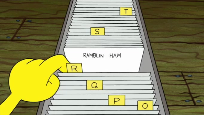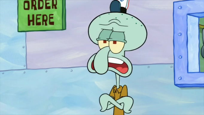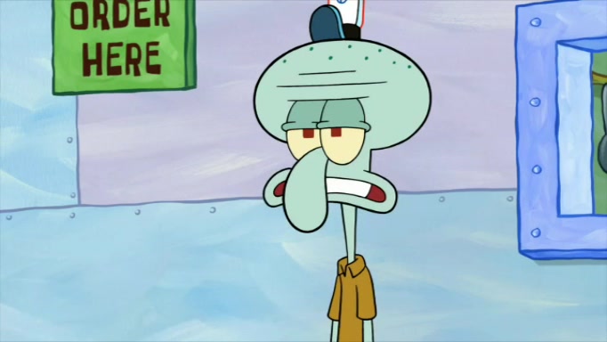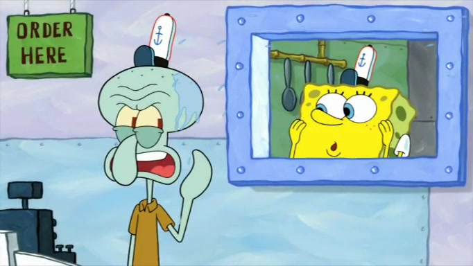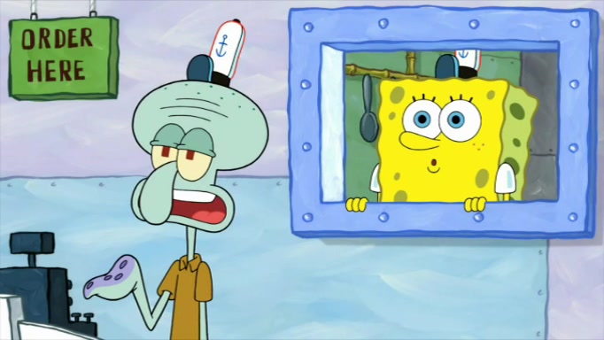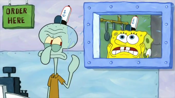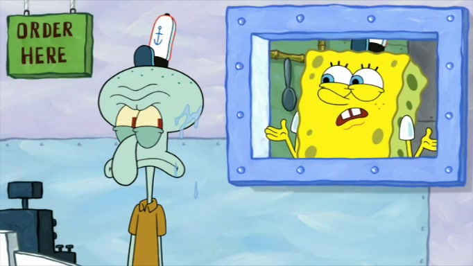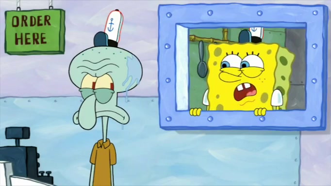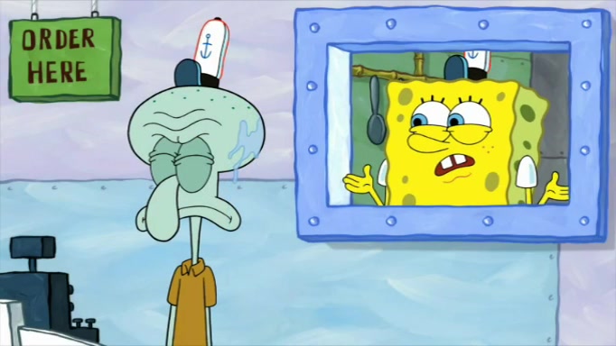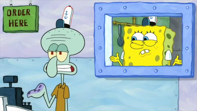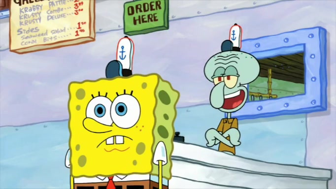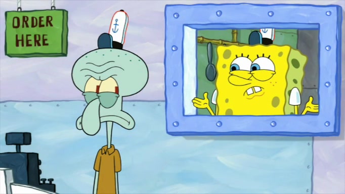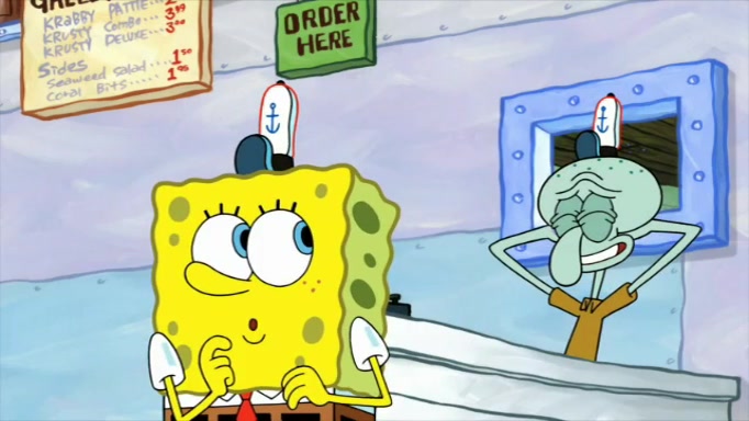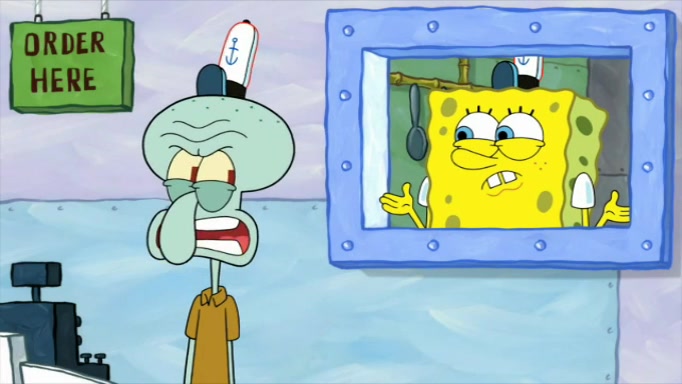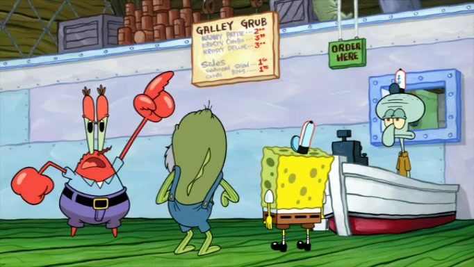 Squidward tells the customer to order something that is on the menu which causes Old Man Jenkins to get mad. SpongeBob tells Squidward that he'll handle it but soon realizes that he has no idea how to make a Rusty on Rye. SpongeBob asks Old Man Jenkins how to make it but the customer replies by telling him that it was on rye bread and that it was number nine on the menu. People in line for a Krabby Patty start to get impatient so Mr. Krabs asks Old Man Jenkins to leave. Squidward states that he is identified as an unsatisfied customer which upsets SpongeBob. Mr. Krabs tells SpongeBob that the Rusty on Rye was on the menu of an old restaurant called Rusty's Rib Eye, made by the owner Rusty Rickets who died 20 years ago.