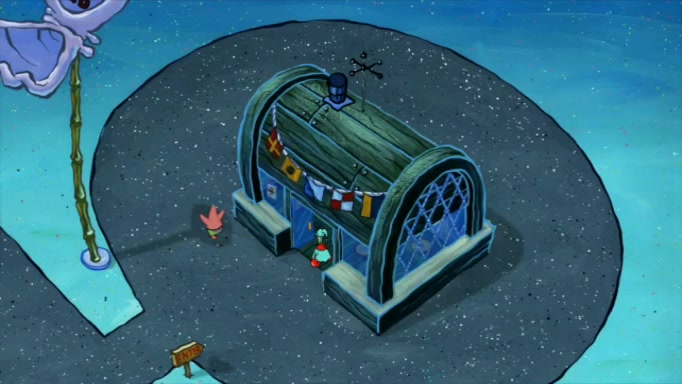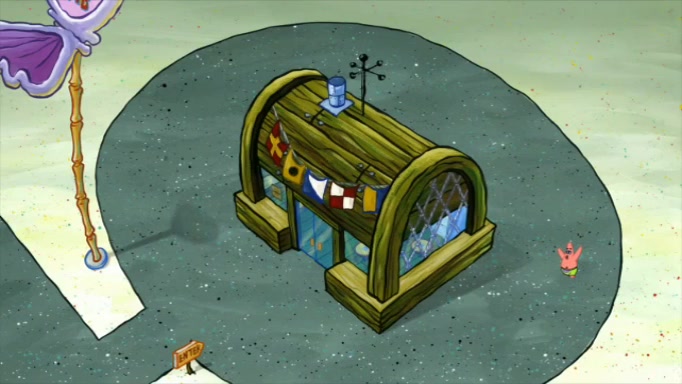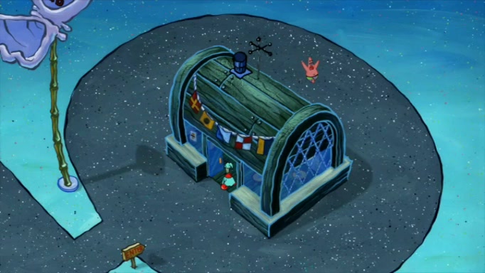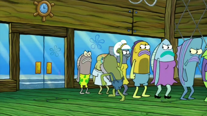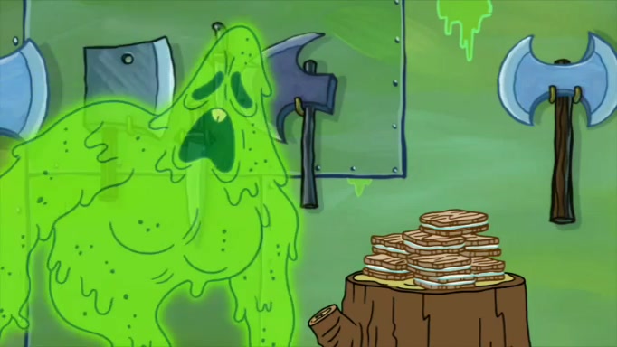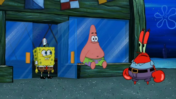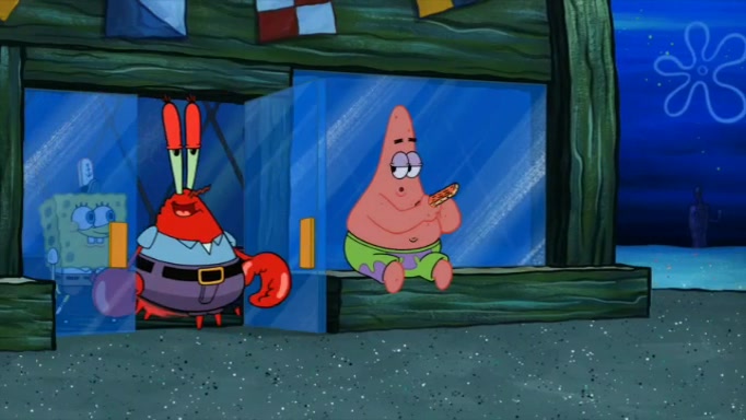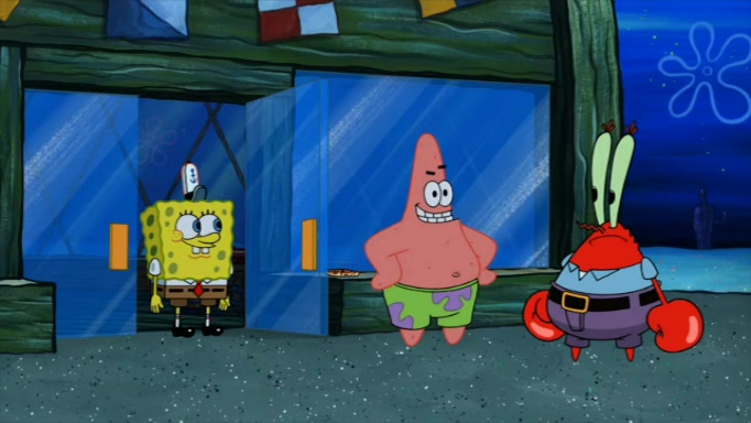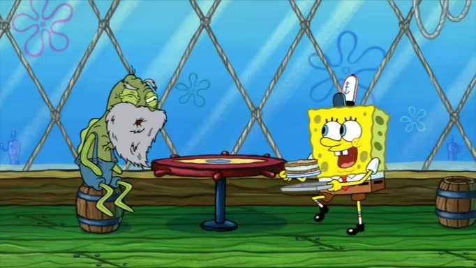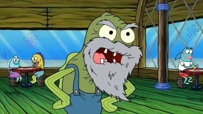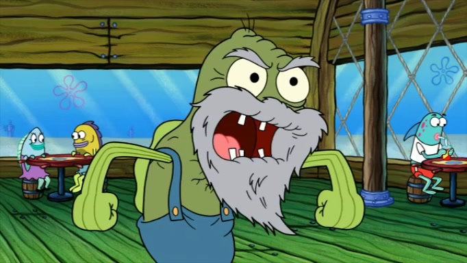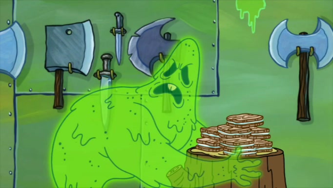 The next day, SpongeBob serves Old Man Jenkins the driftwood sandwich. After he takes a bite, SpongeBob is now satisfied that Old Man Jenkins is satisfied. Then, they hear Patrick still running around the Krusty Krab, moaning ghost sounds.