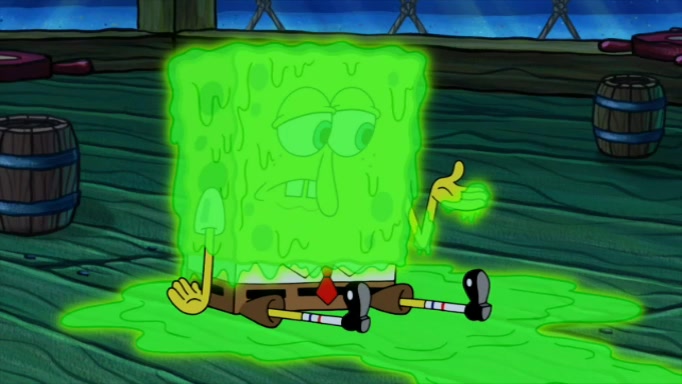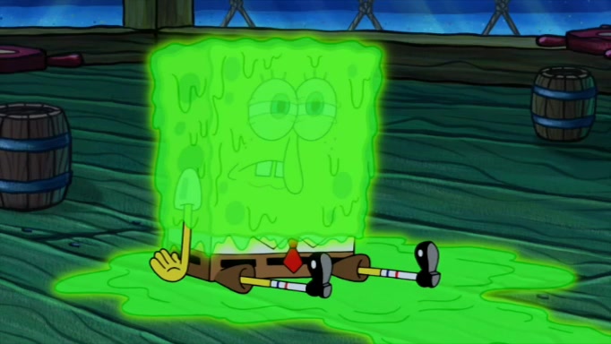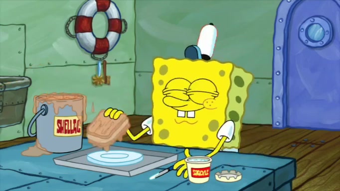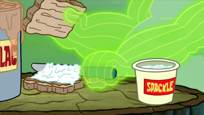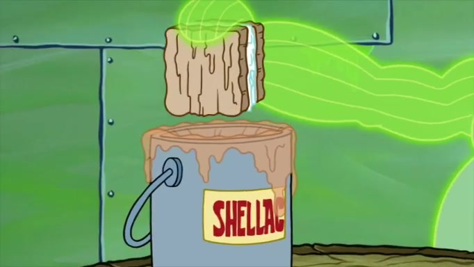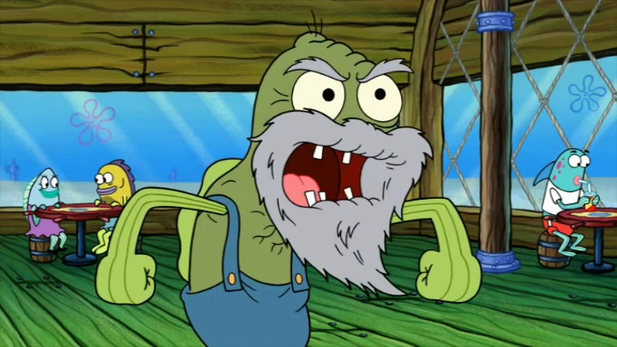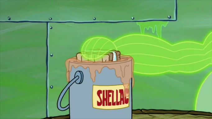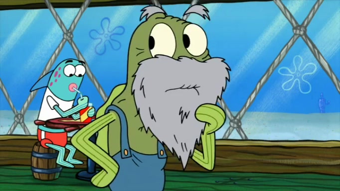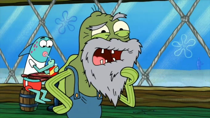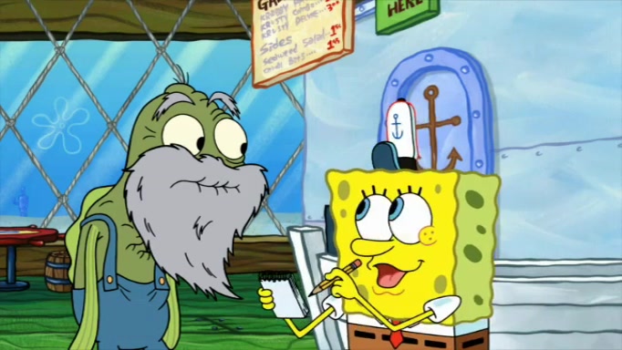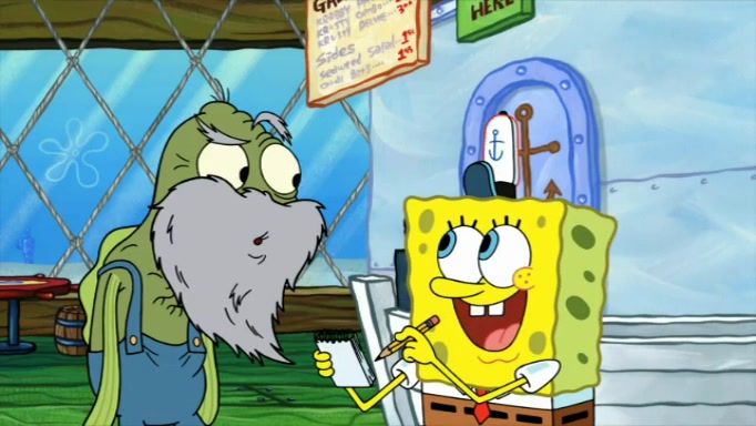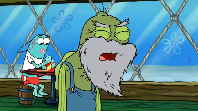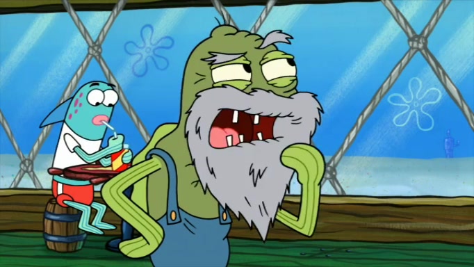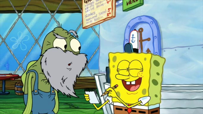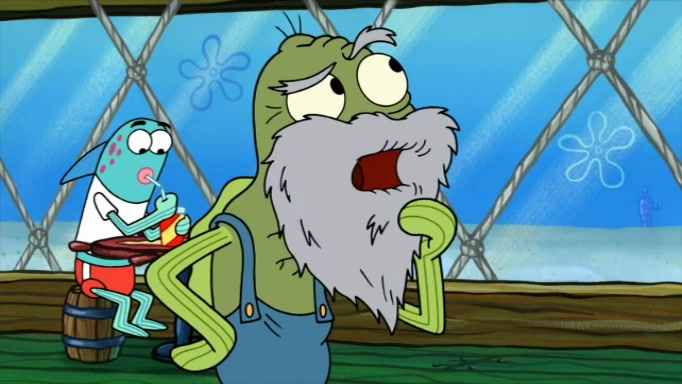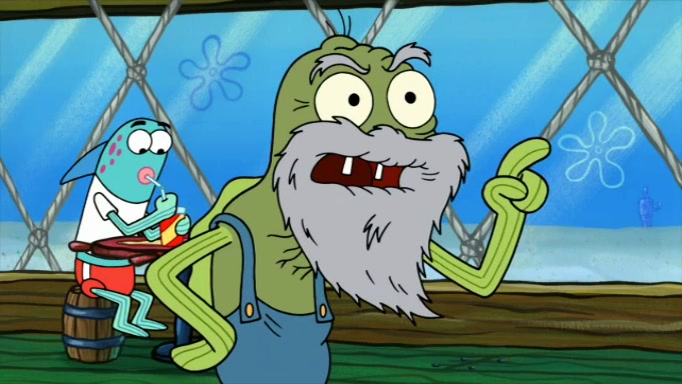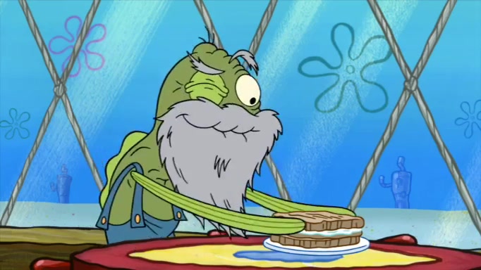 SpongeBob asks Rusty how to make a Rusty on Rye but both attempts to say and write down the recipe fail so, Rusty just shows SpongeBob how to make Old Man Jenkin's order. SpongeBob is surprised to see that the ingredients are driftwood, speckle, and shellac. He asks SpongeBob to try it and SpongeBob rejects it and says that it has an inaquaired taste.