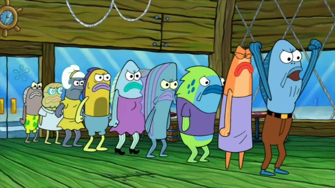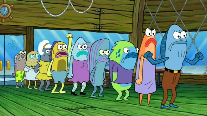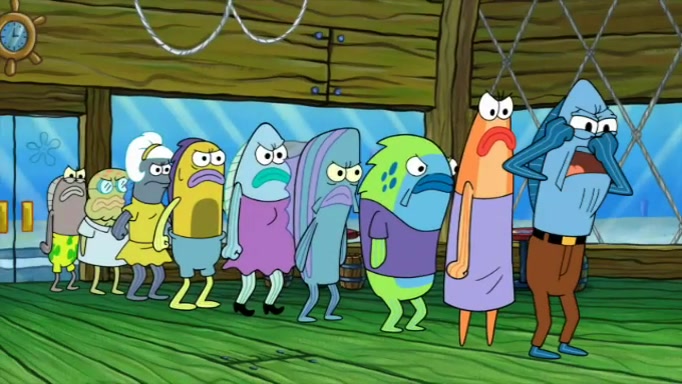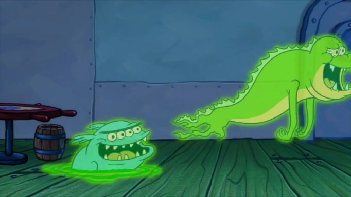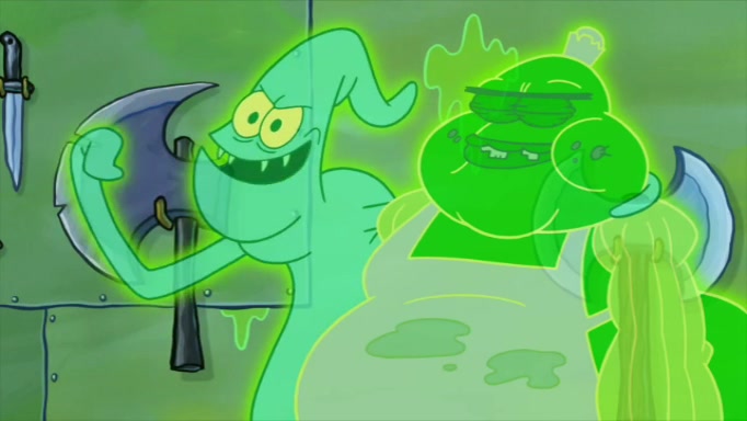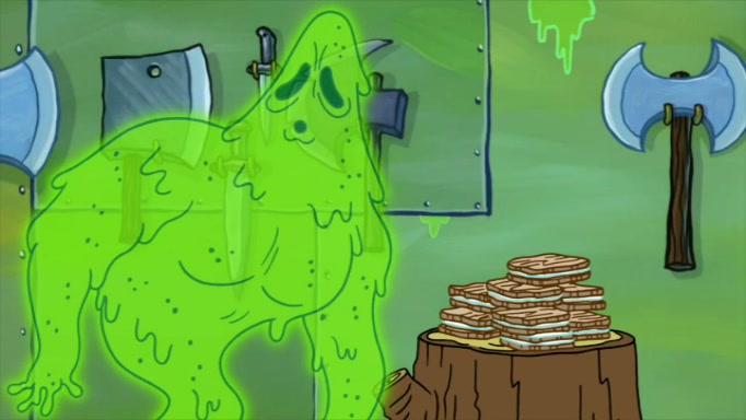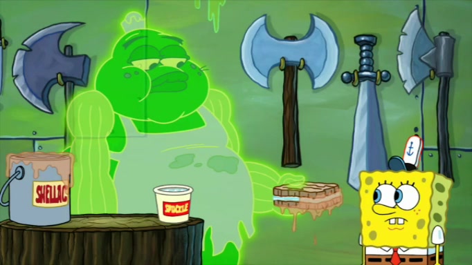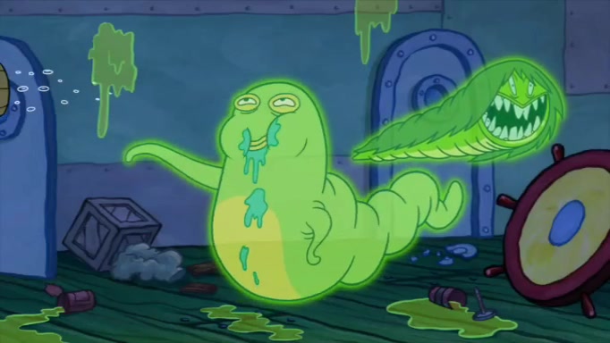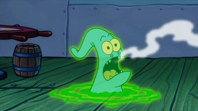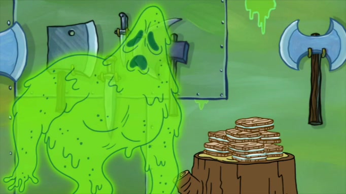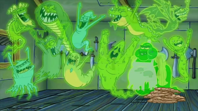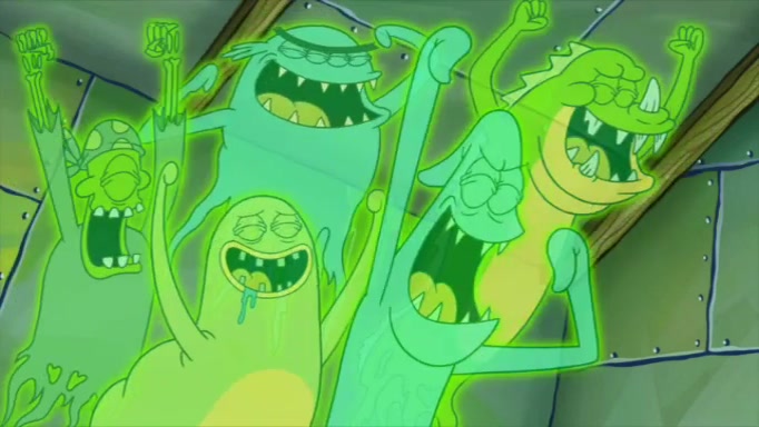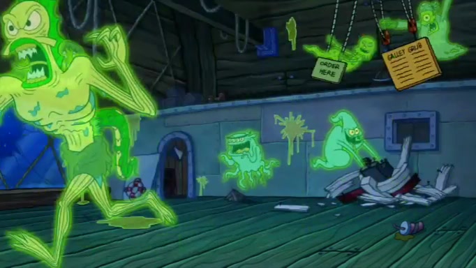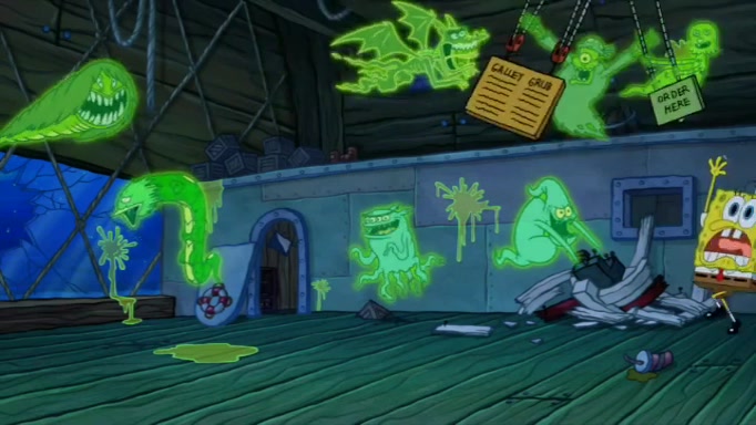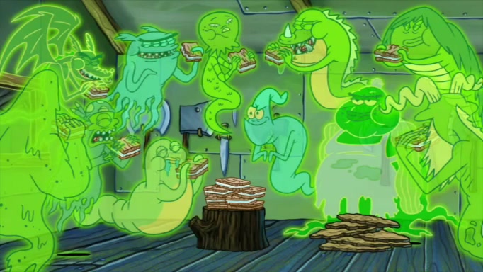 Because of the delicious smell of the Rusty on Rye, several ghosts infiltrate the Krusty Krab and eat the sandwiches.