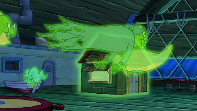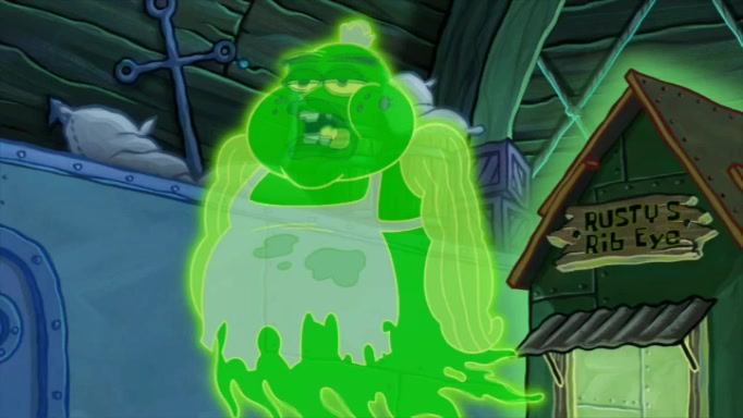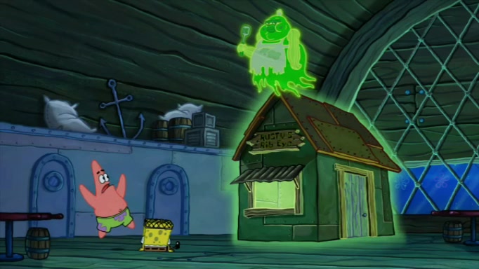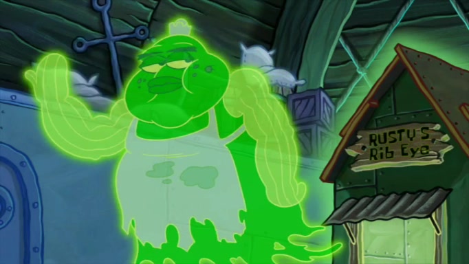 The episode starts off with SpongeBob and Squidward watching a seance on television in the Krusty Krab. When the séance is finished, Squidward is unimpressed of the plot, while SpongeBob is scared of it. Soon, Old Man Jenkins enters the restaurant and orders an unusual sandwich called a "Rusty on Rye."