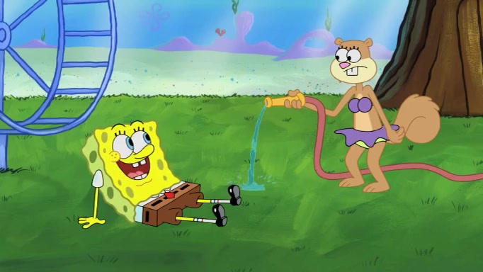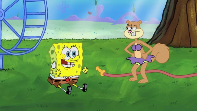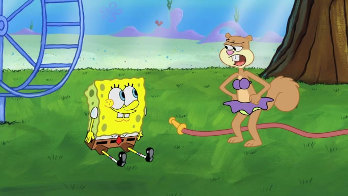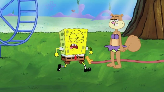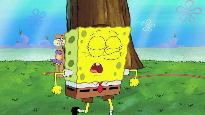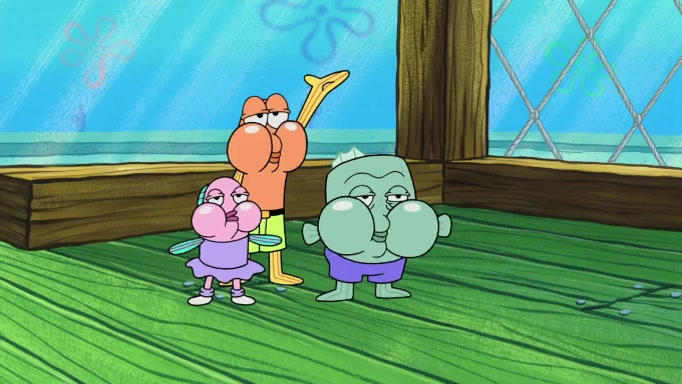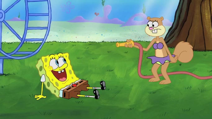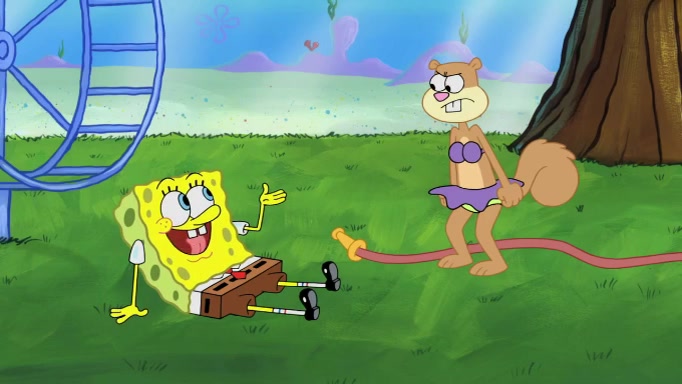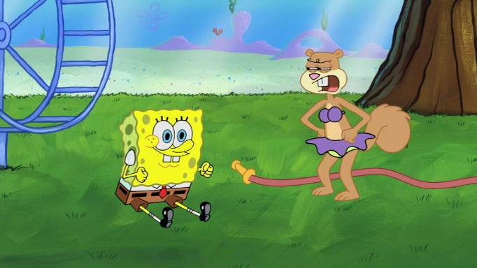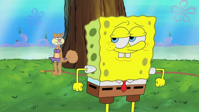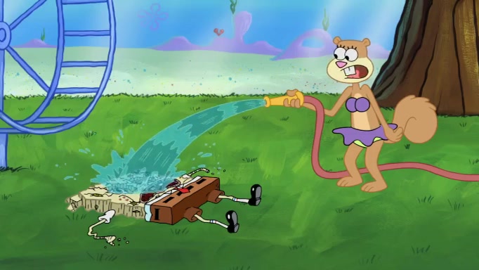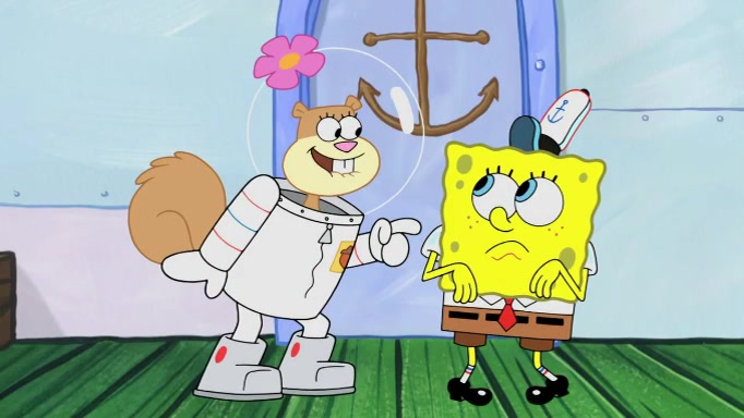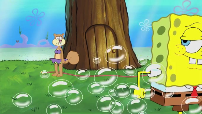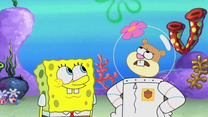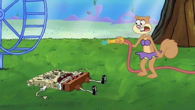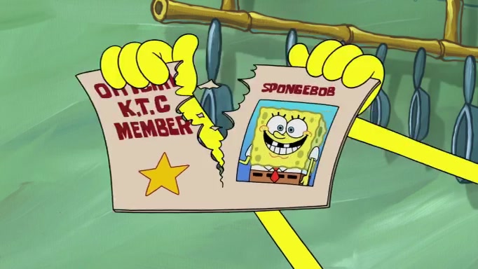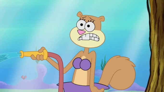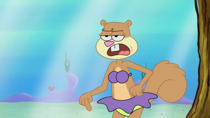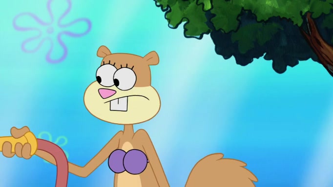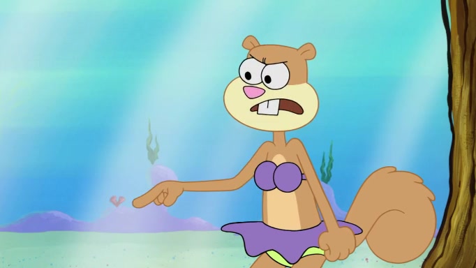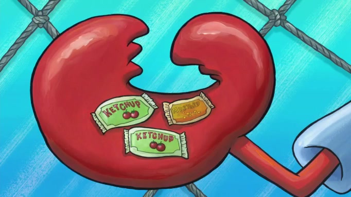 When everyone is admiring Kenny and basking in his glorious fame, Sandy shows up and asks him some questions to expose Kenny. He opens his mouth, but then almost drowns, so he takes out his oxygen tank and reveals himself. This causes everyone to turn against Kenny and Mr. Krabs takes back the ketchup packs.