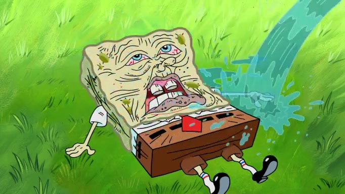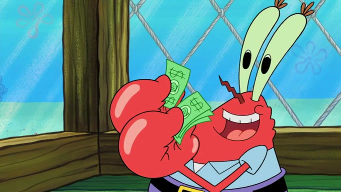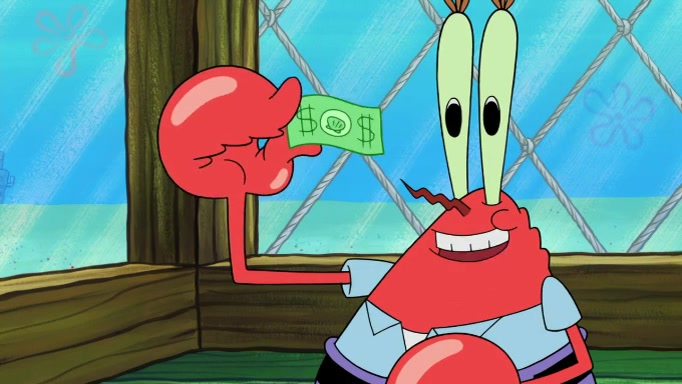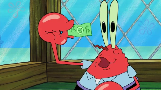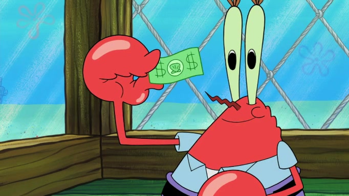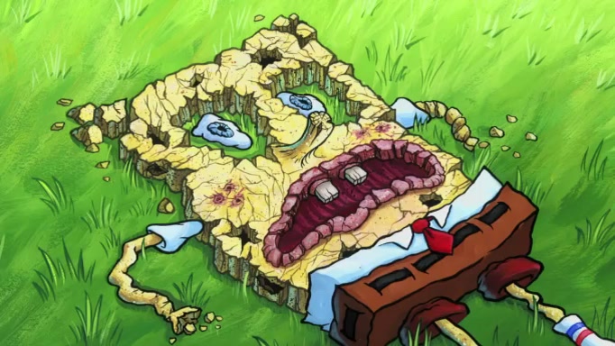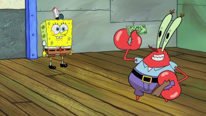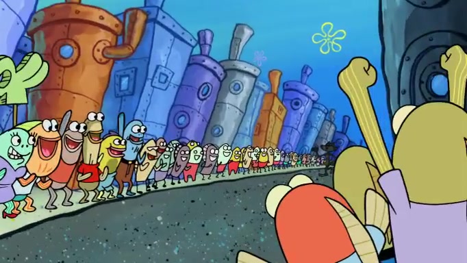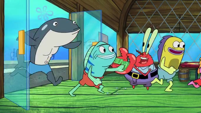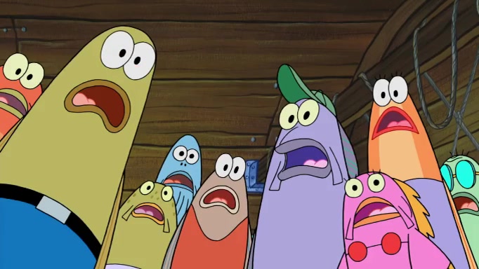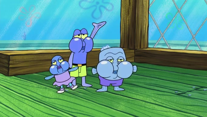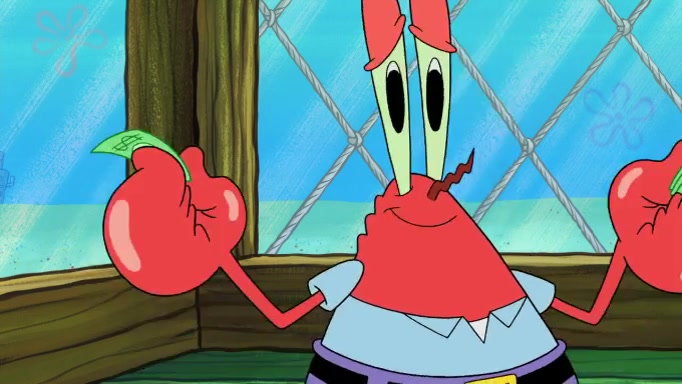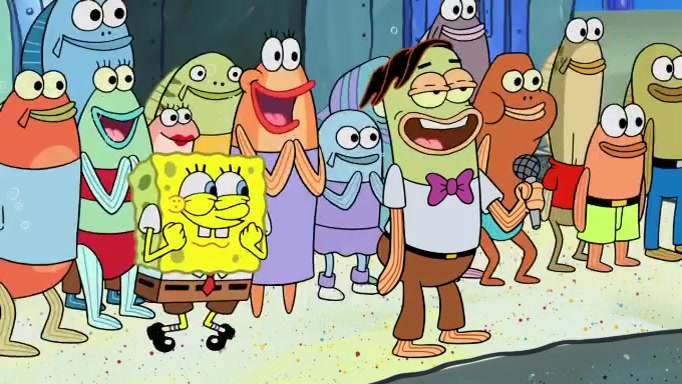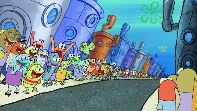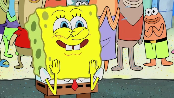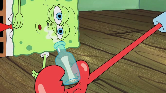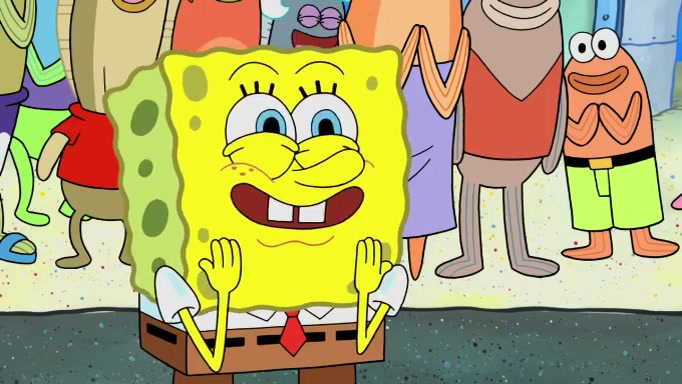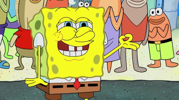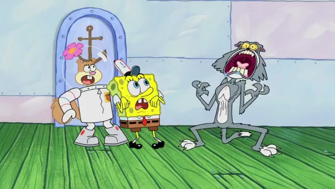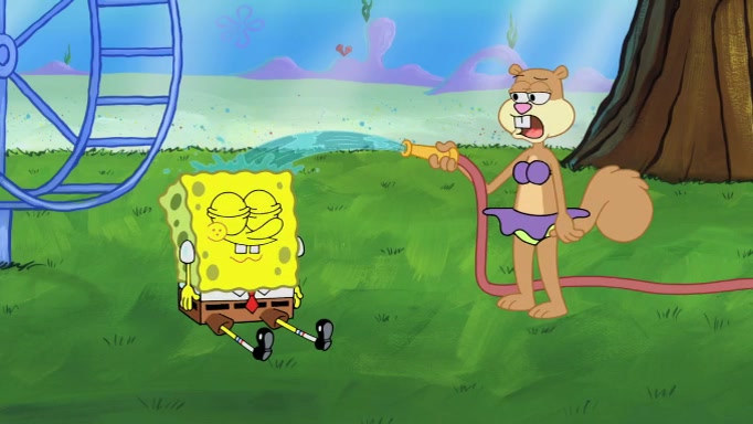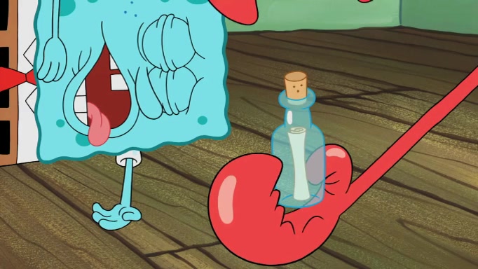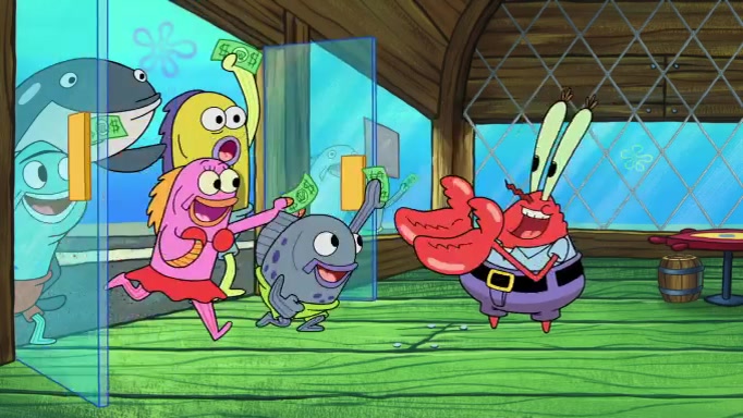 When everyone is admiring Kenny and basking in his glorious fame, Sandy shows up and asks him some questions to expose Kenny. He opens his mouth, but then almost drowns, so he takes out his oxygen tank and reveals himself. This causes everyone to turn against Kenny and Mr. Krabs takes back the ketchup packs.