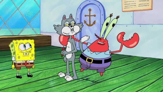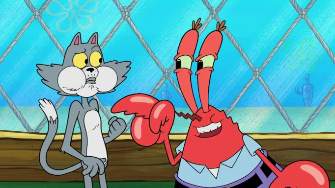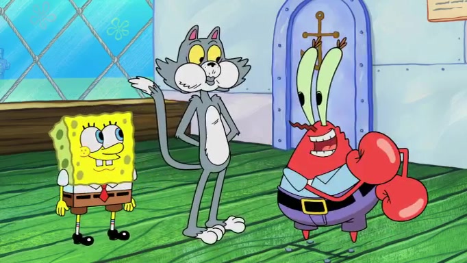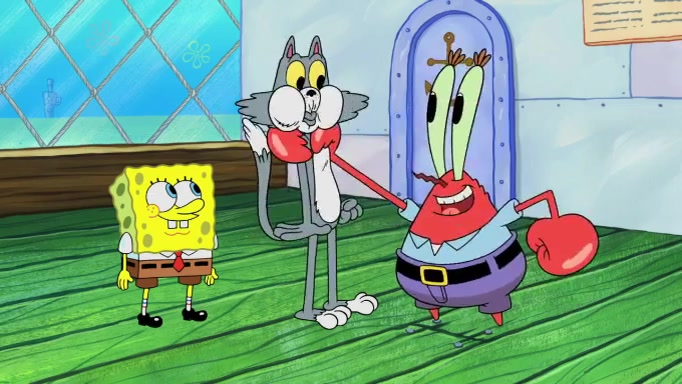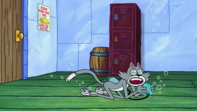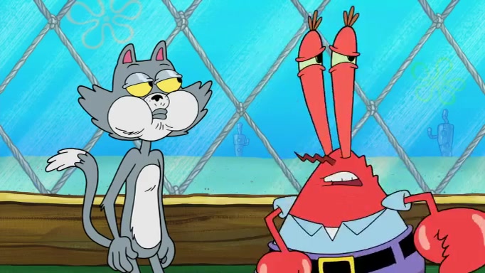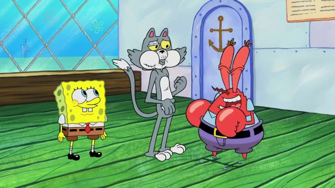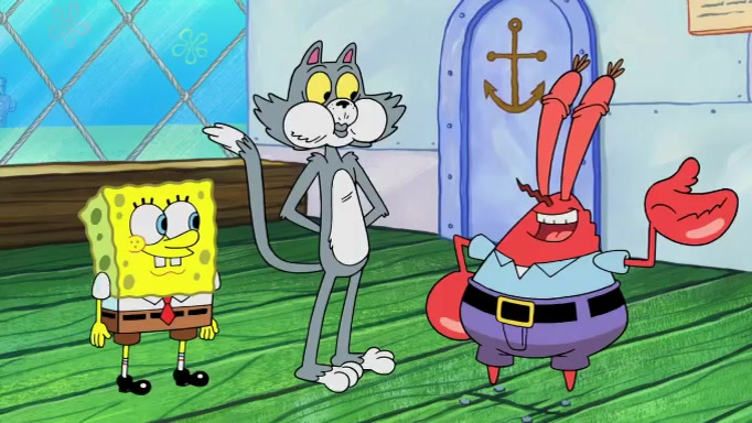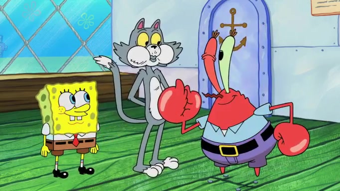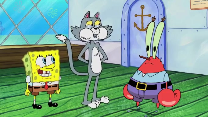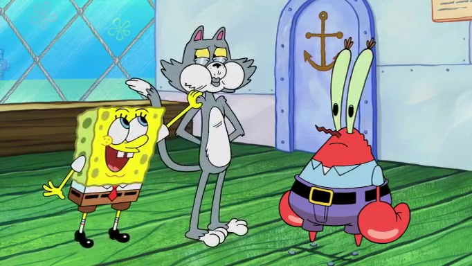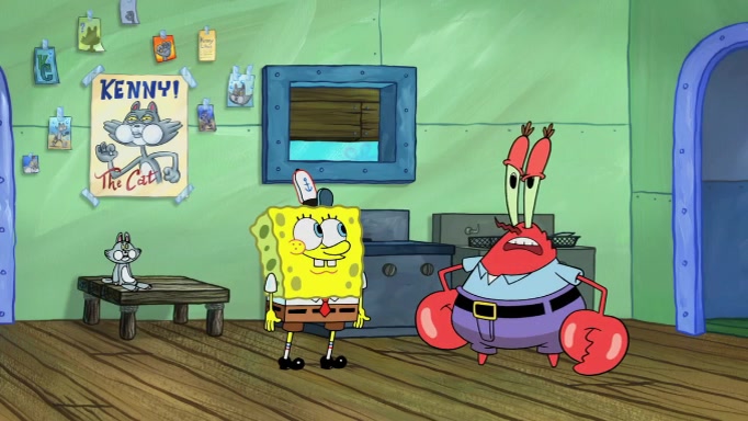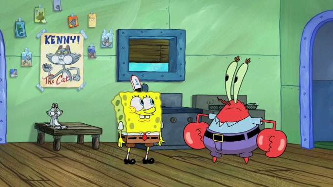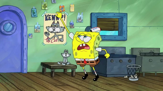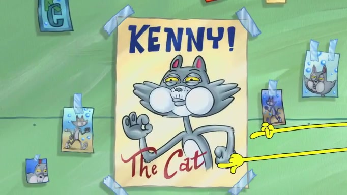 SpongeBob is excited because his brand new hero, Kenny the Cat, is coming to town. Kenny is a cat who can hold his breath underwater for a really long time. Mr. Krabs is excited about Kenny's visit to Bikini Bottom too, so he decides to have Kenny appear at the Krusty Krab and give him the manager's treatment. SpongeBob goes to Sandy's house and tells her the news about Kenny coming to town, but Sandy thinks Kenny is a fraud because he never talks.