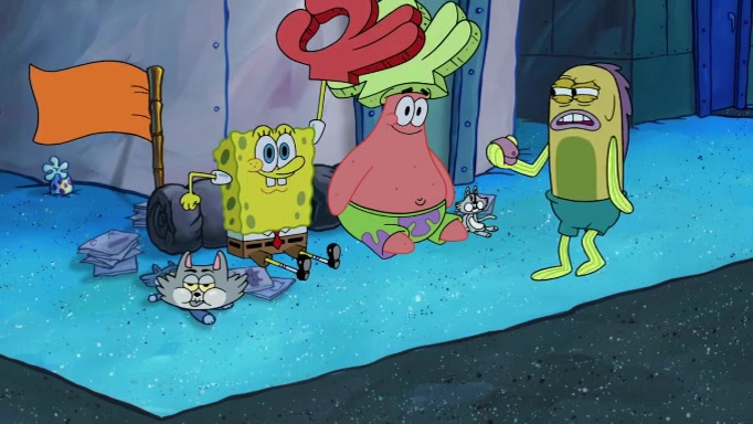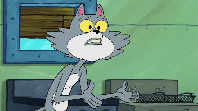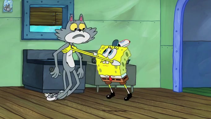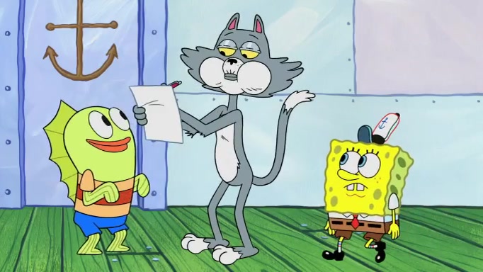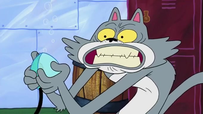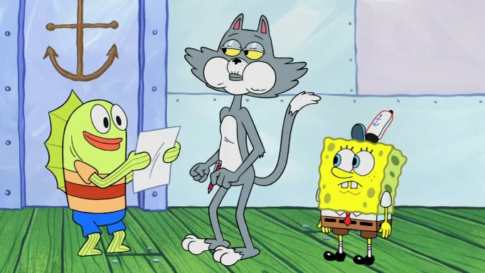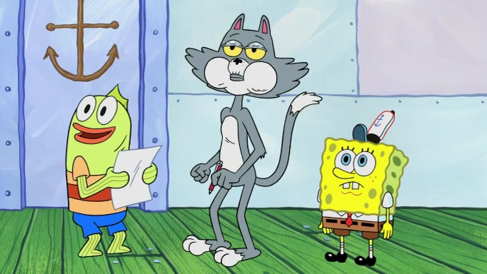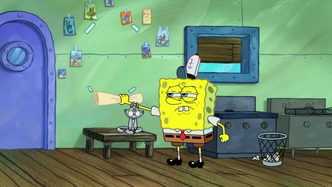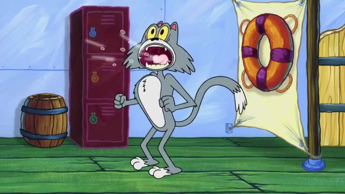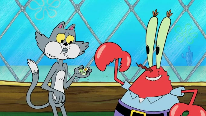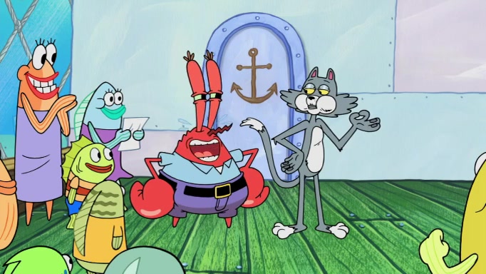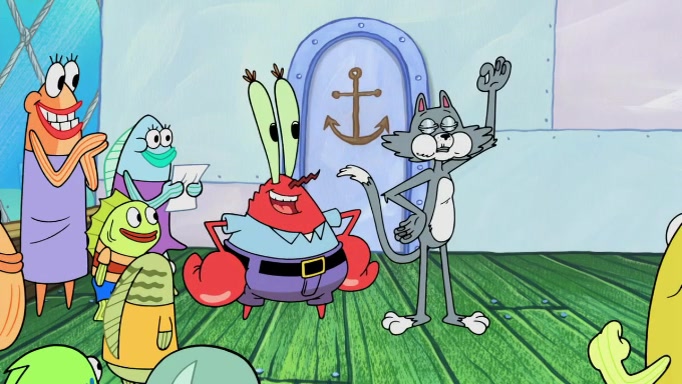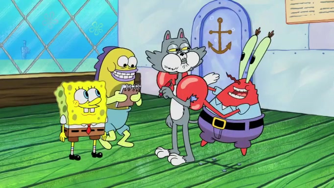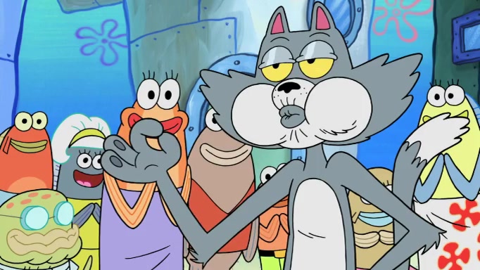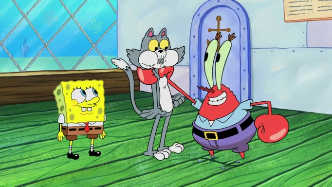 SpongeBob is excited because his brand new hero, Kenny the Cat, is coming to town. Kenny is a cat who can hold his breath underwater for a really long time. Mr. Krabs is excited about Kenny's visit to Bikini Bottom too, so he decides to have Kenny appear at the Krusty Krab and give him the manager's treatment. SpongeBob goes to Sandy's house and tells her the news about Kenny coming to town, but Sandy thinks Kenny is a fraud because he never talks.