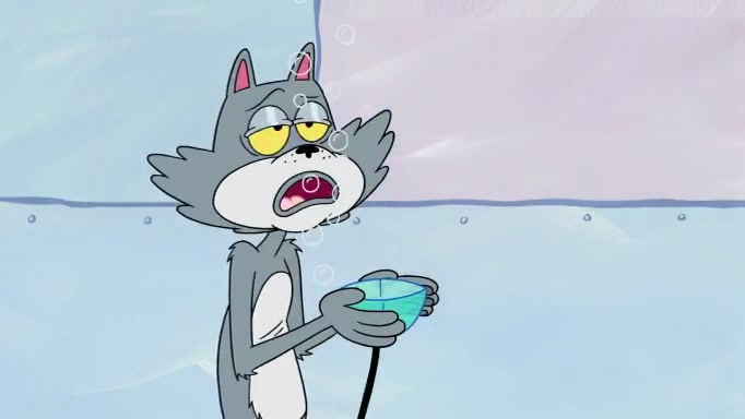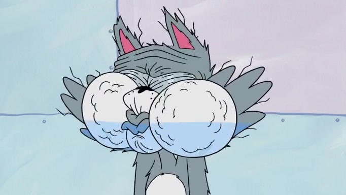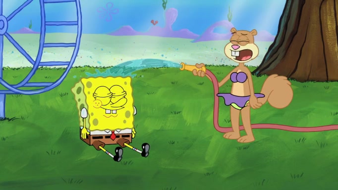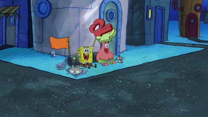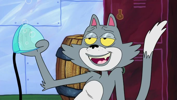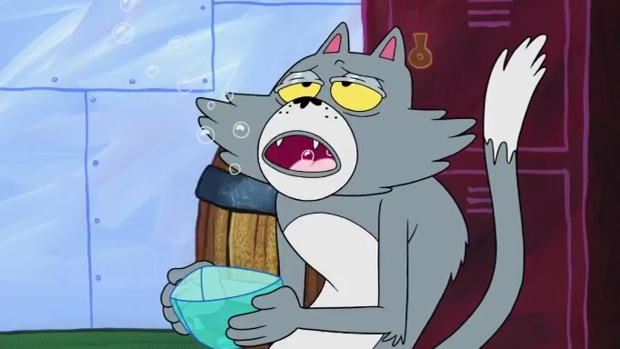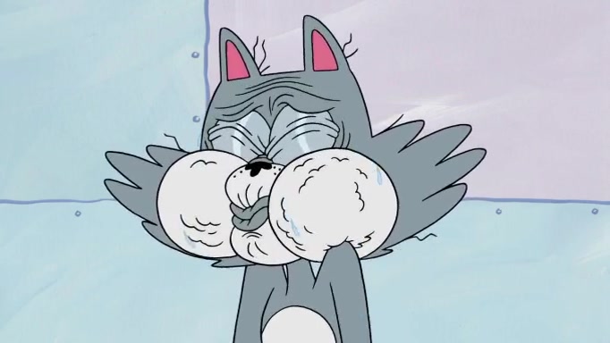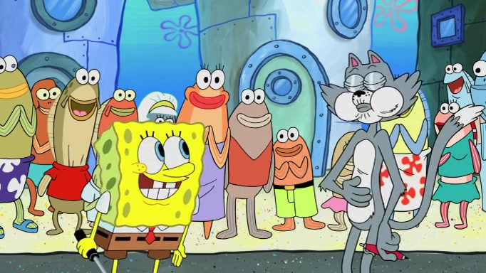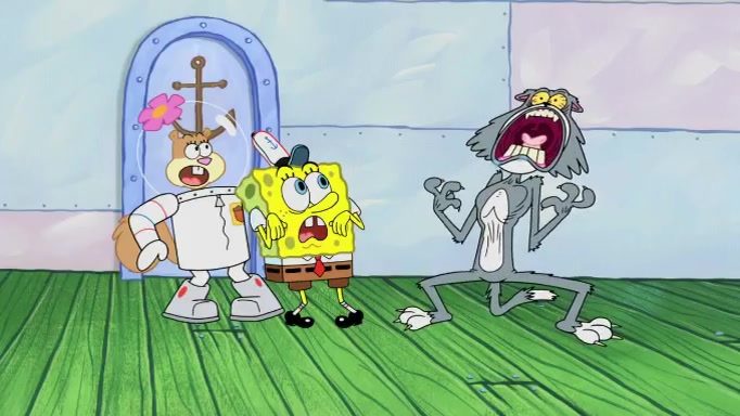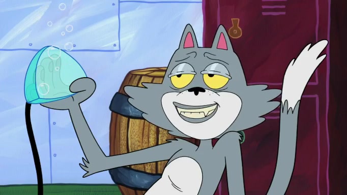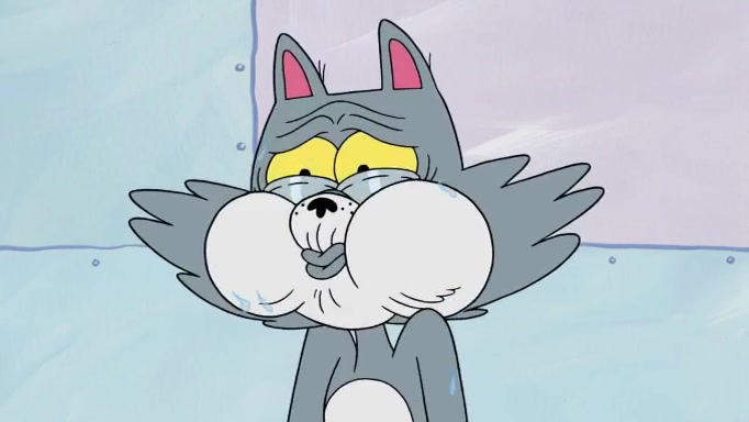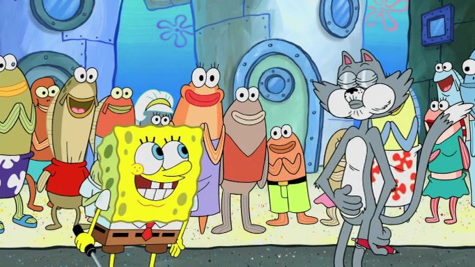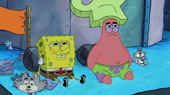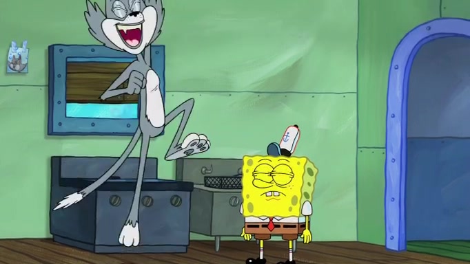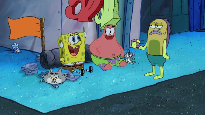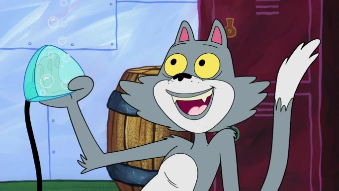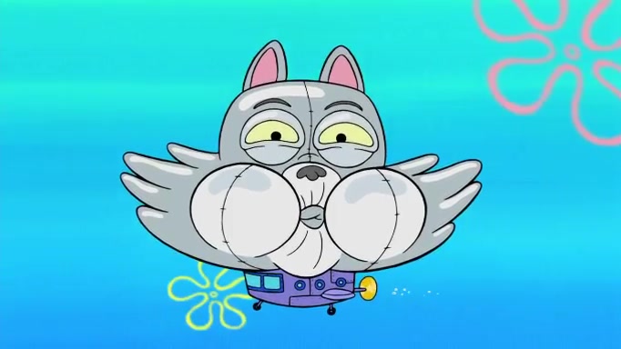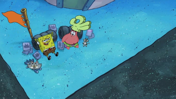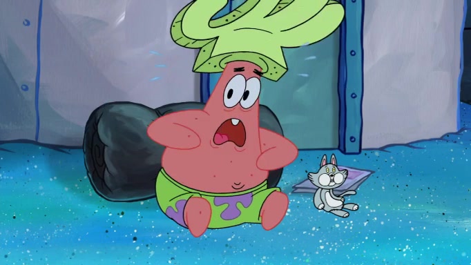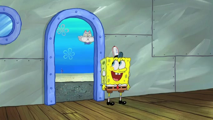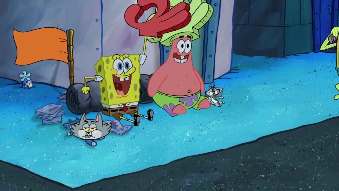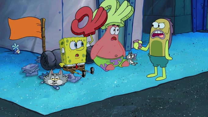However, SpongeBob decides to help Kenny by giving him a suit and helmet. He decides that Kenny should become a famous cat who lives underwater (like Sandy does). Kenny thanks SpongeBob for helping him, but sadly Sandy arrives, kicks Kenny and sends him back home to the surface. Sandy mentions that you can never trust a cat, but gets confused, saying, "Or is it a dog?" The episode then ends.