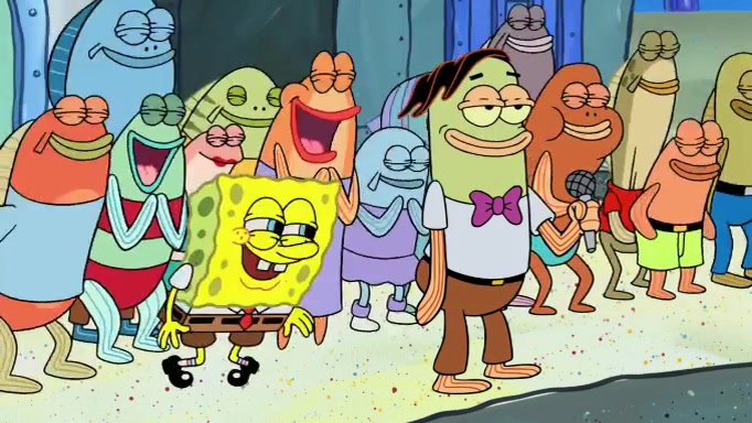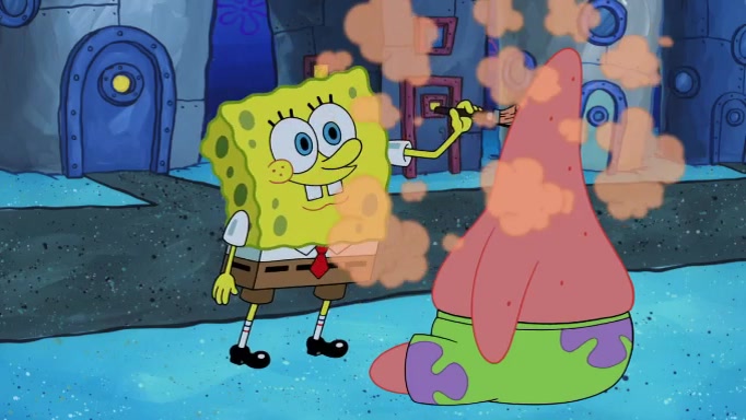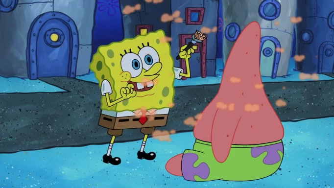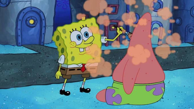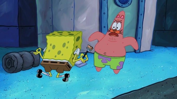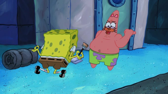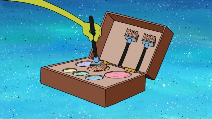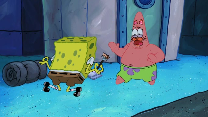 That night, SpongeBob and Patrick camp outside to see Kenny. They look at the stars shortly afterwards SpongeBob paints his and Patrick's face to look like Kenny. He shows Patrick other objects he brought along to idol his idol. Patrick then gets creeped out by the amount of idol worship and leaves.