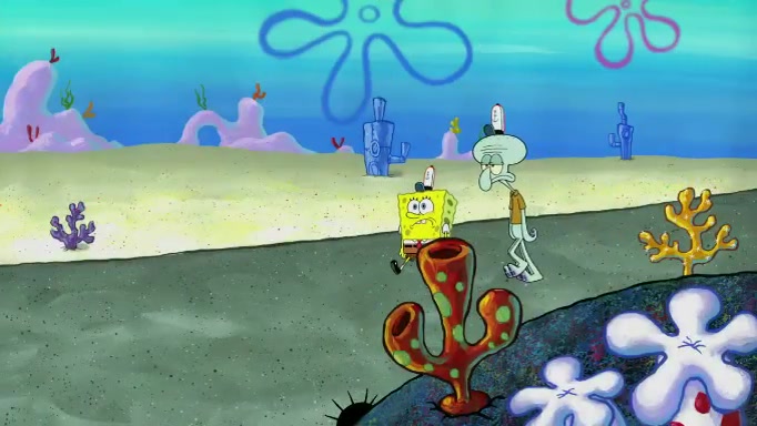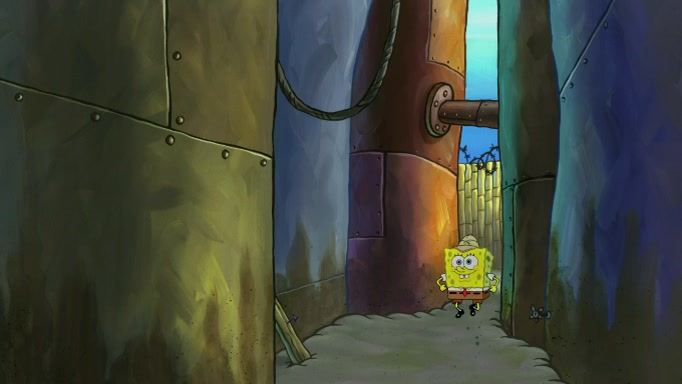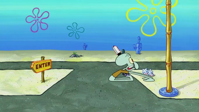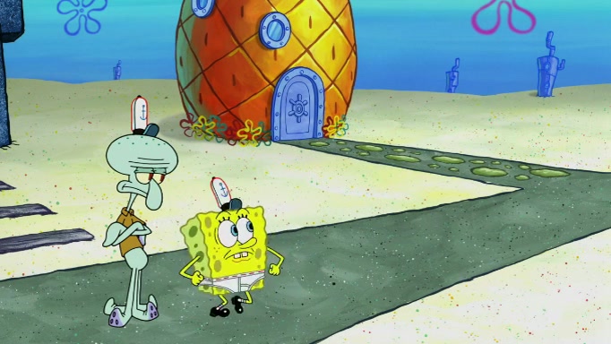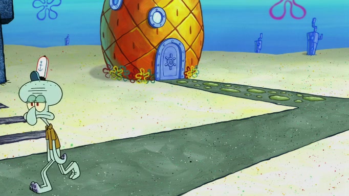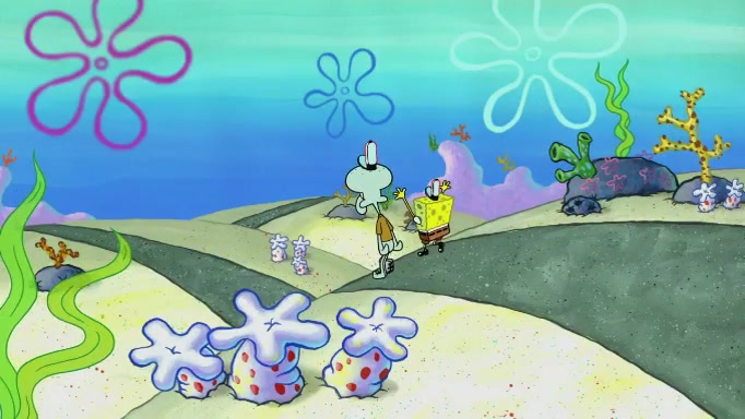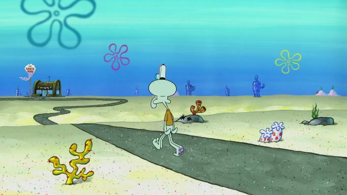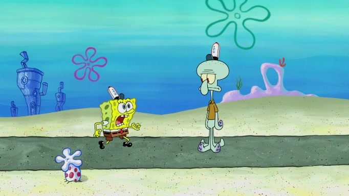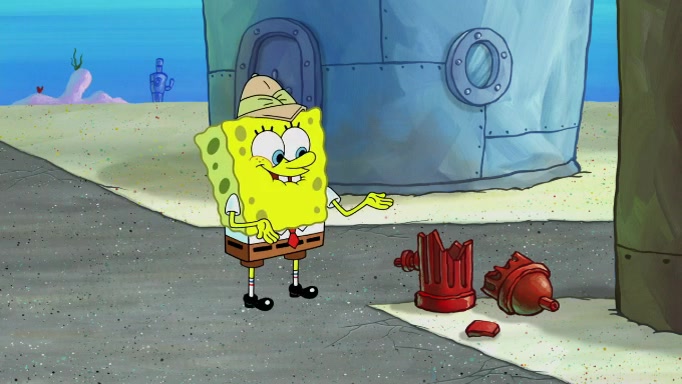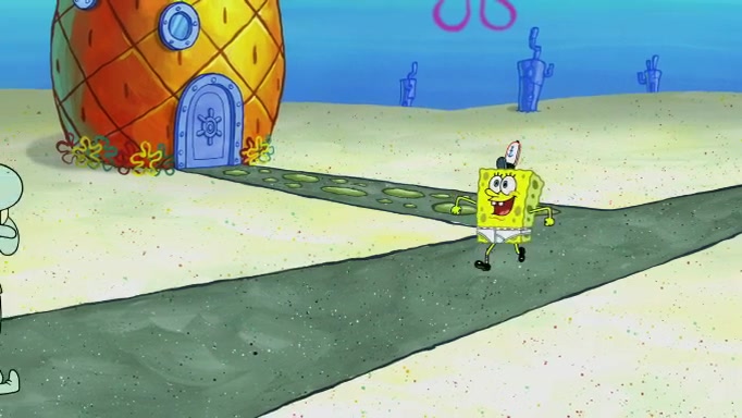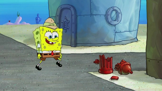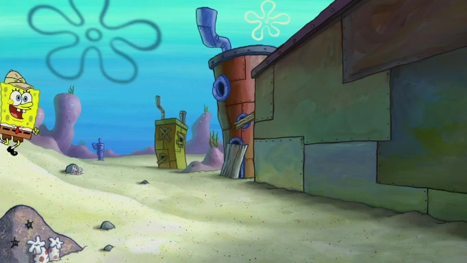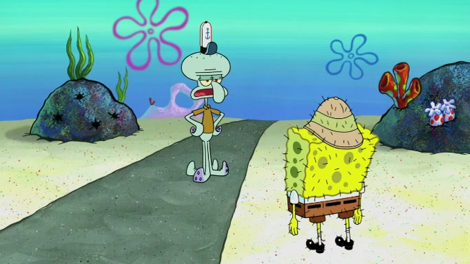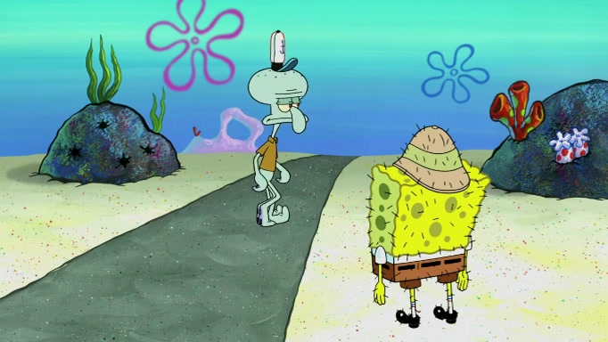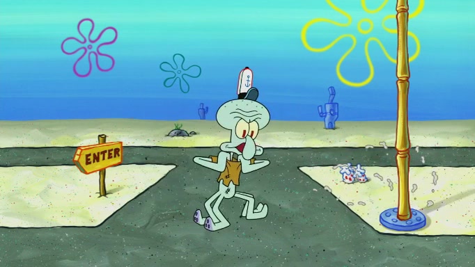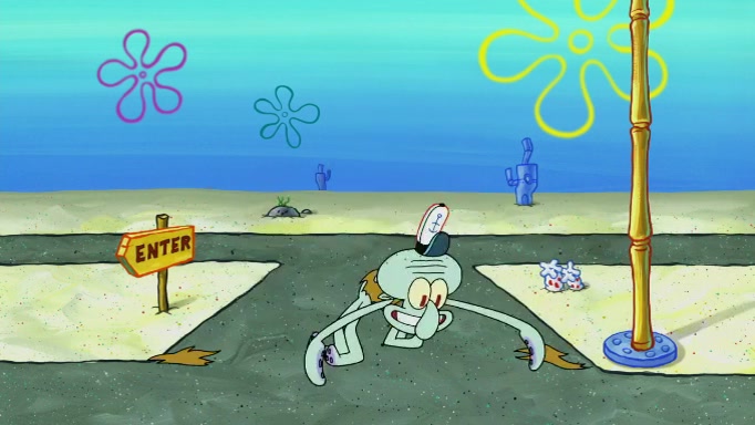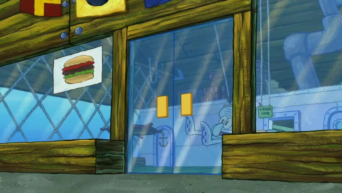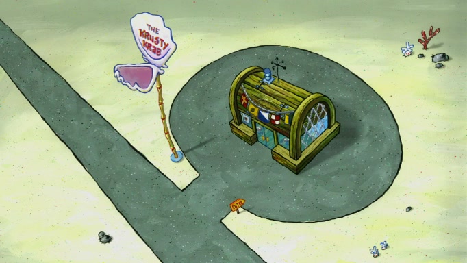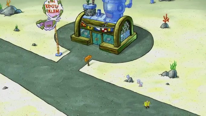 SpongeBob and Squidward are walking to work. SpongeBob feels it was taking a bit long and thinks he should take a shortcut. Squidward tries to explain why SpongeBob shouldn't but SpongeBob still thinks he should take a shortcut. SpongeBob asks Squidward if he wants to join but Squidward declines so SpongeBob takes a different path thinking he can find a shorter way to get there but bumps into Squidward walking in the normal path. He then tries to do another shortcut then he finds himself in an unusual part of the town but thinks it was a great shortcut and tells himself not to forget his wilderness training and tries to remember what Sandy said and then proceeds to find the Krusty Krab and tries to do what he learned from wilderness training and starts with local landmarks and assigns a broken fire hydrant as his landmark. He then spots a sign that appears to be the Krusty Krab sign and climbs over a fence and runs to it. Then the scene cuts to the Krusty Krab with Squidward relaxing in his work station and then Mr. Krabs appears telling Squidward to stop lazing around even though there were no customers.