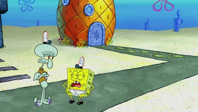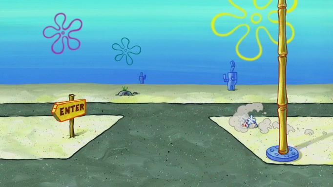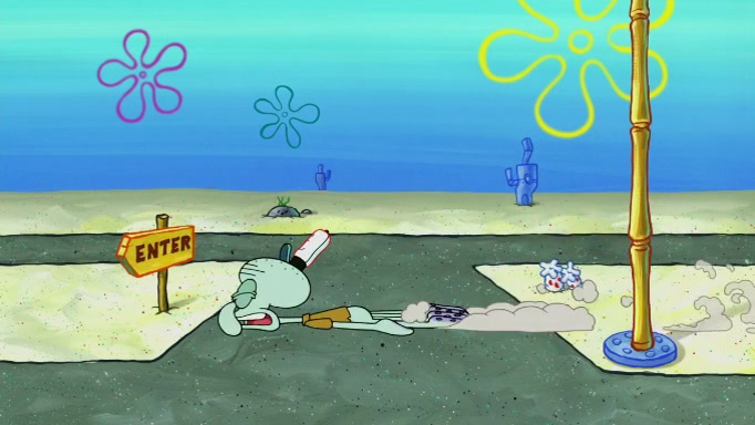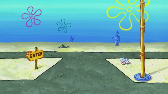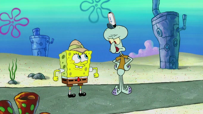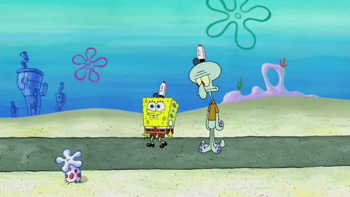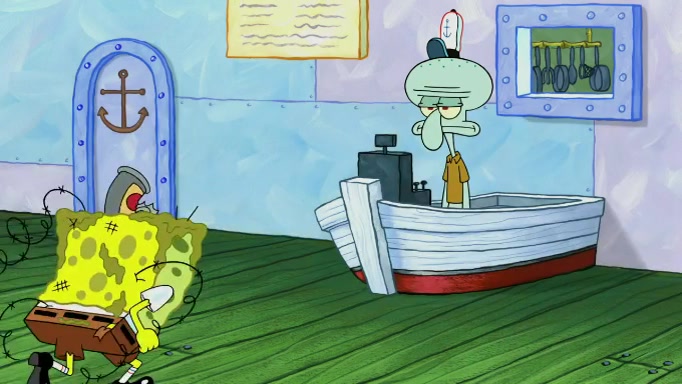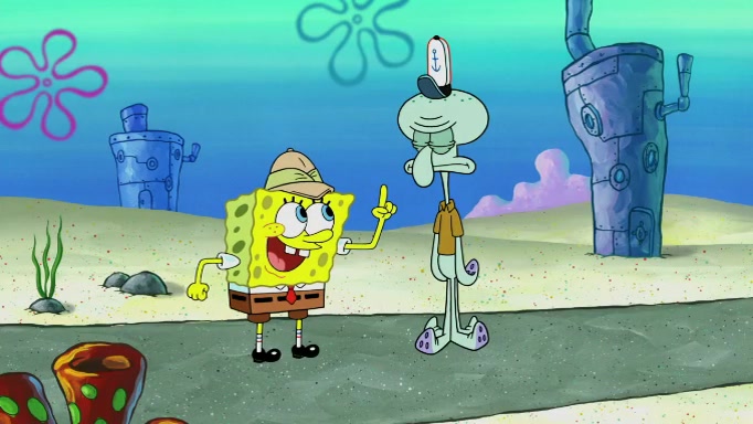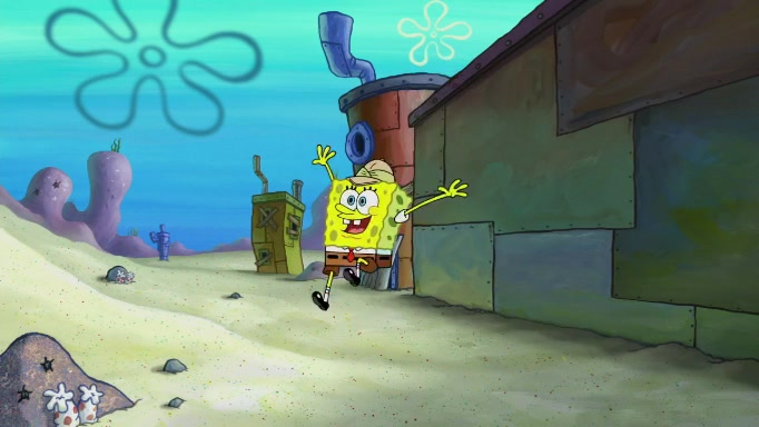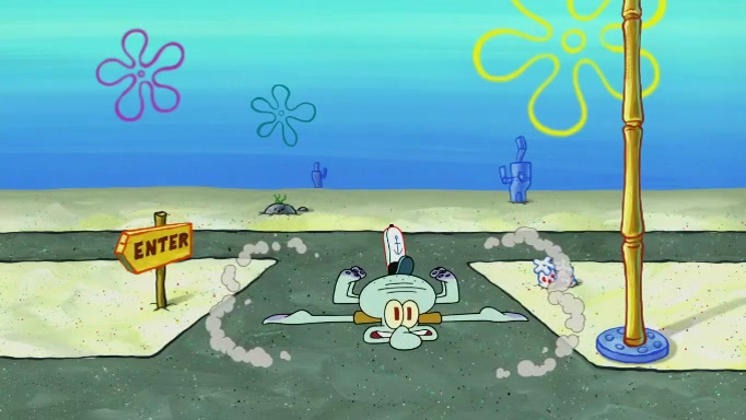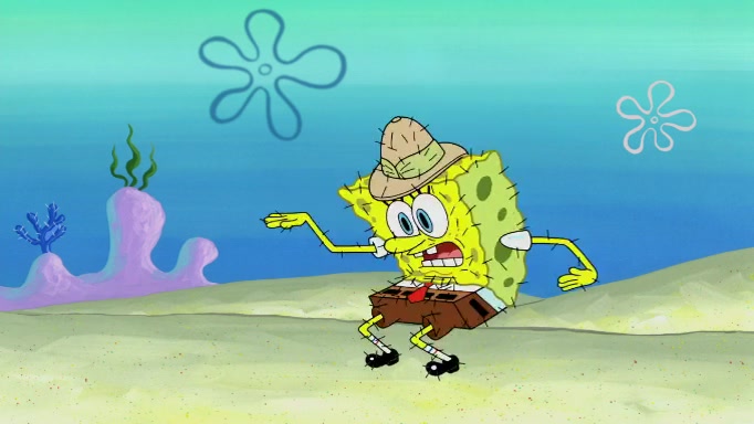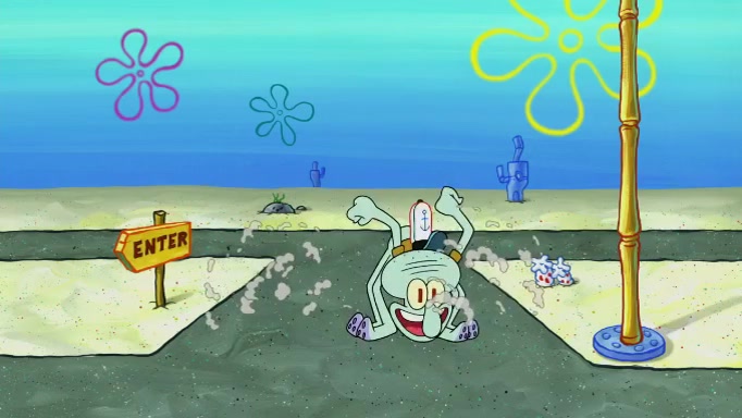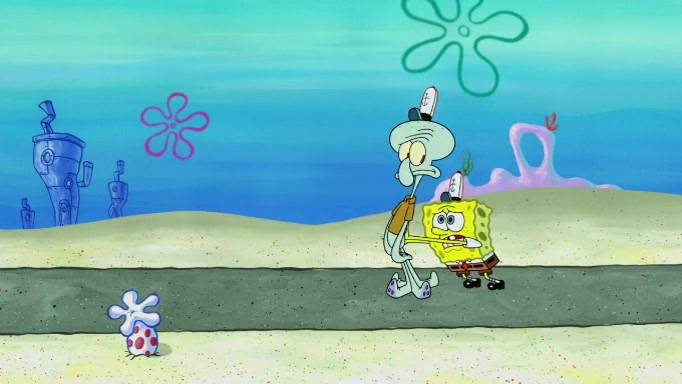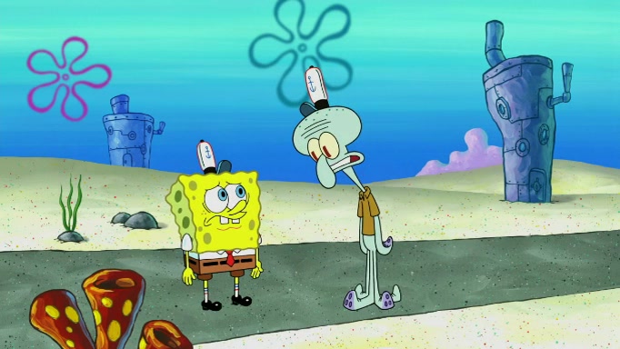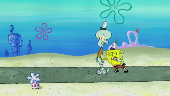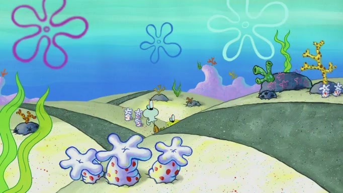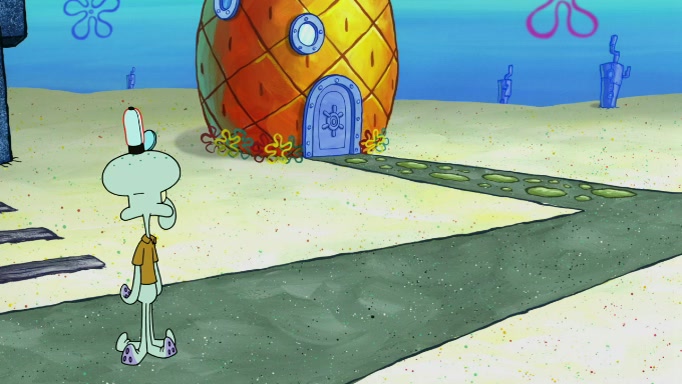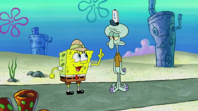 SpongeBob and Squidward are walking to work. SpongeBob feels it was taking a bit long and thinks he should take a shortcut. Squidward tries to explain why SpongeBob shouldn't but SpongeBob still thinks he should take a shortcut. SpongeBob asks Squidward if he wants to join but Squidward declines so SpongeBob takes a different path thinking he can find a shorter way to get there but bumps into Squidward walking in the normal path. He then tries to do another shortcut then he finds himself in an unusual part of the town but thinks it was a great shortcut and tells himself not to forget his wilderness training and tries to remember what Sandy said and then proceeds to find the Krusty Krab and tries to do what he learned from wilderness training and starts with local landmarks and assigns a broken fire hydrant as his landmark. He then spots a sign that appears to be the Krusty Krab sign and climbs over a fence and runs to it. Then the scene cuts to the Krusty Krab with Squidward relaxing in his work station and then Mr. Krabs appears telling Squidward to stop lazing around even though there were no customers.
