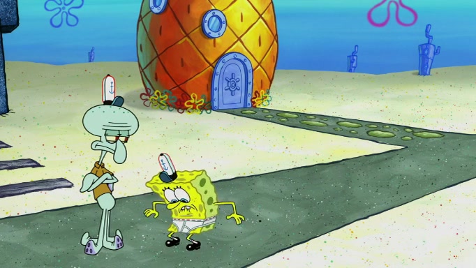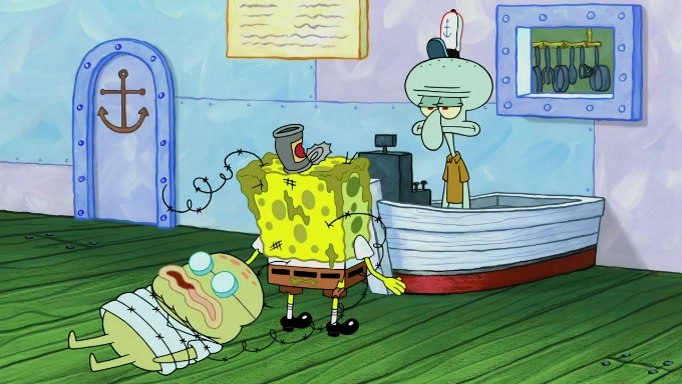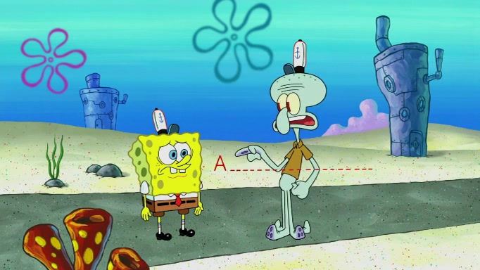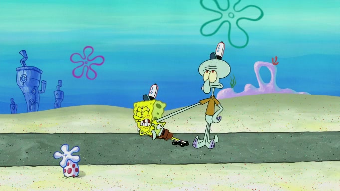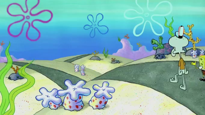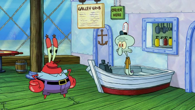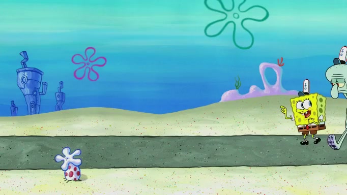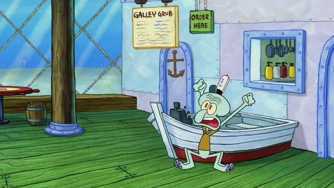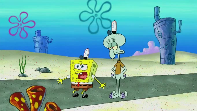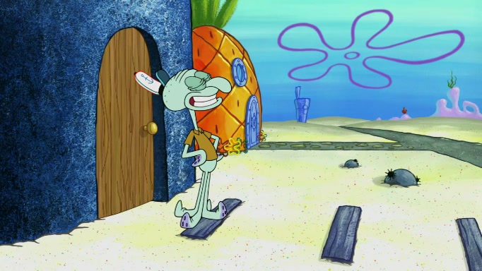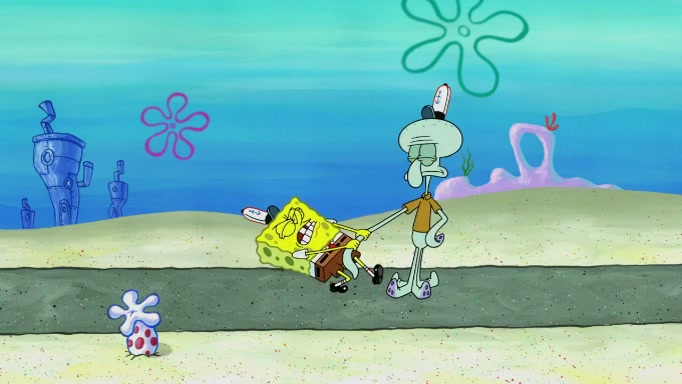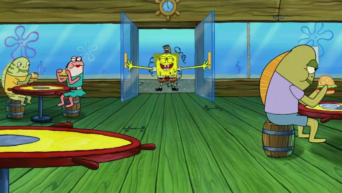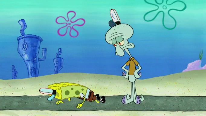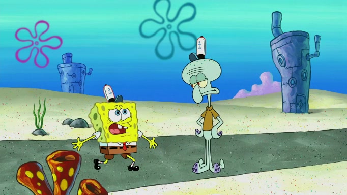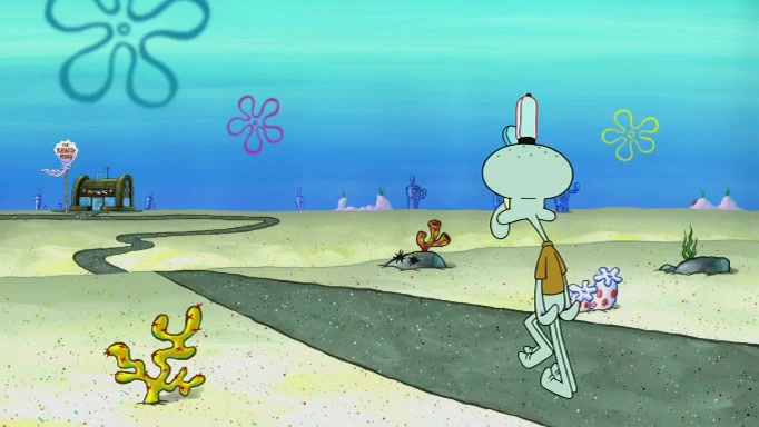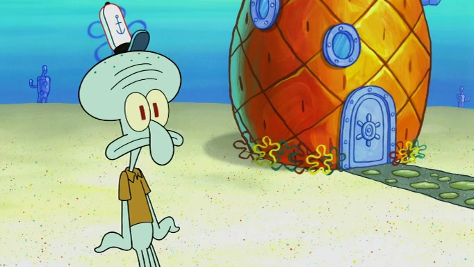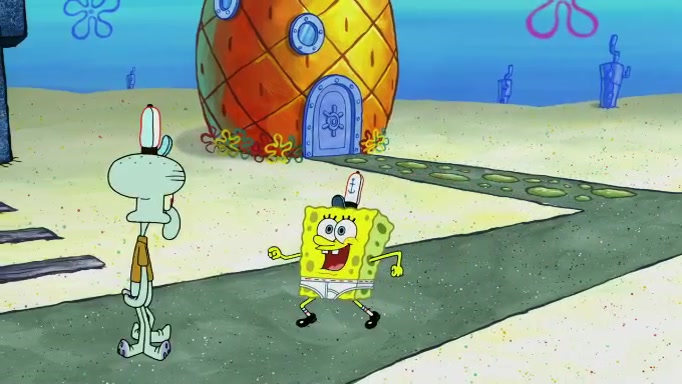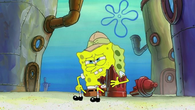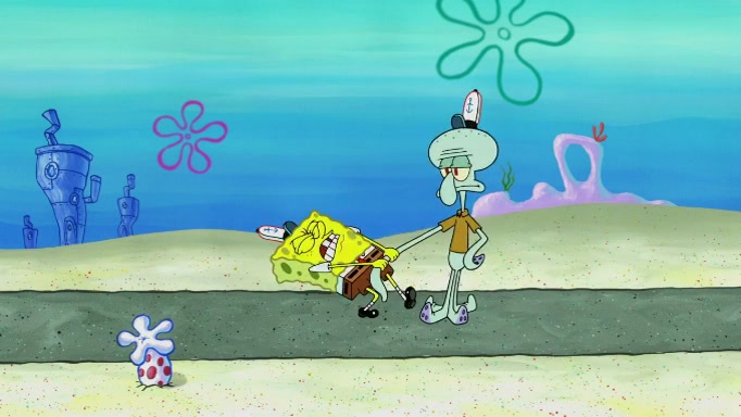 SpongeBob and Squidward are walking to work. SpongeBob feels it was taking a bit long and thinks he should take a shortcut. Squidward tries to explain why SpongeBob shouldn't but SpongeBob still thinks he should take a shortcut. SpongeBob asks Squidward if he wants to join but Squidward declines so SpongeBob takes a different path thinking he can find a shorter way to get there but bumps into Squidward walking in the normal path. He then tries to do another shortcut then he finds himself in an unusual part of the town but thinks it was a great shortcut and tells himself not to forget his wilderness training and tries to remember what Sandy said and then proceeds to find the Krusty Krab and tries to do what he learned from wilderness training and starts with local landmarks and assigns a broken fire hydrant as his landmark. He then spots a sign that appears to be the Krusty Krab sign and climbs over a fence and runs to it. Then the scene cuts to the Krusty Krab with Squidward relaxing in his work station and then Mr. Krabs appears telling Squidward to stop lazing around even though there were no customers.
