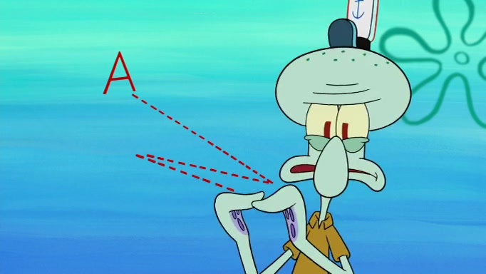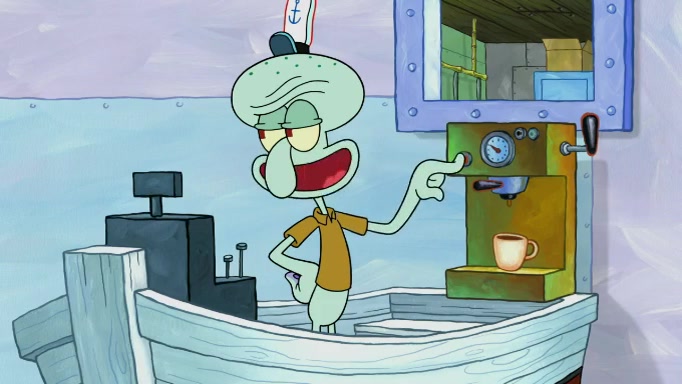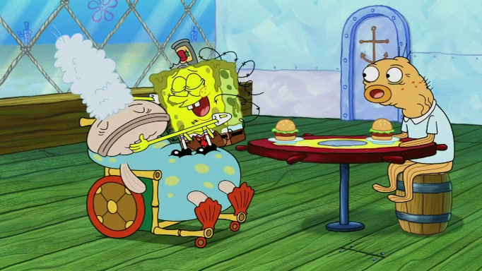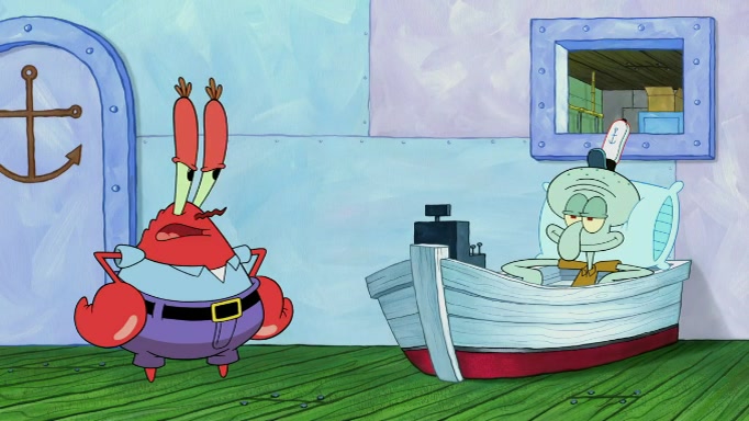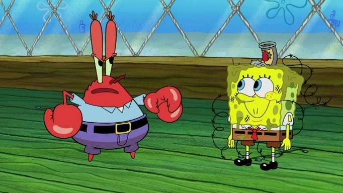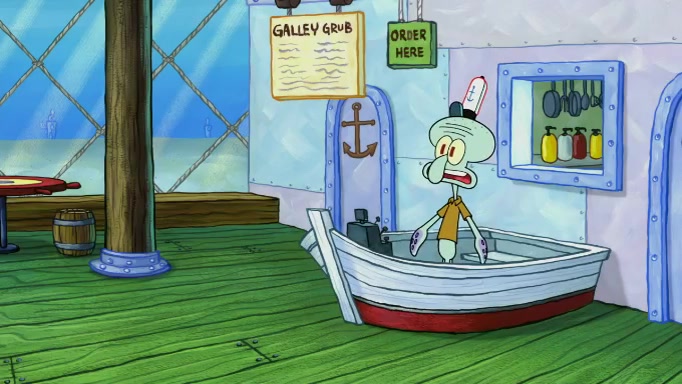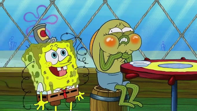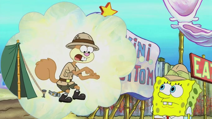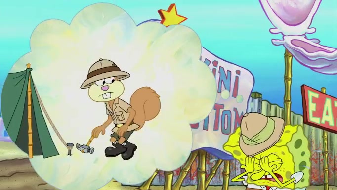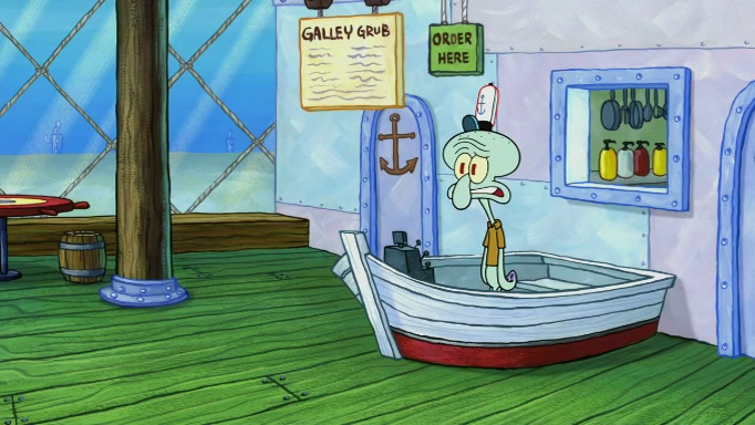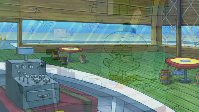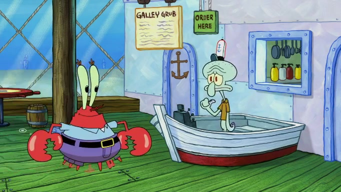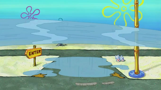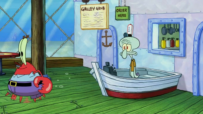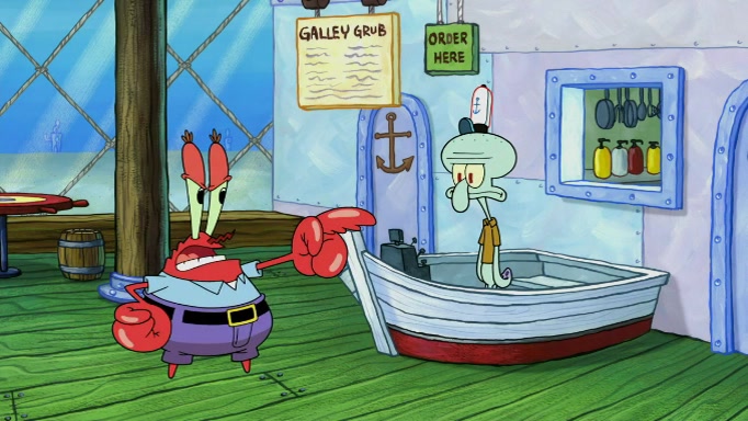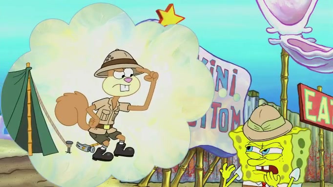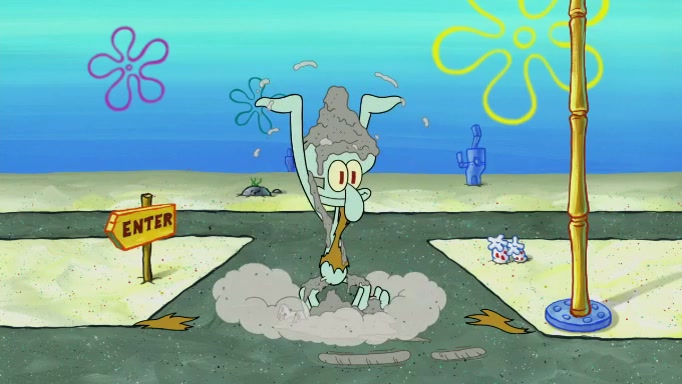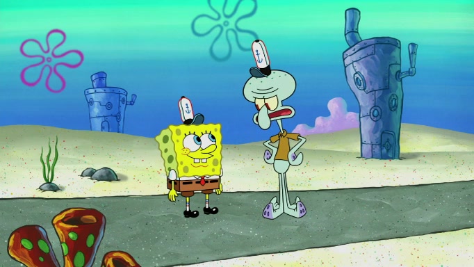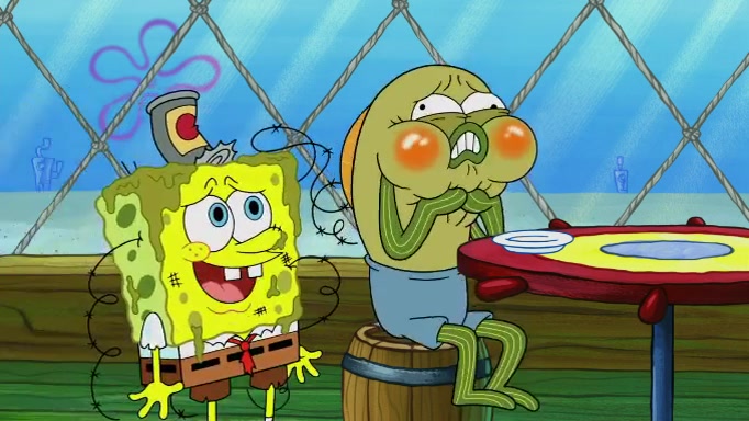 SpongeBob and Squidward are walking to work. SpongeBob feels it was taking a bit long and thinks he should take a shortcut. Squidward tries to explain why SpongeBob shouldn't but SpongeBob still thinks he should take a shortcut. SpongeBob asks Squidward if he wants to join but Squidward declines so SpongeBob takes a different path thinking he can find a shorter way to get there but bumps into Squidward walking in the normal path. He then tries to do another shortcut then he finds himself in an unusual part of the town but thinks it was a great shortcut and tells himself not to forget his wilderness training and tries to remember what Sandy said and then proceeds to find the Krusty Krab and tries to do what he learned from wilderness training and starts with local landmarks and assigns a broken fire hydrant as his landmark. He then spots a sign that appears to be the Krusty Krab sign and climbs over a fence and runs to it. Then the scene cuts to the Krusty Krab with Squidward relaxing in his work station and then Mr. Krabs appears telling Squidward to stop lazing around even though there were no customers.