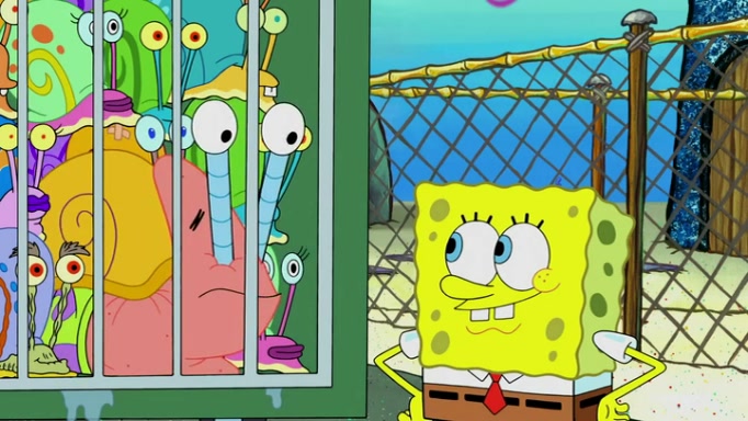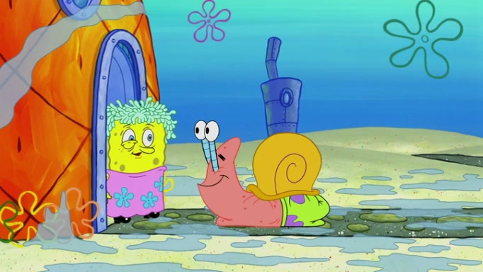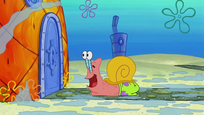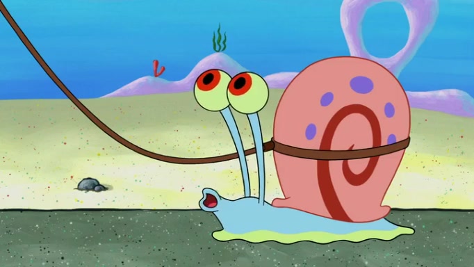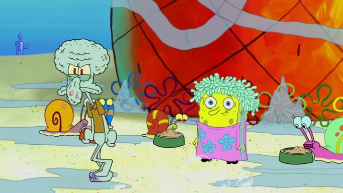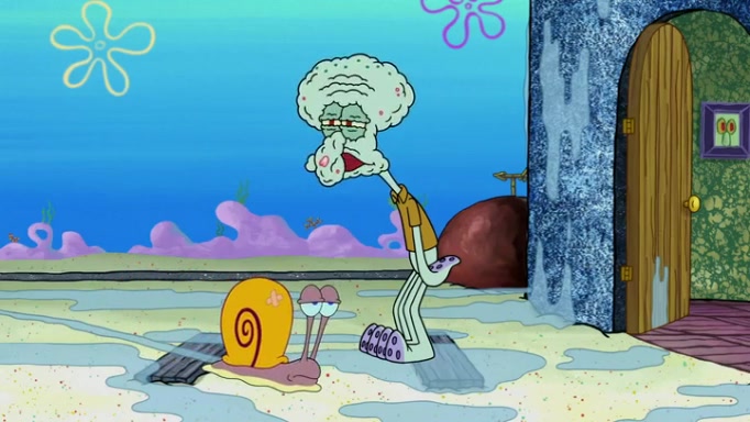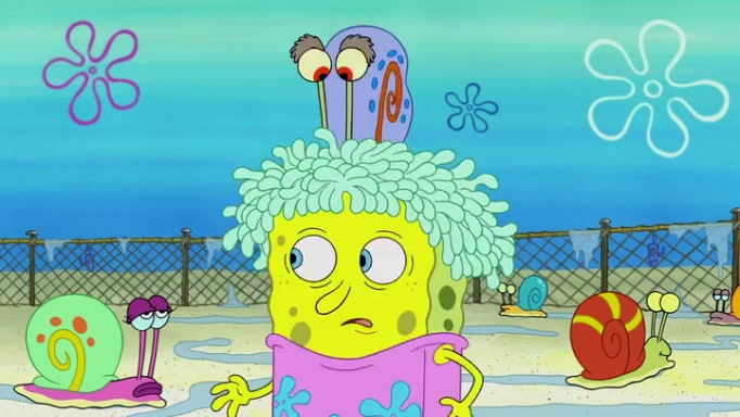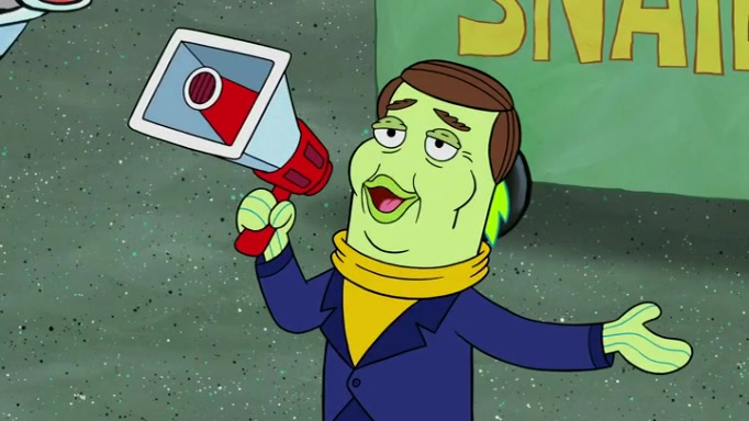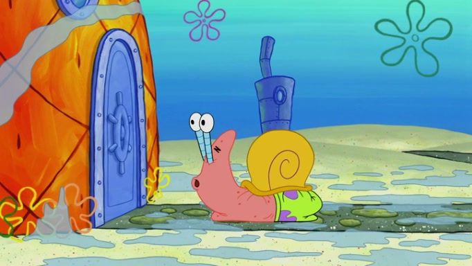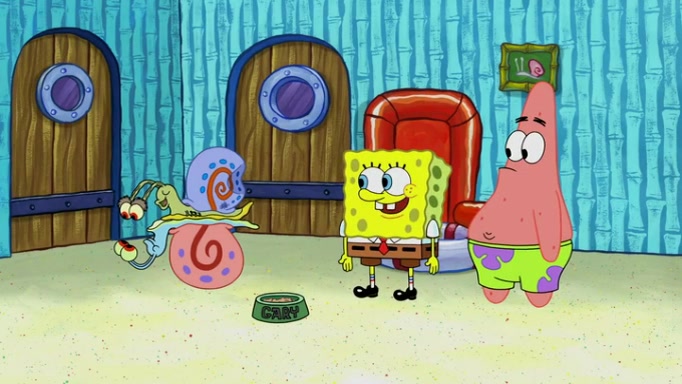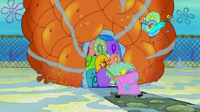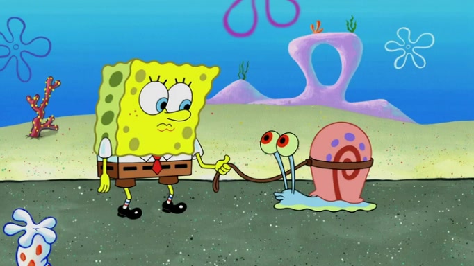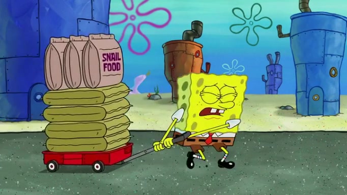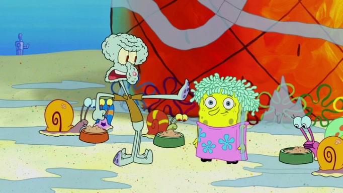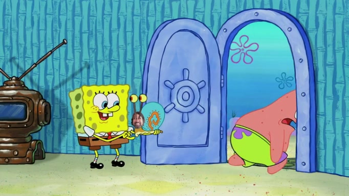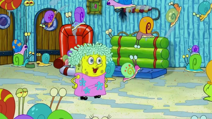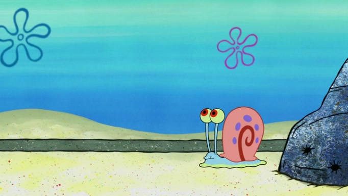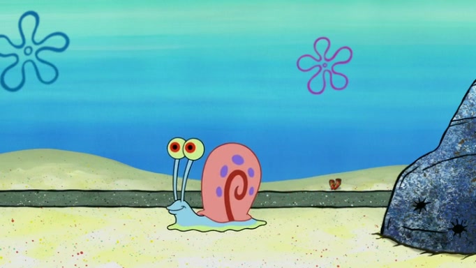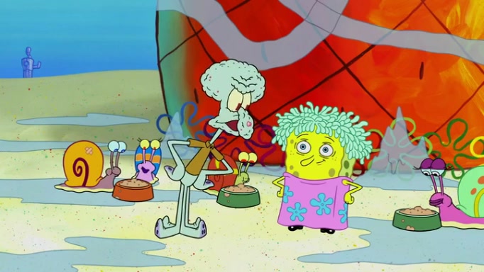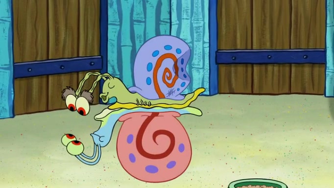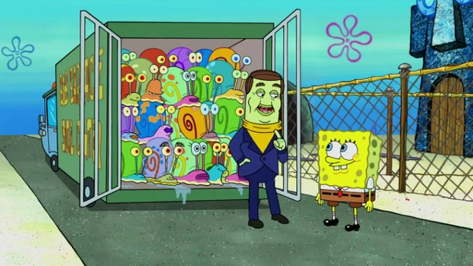 It is a sunny day and SpongeBob is taking Gary for a walk when he hears a meow from nearby. He then sees it and takes him home after naming him Senior Poopus. After he takes him home, Senior Poopus seems very happy and comfortable. Patrick then arrives and tells SpongeBob about the baby snails he left behind. SpongeBob quickly goes back to look and, sure enough, finds them. After taking them home and putting them under a heated blanket and giving them milk, another snail then bursts in and walks over SpongeBob right to the babies, apparently being the mother. Later, Another guy drops off a stray snail, saying "Thanks, snail guy!" Not long after that, there is a whole line of people waiting to give SpongeBob their snails, and SpongeBob eventually ends up with over 230 snails.