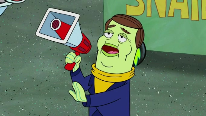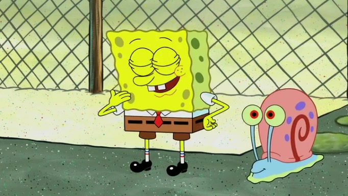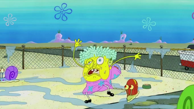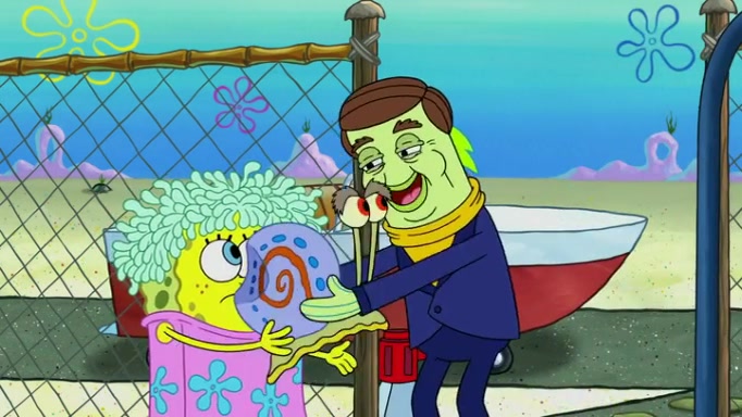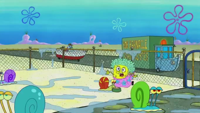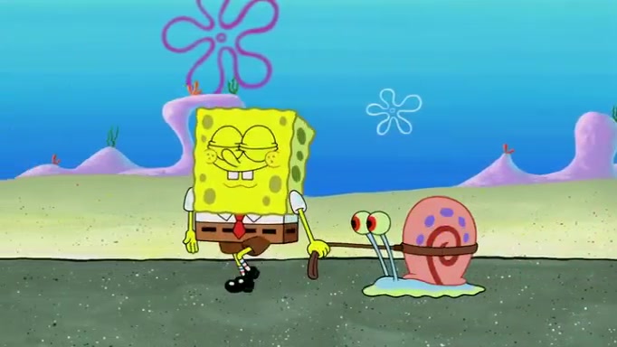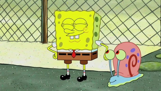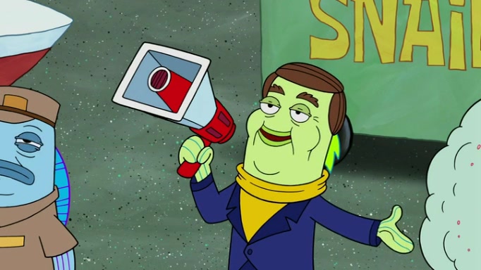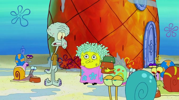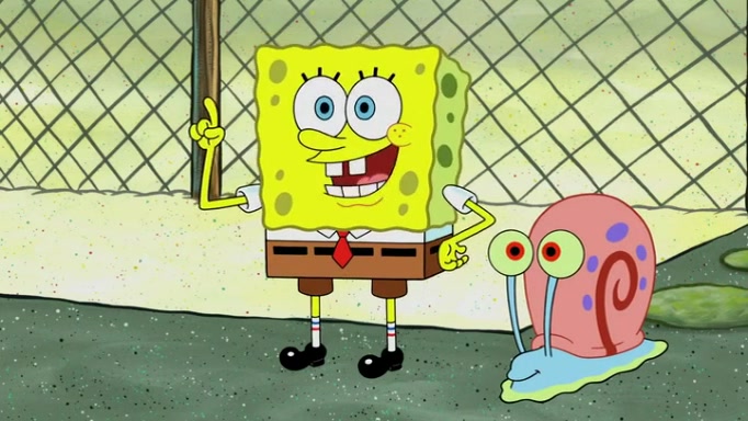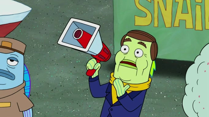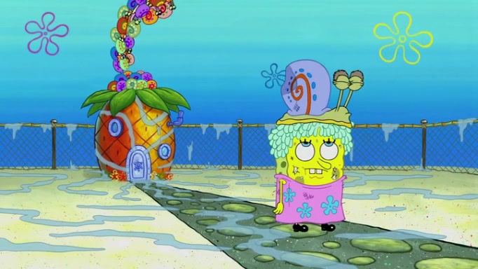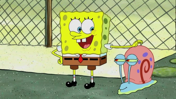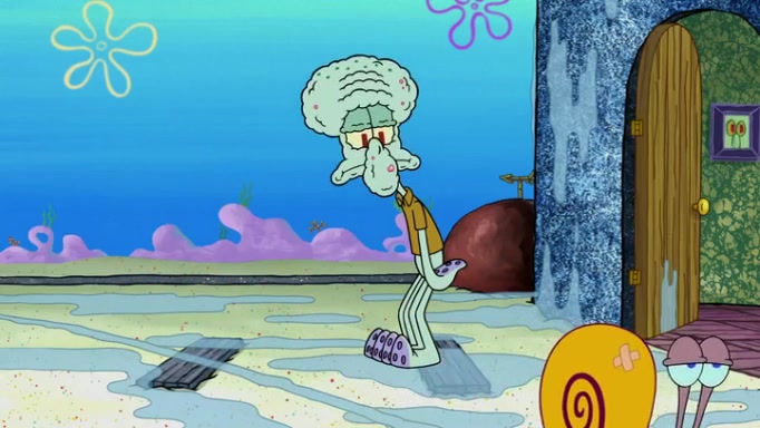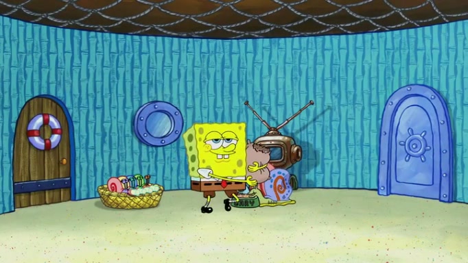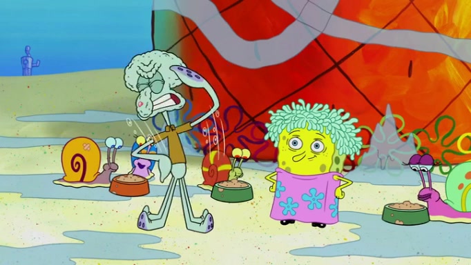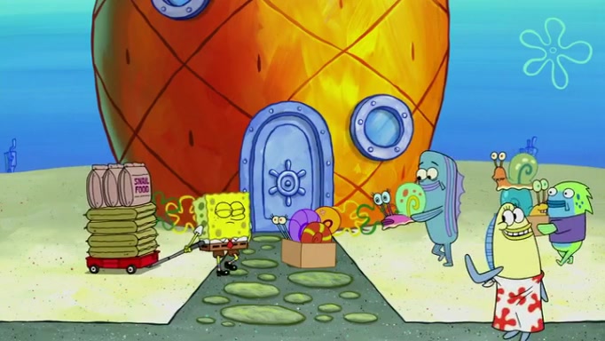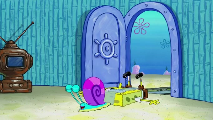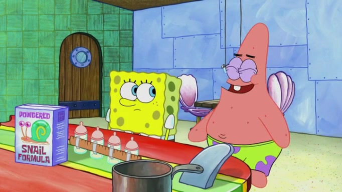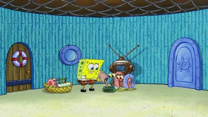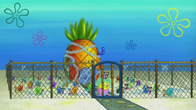 It is a sunny day and SpongeBob is taking Gary for a walk when he hears a meow from nearby. He then sees it and takes him home after naming him Senior Poopus. After he takes him home, Senior Poopus seems very happy and comfortable. Patrick then arrives and tells SpongeBob about the baby snails he left behind. SpongeBob quickly goes back to look and, sure enough, finds them. After taking them home and putting them under a heated blanket and giving them milk, another snail then bursts in and walks over SpongeBob right to the babies, apparently being the mother. Later, Another guy drops off a stray snail, saying "Thanks, snail guy!" Not long after that, there is a whole line of people waiting to give SpongeBob their snails, and SpongeBob eventually ends up with over 230 snails.