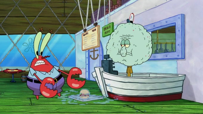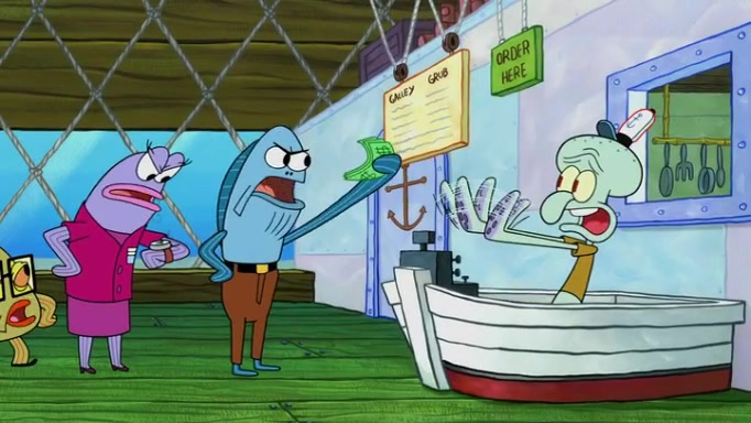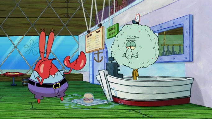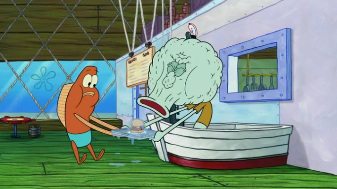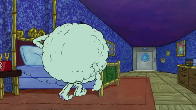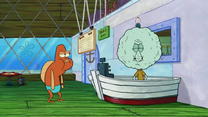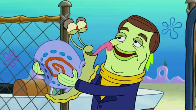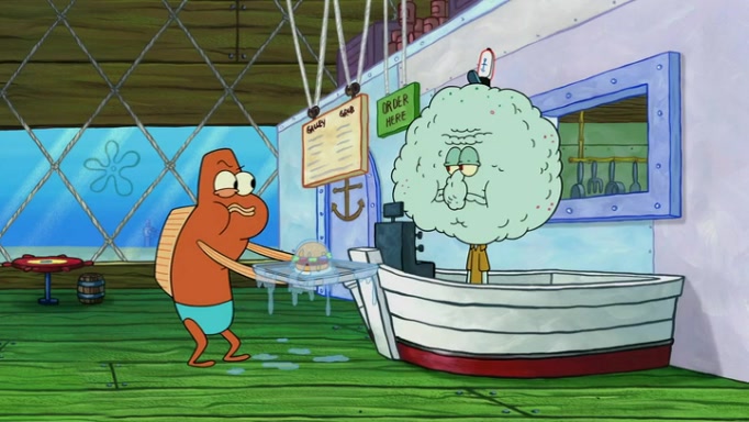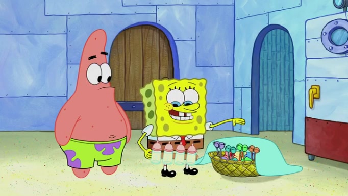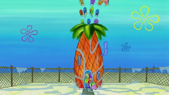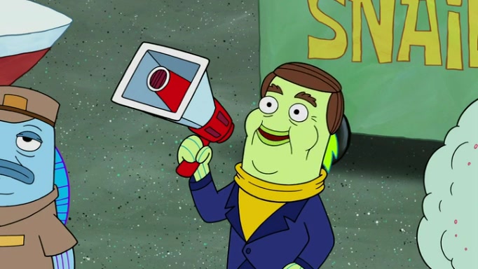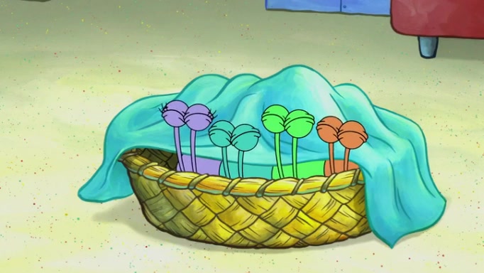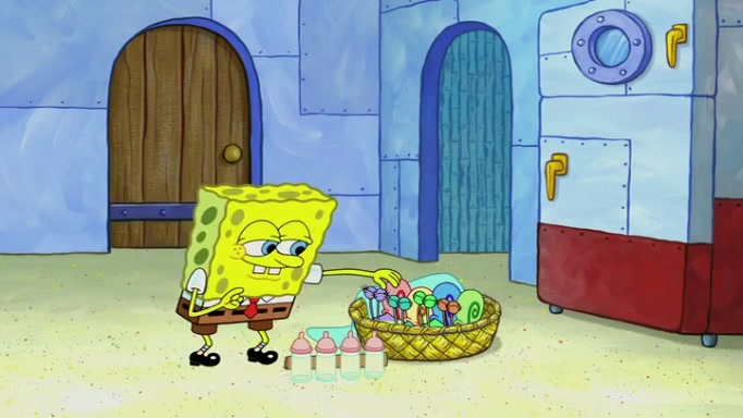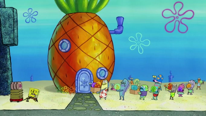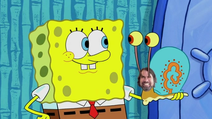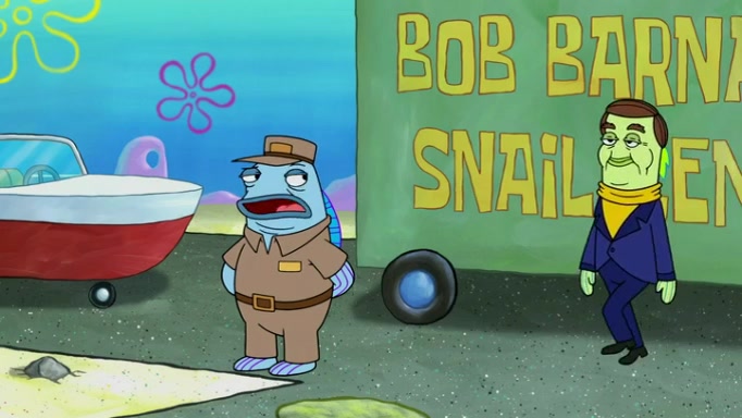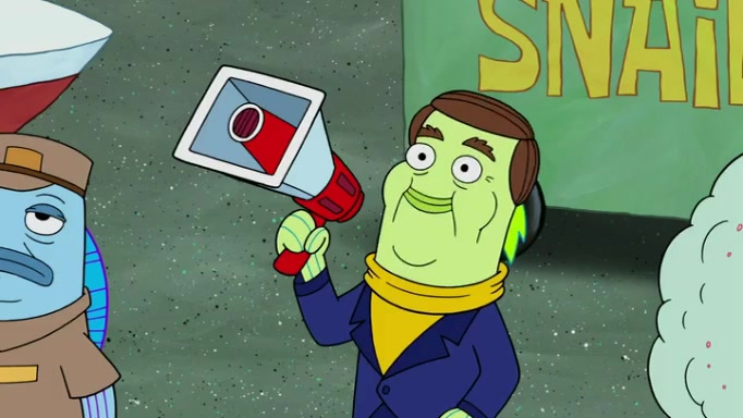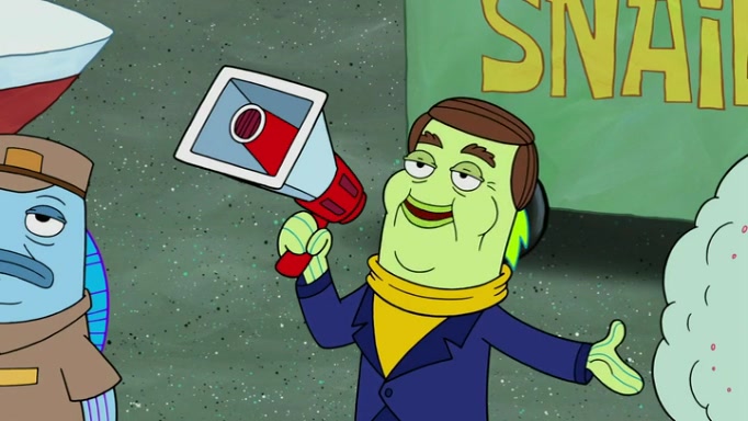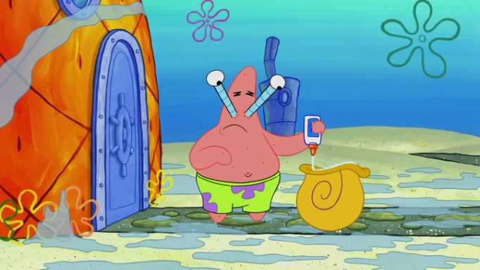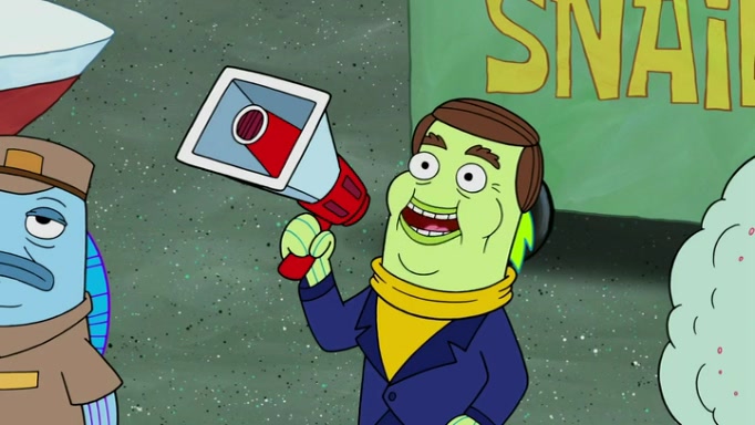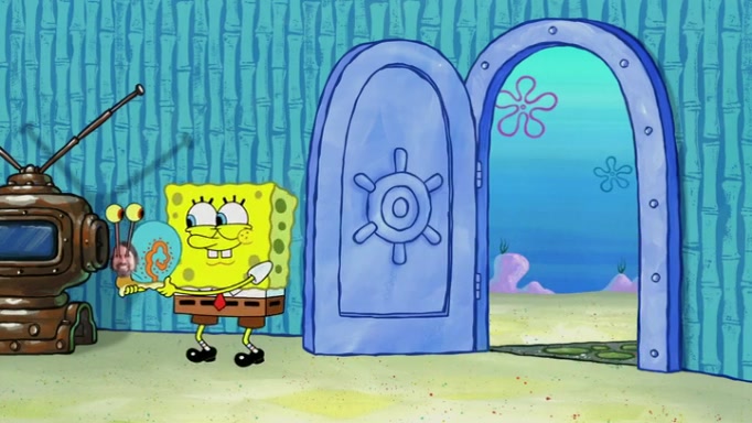 It is a sunny day and SpongeBob is taking Gary for a walk when he hears a meow from nearby. He then sees it and takes him home after naming him Senior Poopus. After he takes him home, Senior Poopus seems very happy and comfortable. Patrick then arrives and tells SpongeBob about the baby snails he left behind. SpongeBob quickly goes back to look and, sure enough, finds them. After taking them home and putting them under a heated blanket and giving them milk, another snail then bursts in and walks over SpongeBob right to the babies, apparently being the mother. Later, Another guy drops off a stray snail, saying "Thanks, snail guy!" Not long after that, there is a whole line of people waiting to give SpongeBob their snails, and SpongeBob eventually ends up with over 230 snails.