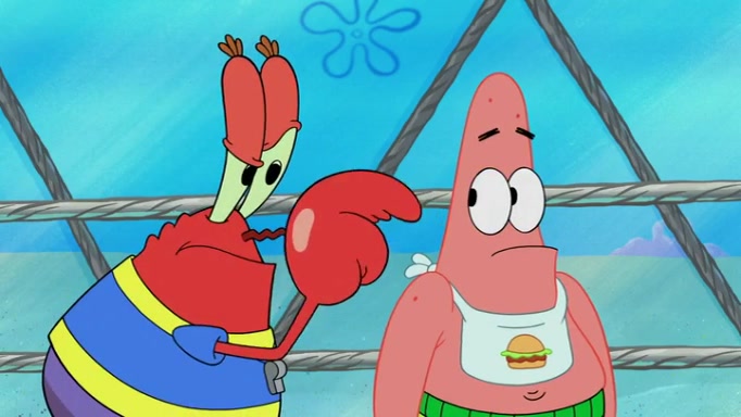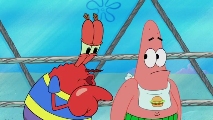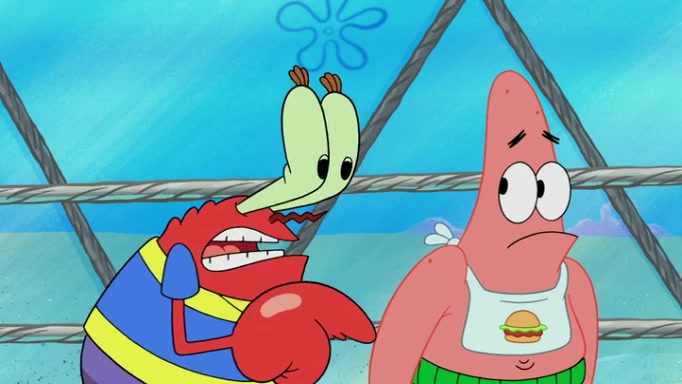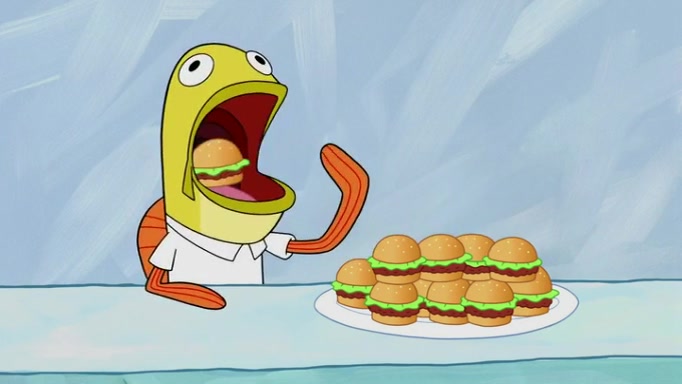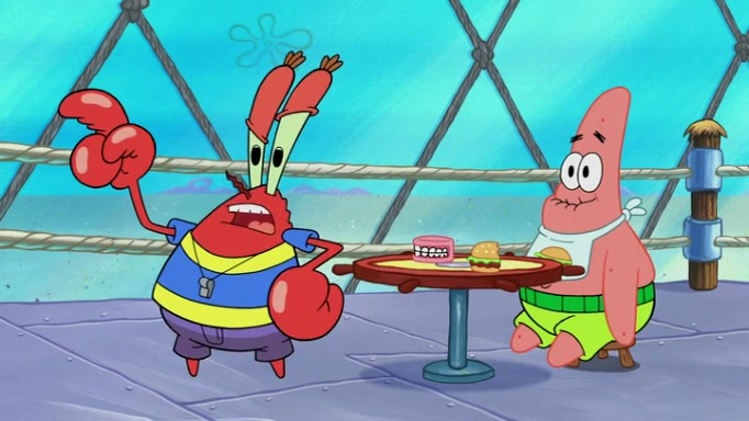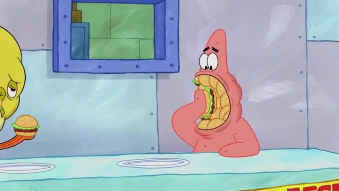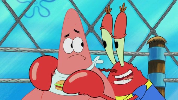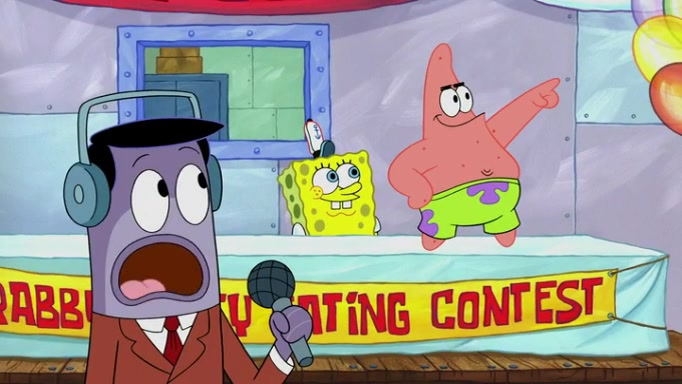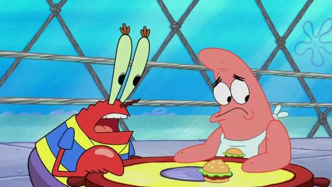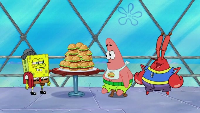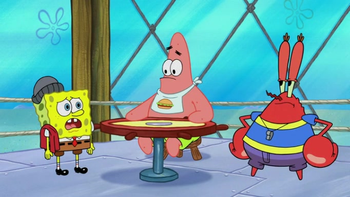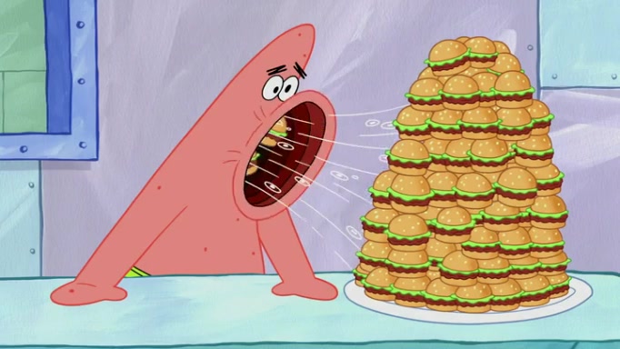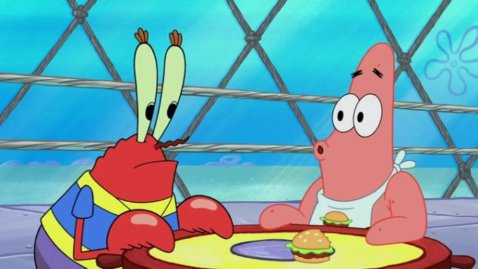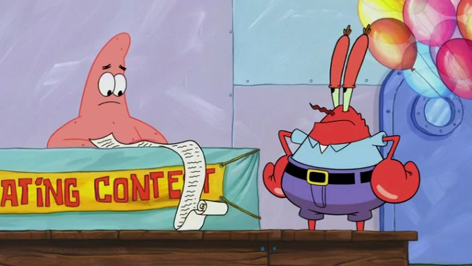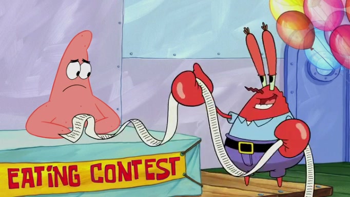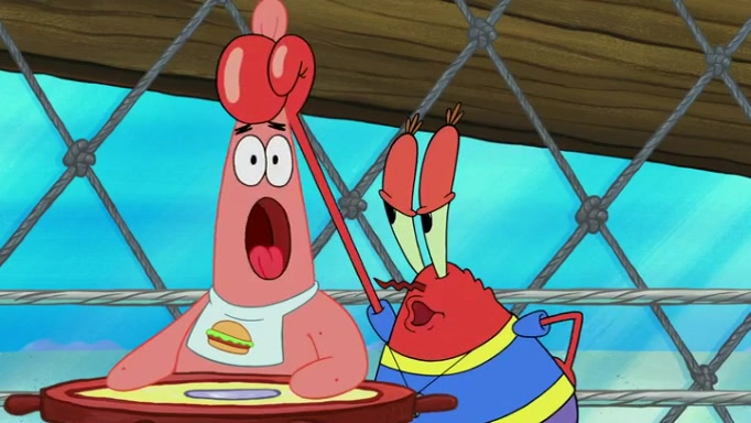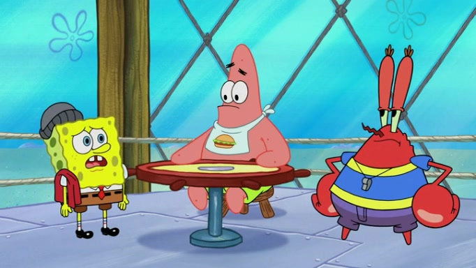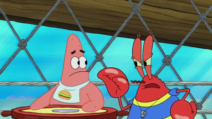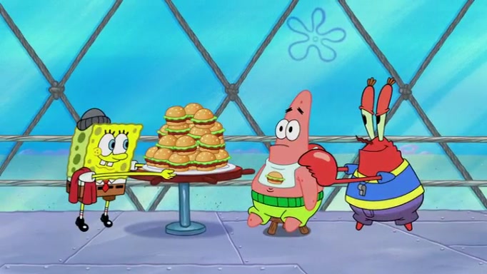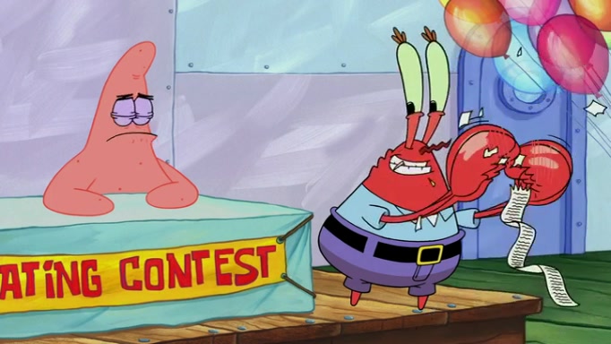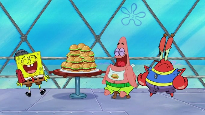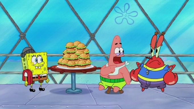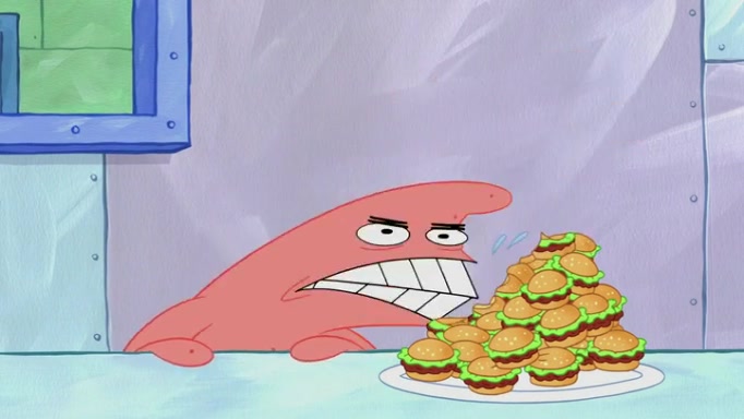 The episode begins at the Krusty Krab, where the Krusty Crew are celebrating the annual Krabby Patty eating contest. SpongeBob asks why Mr. Krabs is so overjoyed, and Mr. Krabs explains that this is time of the year where he gets the most money due to him being the supplier of the Krabby Patties. Then a news flash appears on the television. An unbeatable challenger named Oswald McNulty has won every Krabby Patty eating contest, and beaten every single city champion except Bikini Bottom. Things take an even darker turn because the Bikini Bottom champion has retired. Mr. Krabs is devastated by the news, and believes he isn't going to get any revenue until he sees Patrick, who comes in to order 40 Krabby Patties as a light lunch. Mr. Krabs then proposes that Patrick becomes the next Krabby Patty eating champion, and Patrick agrees.