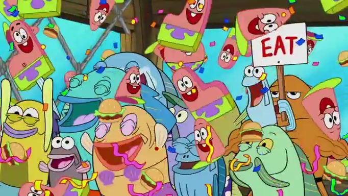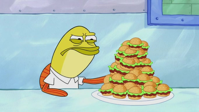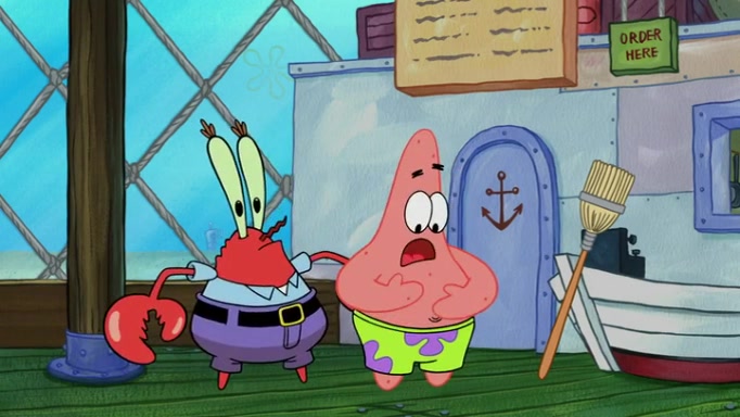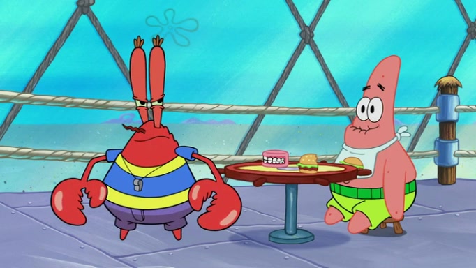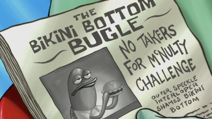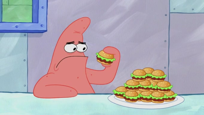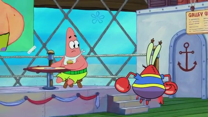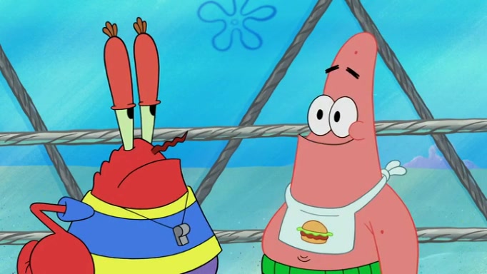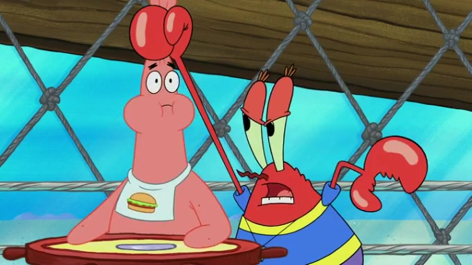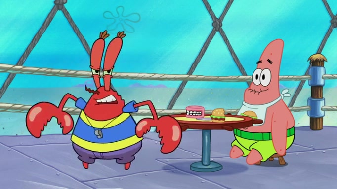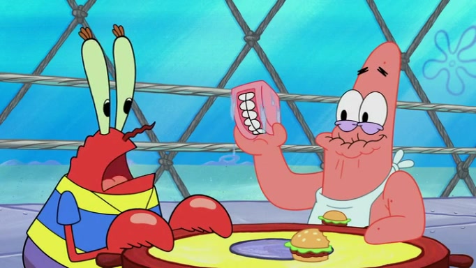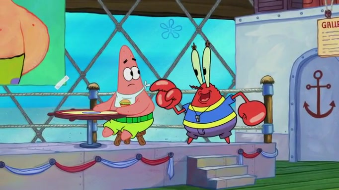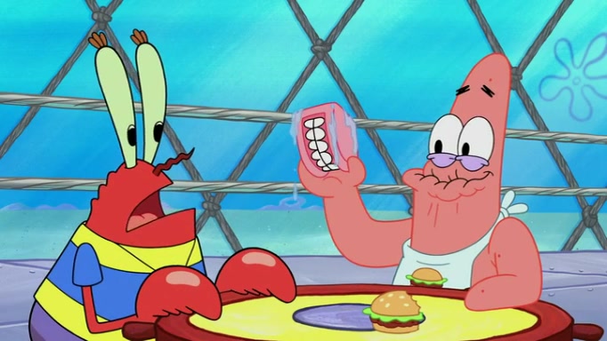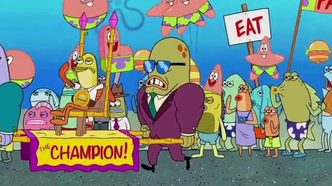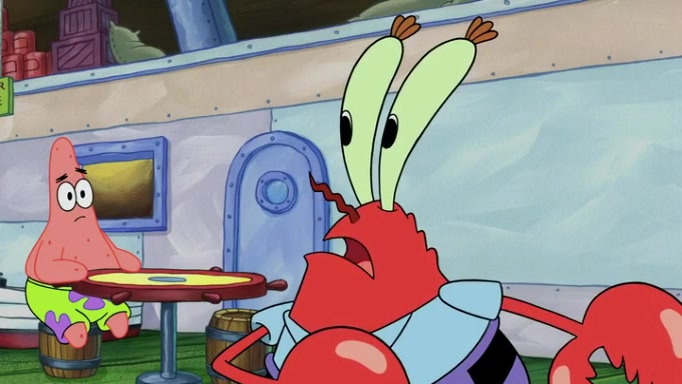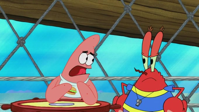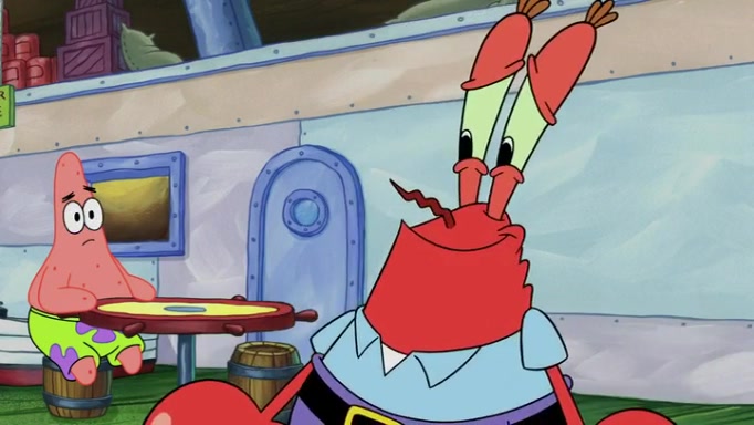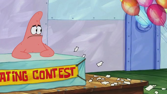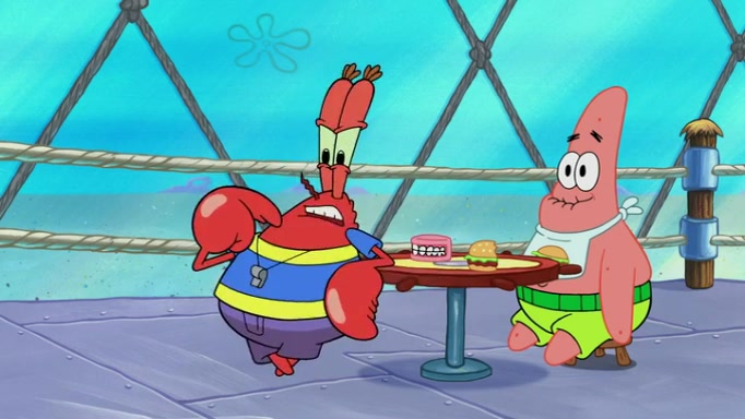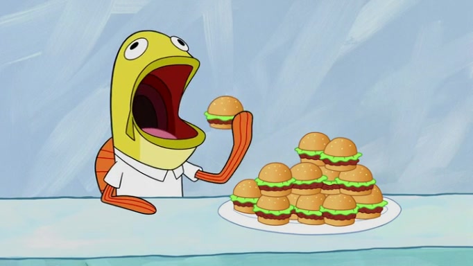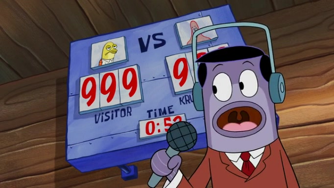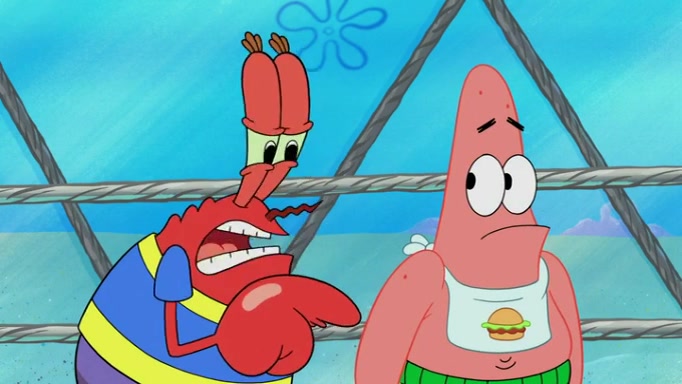 The episode begins at the Krusty Krab, where the Krusty Crew are celebrating the annual Krabby Patty eating contest. SpongeBob asks why Mr. Krabs is so overjoyed, and Mr. Krabs explains that this is time of the year where he gets the most money due to him being the supplier of the Krabby Patties. Then a news flash appears on the television. An unbeatable challenger named Oswald McNulty has won every Krabby Patty eating contest, and beaten every single city champion except Bikini Bottom. Things take an even darker turn because the Bikini Bottom champion has retired. Mr. Krabs is devastated by the news, and believes he isn't going to get any revenue until he sees Patrick, who comes in to order 40 Krabby Patties as a light lunch. Mr. Krabs then proposes that Patrick becomes the next Krabby Patty eating champion, and Patrick agrees.