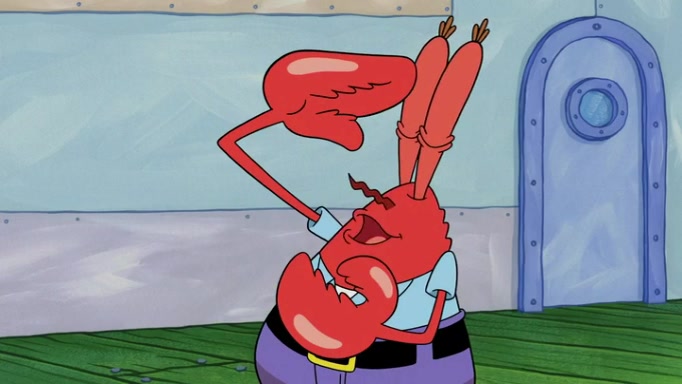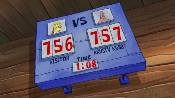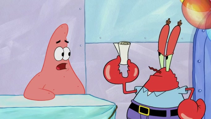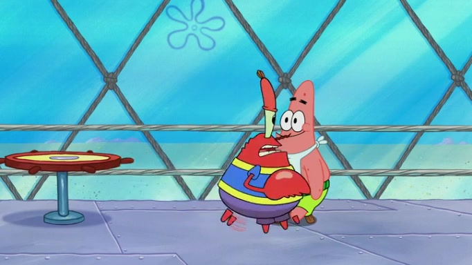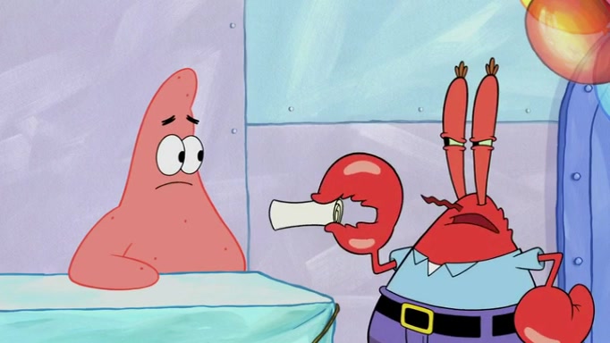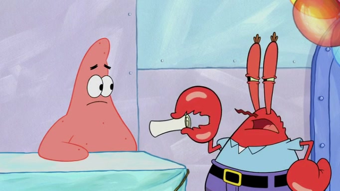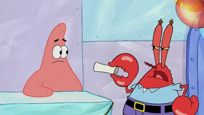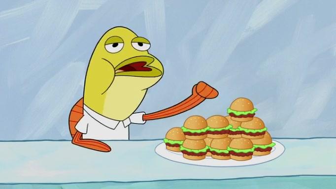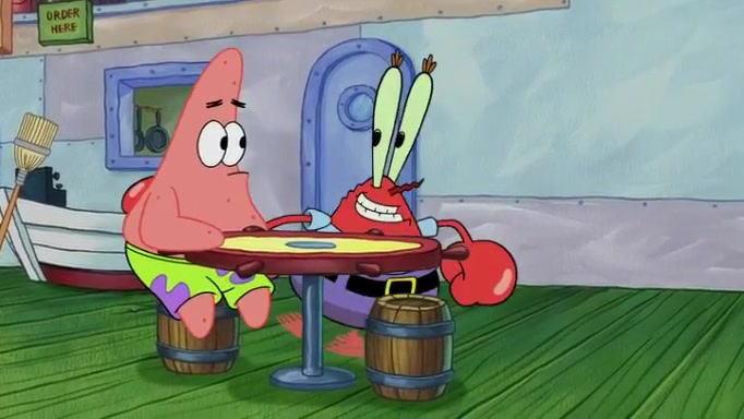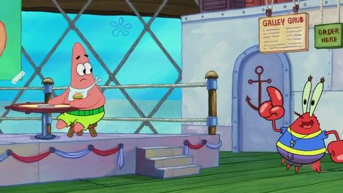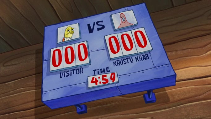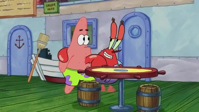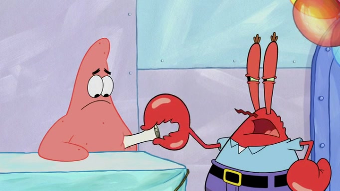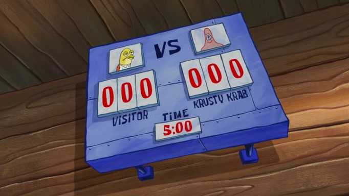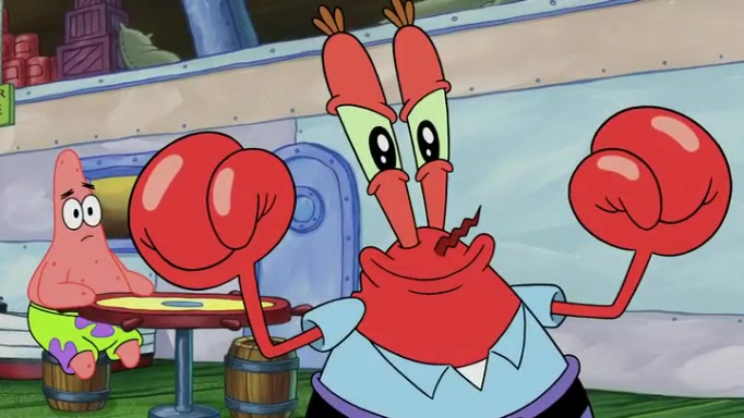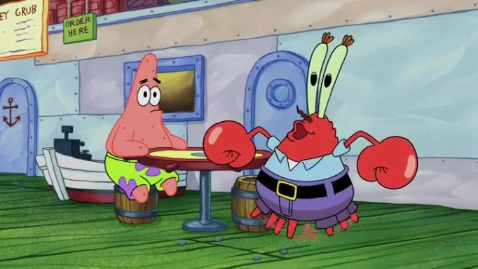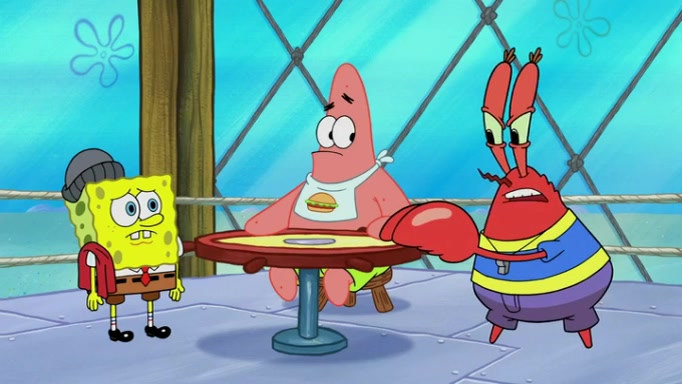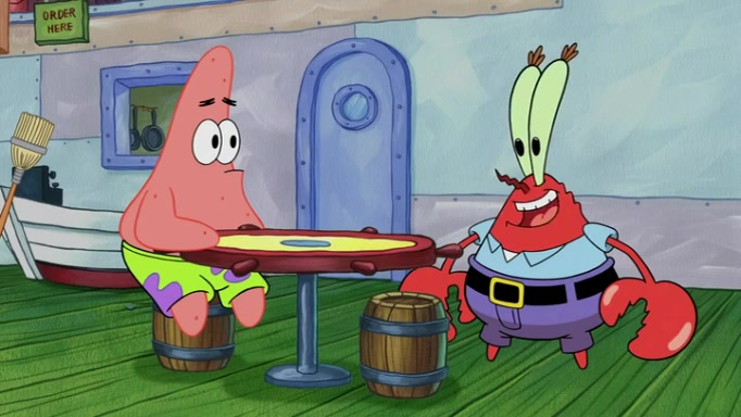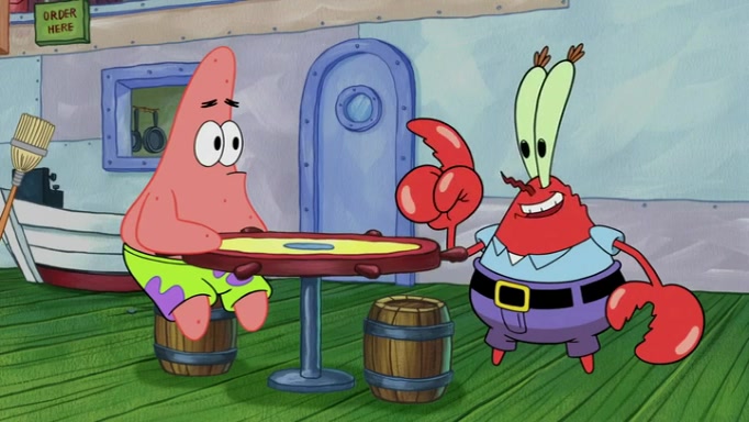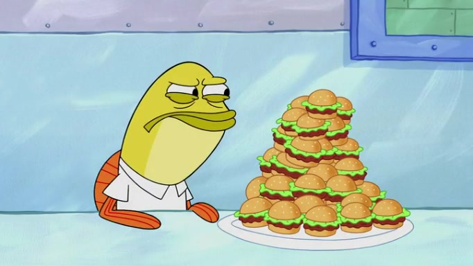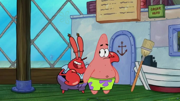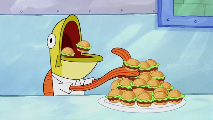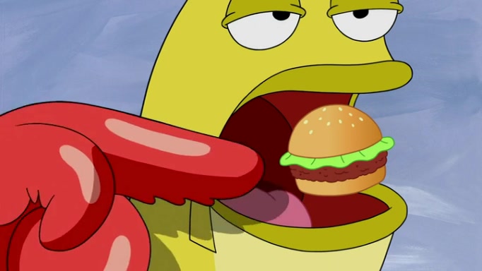The episode begins at the Krusty Krab, where the Krusty Crew are celebrating the annual Krabby Patty eating contest. SpongeBob asks why Mr. Krabs is so overjoyed, and Mr. Krabs explains that this is time of the year where he gets the most money due to him being the supplier of the Krabby Patties. Then a news flash appears on the television. An unbeatable challenger named Oswald McNulty has won every Krabby Patty eating contest, and beaten every single city champion except Bikini Bottom. Things take an even darker turn because the Bikini Bottom champion has retired. Mr. Krabs is devastated by the news, and believes he isn't going to get any revenue until he sees Patrick, who comes in to order 40 Krabby Patties as a light lunch. Mr. Krabs then proposes that Patrick becomes the next Krabby Patty eating champion, and Patrick agrees.