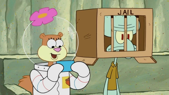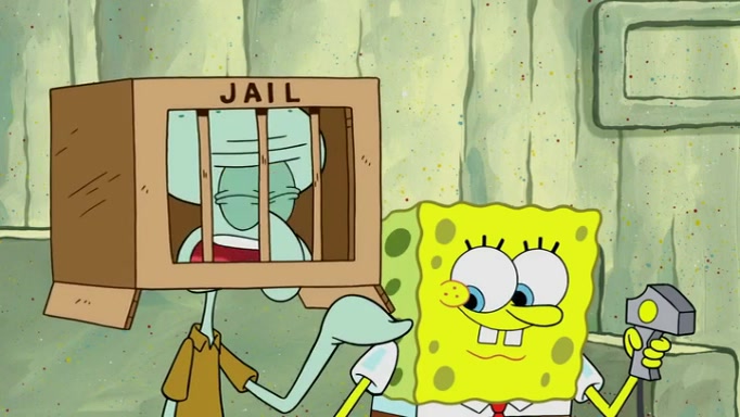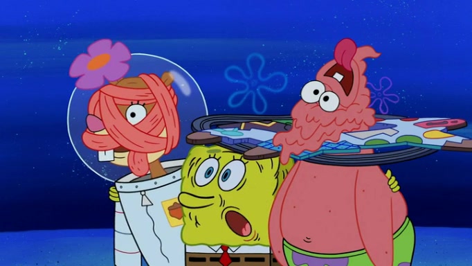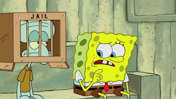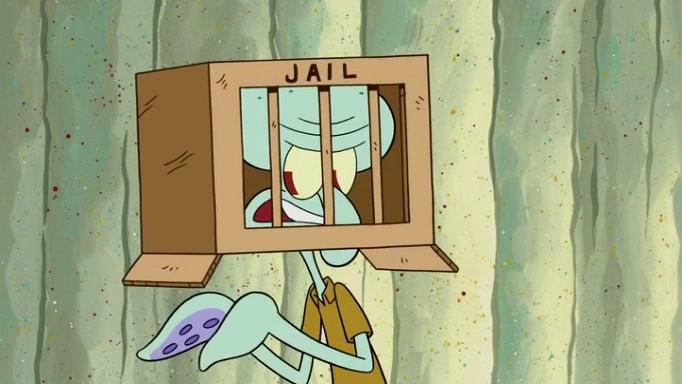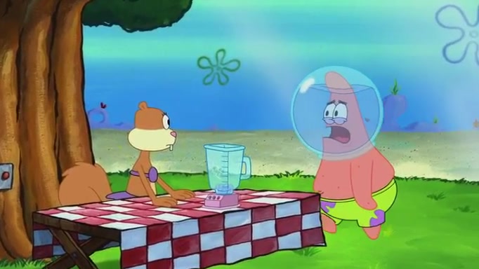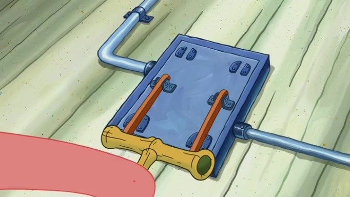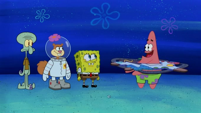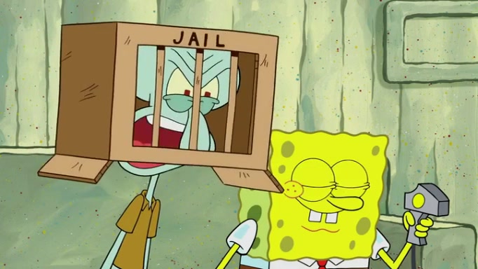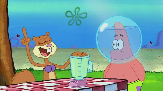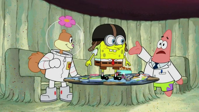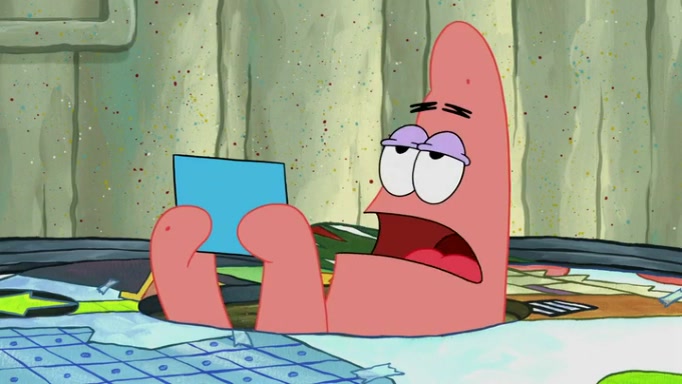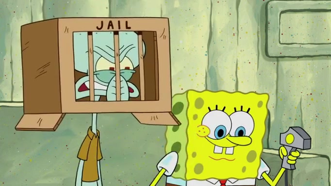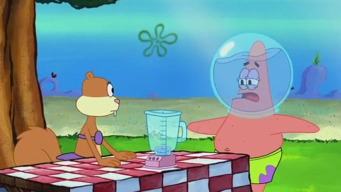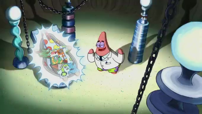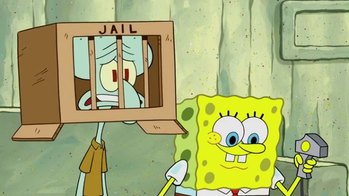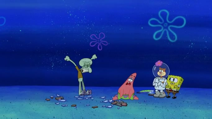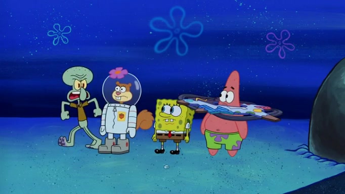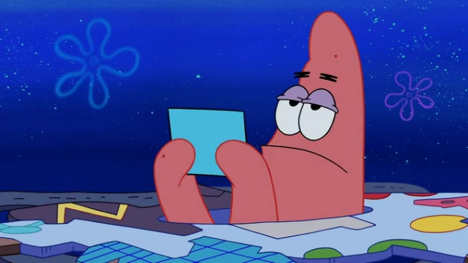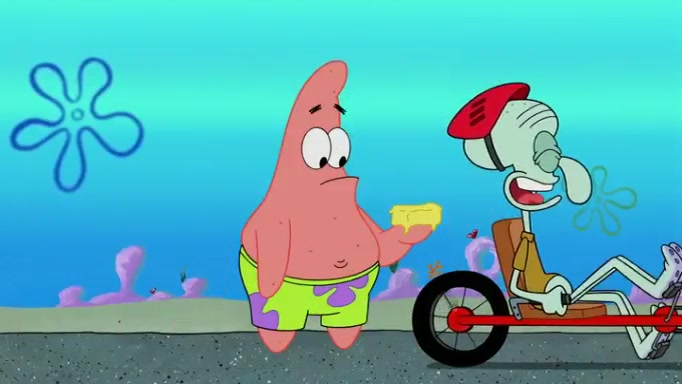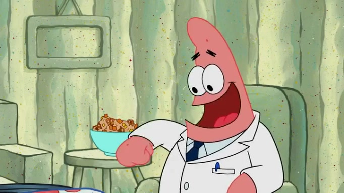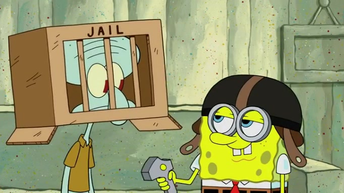 Patrick then goes to the Krusty Krab and tells Squidward that he invented a game. He explains how hard Tic Tac Toe is for him, and says that he made an easier version:Tic-Tac, which is the same but with a 2x2 grid. Patrick and Squidward play numerous games of Tic Tac but Squidward wins them all. Patrick, disappointed, says that he should have gone with his first idea: Tic. He then comes up with "Rock, Paper, Butter". Squidward trashes that idea by saying an awful pun. Patrick then comes up with "Whose rope is longer?". Squidward easily wins this, but Patrick thinks Squidward played it before. Patrick goes over to Sandy's Treedome and tells her he cannot make a game. Sandy tells Patrick to find what's best out of the games Patrick likes. So, Patrick starts cutting, gluing and taping his favorite board games together. He then says he knows what it is like to be a game maker, Frankenstein style. Squidward, SpongeBob, and Sandy all go to Patrick's rock to try out his new game. SpongeBob asks what it is called. Squidward suggests "Garbage" but Patrick comes up with "Patrick! The Game". Squidward determines a turn order which goes: Patrick, Sandy, SpongeBob, Squidward. Patrick goes first. He passes a go square and gets a lot of money. Sandy rolls and builds a beach hut on Goo Lagoon. SpongeBob lands on a chest and gets a drivers license, which means on his next go, he can move or race a car. Squidward rolls and ends up in jail. Patrick then puts a box on Squidward's head to show he is in jail which then a fish is shown inside the jail Squidward is in. Patrick rolls and lands on snacks. Patrick then eats the snacks. Sandy lands and buys Coral Avenue. SpongeBob rolls a 12 and decides to race the car. Squidward tries to roll but Patrick says you cannot roll in jail. After asking, Squidward is told that the only way to get out of jail is rolling a 6. Squidward questions that and Patrick changes it to "If a person is in jail, he or she shall stay there until he rolls a 6 or someone says his name". Sandy lands on "do surgery". Her operation card says "Remove finbone from player to your left"(Squidward). It turns out she just has to remove the finbone out of an operation fish. SpongeBob decides to race the car. Squidward decides to just leave, causing everyone else to say his name multiple times, thus getting him out of jail. SpongeBob decides to race the car again. Squidward rolls a 2 and lands on snacks. His piece, however, is knocked back to jail by the car. Patrick puts the box over Squidward's head again. Squidward starts thinking the game is random because it jumps from one game to another, nobody knows how to win and Patrick is making up the rules as he goes along. Squidward decides to go outside after SpongeBob and Sandy start feeding Patrick snacks. Patrick then makes up a rule that "If a person declares outsidsies everyone must go outside". Squidward tries to take that back but he is too late and everyone goes outside. Patrick then rolls a 4 getting everyone into the giggle zone. Everyone giggles (Squidward is forced by Sandy). SpongeBob's roll then results in everyone making silly faces. Squidward then rants that the rules are that the game does not matter. He then demonstrates by saying he could just roll and then say "Automatic winner". SpongeBob and Sandy then celebrate Squidward's win until Patrick makes up a rule that "No player can declare himself automatic winner". Squidward starts beating up the game board. He is then taken to real jail for destruction of private property which Squidward is happy about, until he sees his cellmate. He then yells at SpongeBob, Patrick, and Sandy to say his name. The episode ends with a box of the game with the words "Game over!" on it and Patrick saying "Game over!"