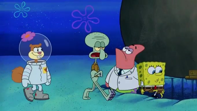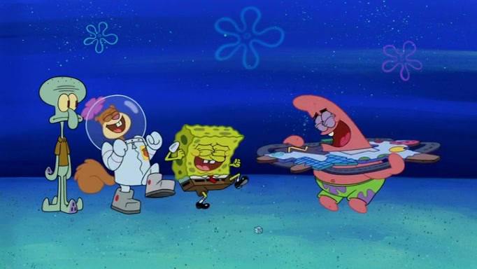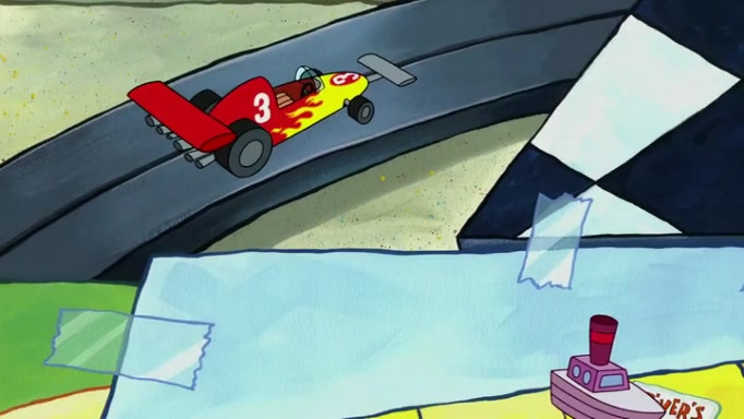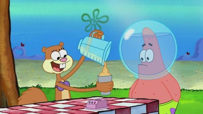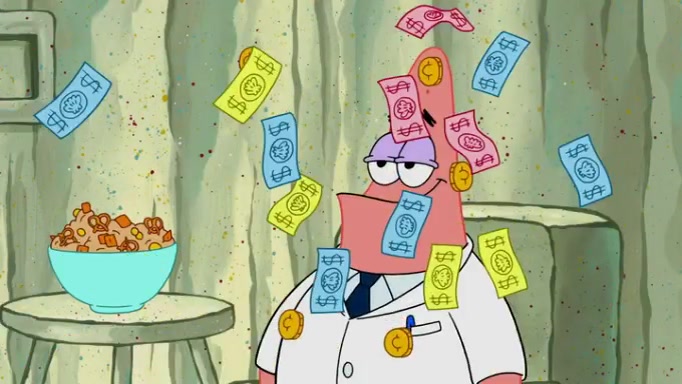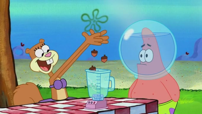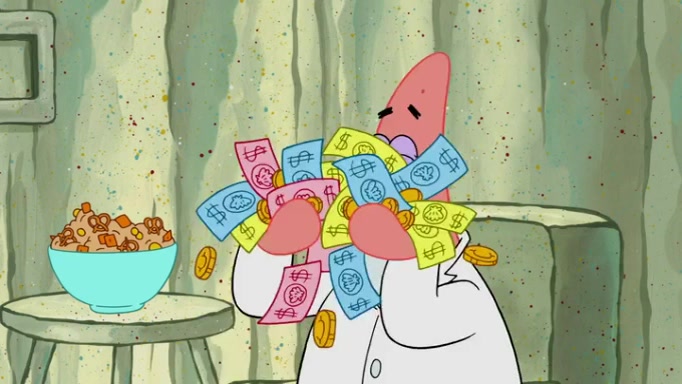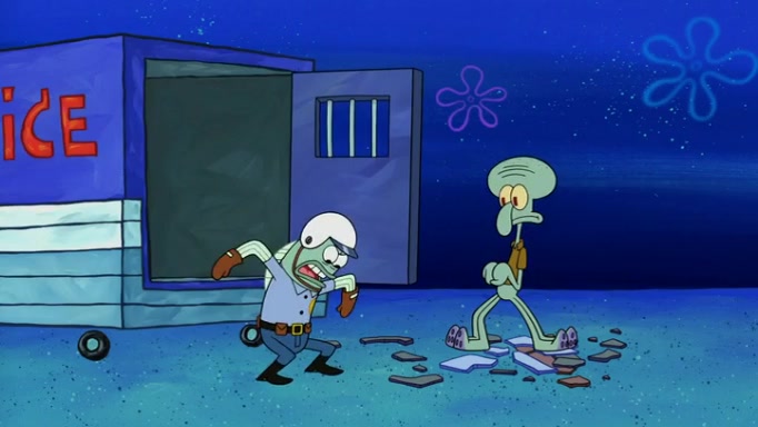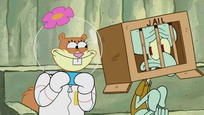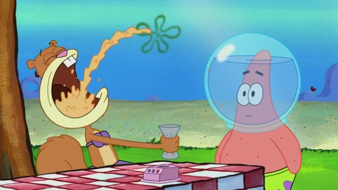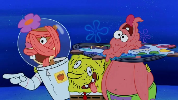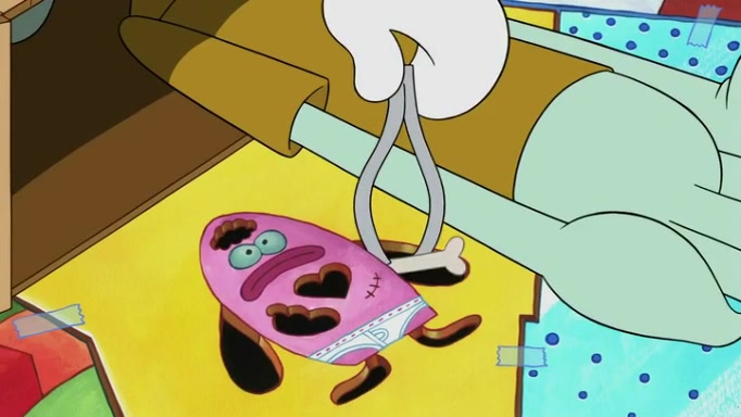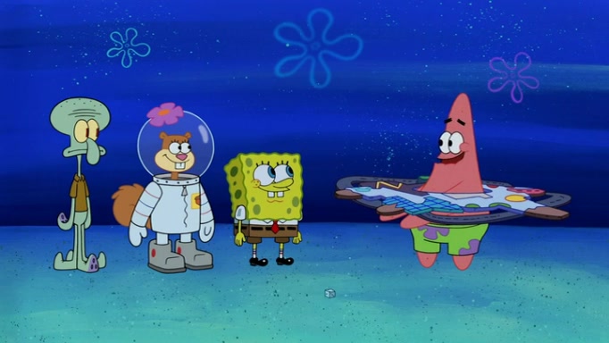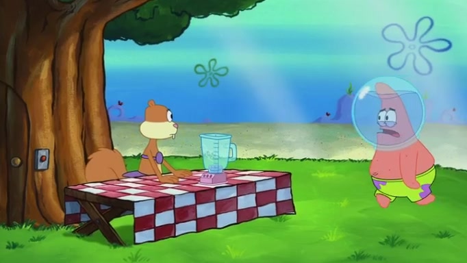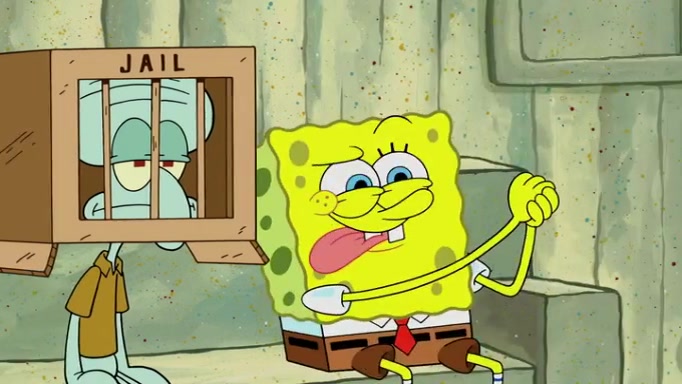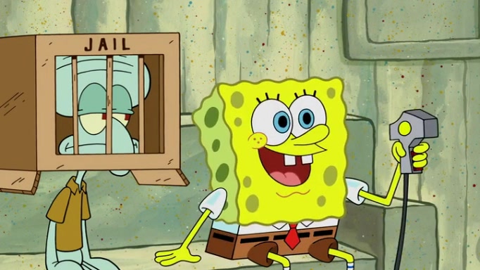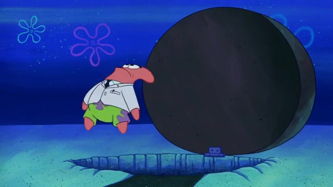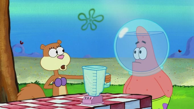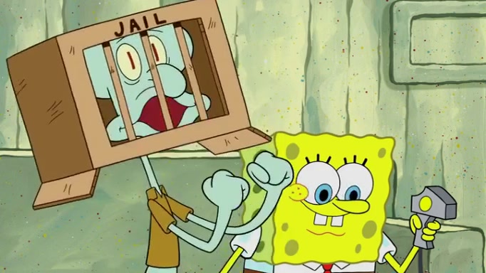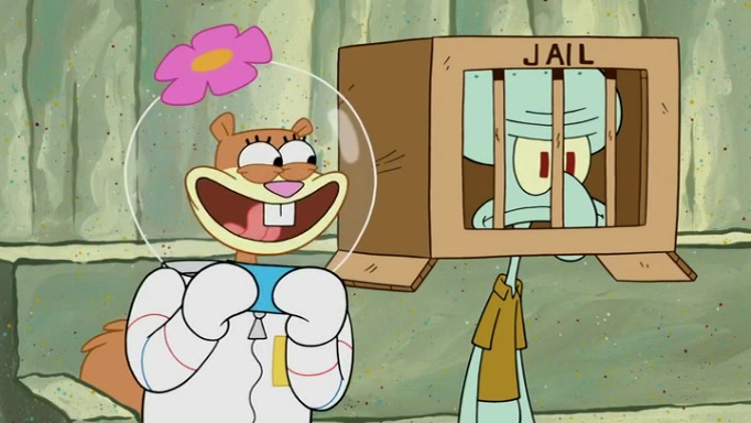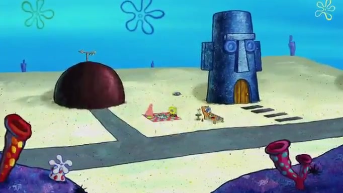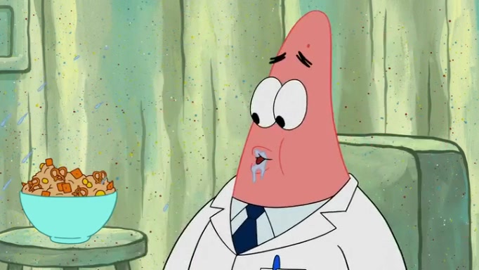 Patrick then goes to the Krusty Krab and tells Squidward that he invented a game. He explains how hard Tic Tac Toe is for him, and says that he made an easier version:Tic-Tac, which is the same but with a 2x2 grid. Patrick and Squidward play numerous games of Tic Tac but Squidward wins them all. Patrick, disappointed, says that he should have gone with his first idea: Tic. He then comes up with "Rock, Paper, Butter". Squidward trashes that idea by saying an awful pun. Patrick then comes up with "Whose rope is longer?". Squidward easily wins this, but Patrick thinks Squidward played it before. Patrick goes over to Sandy's Treedome and tells her he cannot make a game. Sandy tells Patrick to find what's best out of the games Patrick likes. So, Patrick starts cutting, gluing and taping his favorite board games together. He then says he knows what it is like to be a game maker, Frankenstein style. Squidward, SpongeBob, and Sandy all go to Patrick's rock to try out his new game. SpongeBob asks what it is called. Squidward suggests "Garbage" but Patrick comes up with "Patrick! The Game". Squidward determines a turn order which goes: Patrick, Sandy, SpongeBob, Squidward. Patrick goes first. He passes a go square and gets a lot of money. Sandy rolls and builds a beach hut on Goo Lagoon. SpongeBob lands on a chest and gets a drivers license, which means on his next go, he can move or race a car. Squidward rolls and ends up in jail. Patrick then puts a box on Squidward's head to show he is in jail which then a fish is shown inside the jail Squidward is in. Patrick rolls and lands on snacks. Patrick then eats the snacks. Sandy lands and buys Coral Avenue. SpongeBob rolls a 12 and decides to race the car. Squidward tries to roll but Patrick says you cannot roll in jail. After asking, Squidward is told that the only way to get out of jail is rolling a 6. Squidward questions that and Patrick changes it to "If a person is in jail, he or she shall stay there until he rolls a 6 or someone says his name". Sandy lands on "do surgery". Her operation card says "Remove finbone from player to your left"(Squidward). It turns out she just has to remove the finbone out of an operation fish. SpongeBob decides to race the car. Squidward decides to just leave, causing everyone else to say his name multiple times, thus getting him out of jail. SpongeBob decides to race the car again. Squidward rolls a 2 and lands on snacks. His piece, however, is knocked back to jail by the car. Patrick puts the box over Squidward's head again. Squidward starts thinking the game is random because it jumps from one game to another, nobody knows how to win and Patrick is making up the rules as he goes along. Squidward decides to go outside after SpongeBob and Sandy start feeding Patrick snacks. Patrick then makes up a rule that "If a person declares outsidsies everyone must go outside". Squidward tries to take that back but he is too late and everyone goes outside. Patrick then rolls a 4 getting everyone into the giggle zone. Everyone giggles (Squidward is forced by Sandy). SpongeBob's roll then results in everyone making silly faces. Squidward then rants that the rules are that the game does not matter. He then demonstrates by saying he could just roll and then say "Automatic winner". SpongeBob and Sandy then celebrate Squidward's win until Patrick makes up a rule that "No player can declare himself automatic winner". Squidward starts beating up the game board. He is then taken to real jail for destruction of private property which Squidward is happy about, until he sees his cellmate. He then yells at SpongeBob, Patrick, and Sandy to say his name. The episode ends with a box of the game with the words "Game over!" on it and Patrick saying "Game over!"