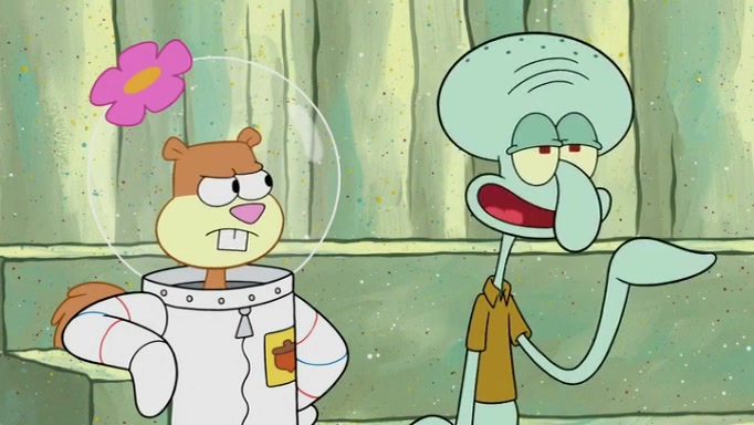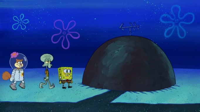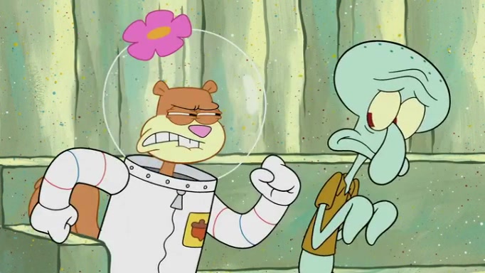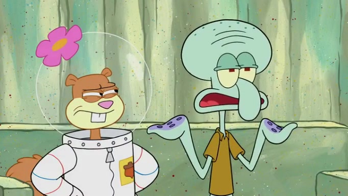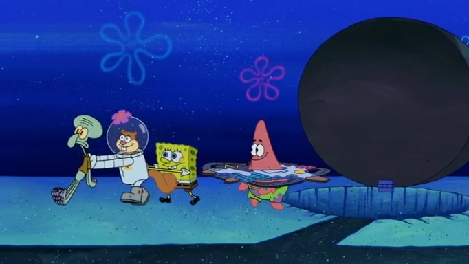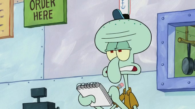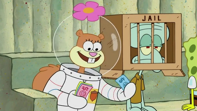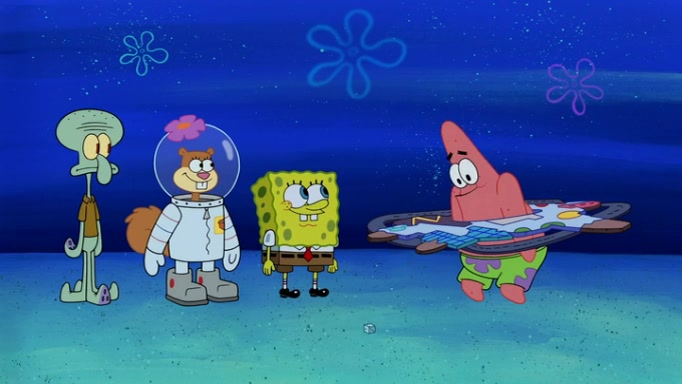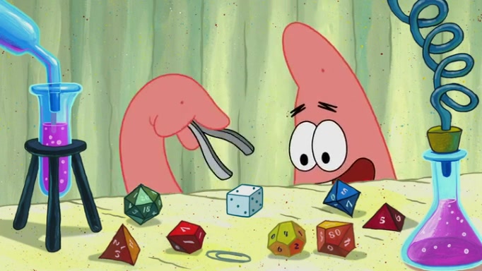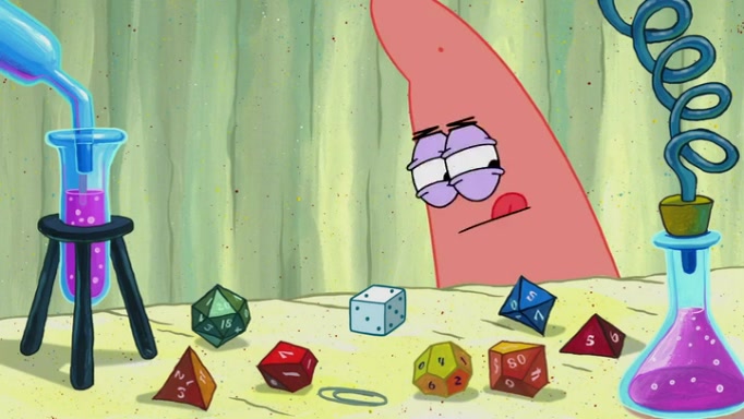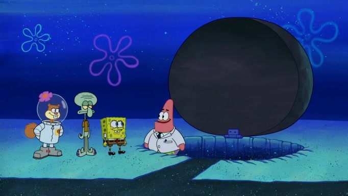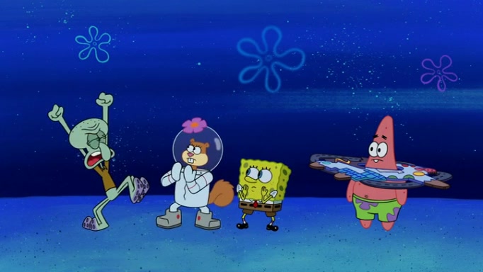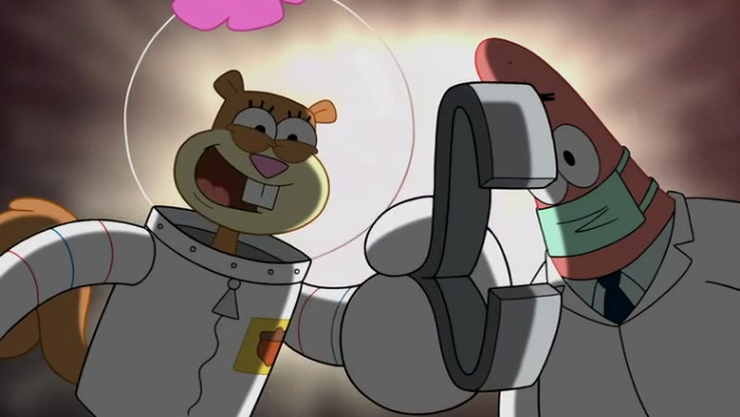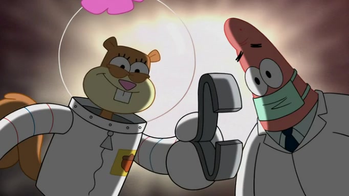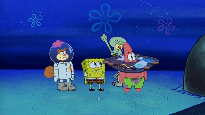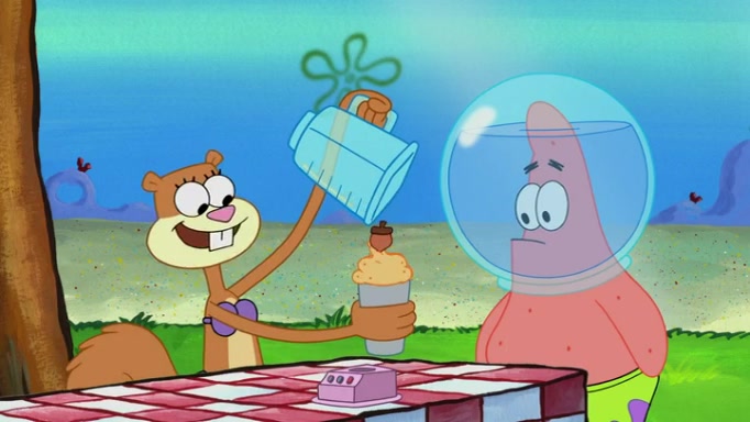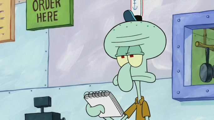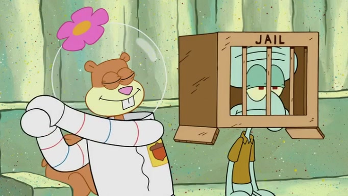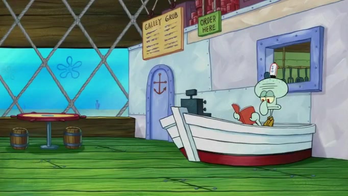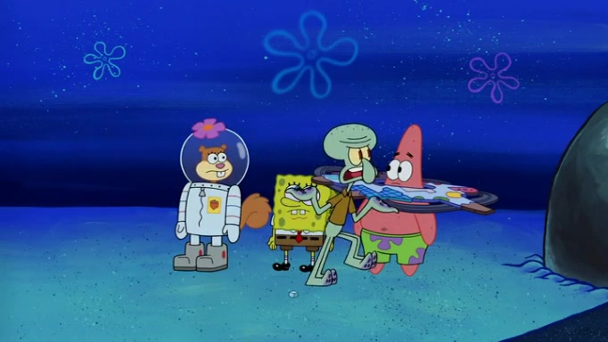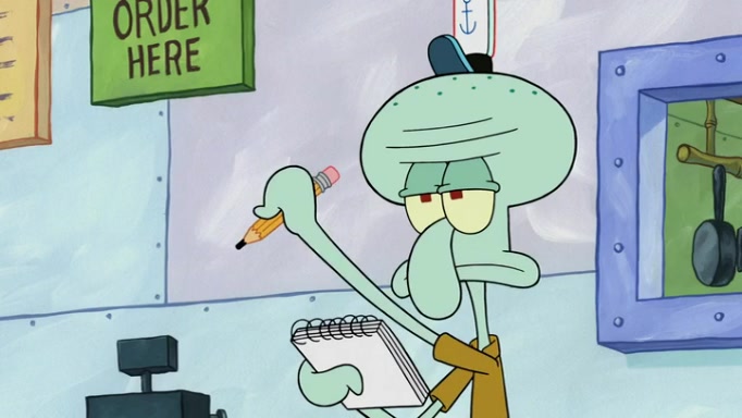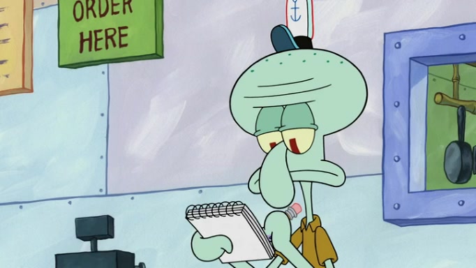 Patrick then goes to the Krusty Krab and tells Squidward that he invented a game. He explains how hard Tic Tac Toe is for him, and says that he made an easier version:Tic-Tac, which is the same but with a 2x2 grid. Patrick and Squidward play numerous games of Tic Tac but Squidward wins them all. Patrick, disappointed, says that he should have gone with his first idea: Tic. He then comes up with "Rock, Paper, Butter". Squidward trashes that idea by saying an awful pun. Patrick then comes up with "Whose rope is longer?". Squidward easily wins this, but Patrick thinks Squidward played it before. Patrick goes over to Sandy's Treedome and tells her he cannot make a game. Sandy tells Patrick to find what's best out of the games Patrick likes. So, Patrick starts cutting, gluing and taping his favorite board games together. He then says he knows what it is like to be a game maker, Frankenstein style. Squidward, SpongeBob, and Sandy all go to Patrick's rock to try out his new game. SpongeBob asks what it is called. Squidward suggests "Garbage" but Patrick comes up with "Patrick! The Game". Squidward determines a turn order which goes: Patrick, Sandy, SpongeBob, Squidward. Patrick goes first. He passes a go square and gets a lot of money. Sandy rolls and builds a beach hut on Goo Lagoon. SpongeBob lands on a chest and gets a drivers license, which means on his next go, he can move or race a car. Squidward rolls and ends up in jail. Patrick then puts a box on Squidward's head to show he is in jail which then a fish is shown inside the jail Squidward is in. Patrick rolls and lands on snacks. Patrick then eats the snacks. Sandy lands and buys Coral Avenue. SpongeBob rolls a 12 and decides to race the car. Squidward tries to roll but Patrick says you cannot roll in jail. After asking, Squidward is told that the only way to get out of jail is rolling a 6. Squidward questions that and Patrick changes it to "If a person is in jail, he or she shall stay there until he rolls a 6 or someone says his name". Sandy lands on "do surgery". Her operation card says "Remove finbone from player to your left"(Squidward). It turns out she just has to remove the finbone out of an operation fish. SpongeBob decides to race the car. Squidward decides to just leave, causing everyone else to say his name multiple times, thus getting him out of jail. SpongeBob decides to race the car again. Squidward rolls a 2 and lands on snacks. His piece, however, is knocked back to jail by the car. Patrick puts the box over Squidward's head again. Squidward starts thinking the game is random because it jumps from one game to another, nobody knows how to win and Patrick is making up the rules as he goes along. Squidward decides to go outside after SpongeBob and Sandy start feeding Patrick snacks. Patrick then makes up a rule that "If a person declares outsidsies everyone must go outside". Squidward tries to take that back but he is too late and everyone goes outside. Patrick then rolls a 4 getting everyone into the giggle zone. Everyone giggles (Squidward is forced by Sandy). SpongeBob's roll then results in everyone making silly faces. Squidward then rants that the rules are that the game does not matter. He then demonstrates by saying he could just roll and then say "Automatic winner". SpongeBob and Sandy then celebrate Squidward's win until Patrick makes up a rule that "No player can declare himself automatic winner". Squidward starts beating up the game board. He is then taken to real jail for destruction of private property which Squidward is happy about, until he sees his cellmate. He then yells at SpongeBob, Patrick, and Sandy to say his name. The episode ends with a box of the game with the words "Game over!" on it and Patrick saying "Game over!"