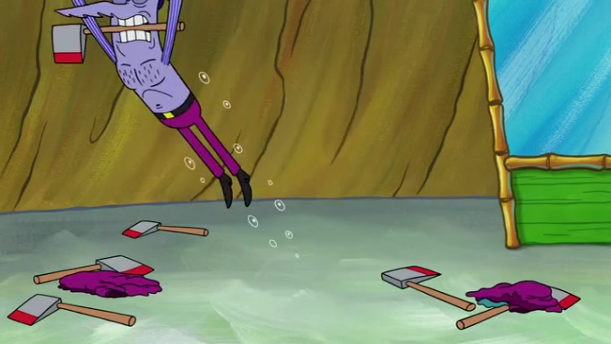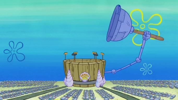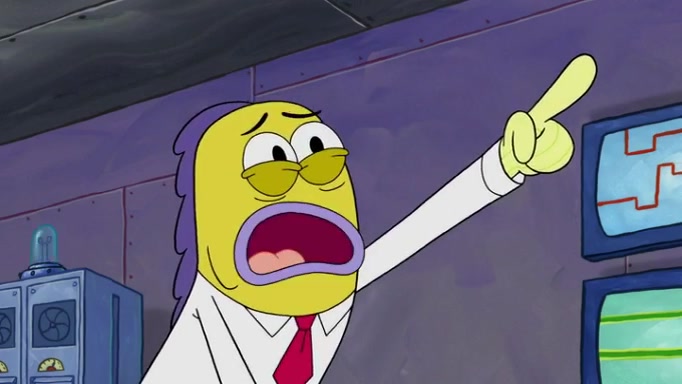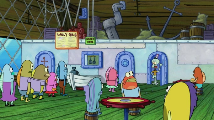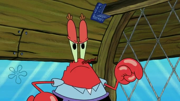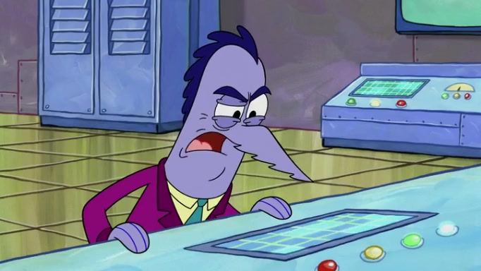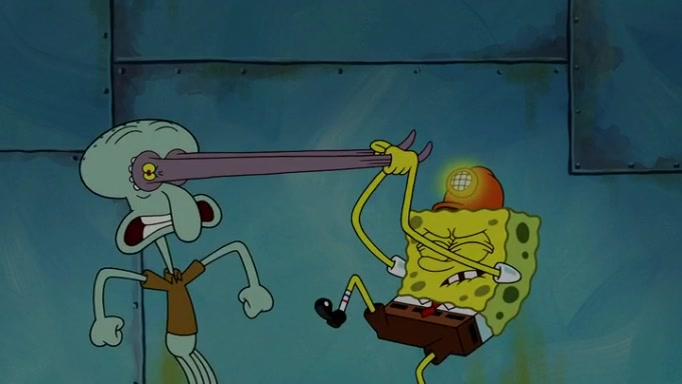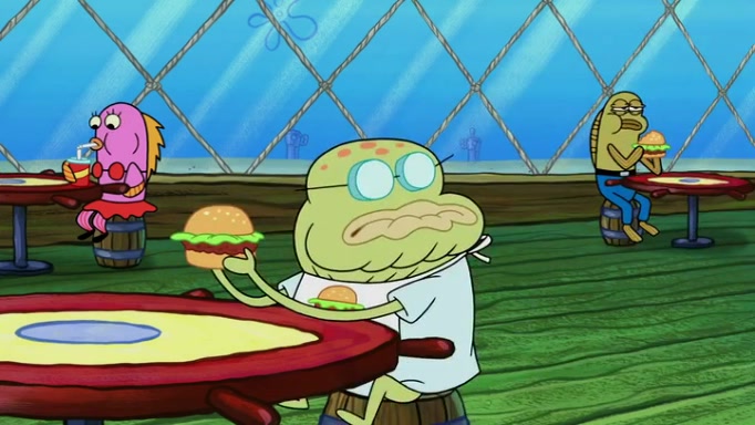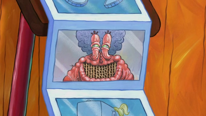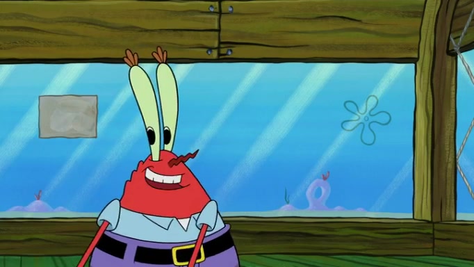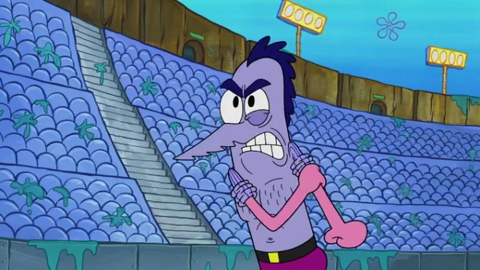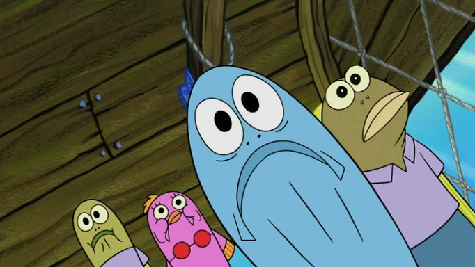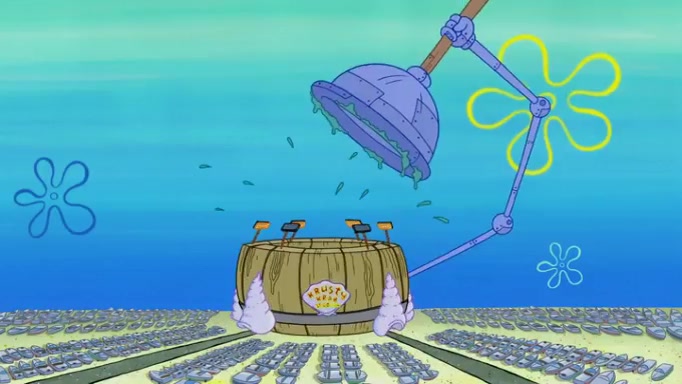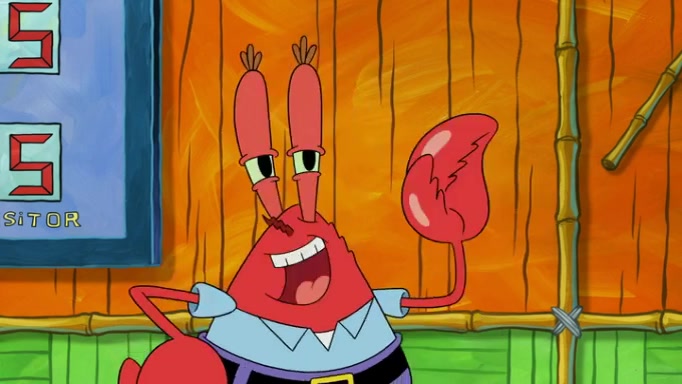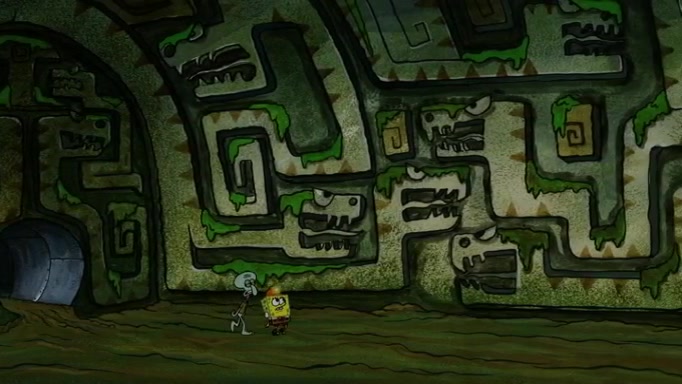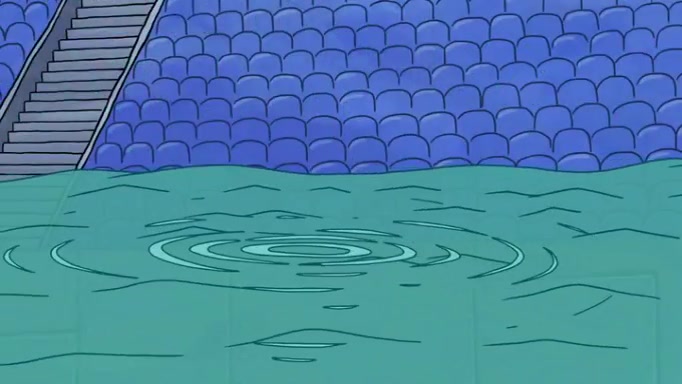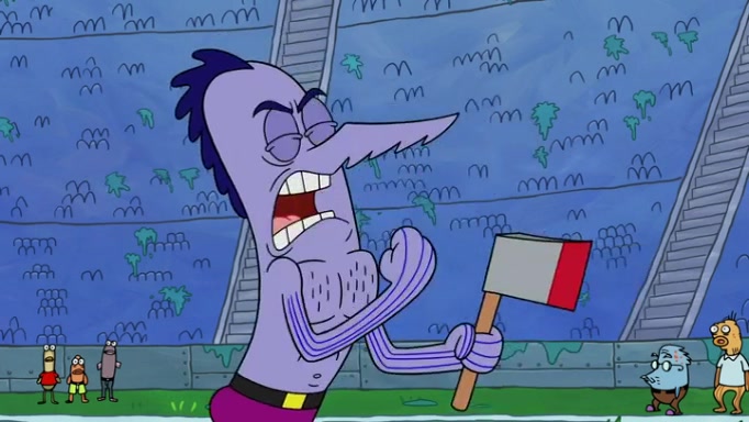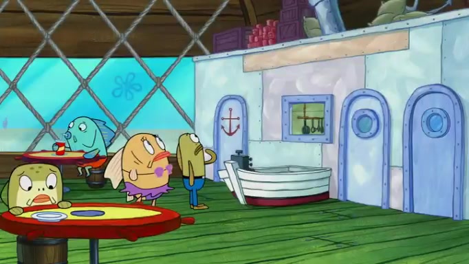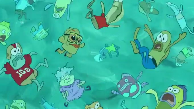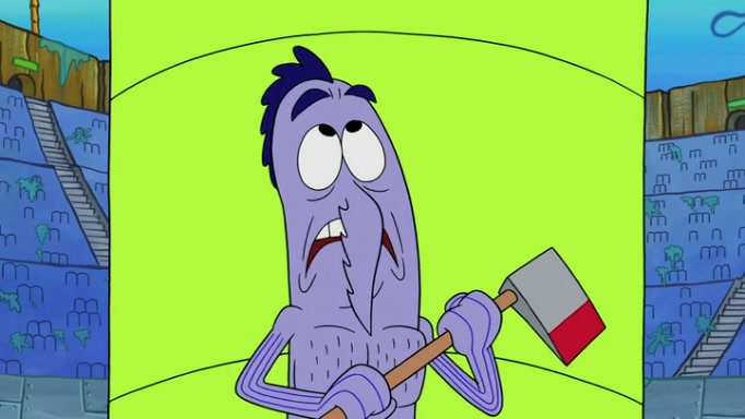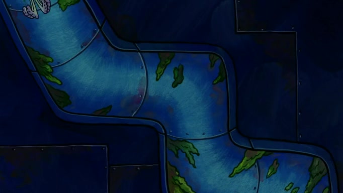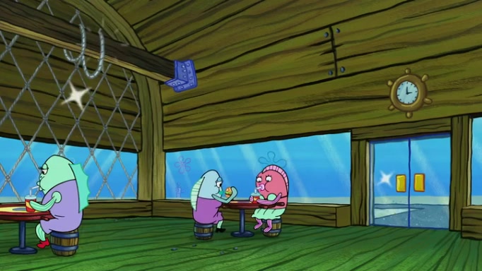 At the Krusty Krab Stadium, Mr. Krabs can be seen talking to Crupski and Charlton Hawkfish about Mr. Krabs buying the stadium. Customers outside are complaining about the plumbing an Charlton is angered to not only see that the pipes have a reducer in it, but is also made out of cardboard. Charlton worries that the pipes won't hold but Crupski says it's a way to save money much to the delight of Mr. Krabs. Meanwhile, SpongeBob and Squidward make it to the sewers where they begin their search for the safe. They manage to spot the safe where it gets stuck in the pipes. As Squidward tries to reach for it, the safe gets unstuck and floats away. Squidward fails to grab it again and a couple of lampreys bites at his hands. SpongeBob helps get the lampreys off and spots the safe floating in the distance. SpongeBob and Squidward go after it once more and, suddenly, a large sewer snake emerges from the water.
