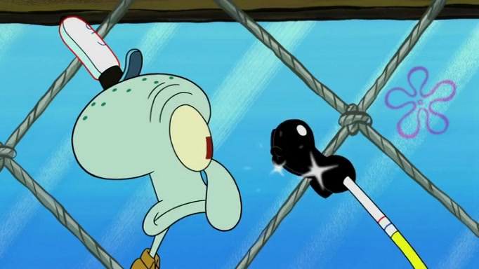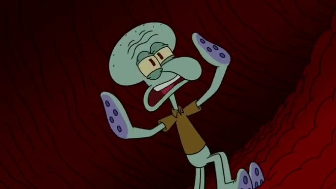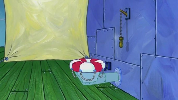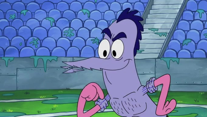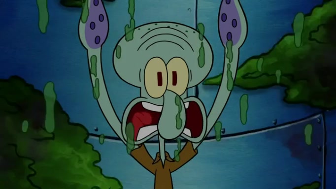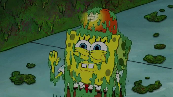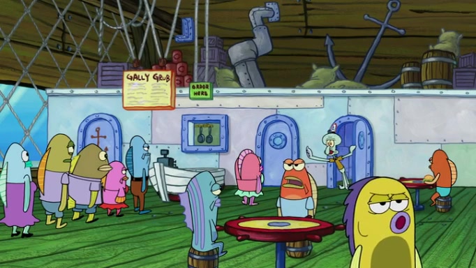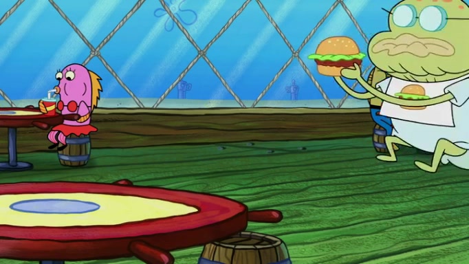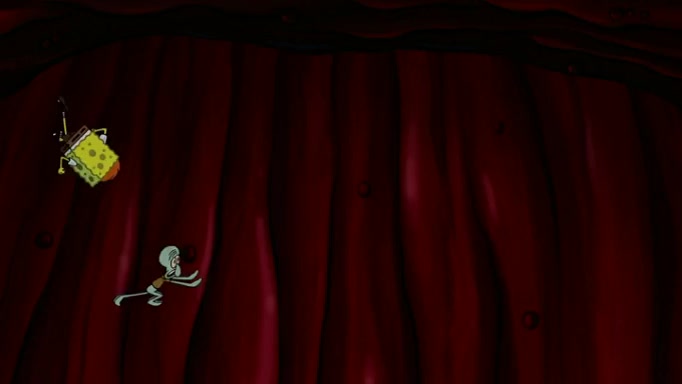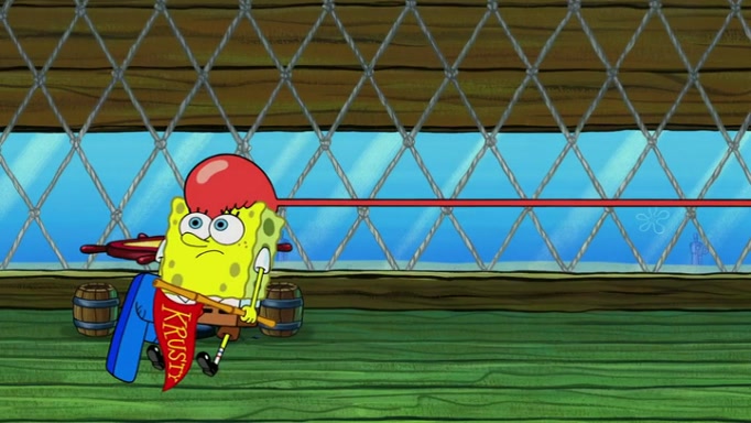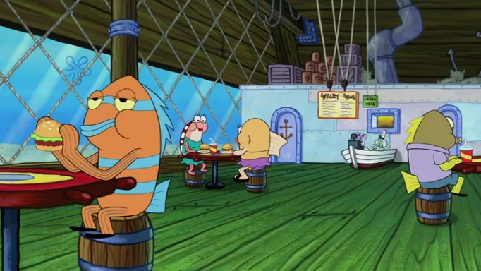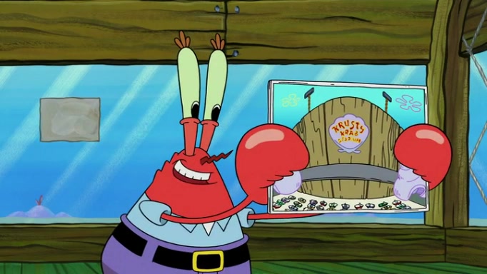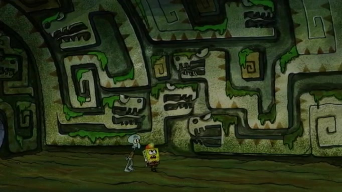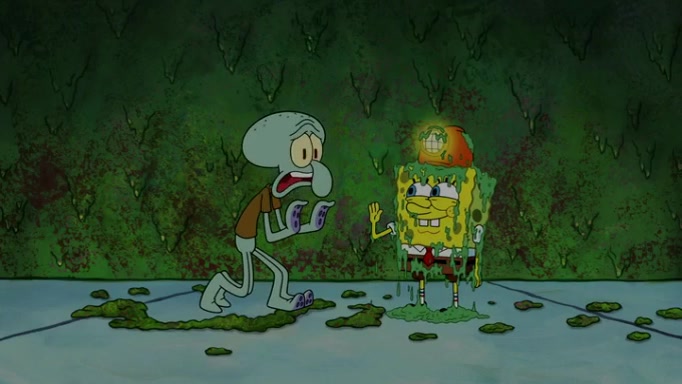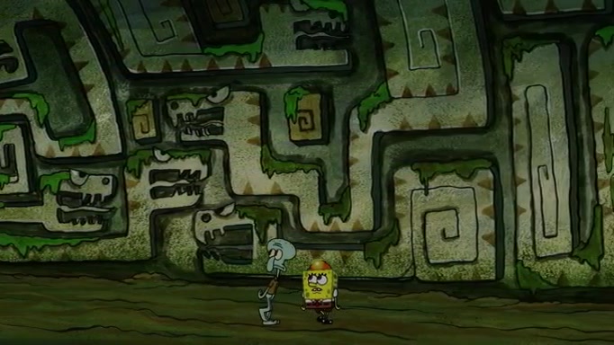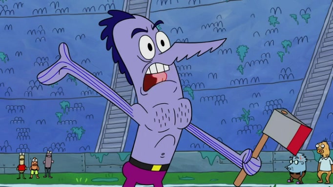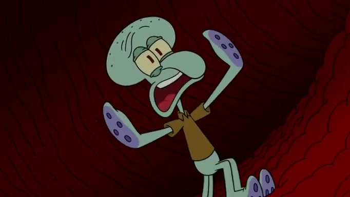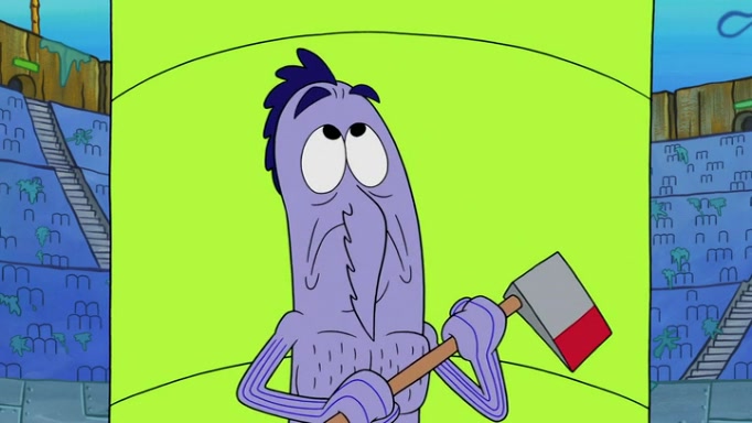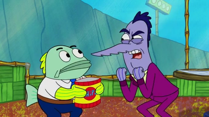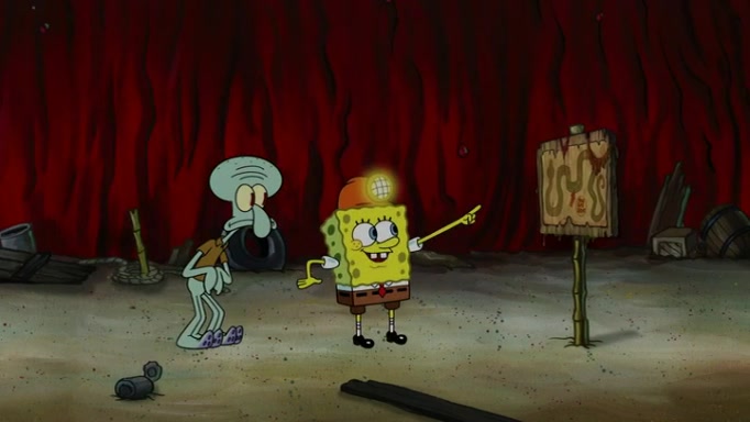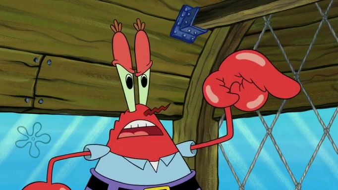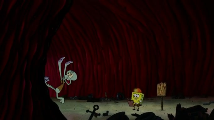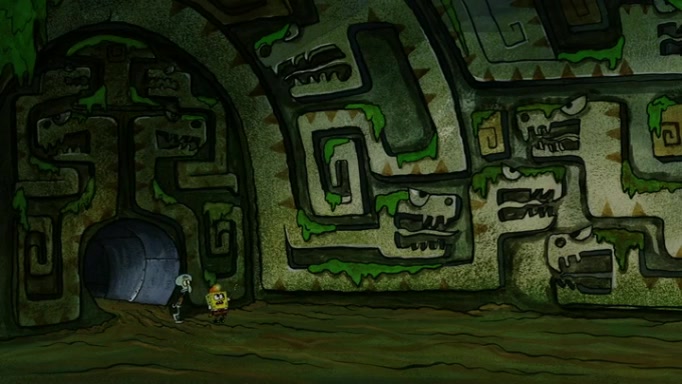 At the Krusty Krab Stadium, Mr. Krabs can be seen talking to Crupski and Charlton Hawkfish about Mr. Krabs buying the stadium. Customers outside are complaining about the plumbing an Charlton is angered to not only see that the pipes have a reducer in it, but is also made out of cardboard. Charlton worries that the pipes won't hold but Crupski says it's a way to save money much to the delight of Mr. Krabs. Meanwhile, SpongeBob and Squidward make it to the sewers where they begin their search for the safe. They manage to spot the safe where it gets stuck in the pipes. As Squidward tries to reach for it, the safe gets unstuck and floats away. Squidward fails to grab it again and a couple of lampreys bites at his hands. SpongeBob helps get the lampreys off and spots the safe floating in the distance. SpongeBob and Squidward go after it once more and, suddenly, a large sewer snake emerges from the water.