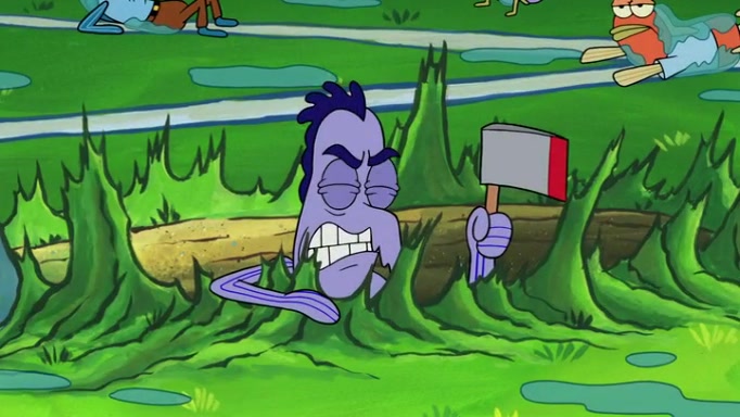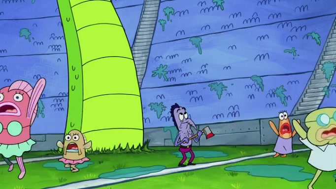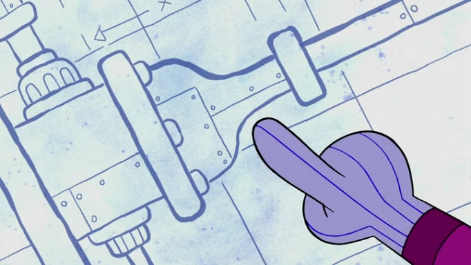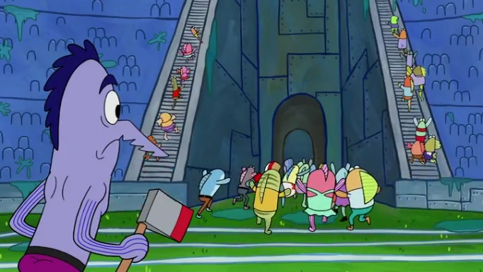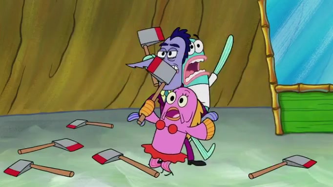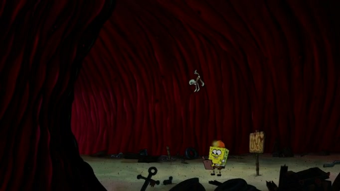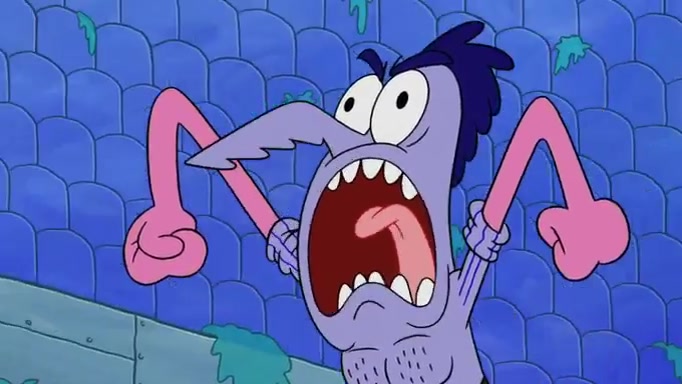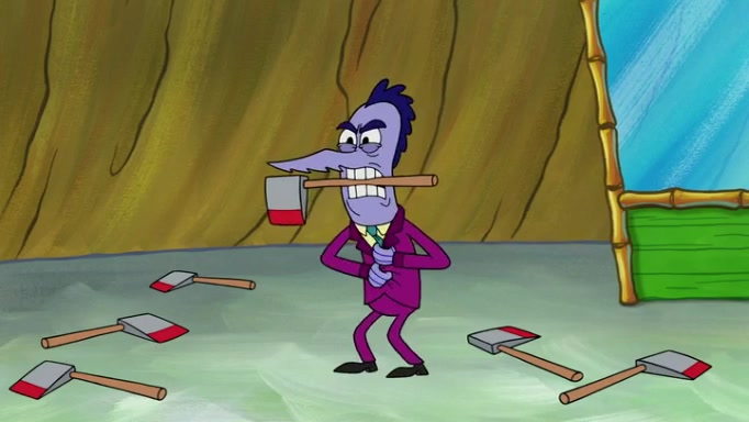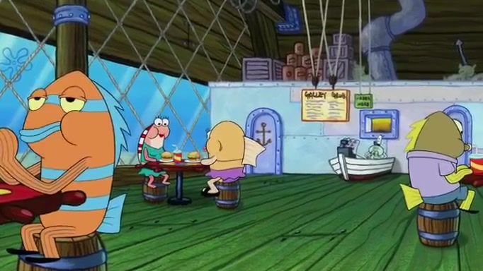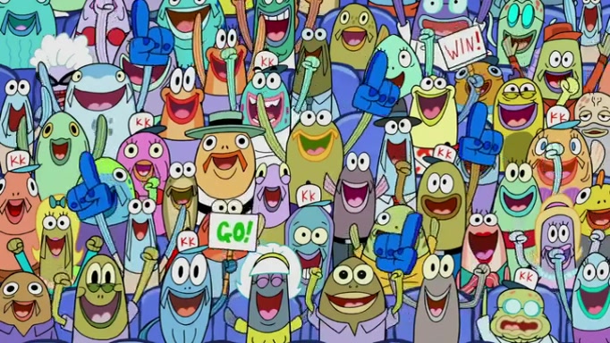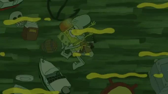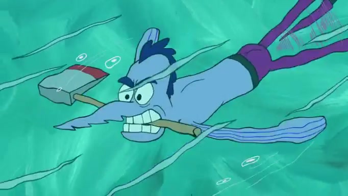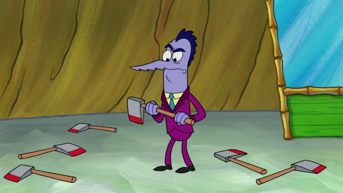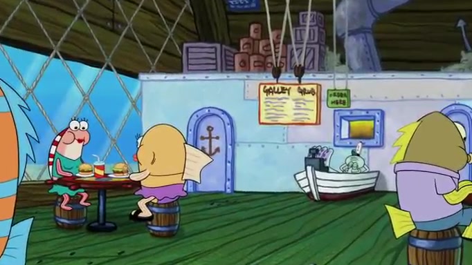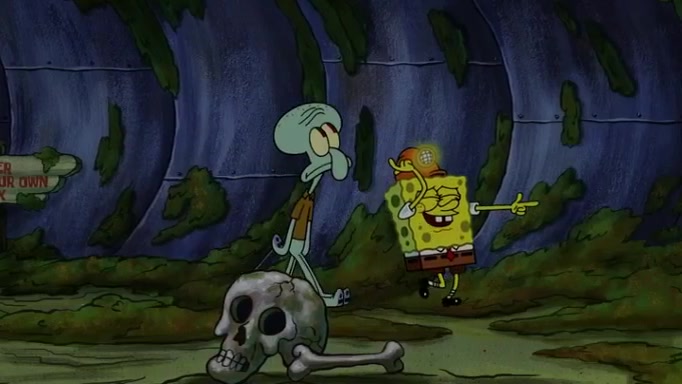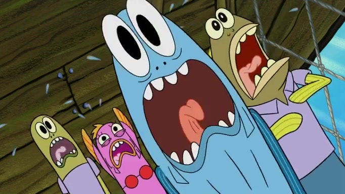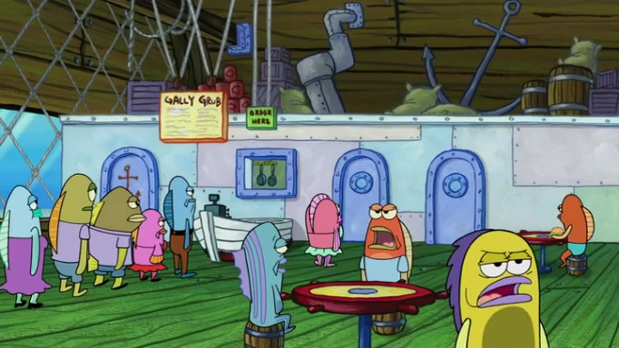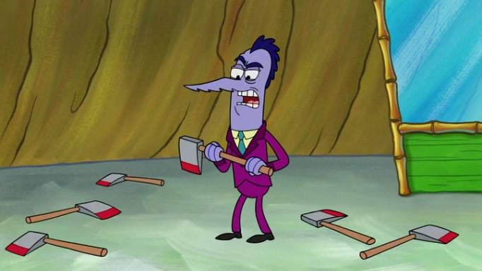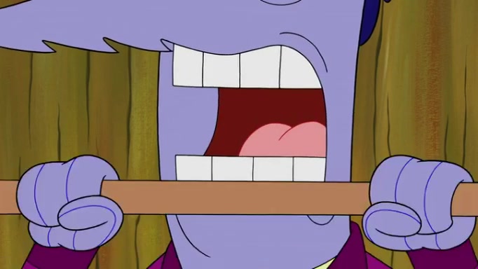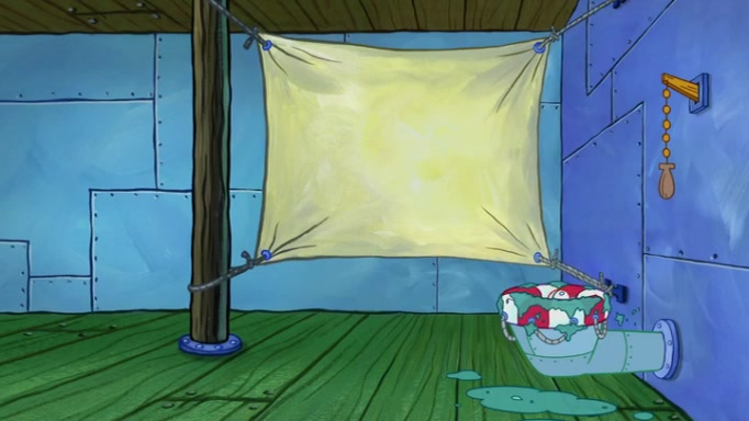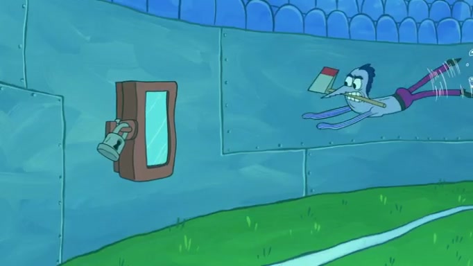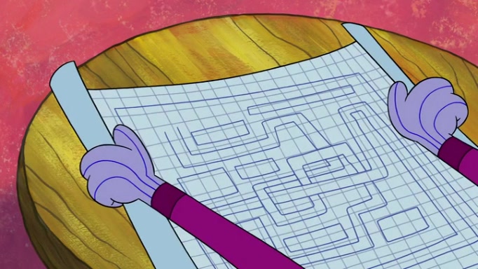 At the Krusty Krab Stadium, Mr. Krabs can be seen talking to Crupski and Charlton Hawkfish about Mr. Krabs buying the stadium. Customers outside are complaining about the plumbing an Charlton is angered to not only see that the pipes have a reducer in it, but is also made out of cardboard. Charlton worries that the pipes won't hold but Crupski says it's a way to save money much to the delight of Mr. Krabs. Meanwhile, SpongeBob and Squidward make it to the sewers where they begin their search for the safe. They manage to spot the safe where it gets stuck in the pipes. As Squidward tries to reach for it, the safe gets unstuck and floats away. Squidward fails to grab it again and a couple of lampreys bites at his hands. SpongeBob helps get the lampreys off and spots the safe floating in the distance. SpongeBob and Squidward go after it once more and, suddenly, a large sewer snake emerges from the water.