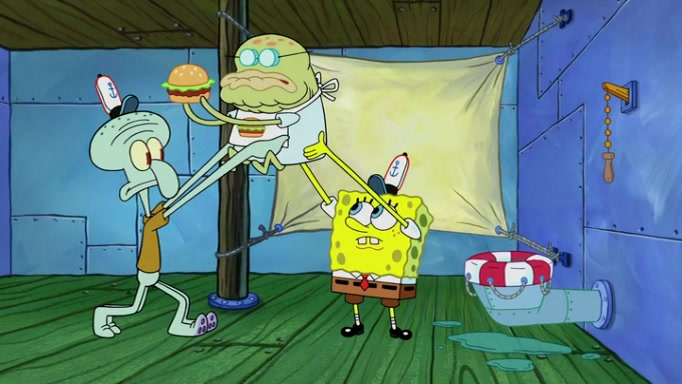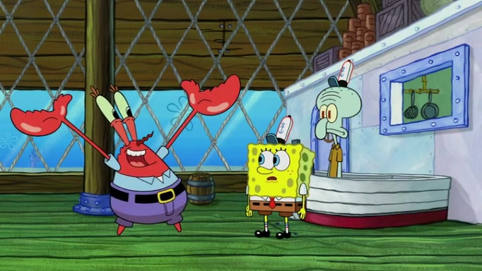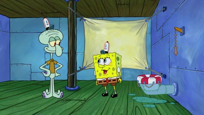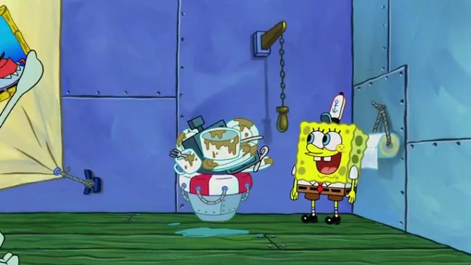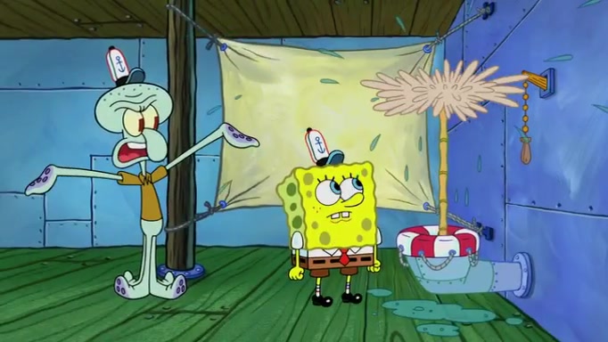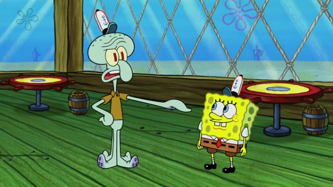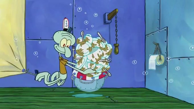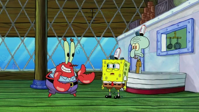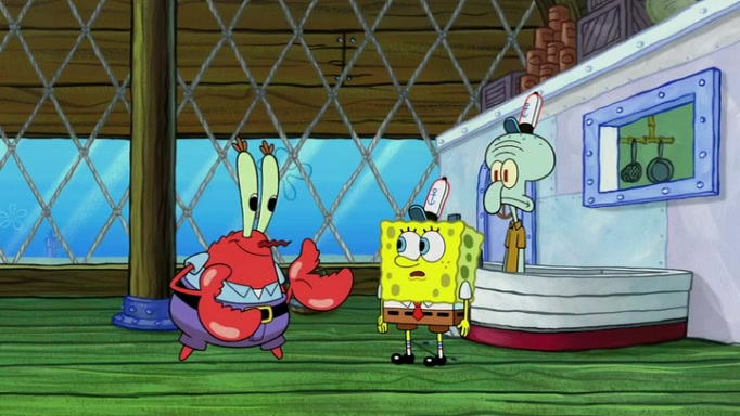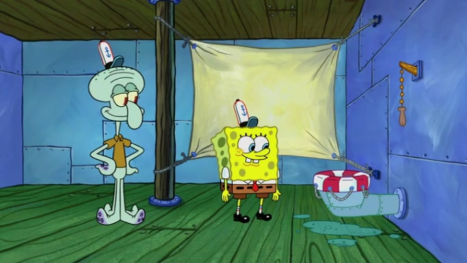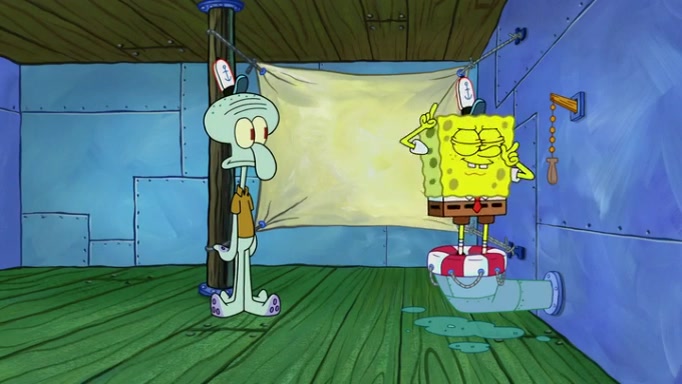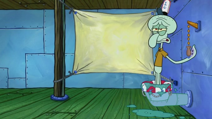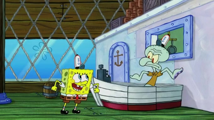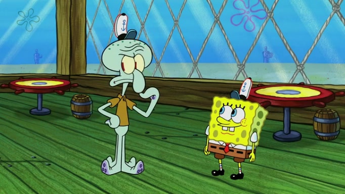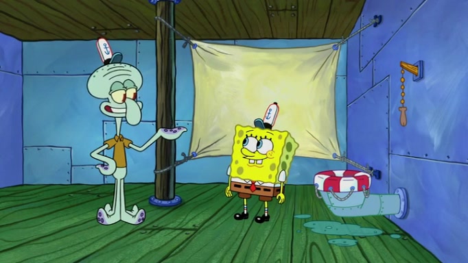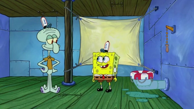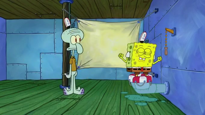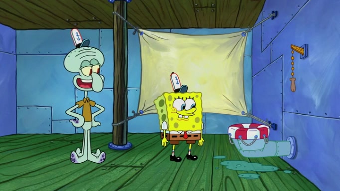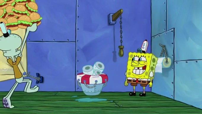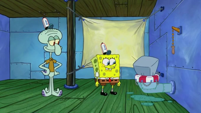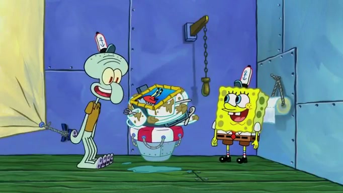 The episode opens at the Krusty Krab where SpongeBob and Squidward are working and Mr. Krabs comes to tell them that Bikini Bottom's newest stadium will be named after the Krusty Krab. He then tells them that employees have to stay at the Krusty Krab to keep working. Mr. Krabs puts Squidward in charge of the Krusty Krab while he is gone and he leaves. SpongeBob wakes up a sleeping Squidward asking for jobs to do. Squidward tries to find some work but notices SpongeBob has did most of them already. Squidward then has SpongeBob clean some more but he does all of the work in seconds. Squidward, after running out of ideas, tasks SpongeBob to flush things down the toilet and SpongeBob goes into the bathroom to do so. Squidward realizes his mistake and tries to stop SpongeBob. SpongeBob flushes a mop down the toilet and Squidward finds it exciting. He and SpongeBob then flush various objects down the toilet but are horrified after accidentally flushing down Mr. Krabs' safe which contains the Krabby Patty Secret Formula. SpongeBob decides to flush himself to go and get it and Squidward, realizing he needs SpongeBob to cook the Krabby Patties for the customers, follows SpongeBob down the toilet.